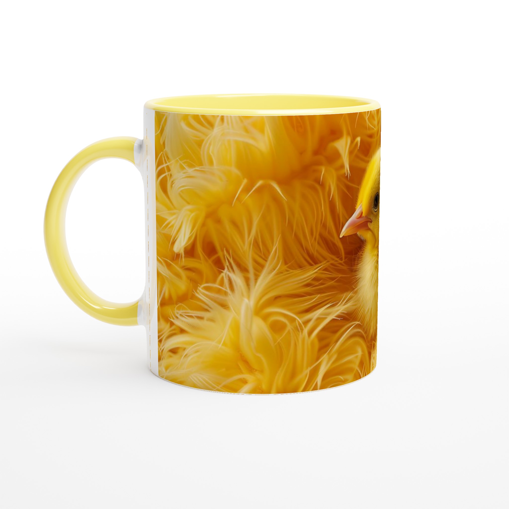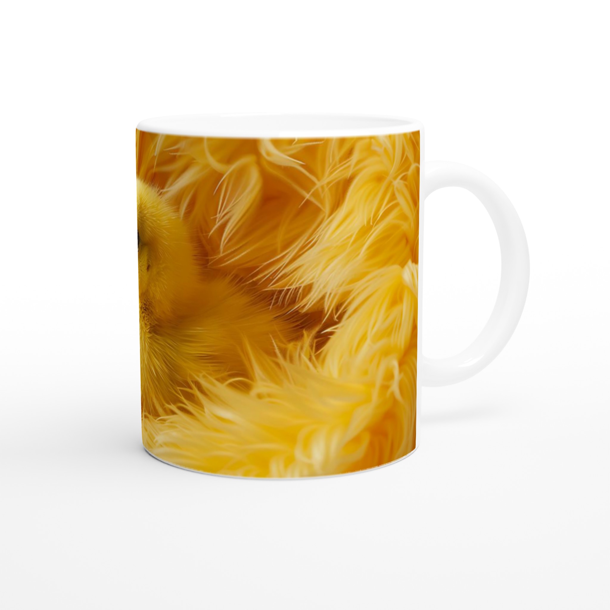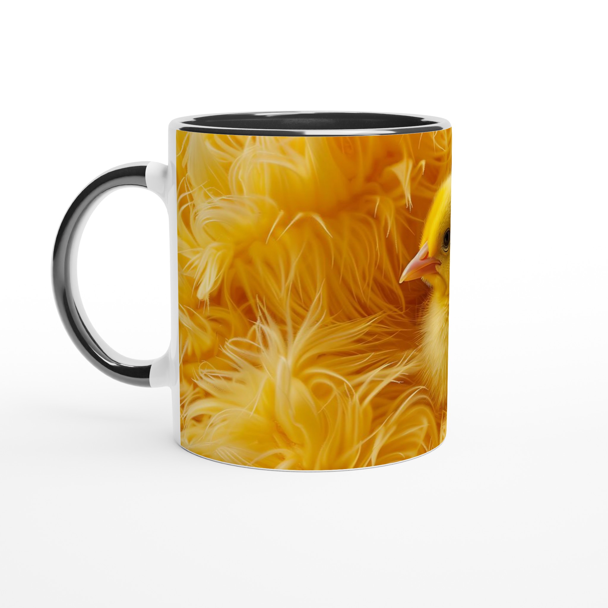 Denna charmiga keramiska mugg, prydd med en bedårande kyckling bland mjuka gula fjädrar, blir snabbt en favorit. Perfekt för morgonkaffet, kvällens varma choklad, eller när du bara vill njuta av en kopp te i gott sällskap. Den blanka ytan lyfter fram det söta motivet med klara och levande färger, som håller sig fina även efter många turer i mikron och diskmaskinen.
