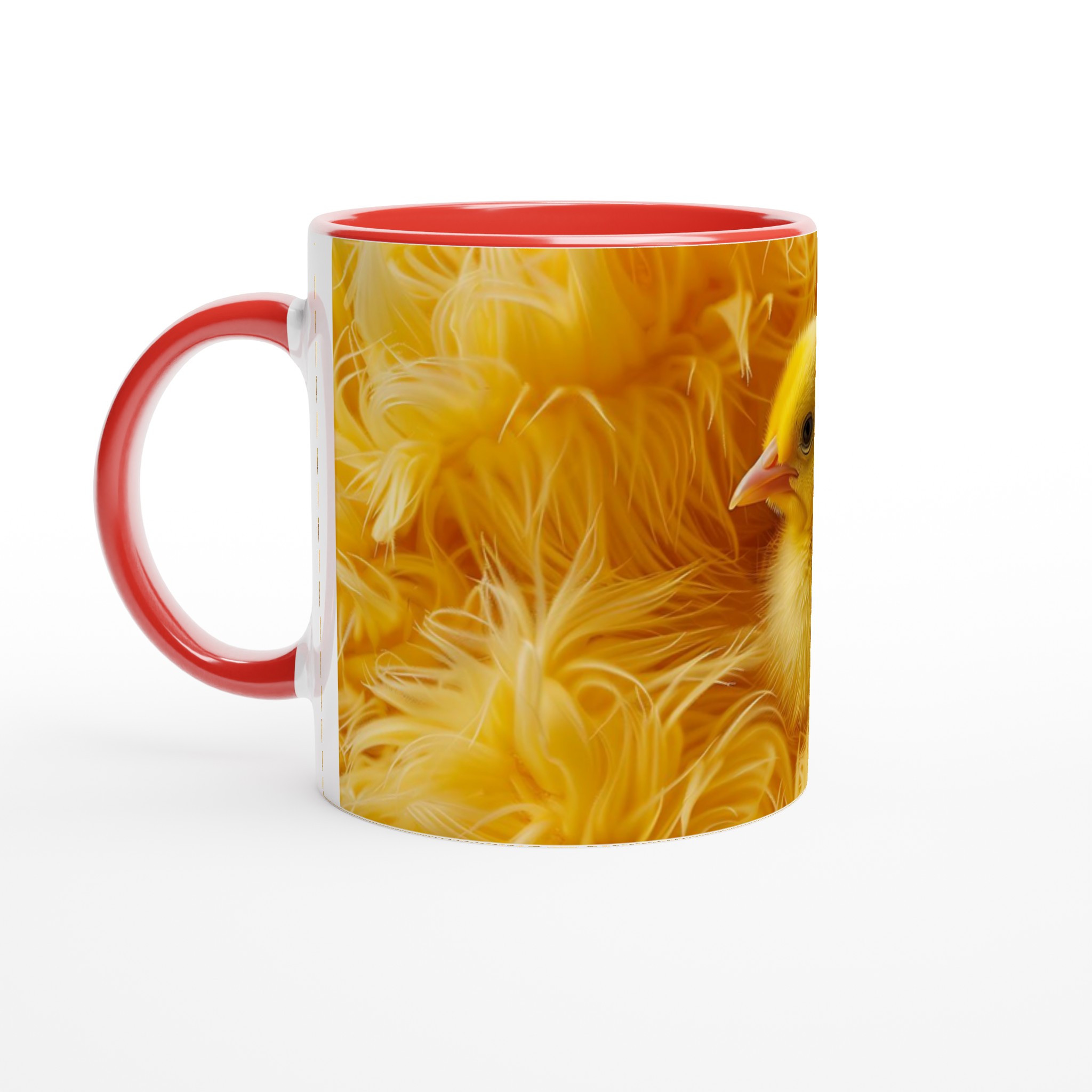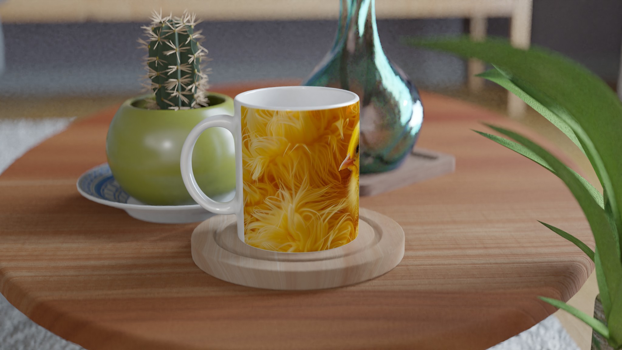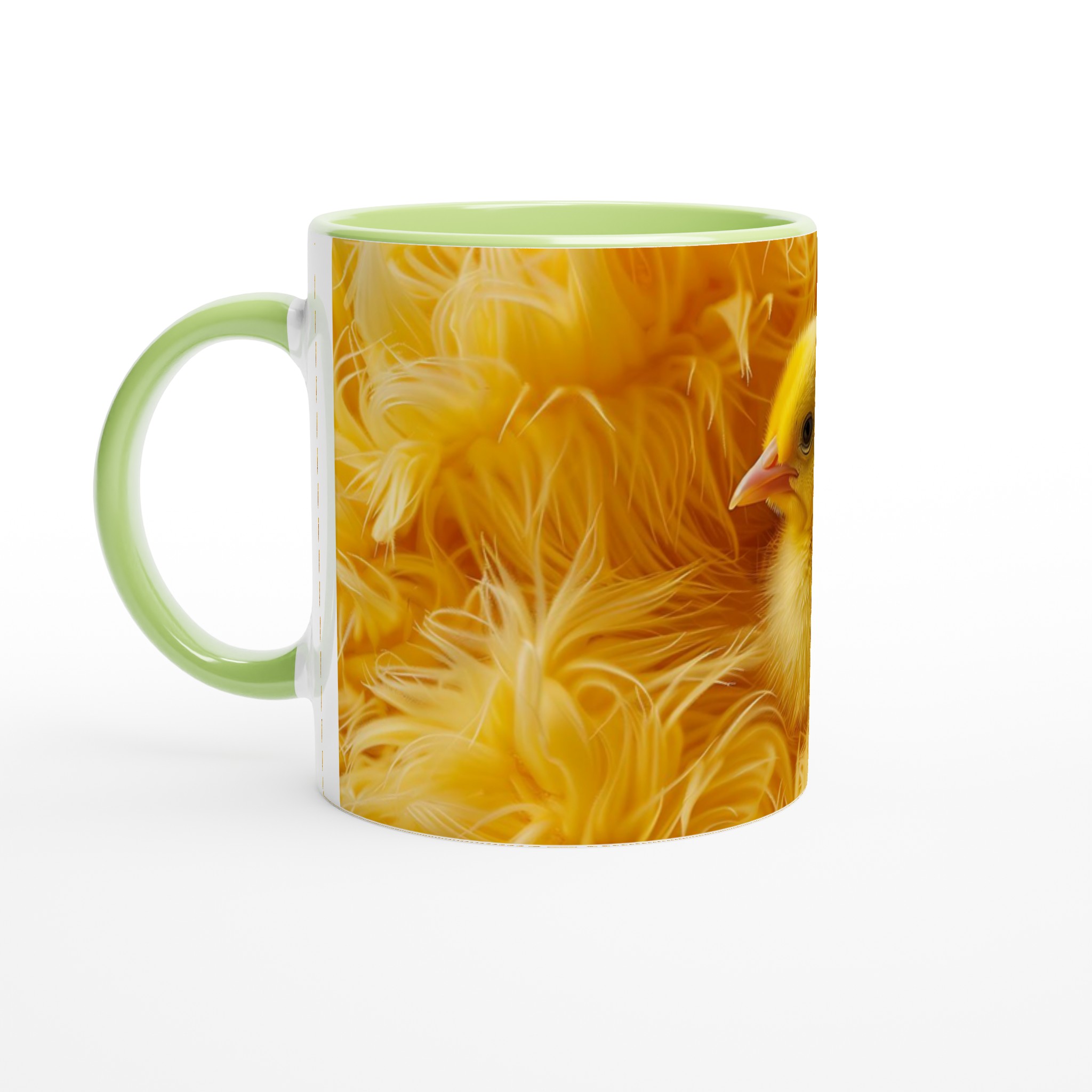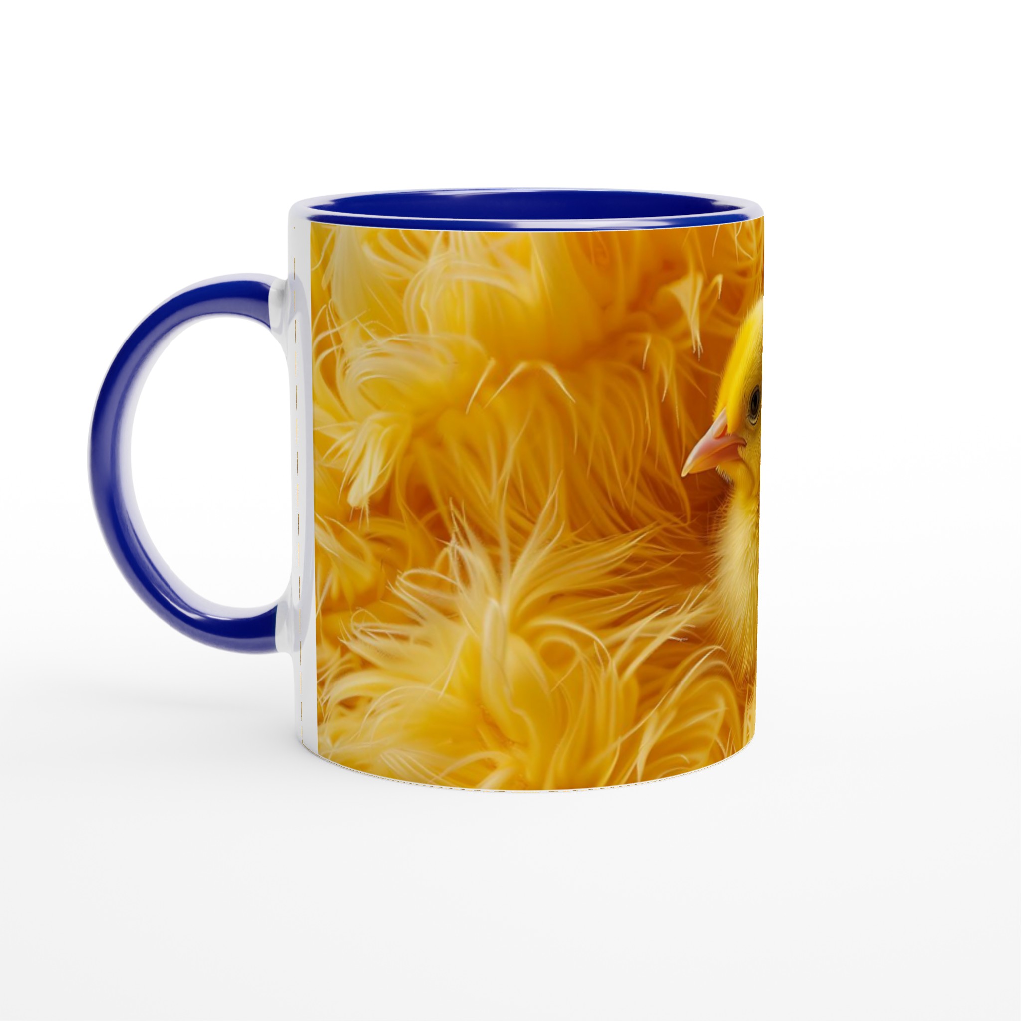 Denna charmiga keramiska mugg, prydd med en bedårande kyckling bland mjuka gula fjädrar, blir snabbt en favorit. Perfekt för morgonkaffet, kvällens varma choklad, eller när du bara vill njuta av en kopp te i gott sällskap. Den blanka ytan lyfter fram det söta motivet med klara och levande färger, som håller sig fina även efter många turer i mikron och diskmaskinen.