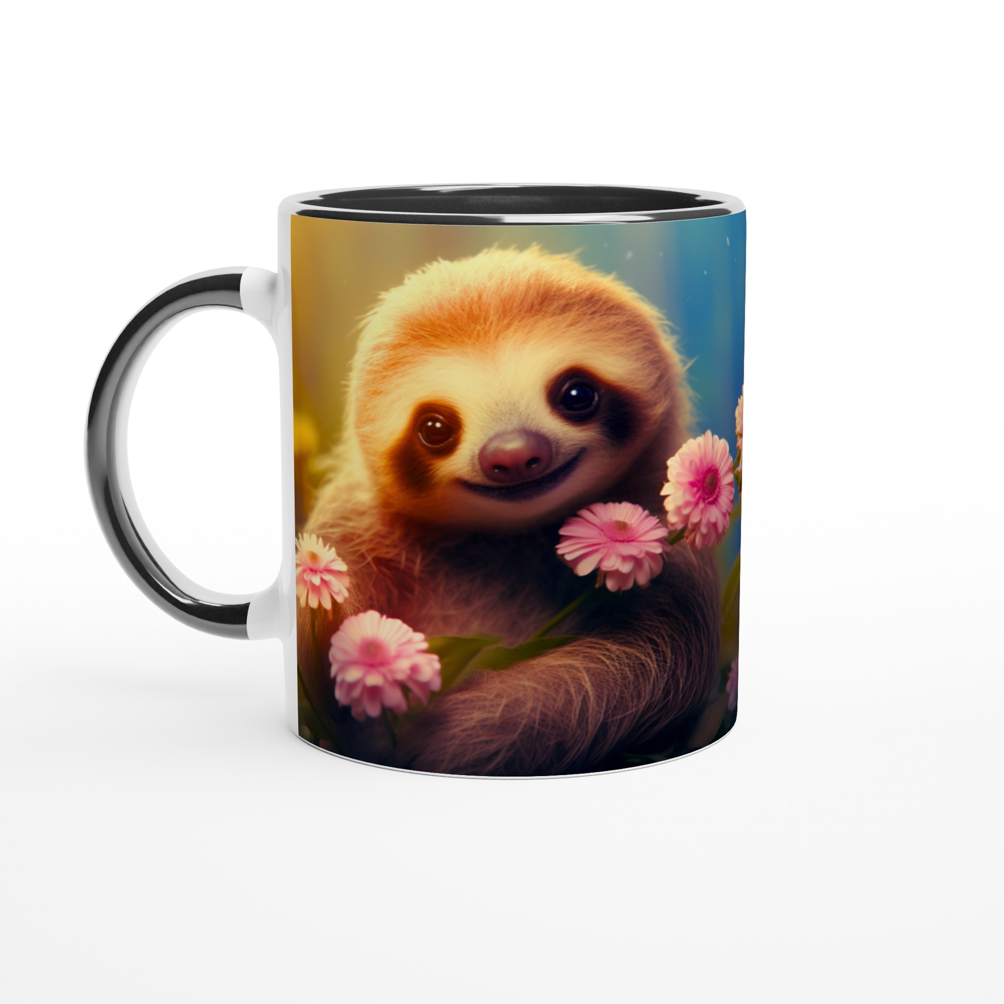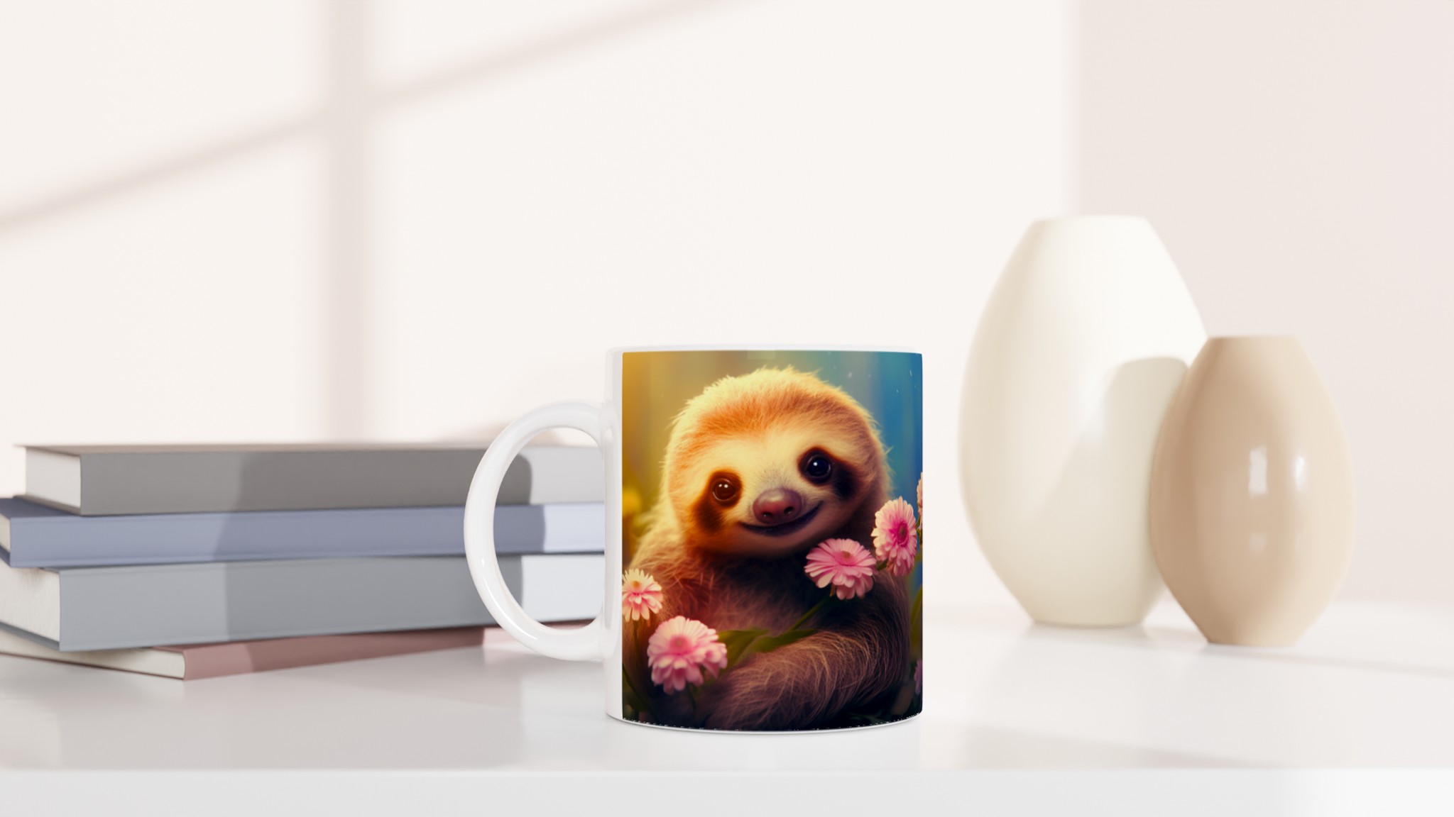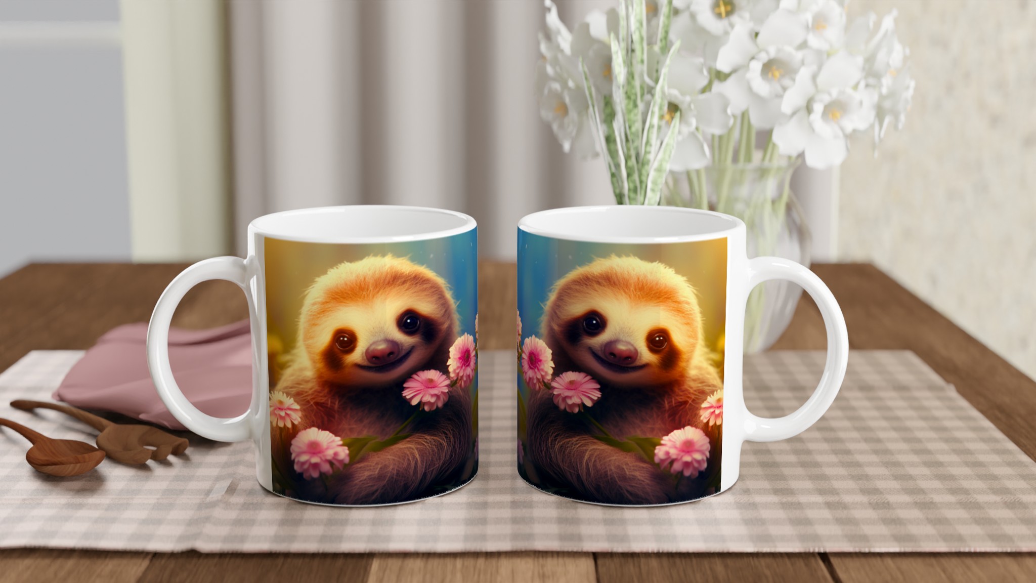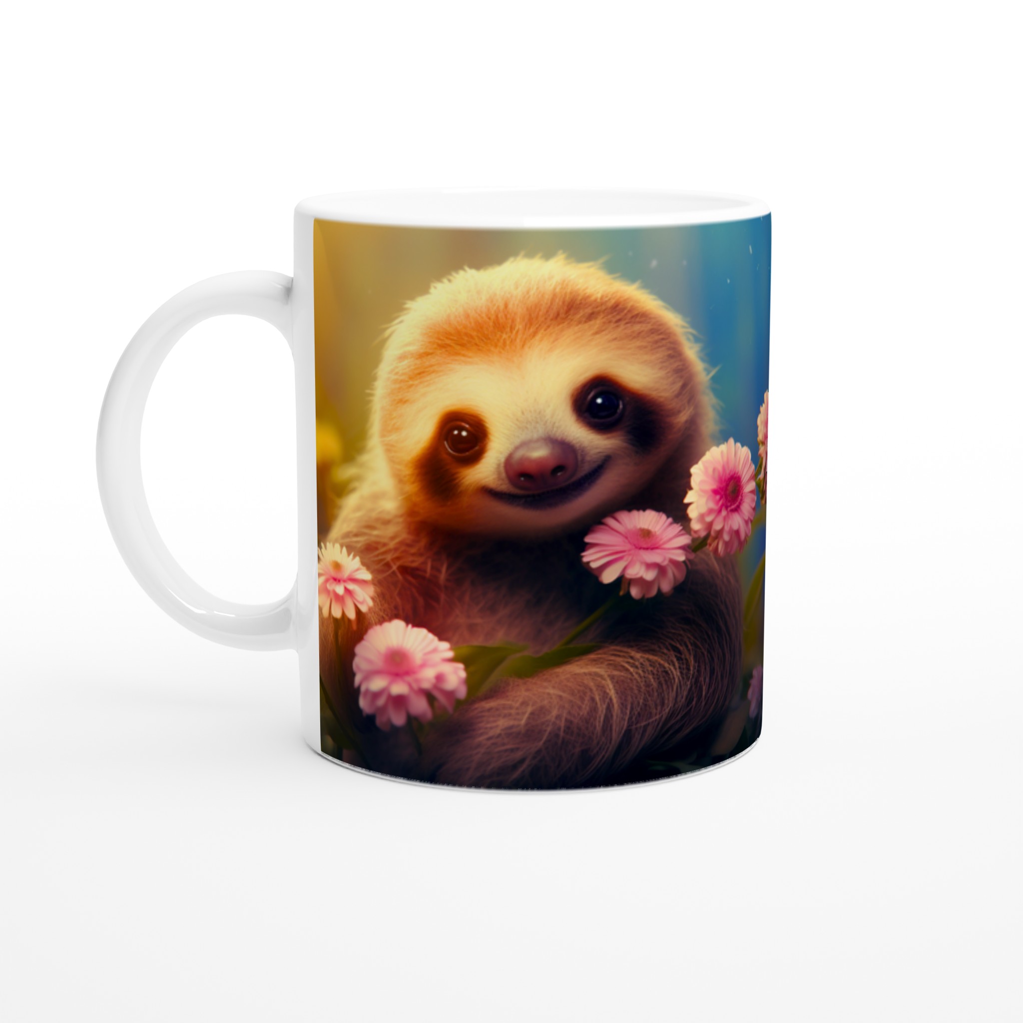 Fånga dagen med ett leende och en kopp kaffe i denna underbart söta keramiska mugg, prydd med en bedårande sengångare omgiven av frodiga blommor. Denna mugg blir snabbt en vardagsfavorit, perfekt för morgonkaffet, kvällens varma choklad eller när du bara vill njuta av en lugn kopp te. Den blanka ytan säkerställer att trycket framhävs med klara och levande färger, som håller sig fina även efter otaliga turer i mikron och diskmaskinen.