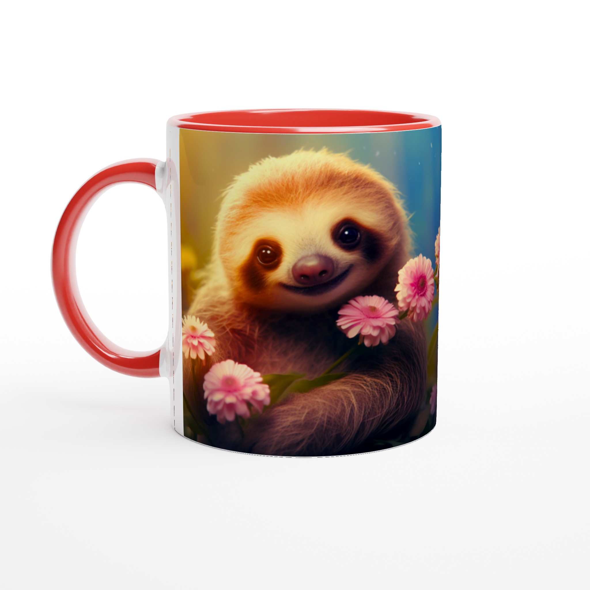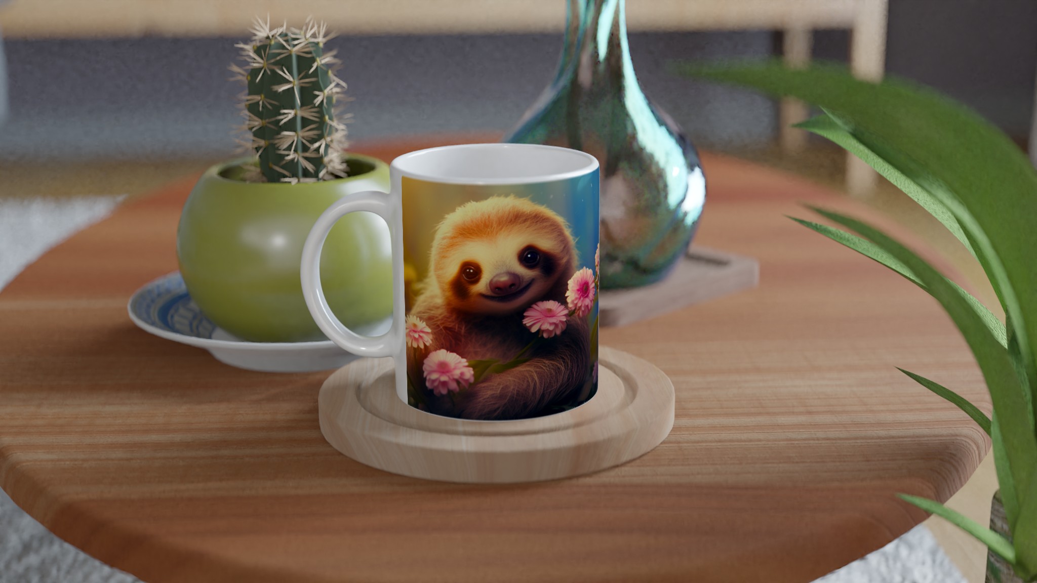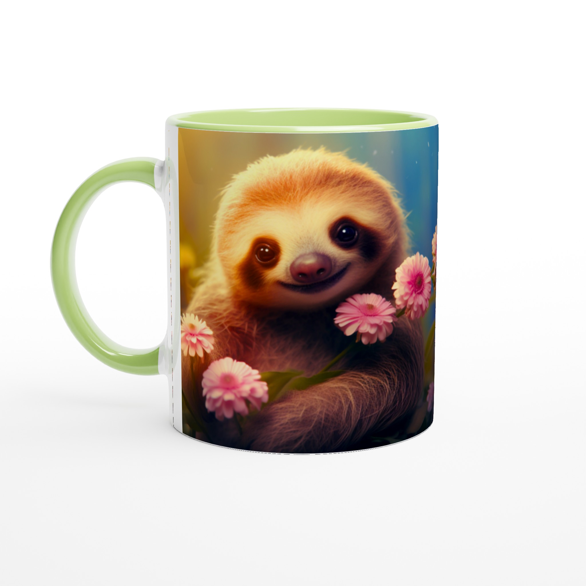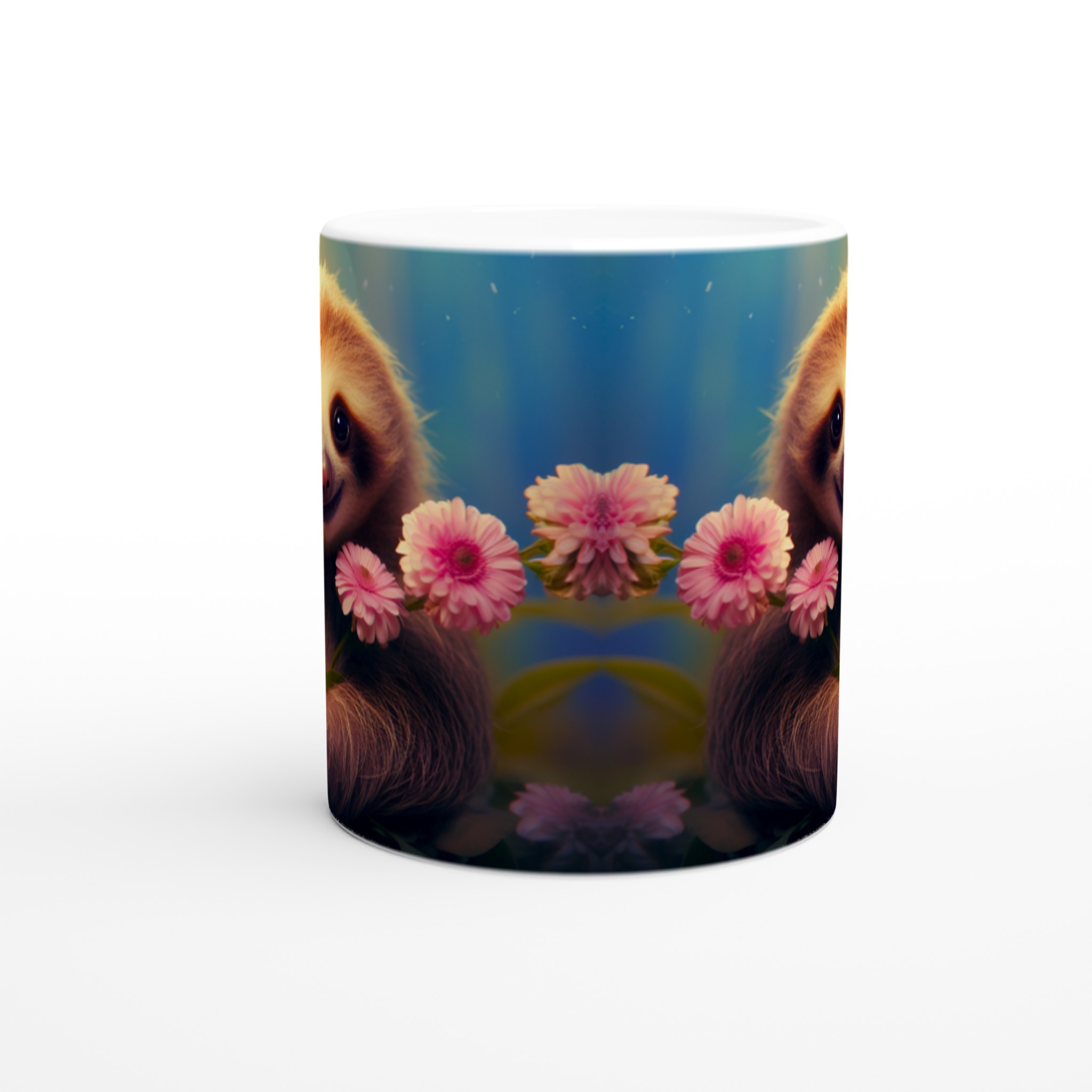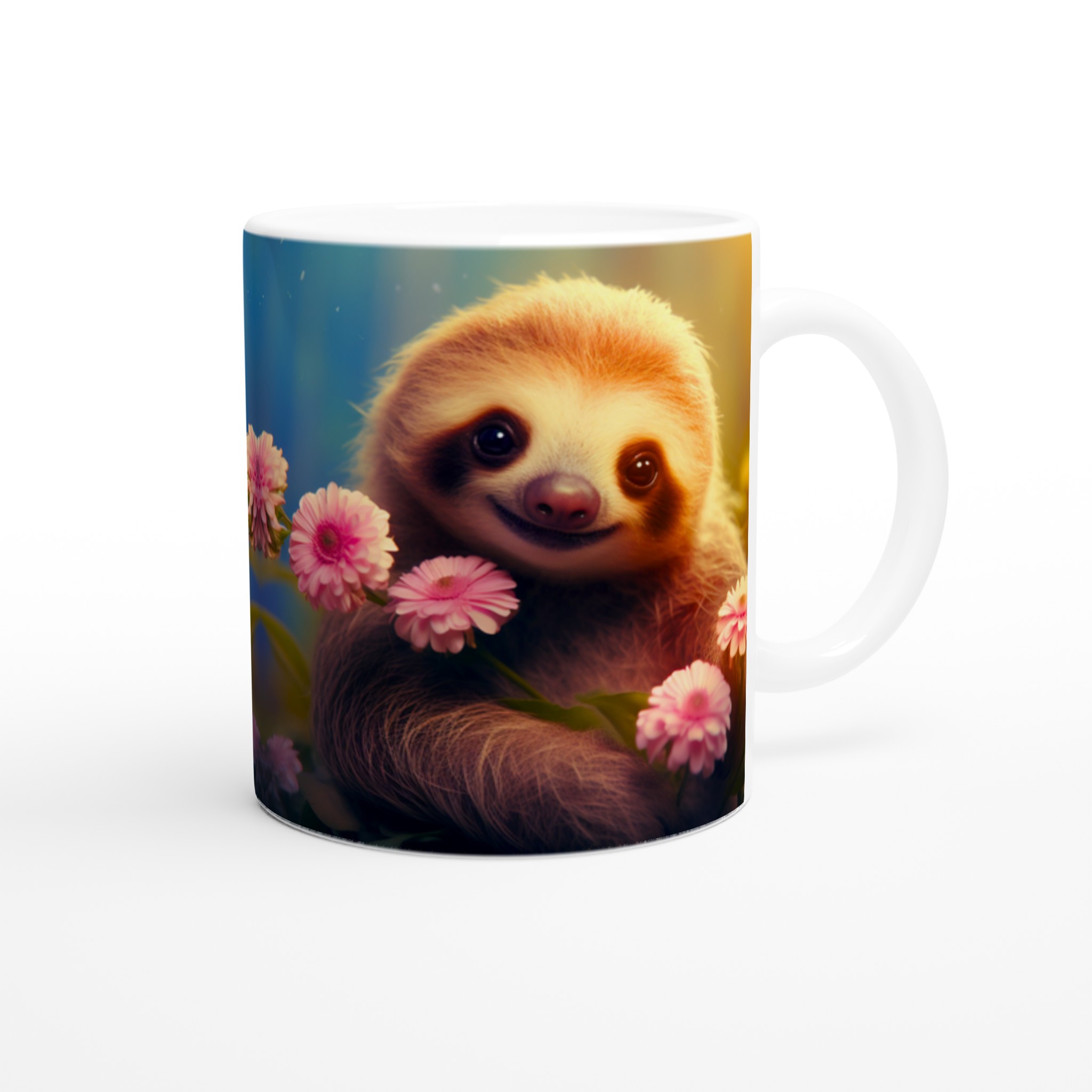 Fånga dagen med ett leende och en kopp kaffe i denna underbart söta keramiska mugg, prydd med en bedårande sengångare omgiven av frodiga blommor. Denna mugg blir snabbt en vardagsfavorit, perfekt för morgonkaffet, kvällens varma choklad eller när du bara vill njuta av en lugn kopp te. Den blanka ytan säkerställer att trycket framhävs med klara och levande färger, som håller sig fina även efter otaliga turer i mikron och diskmaskinen.