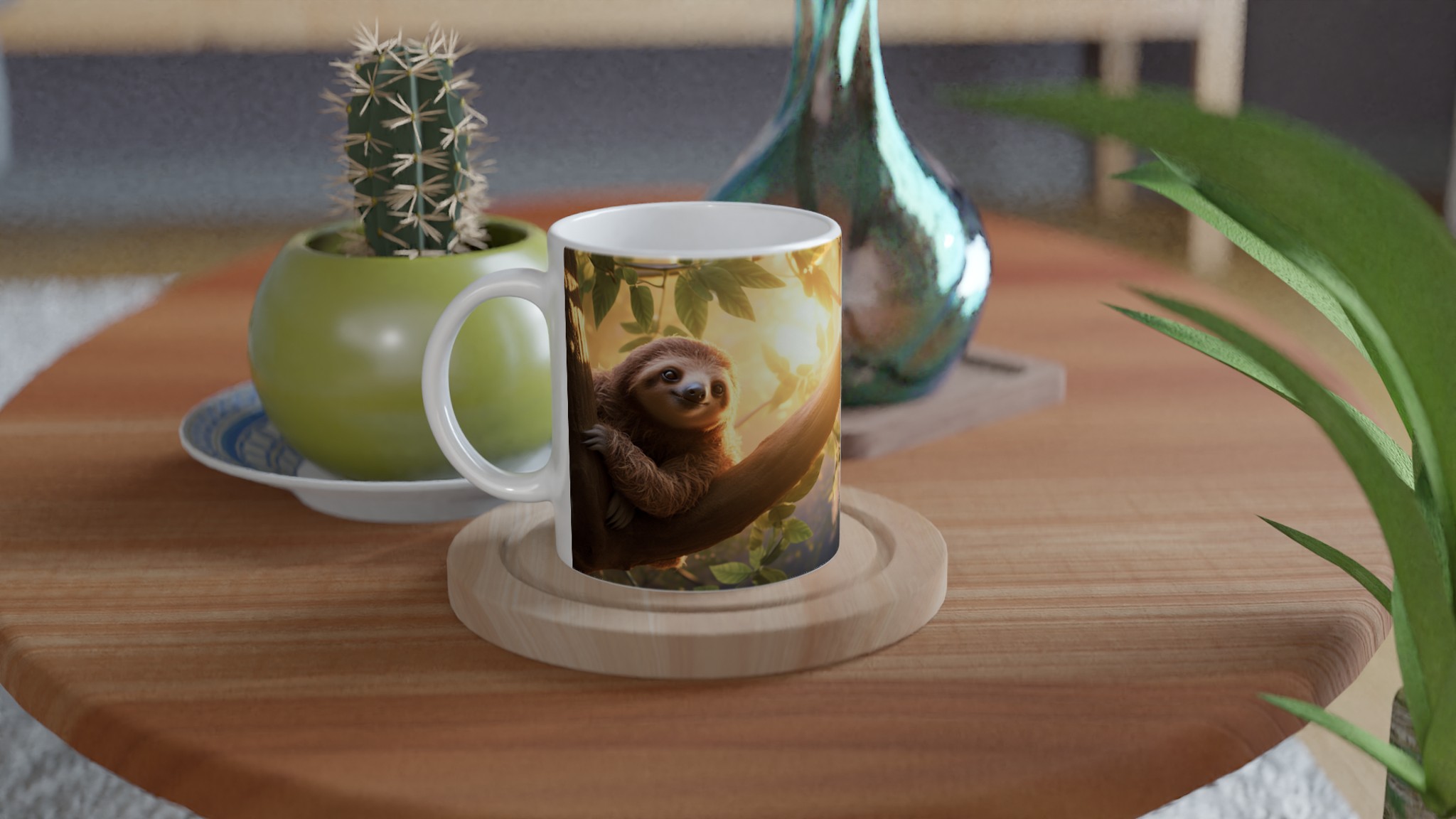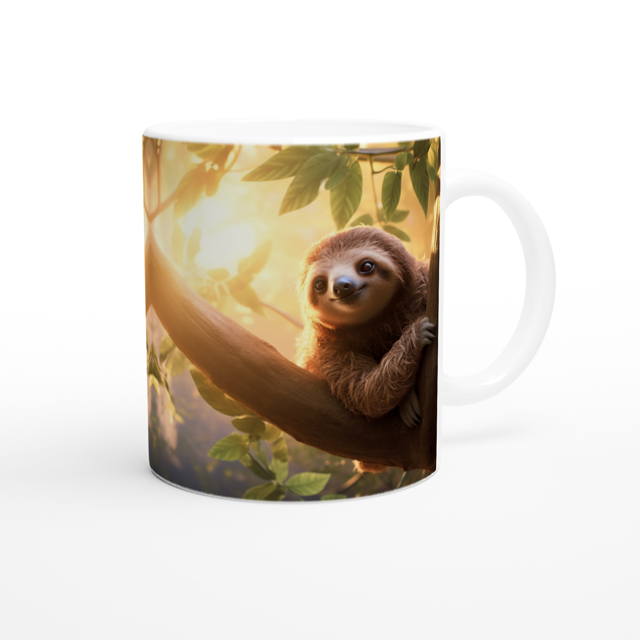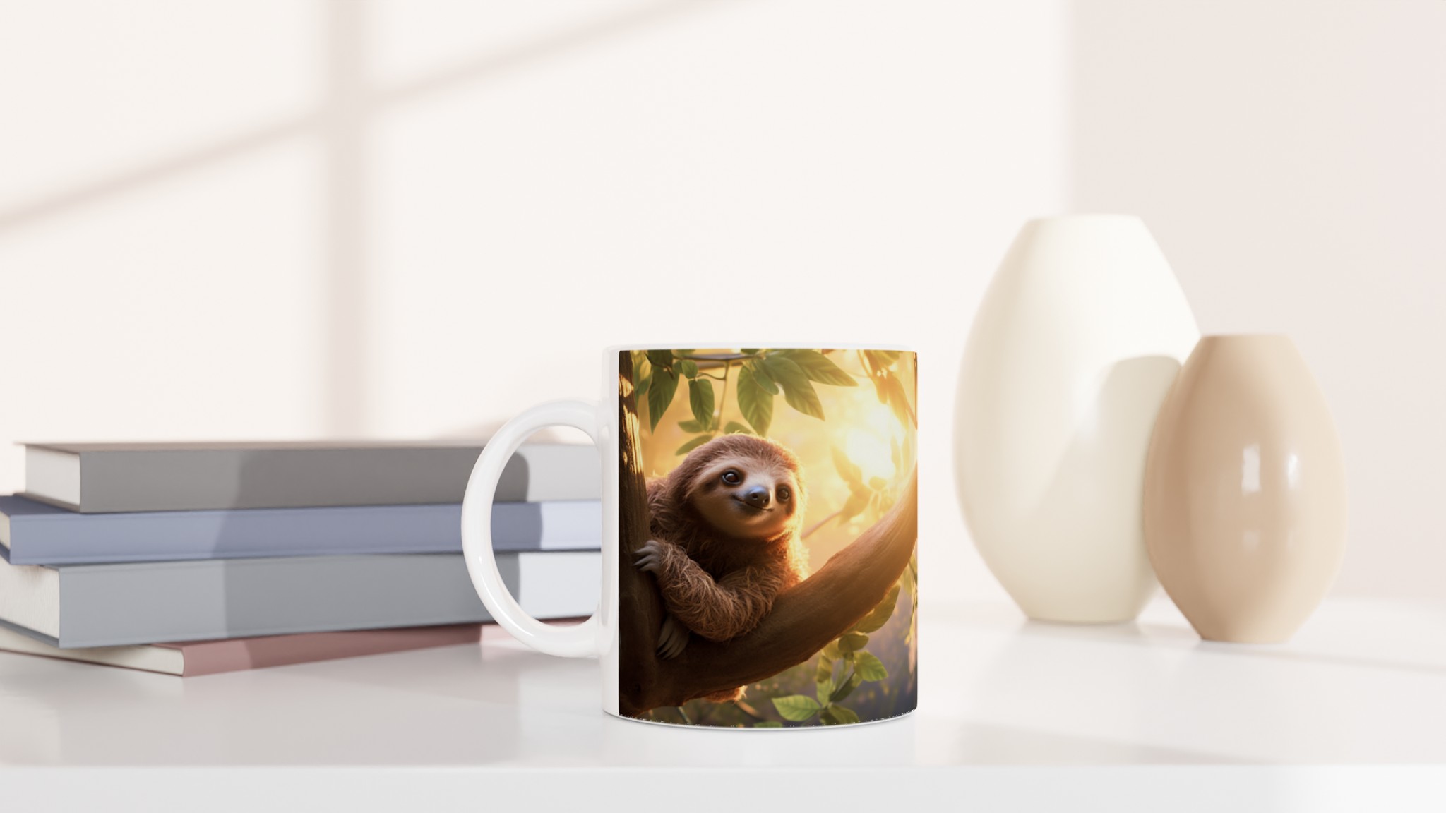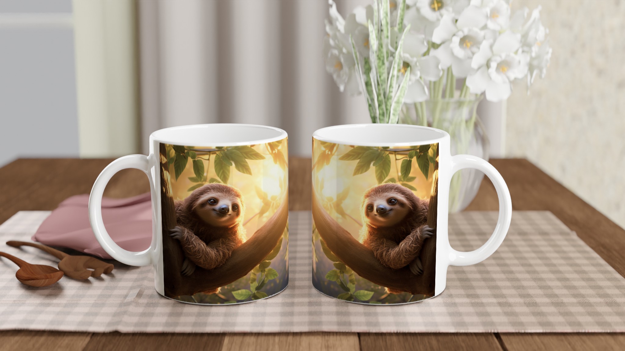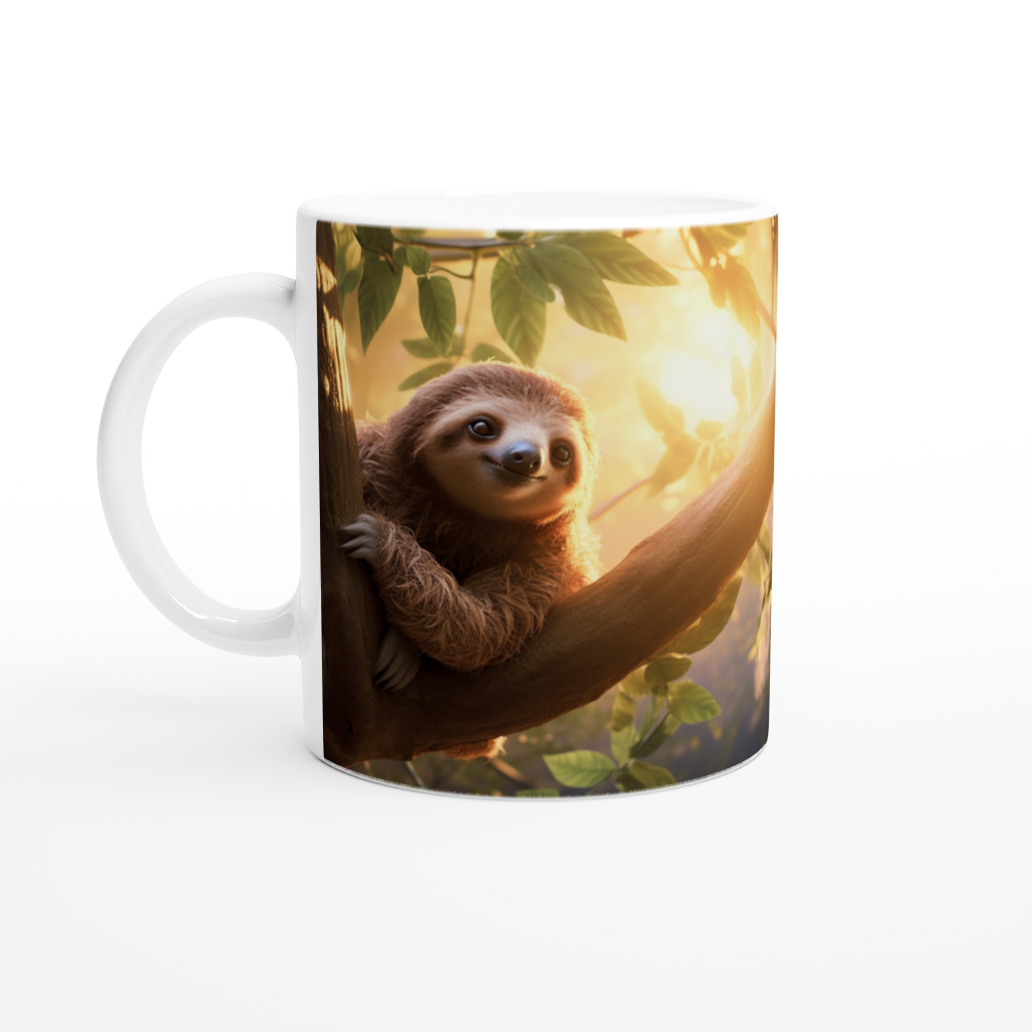 Fånga dagens ljus och ett leende med denna bedårande keramiska mugg, prydd med en vänlig sengångare som solar sig i den gyllene eftermiddagsskenen. Denna mugg blir snabbt en vardagsfavorit för alla som älskar djur och en touch av lugn i sin rutin. Perfekt för morgonkaffet, kvällens varma choklad eller när du bara vill njuta av en kopp te medan du drömmer dig bort till en solig djungel. Den blanka ytan lyfter fram det charmiga trycket med klara och levande färger, som håller sig fina även efter många turer i mikron och diskmaskinen.