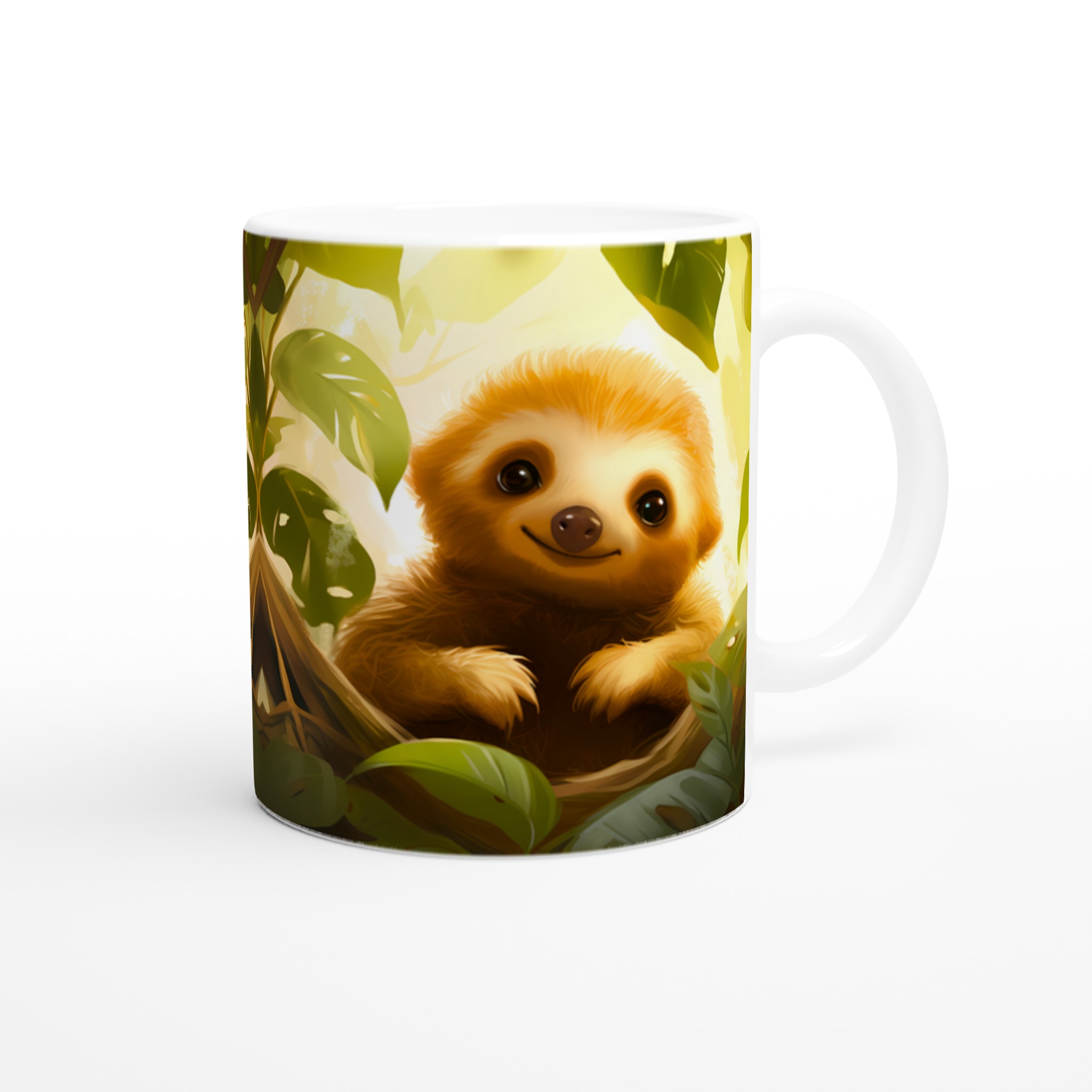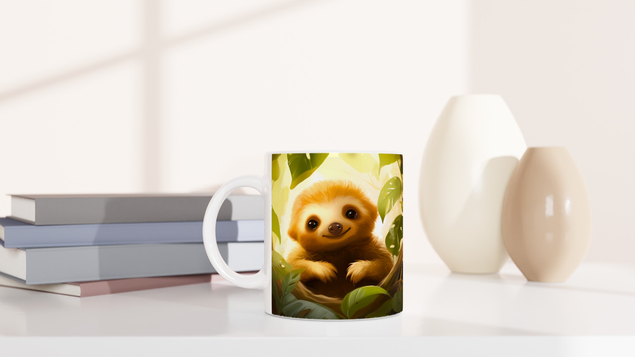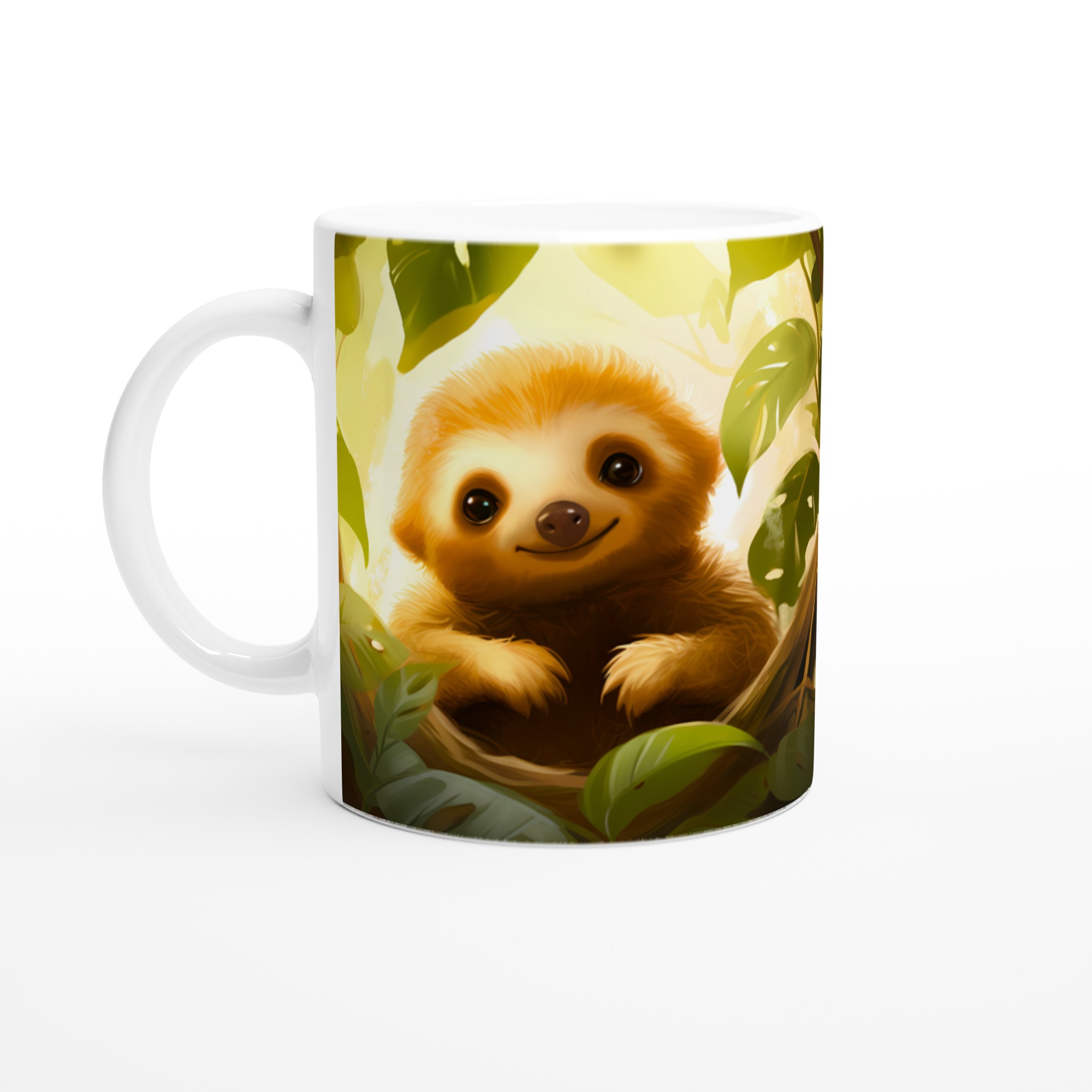 Starta dagen med ett leende med denna bedårande keramiska mugg, prydd med ett förtrollande motiv av en söt liten sengångare i en lummig djungel. Den soliga, inbjudande stämningen och den glada lilla varelsen gör varje klunk till en liten flykt till en lugn oas. Den här stilrena muggen blir snabbt en vardagsfavorit, perfekt för morgonkaffet, kvällens varma choklad eller när du bara vill njuta av en kopp te.