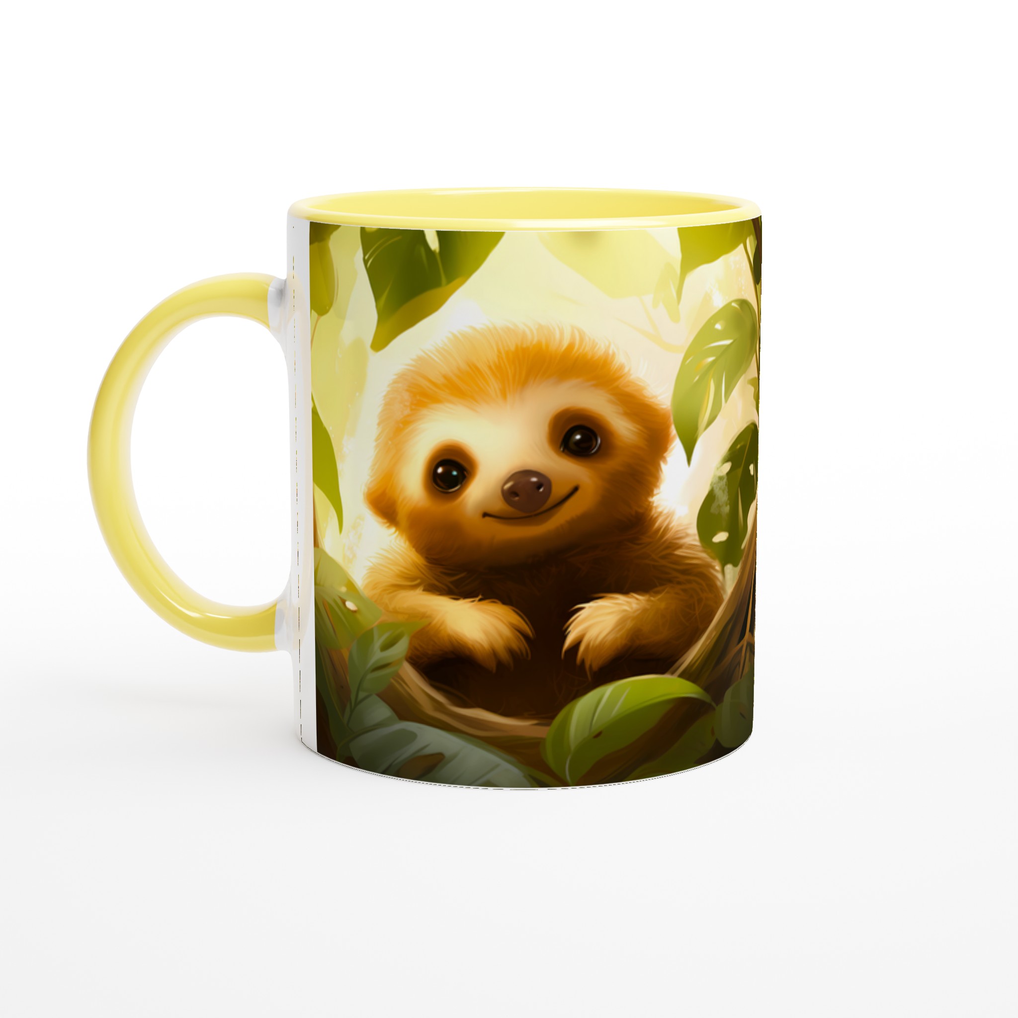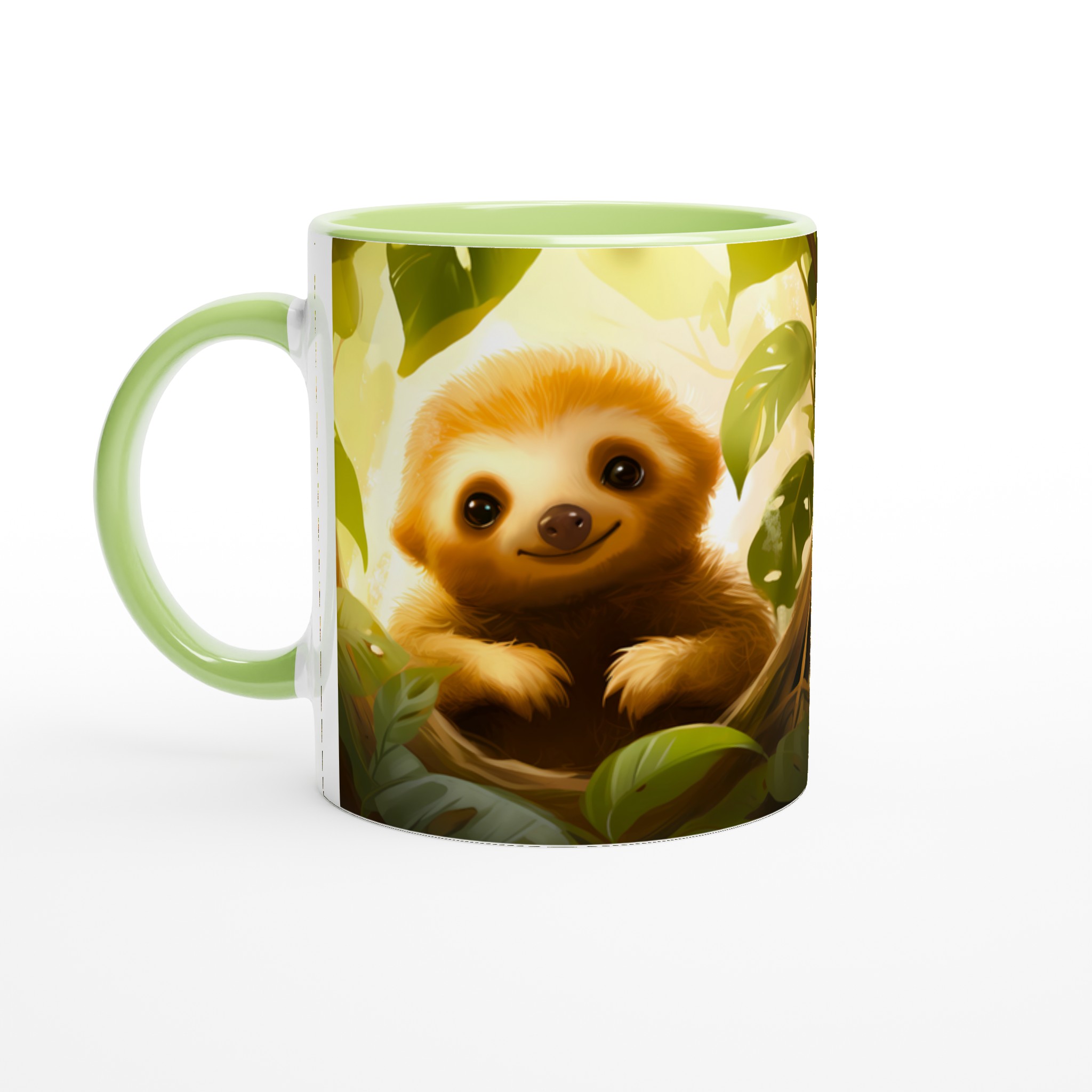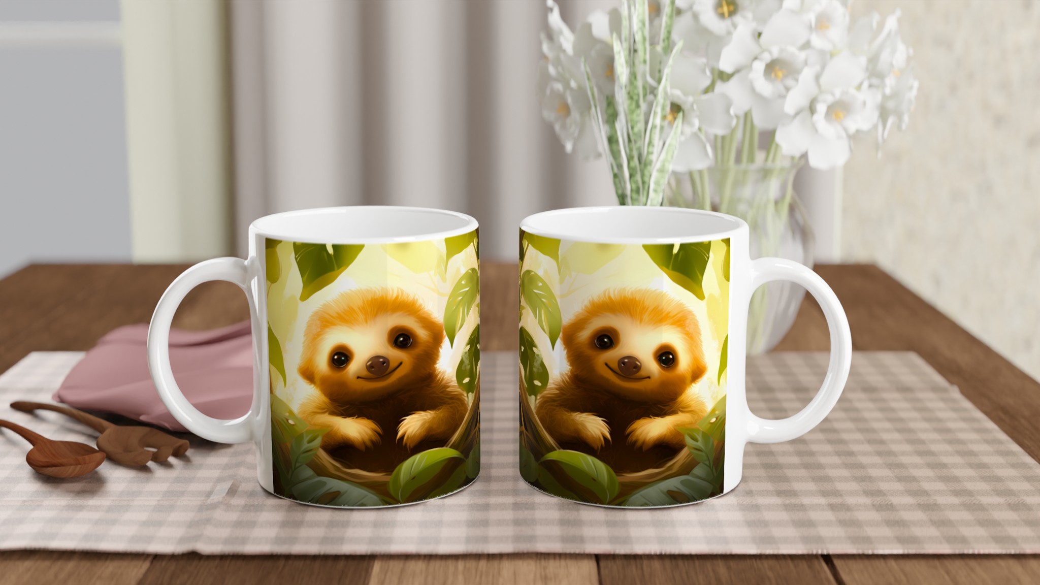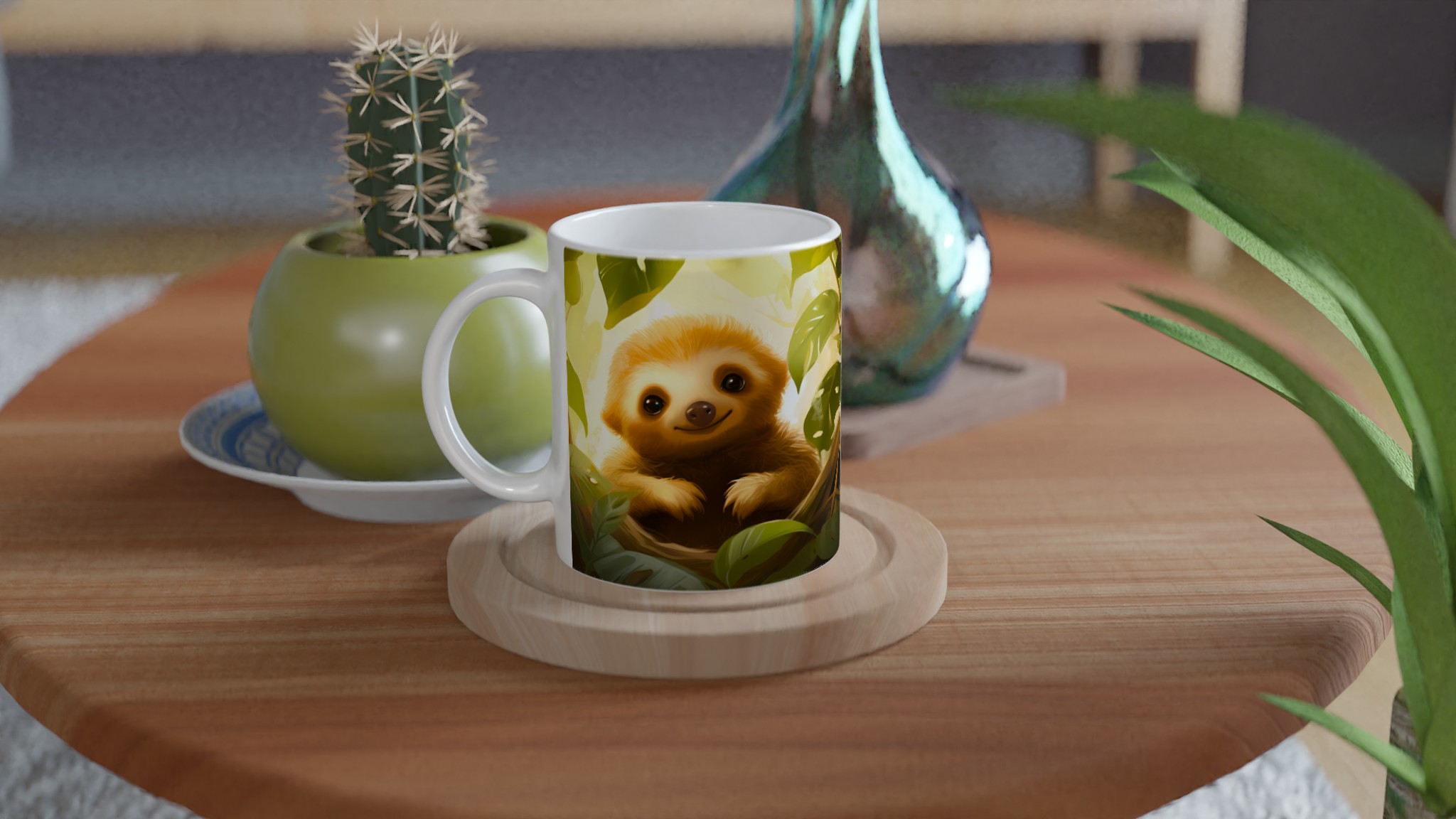 Starta dagen med ett leende med denna bedårande keramiska mugg, prydd med ett förtrollande motiv av en söt liten sengångare i en lummig djungel. Den soliga, inbjudande stämningen och den glada lilla varelsen gör varje klunk till en liten flykt till en lugn oas. Den här stilrena muggen blir snabbt en vardagsfavorit, perfekt för morgonkaffet, kvällens varma choklad eller när du bara vill njuta av en kopp te.