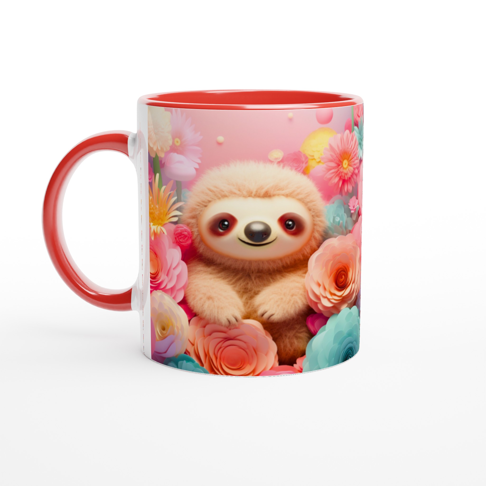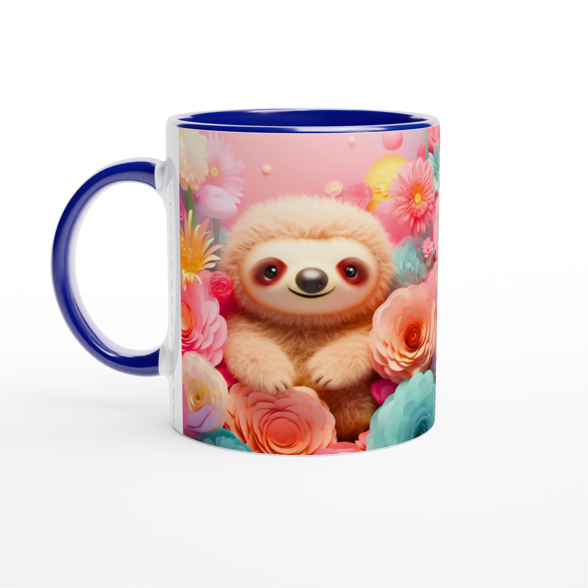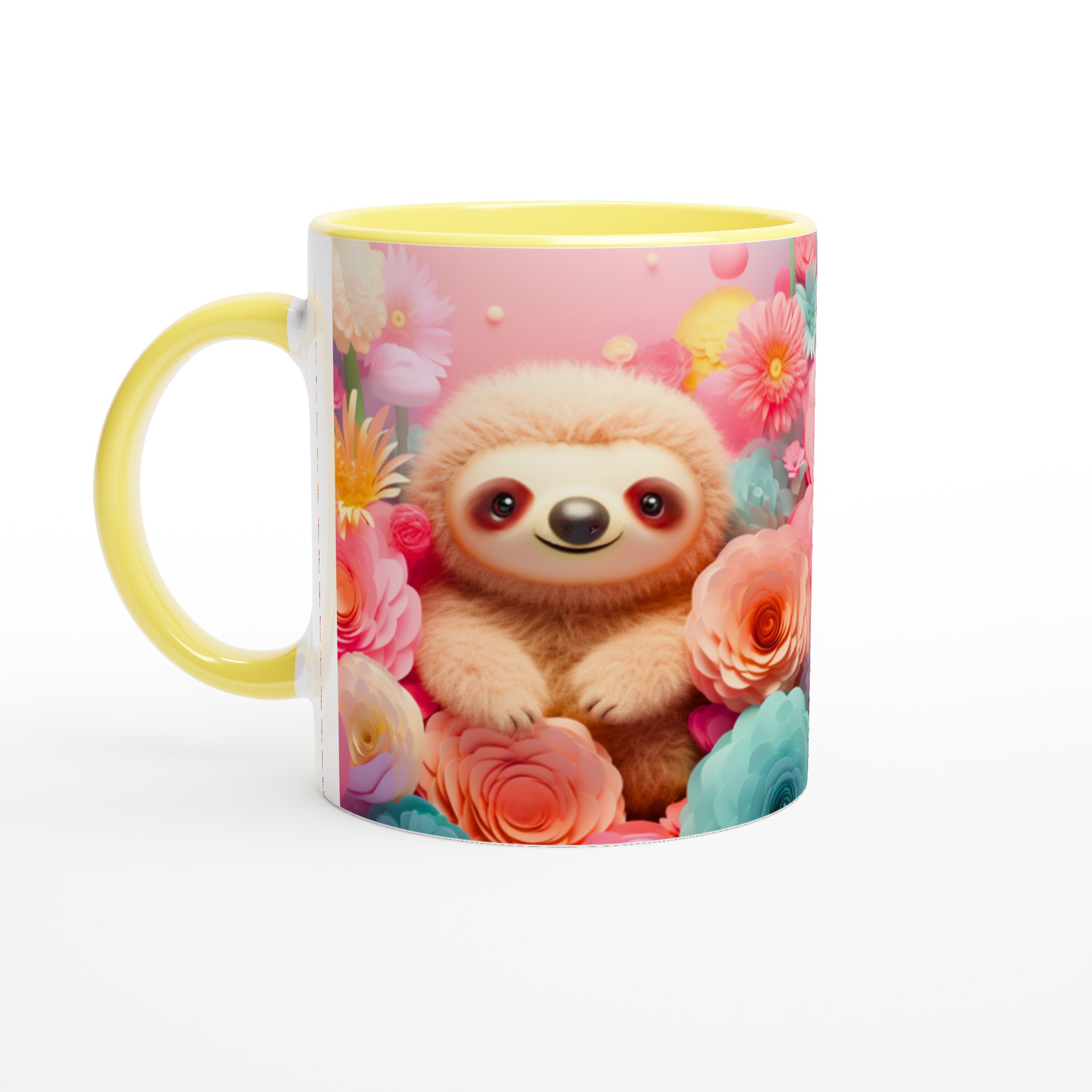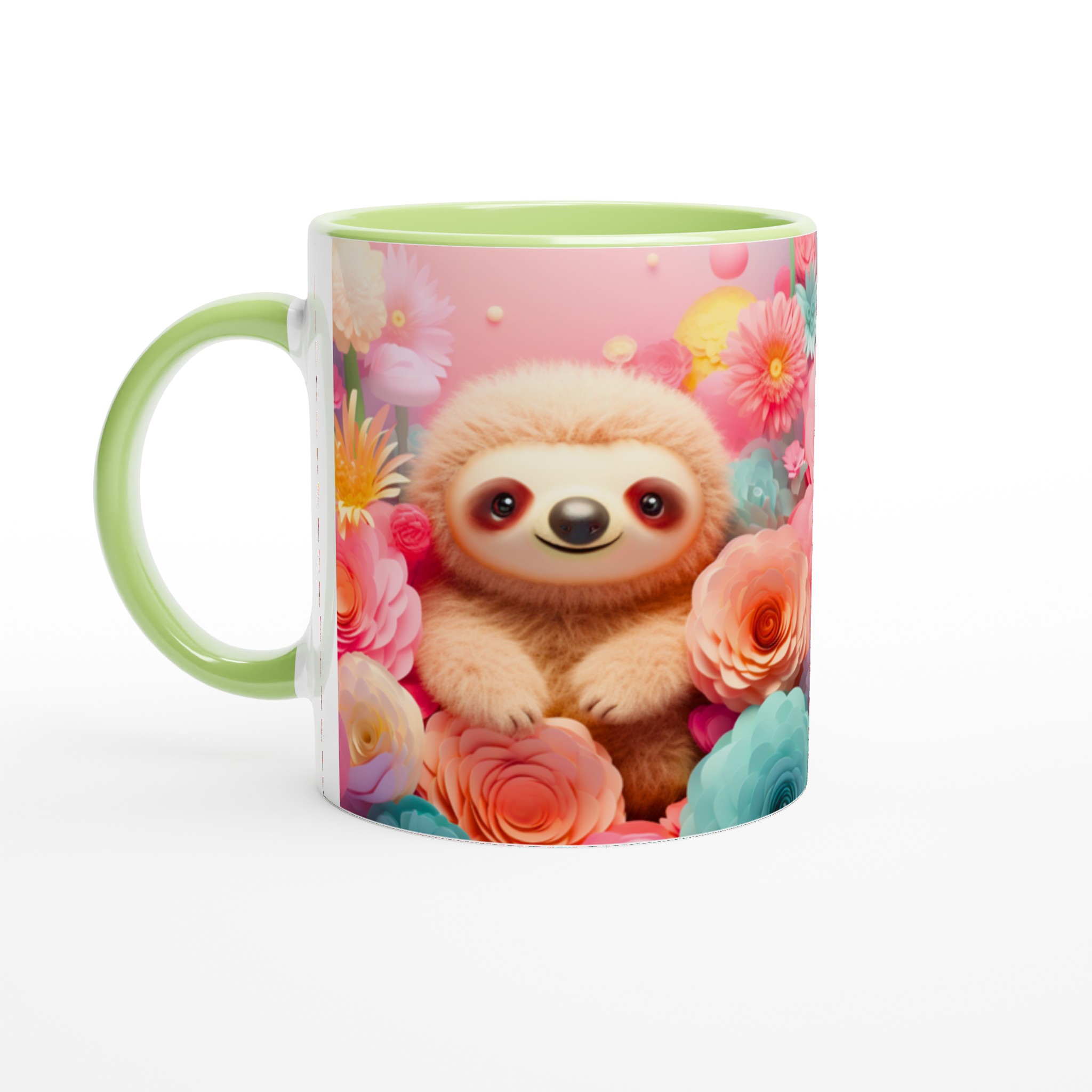 Vakna upp med ett leende med denna bedårande keramiska mugg, prydd med en söt och lugn liten lättja omgiven av pastellfärgade blommor. Denna mugg är designad för att sprida glädje och blir snabbt en vardagsfavorit. Perfekt för morgonkaffet, kvällens varma choklad eller när du bara vill njuta av en kopp te. Den blanka vita ytan gör att trycken framhävs med klara och levande färger, som håller sig fina även efter många turer i mikron och diskmaskinen.