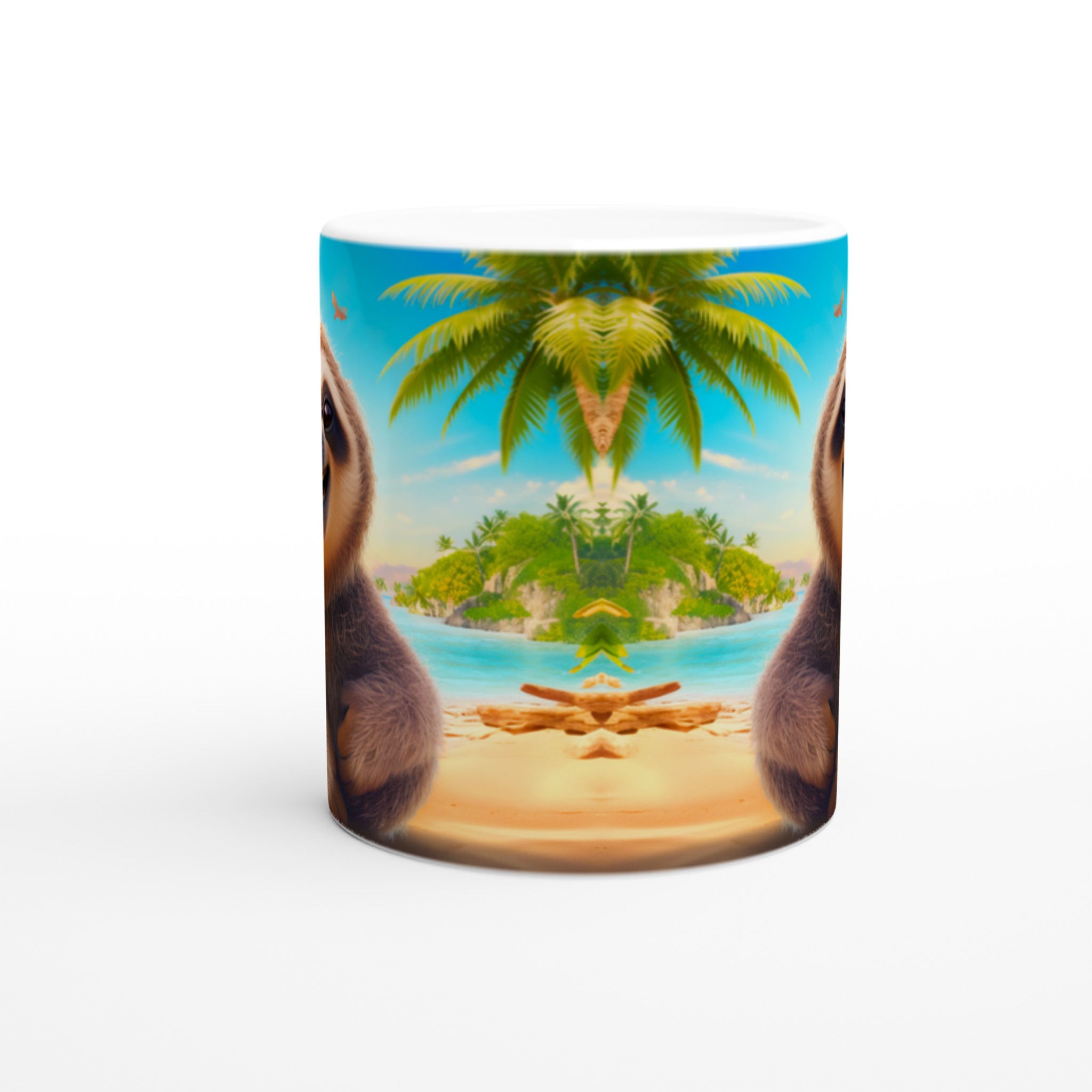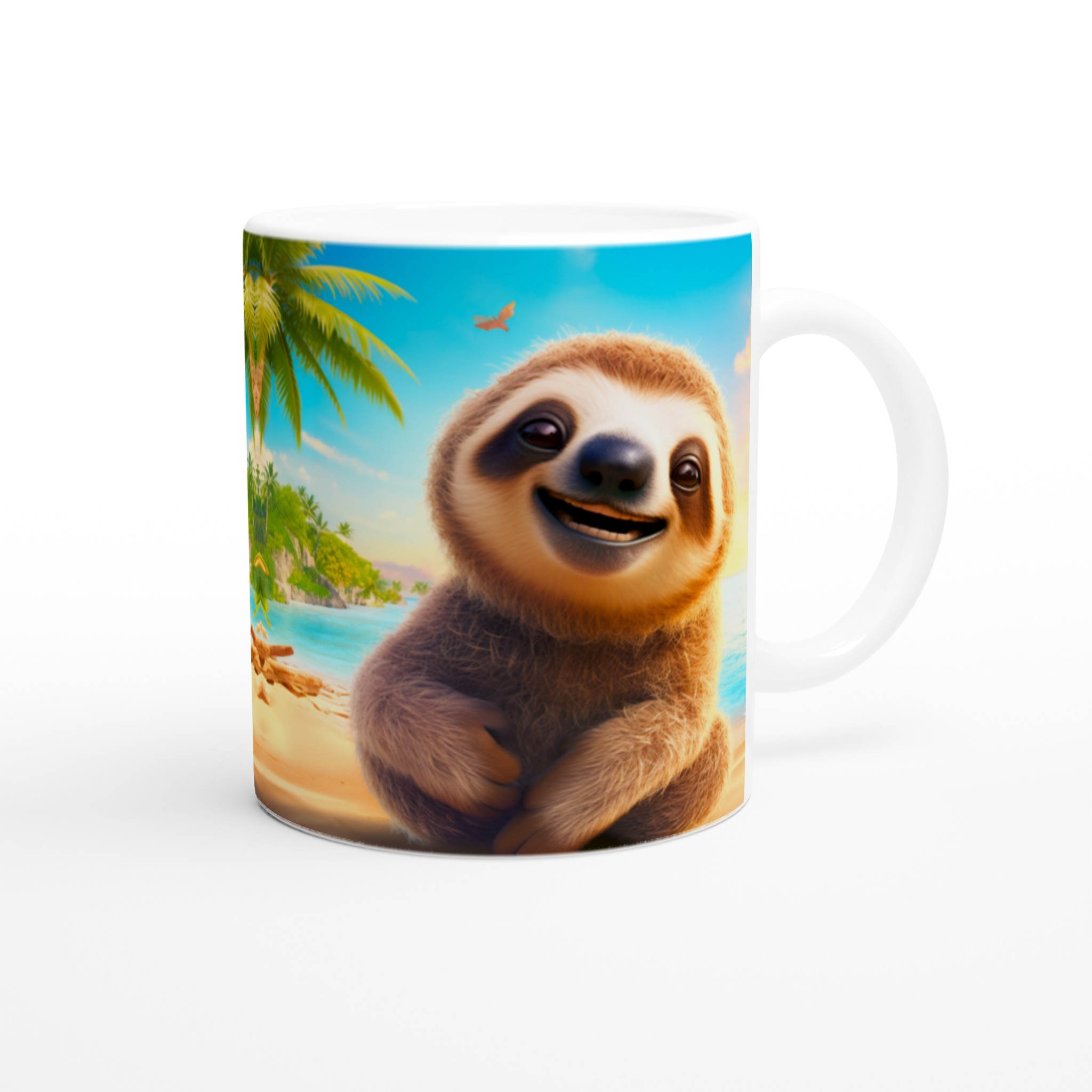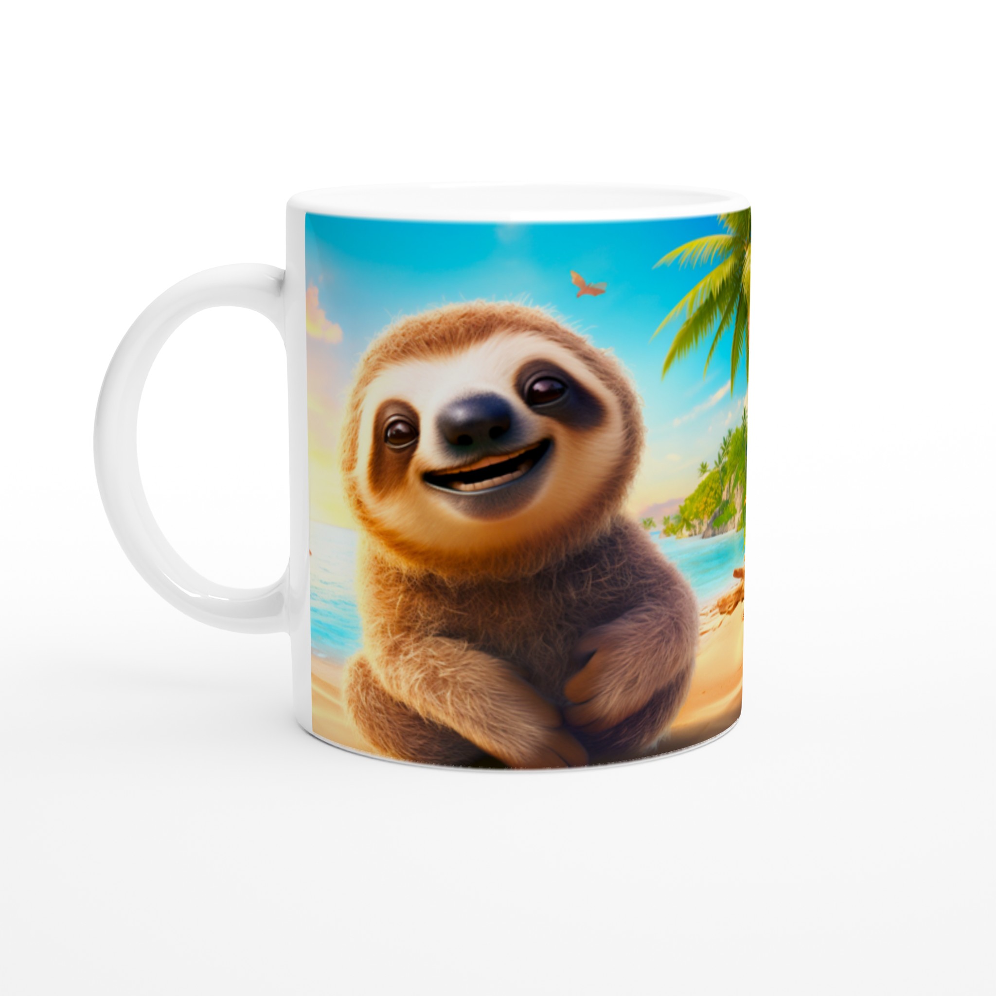 Denna charmiga keramiska mugg med vår bedårande, leende sengångare på en solig strand blir snabbt en vardagsfavorit. Föreställ dig att börja dagen med morgonkaffet, avnjuta kvällens varma choklad eller bara koppla av med en kopp te medan den glada sengångaren sprider tropisk glädje. Den blanka ytan framhäver trycket med klara och levande färger, som håller sig fina även efter många turer i mikron och diskmaskinen, vilket gör varje sipp till en mini-semester.
