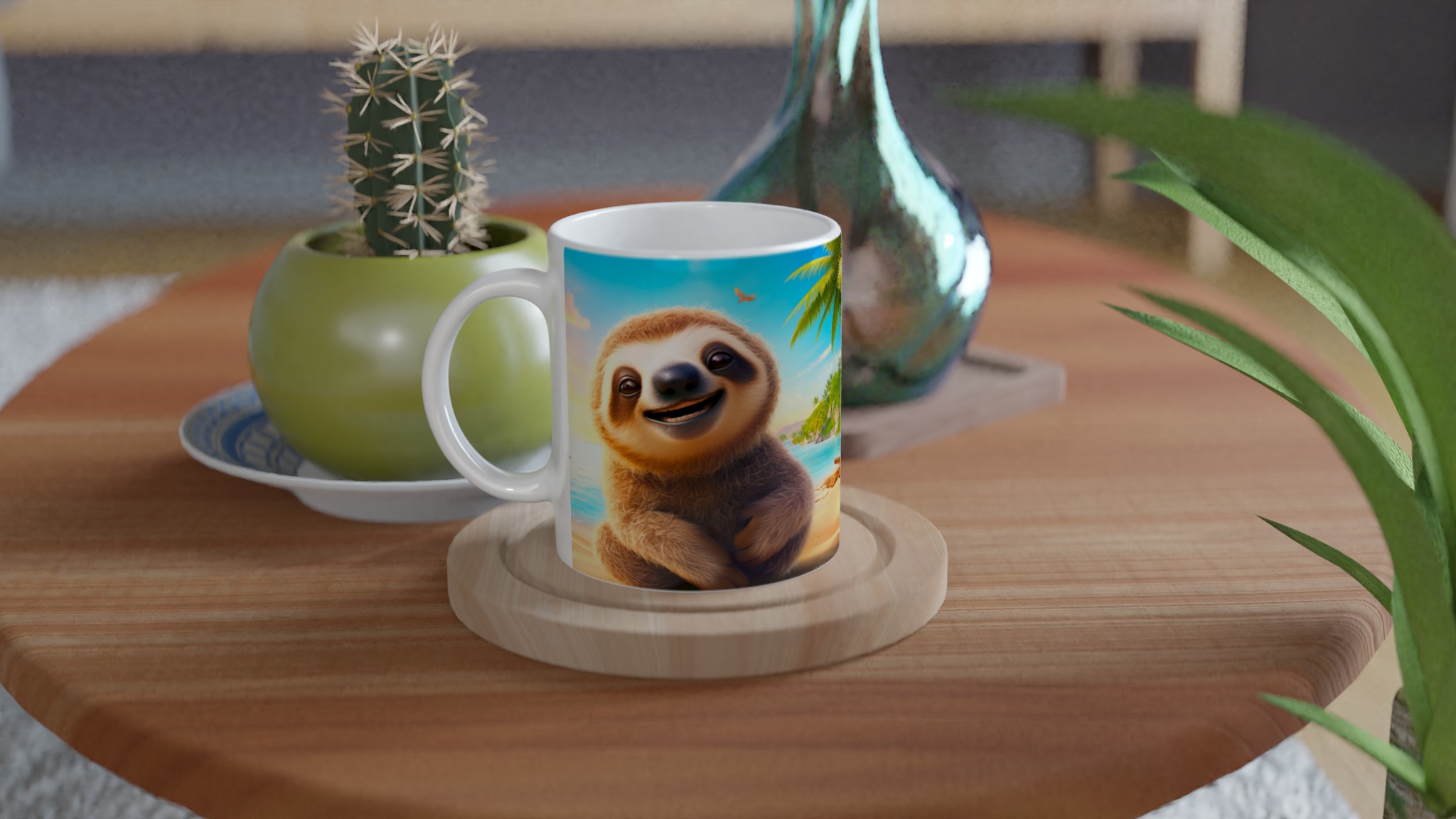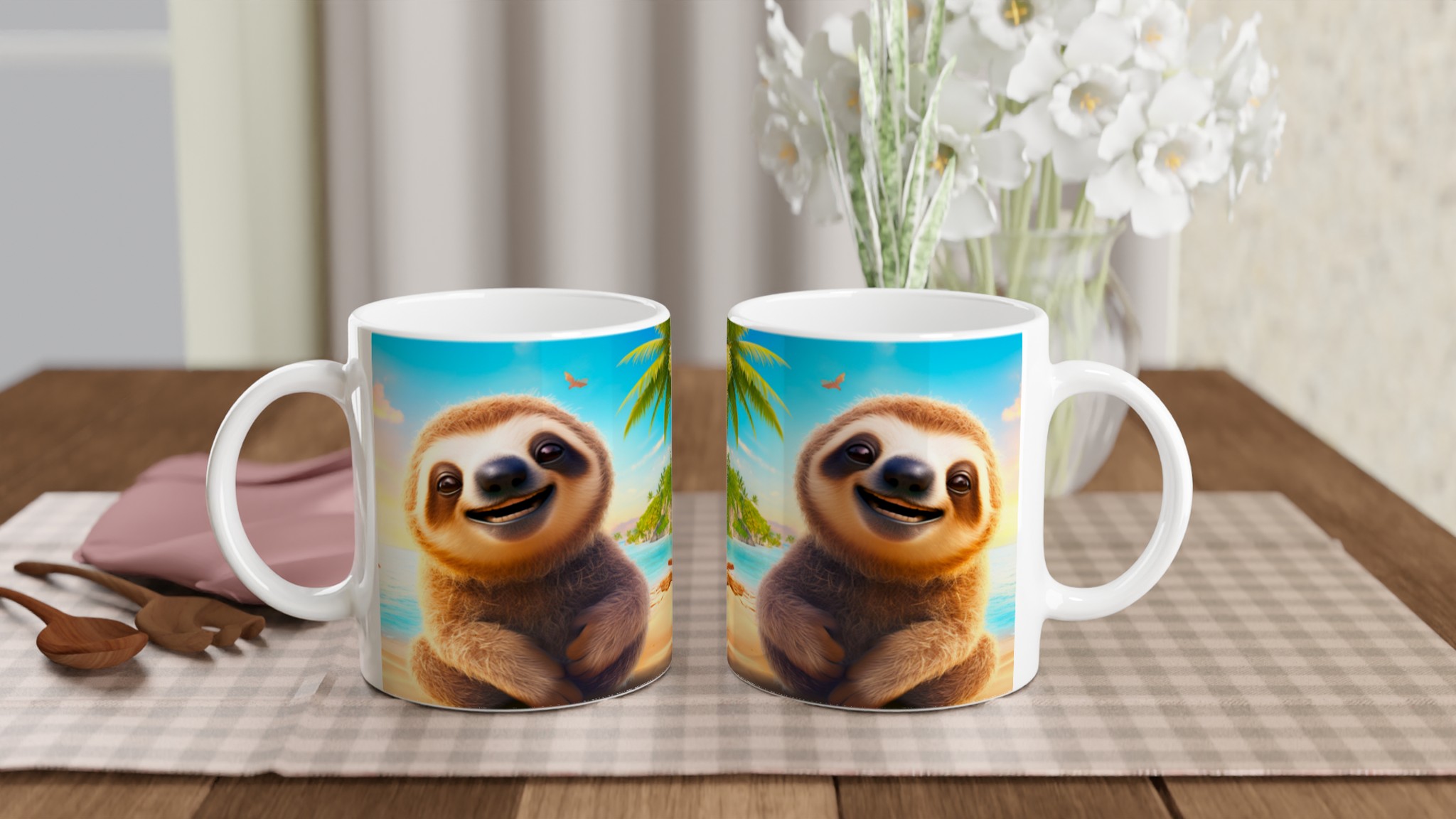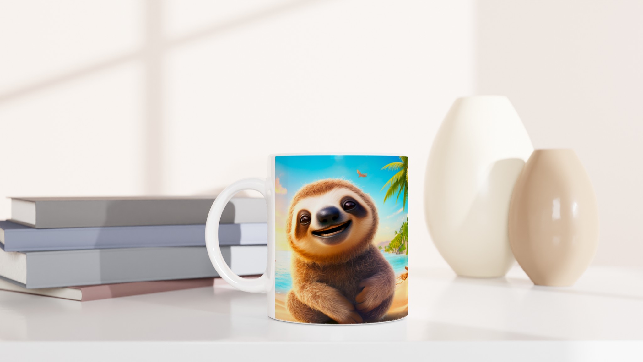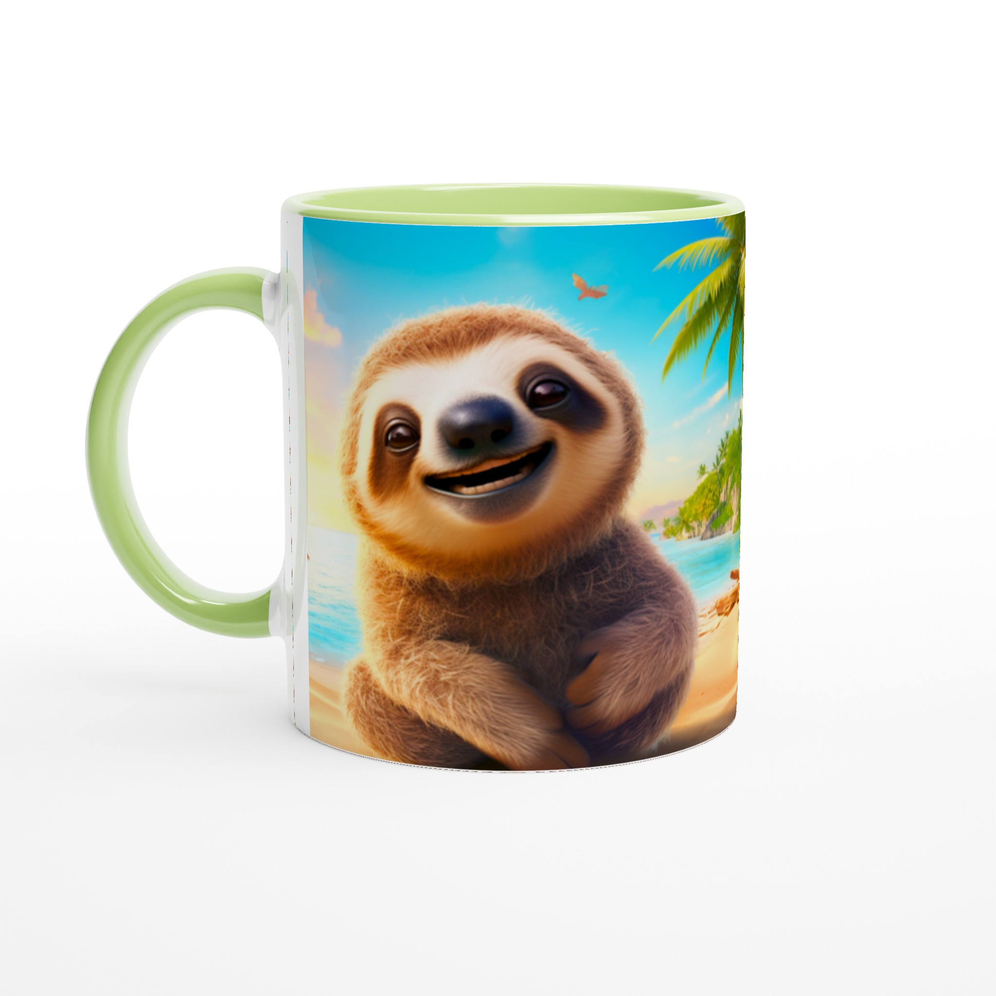 Denna charmiga keramiska mugg med vår bedårande, leende sengångare på en solig strand blir snabbt en vardagsfavorit. Föreställ dig att börja dagen med morgonkaffet, avnjuta kvällens varma choklad eller bara koppla av med en kopp te medan den glada sengångaren sprider tropisk glädje. Den blanka ytan framhäver trycket med klara och levande färger, som håller sig fina även efter många turer i mikron och diskmaskinen, vilket gör varje sipp till en mini-semester.