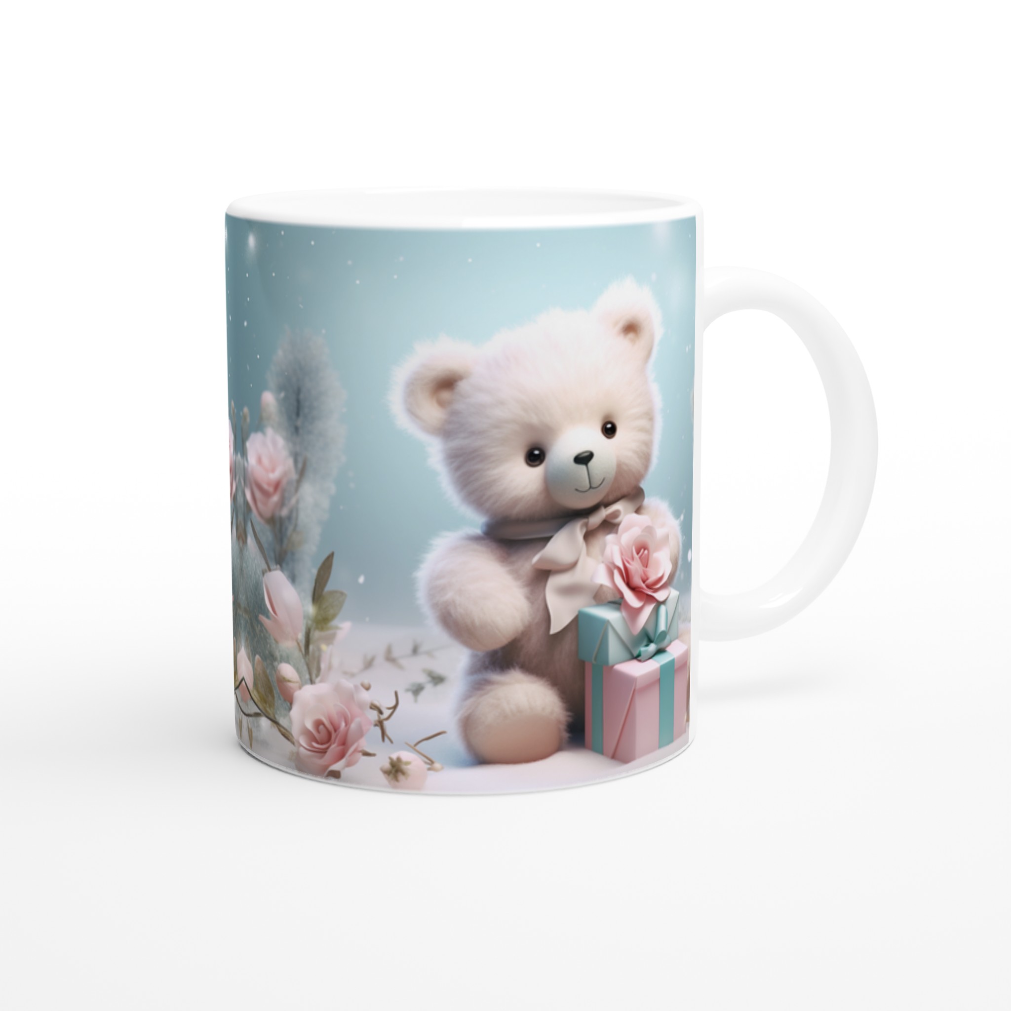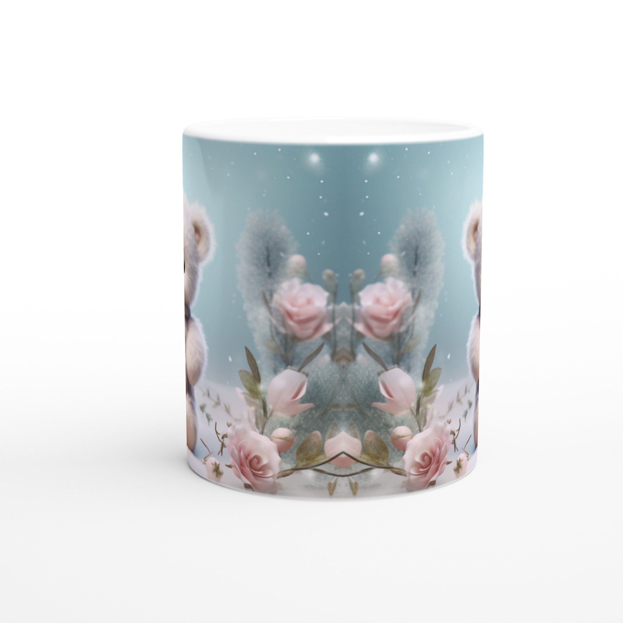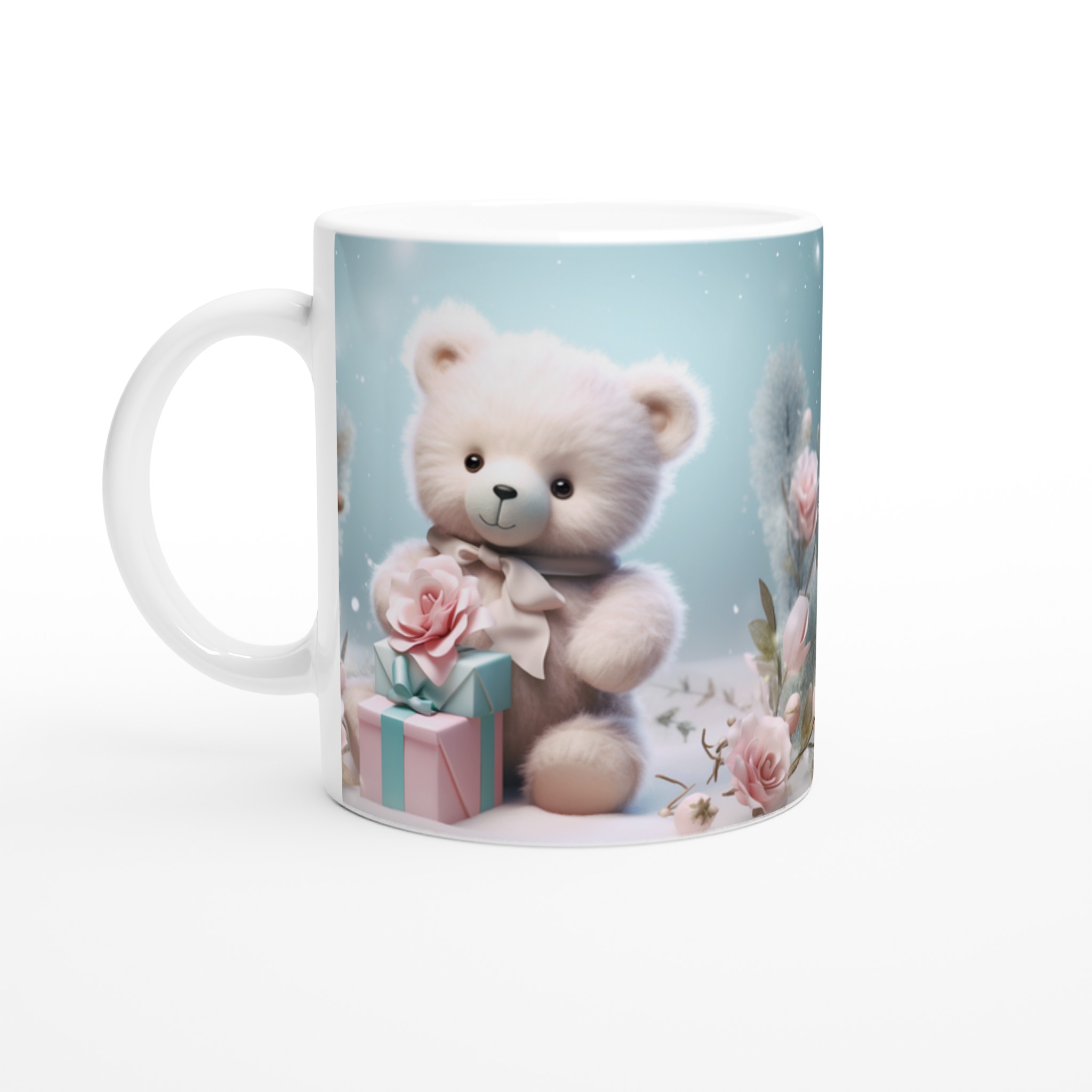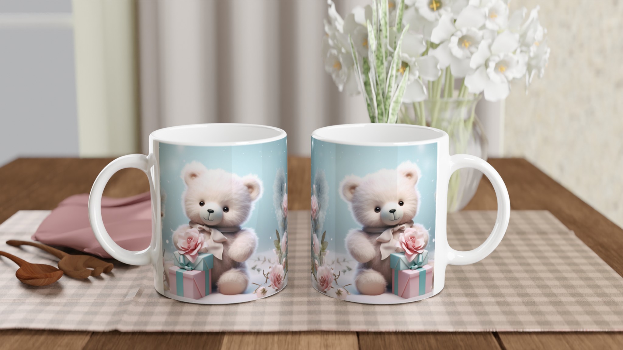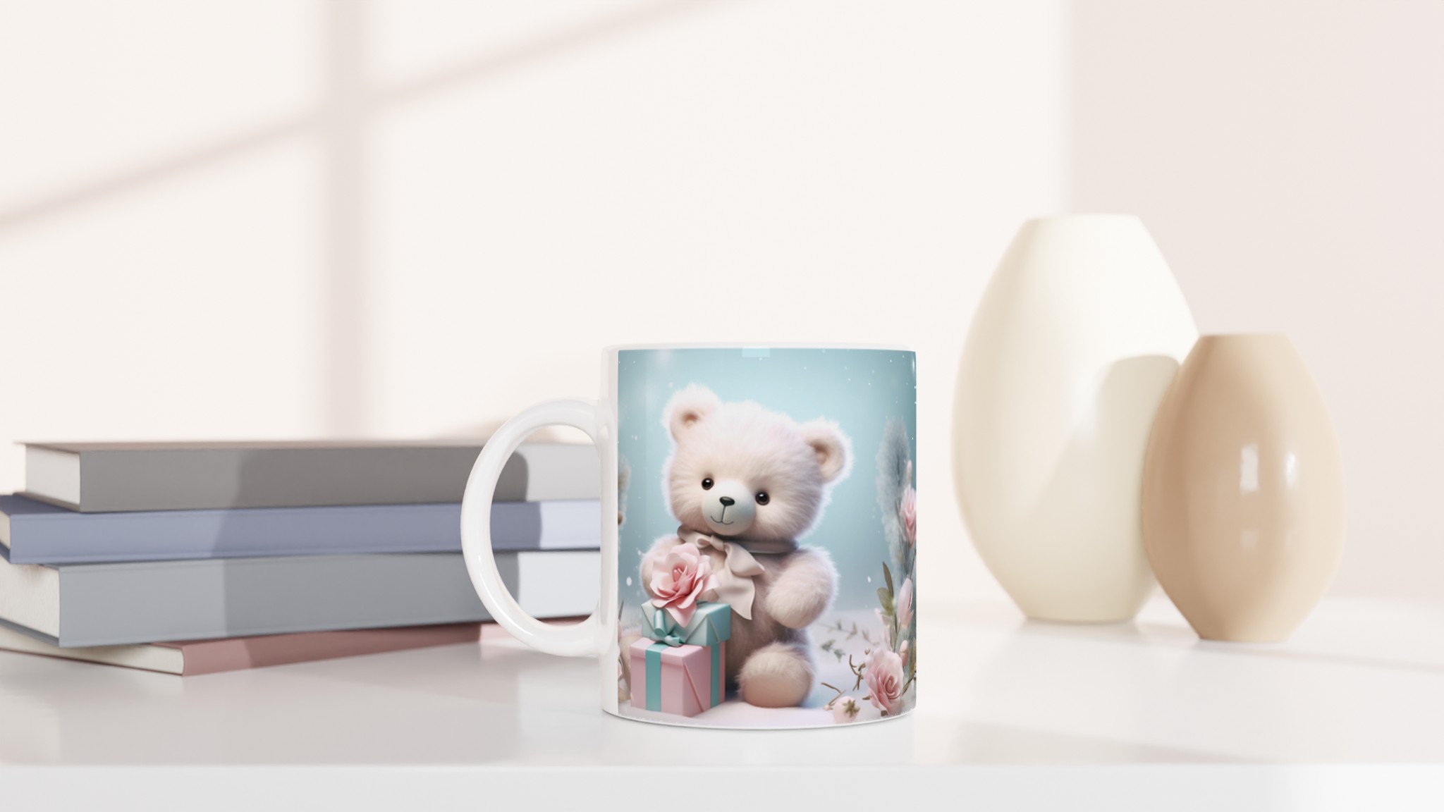 Låt dig förtrollas av denna bedårande keramiska mugg, prydd med en oemotståndligt söt nallebjörn i en drömsk, pastellblå miljö. Perfekt för morgonkaffet, kvällens varma choklad eller när du bara vill njuta av en kopp te, den här muggen blir snabbt en älskad favorit. Dess blanka yta framhäver det charmiga motivet med klara och levande färger, som håller sig fina även efter många turer i mikron och diskmaskinen.