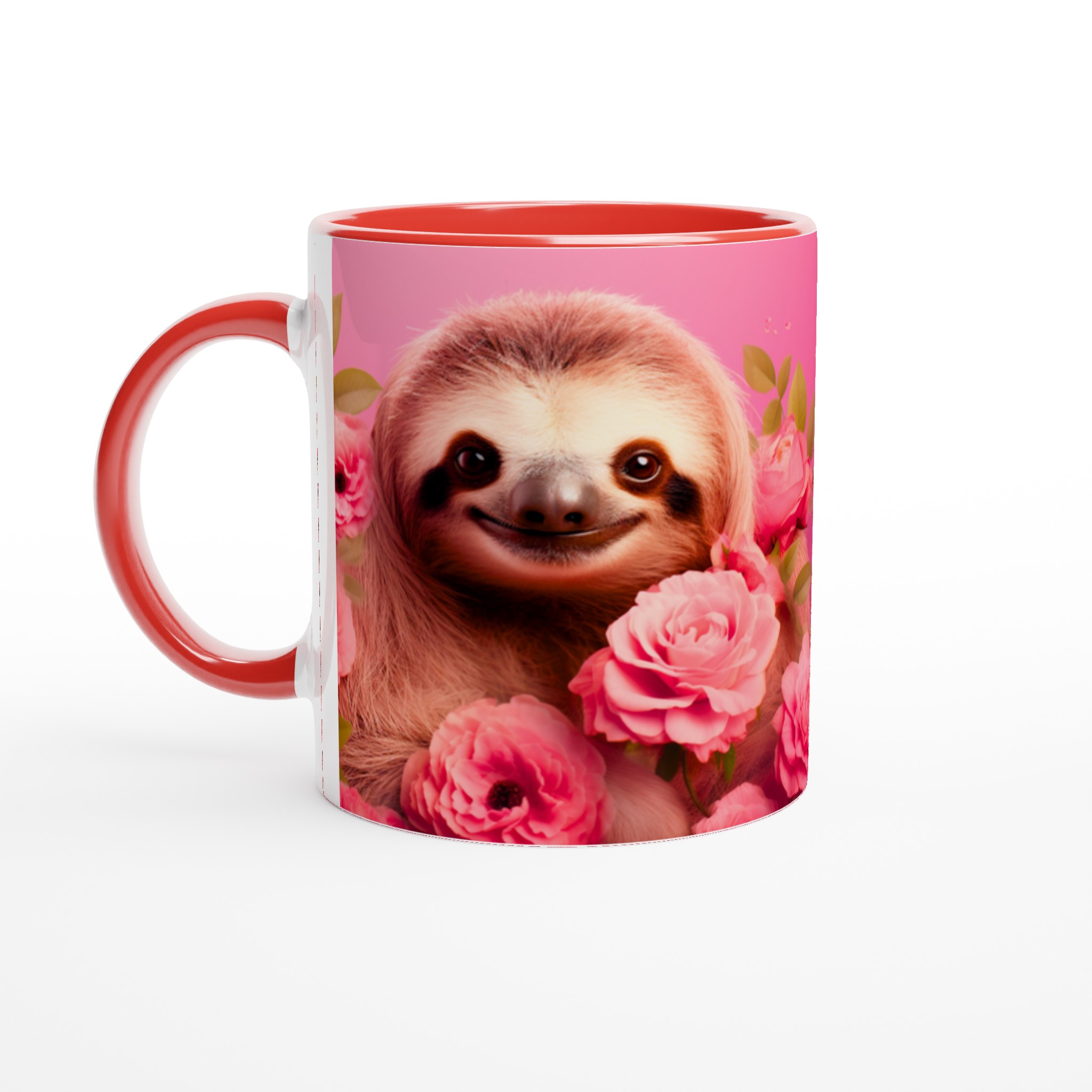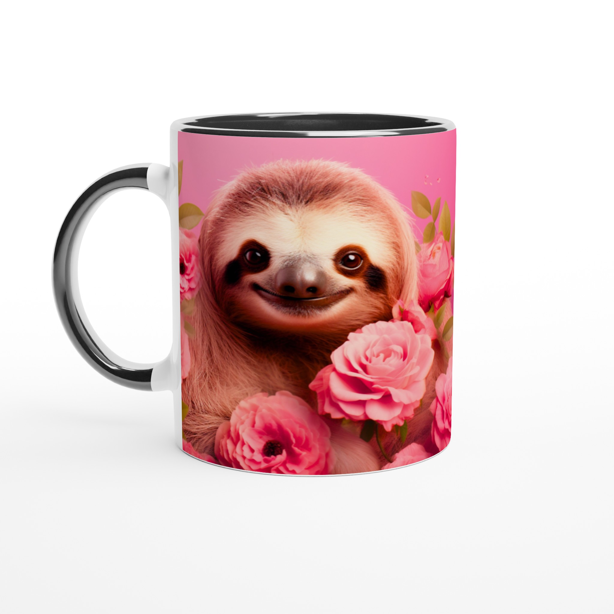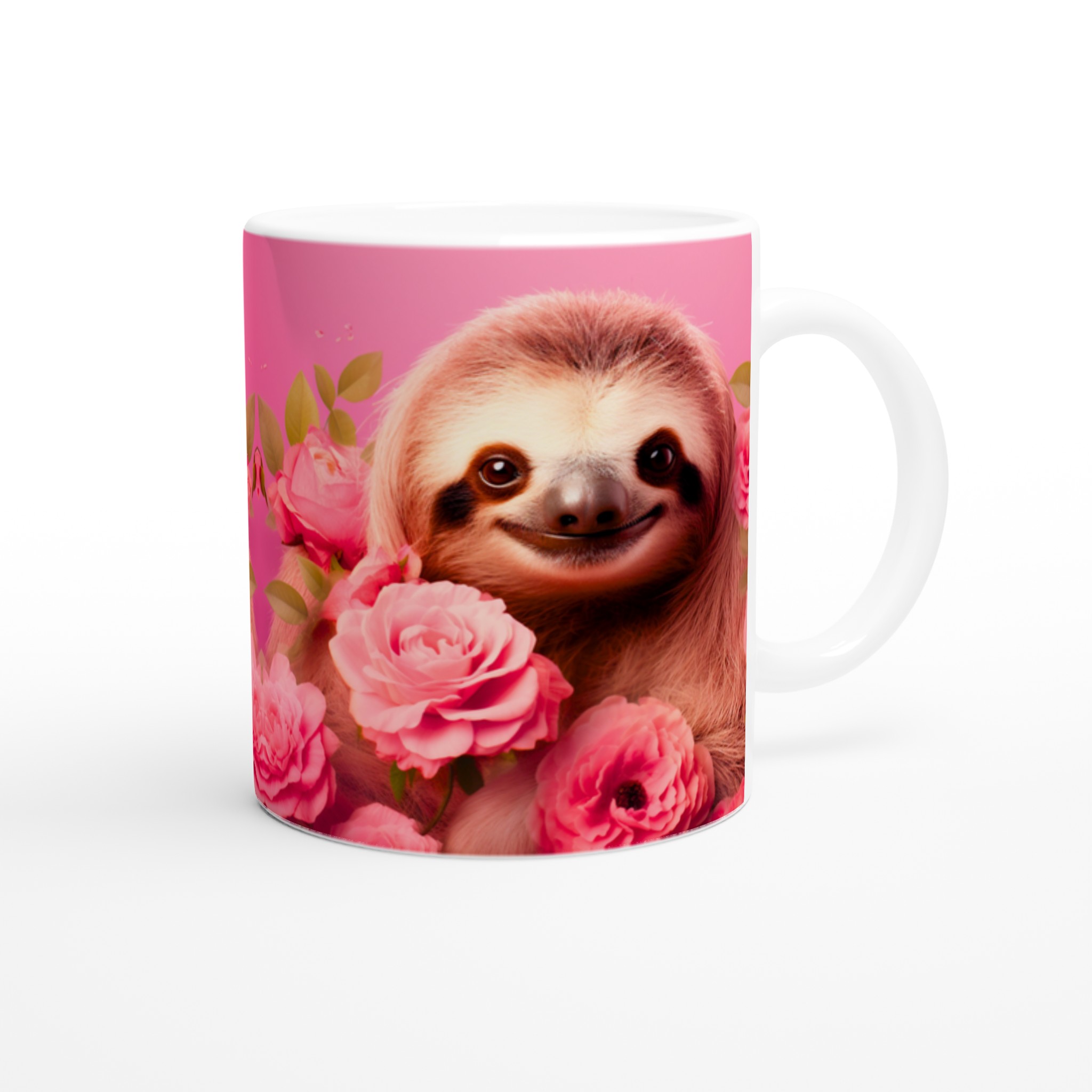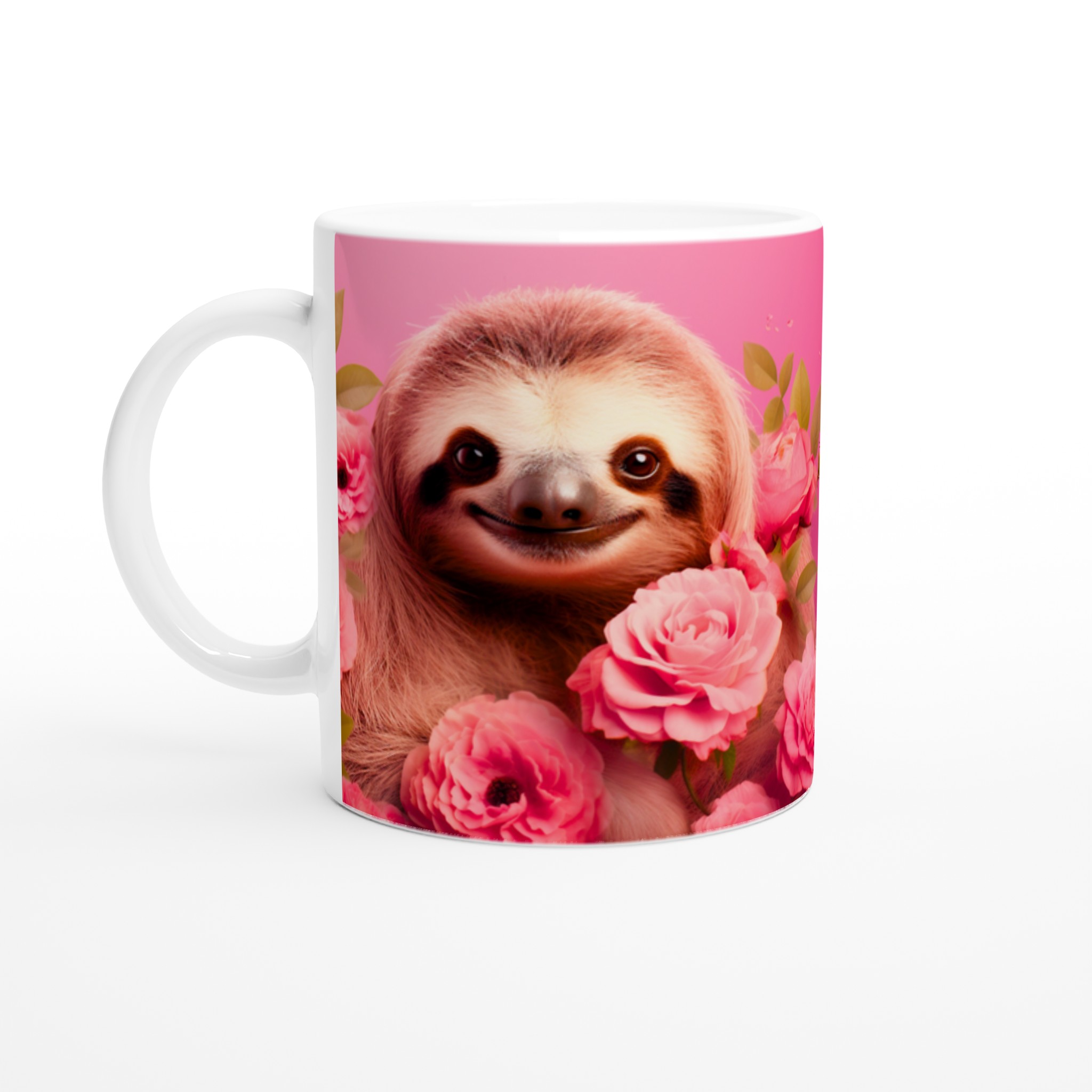 Vakna upp med ett leende varje dag! Den här bedårande keramiska muggen, prydd med en söt sengångare omgiven av romantiska rosa rosor, blir snabbt en vardagsfavorit. Perfekt för morgonkaffet, kvällens varma choklad eller när du bara vill njuta av en kopp te. Den blanka vita ytan gör att trycken framhävs med klara och levande färger, som håller sig fina även efter många turer i mikron och diskmaskinen.