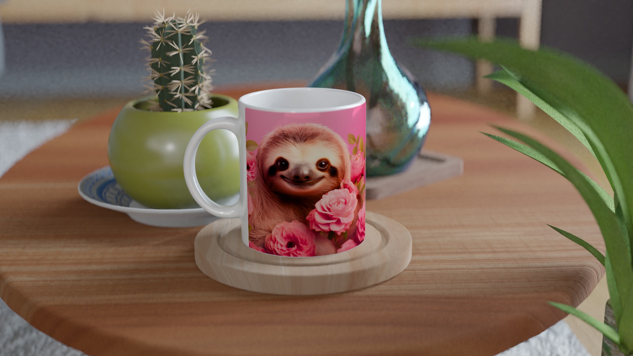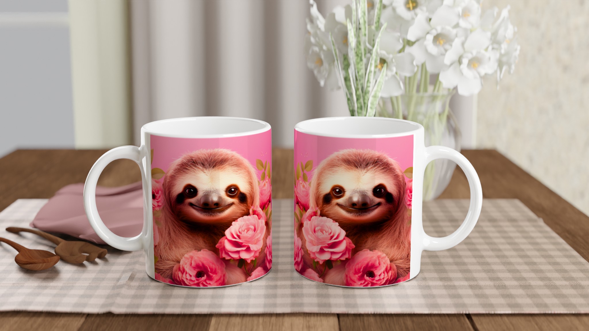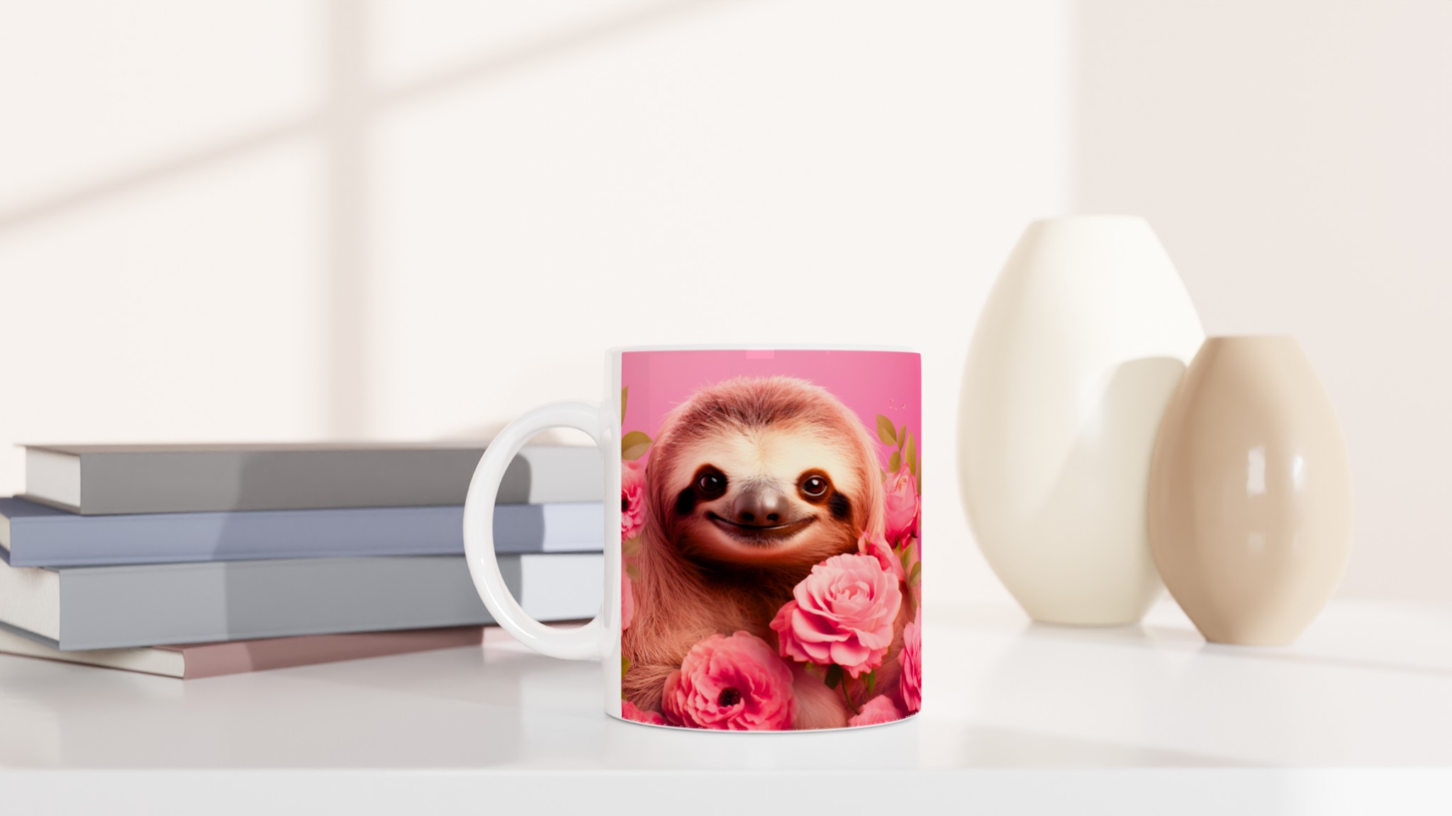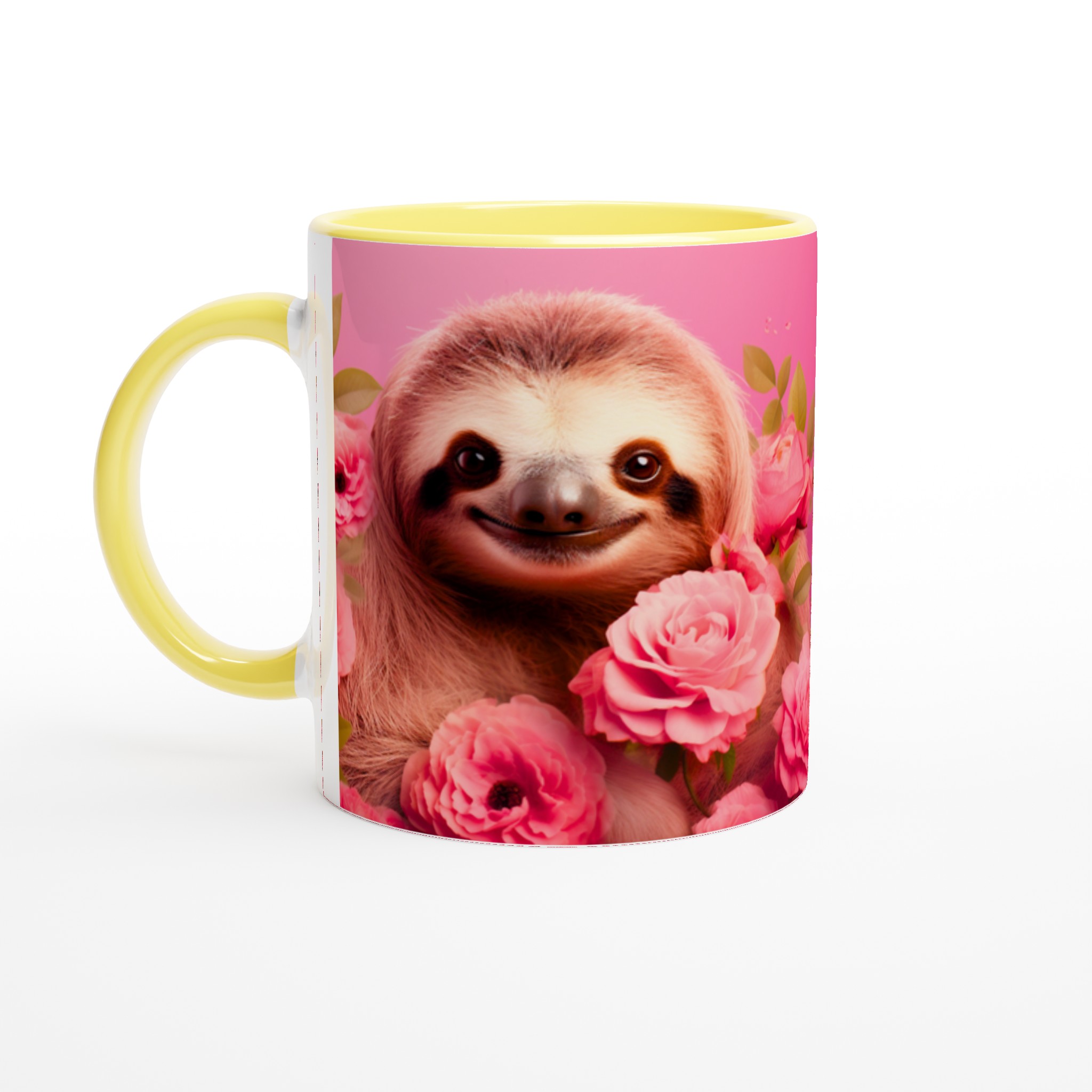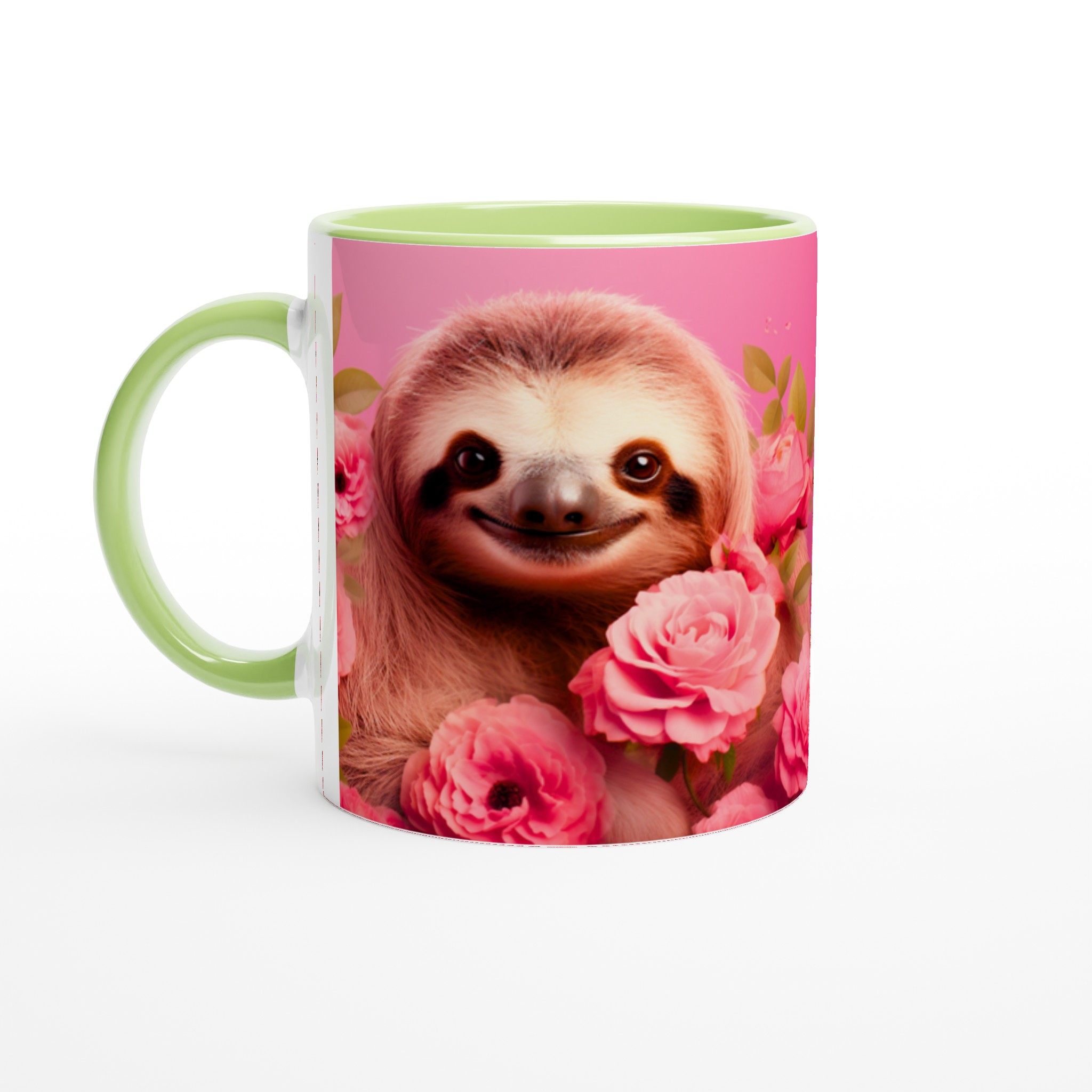 Vakna upp med ett leende varje dag! Den här bedårande keramiska muggen, prydd med en söt sengångare omgiven av romantiska rosa rosor, blir snabbt en vardagsfavorit. Perfekt för morgonkaffet, kvällens varma choklad eller när du bara vill njuta av en kopp te. Den blanka vita ytan gör att trycken framhävs med klara och levande färger, som håller sig fina även efter många turer i mikron och diskmaskinen.
