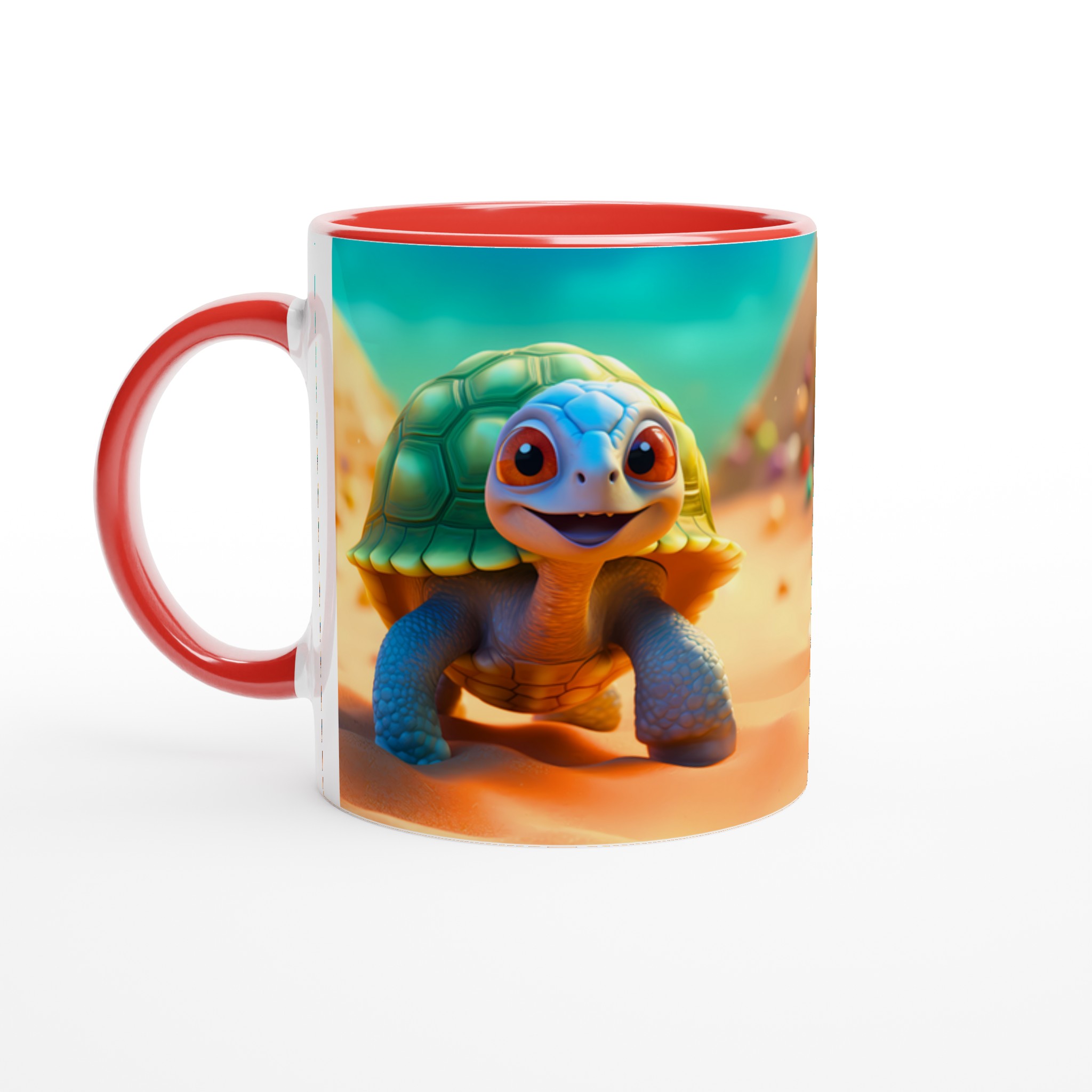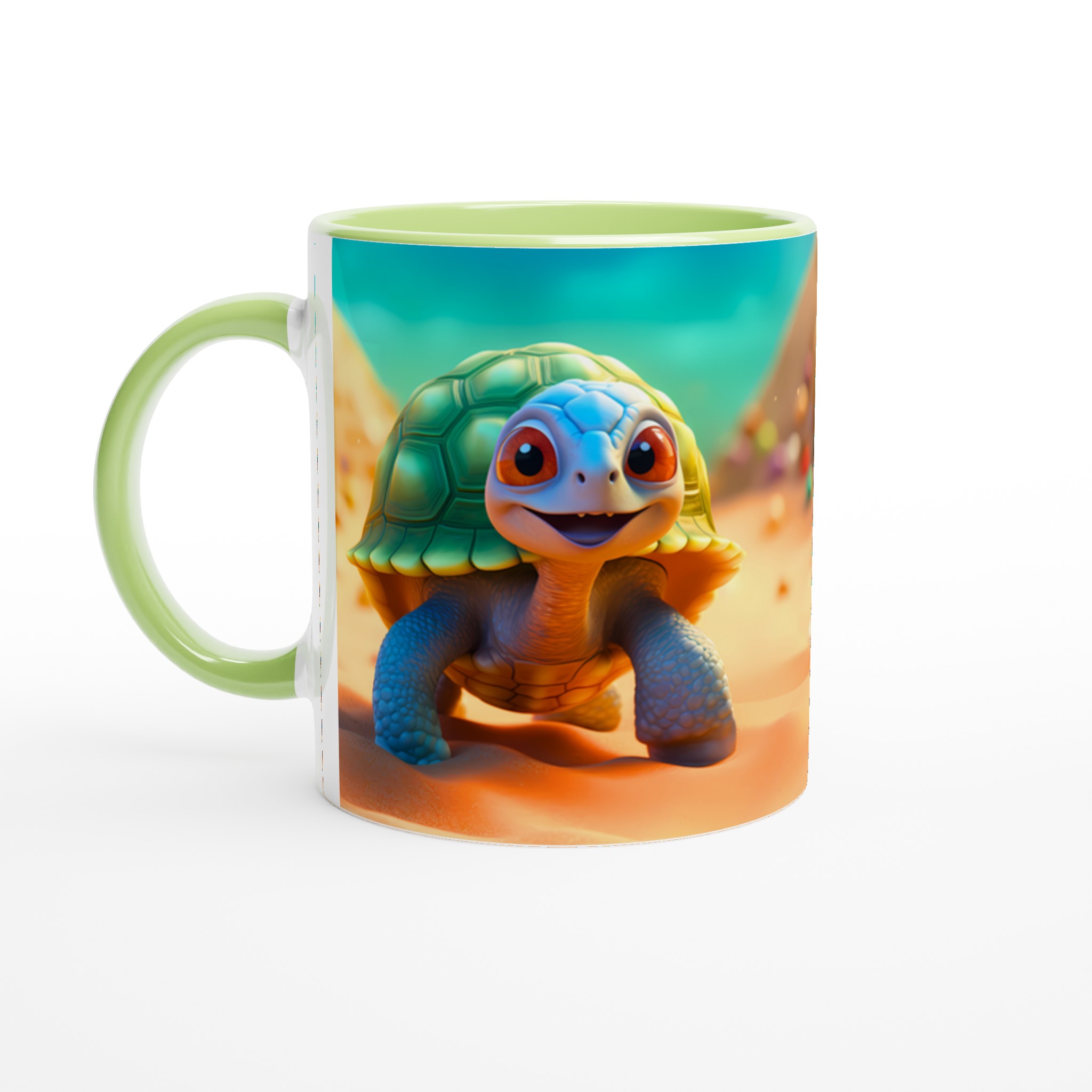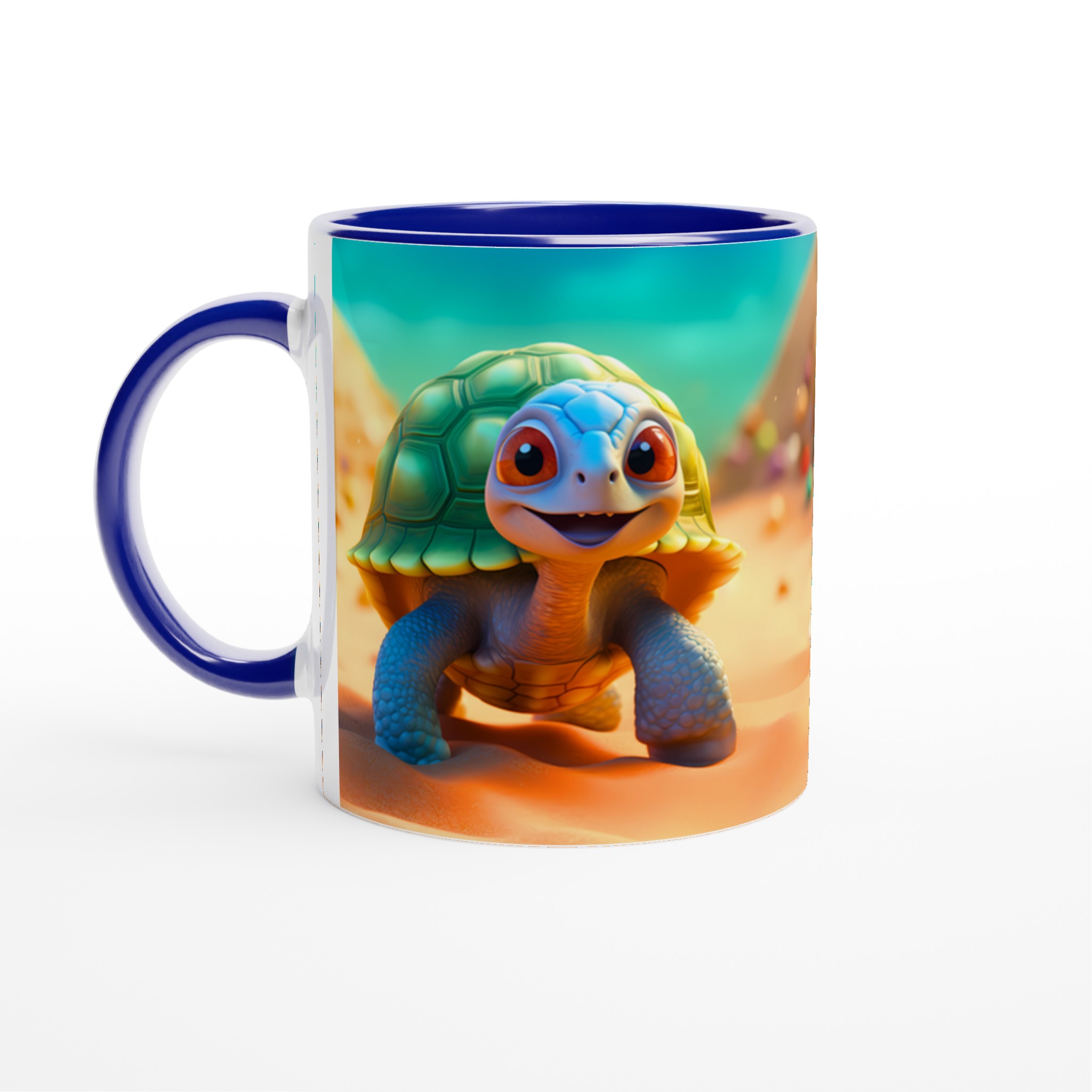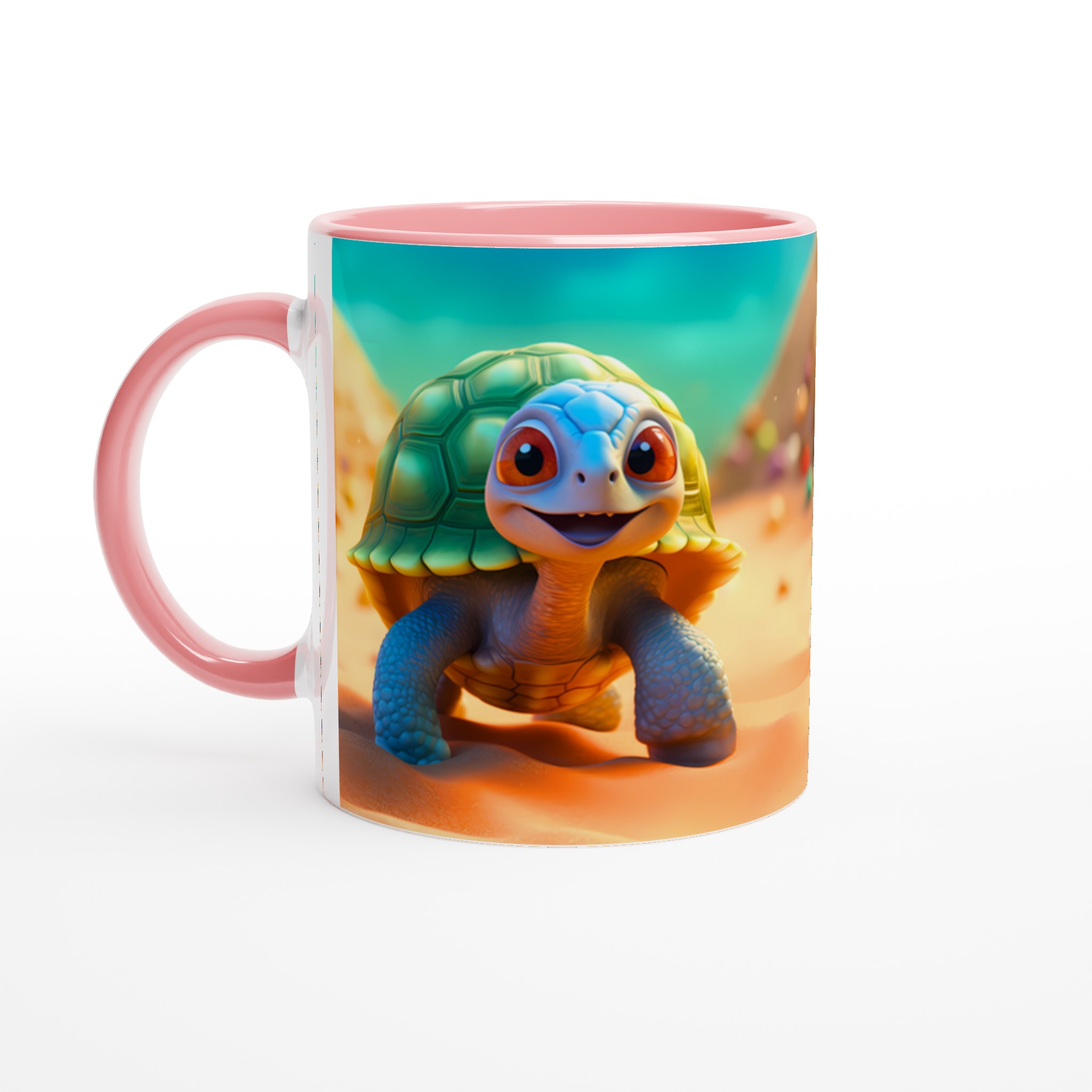 Låt den här charmiga keramiska muggen med sin söta sköldpaddsdesign lysa upp din dag! Perfekt för morgonkaffet, kvällens varma choklad eller när du bara vill njuta av en kopp te. Den blanka vita ytan gör att trycket med den glada sköldpaddan framhävs med klara och levande färger, som håller sig fina även efter många turer i mikron och diskmaskinen. Välj den färg som bäst matchar din stil eller ditt humör, och låt denna lilla vän följa med dig genom dagen.