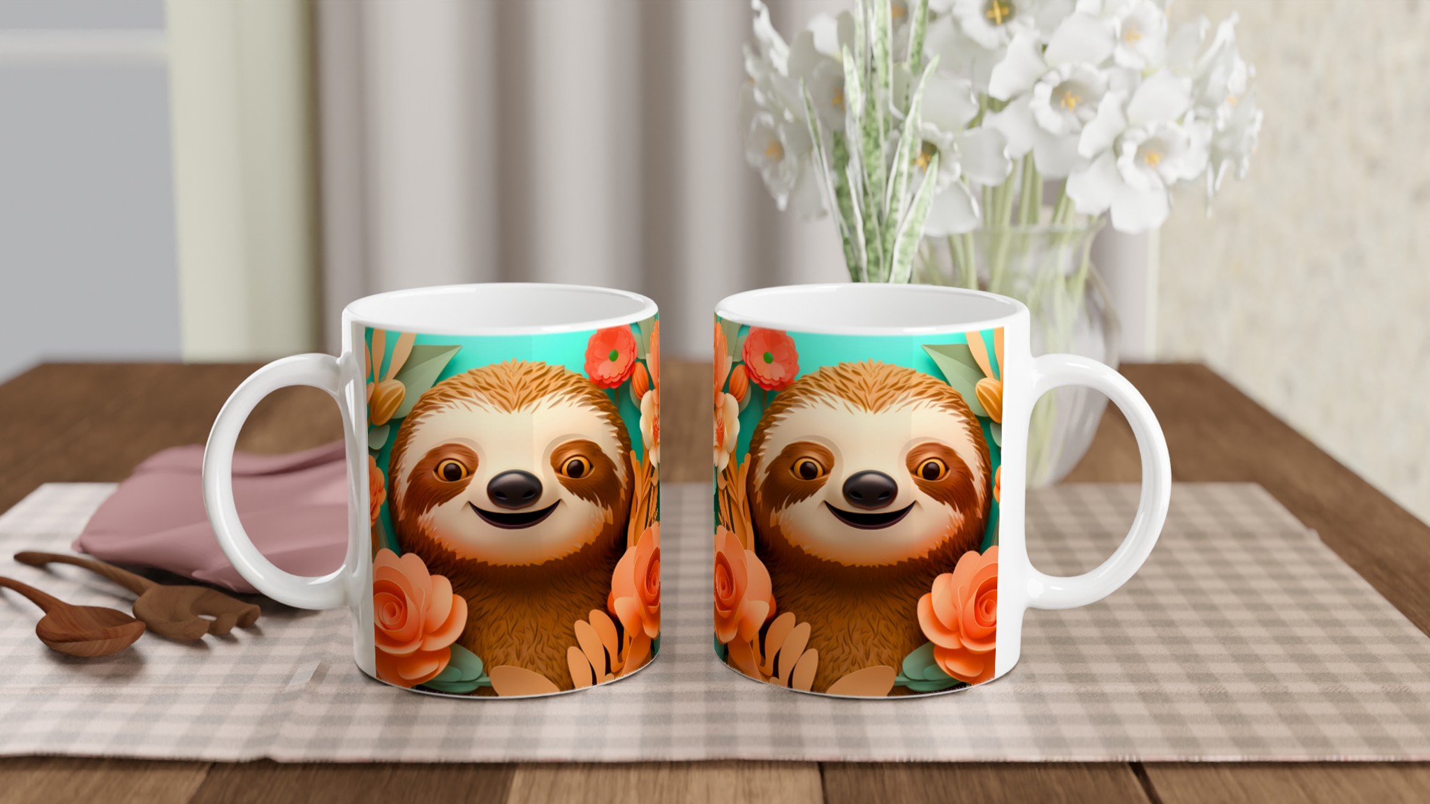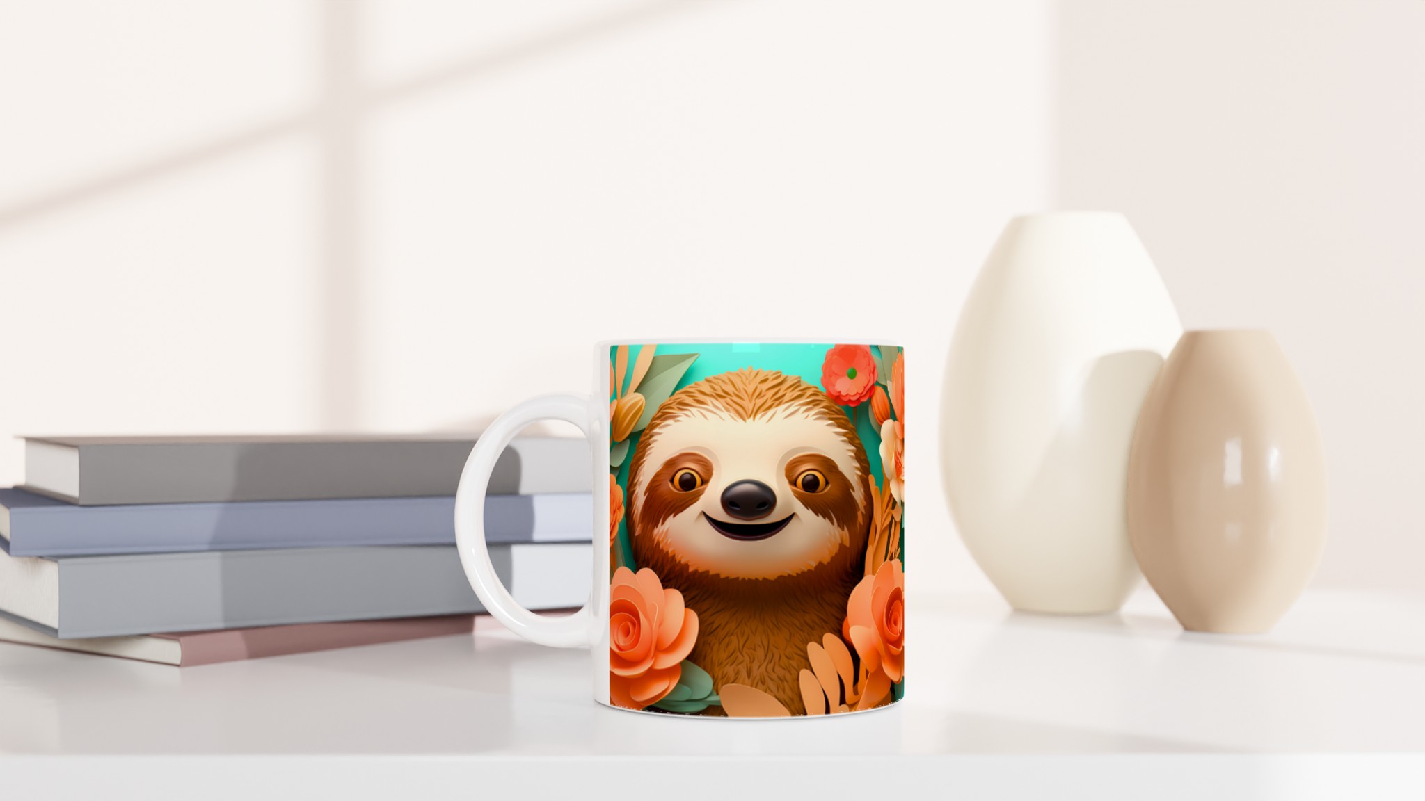Den här stilrena keramiska muggen, prydd med en charmig sengångare omgiven av lekfulla pappersblommor i varma persikotoner, blir snabbt en vardagsfavorit. Perfekt för morgonkaffet, kvällens varma choklad eller när du bara vill njuta av en kopp te i gott sällskap med din nya, glada vän. Den blanka ytan framhäver trycken med klara och levande färger, som håller sig fina även efter många turer i mikron och diskmaskinen.
