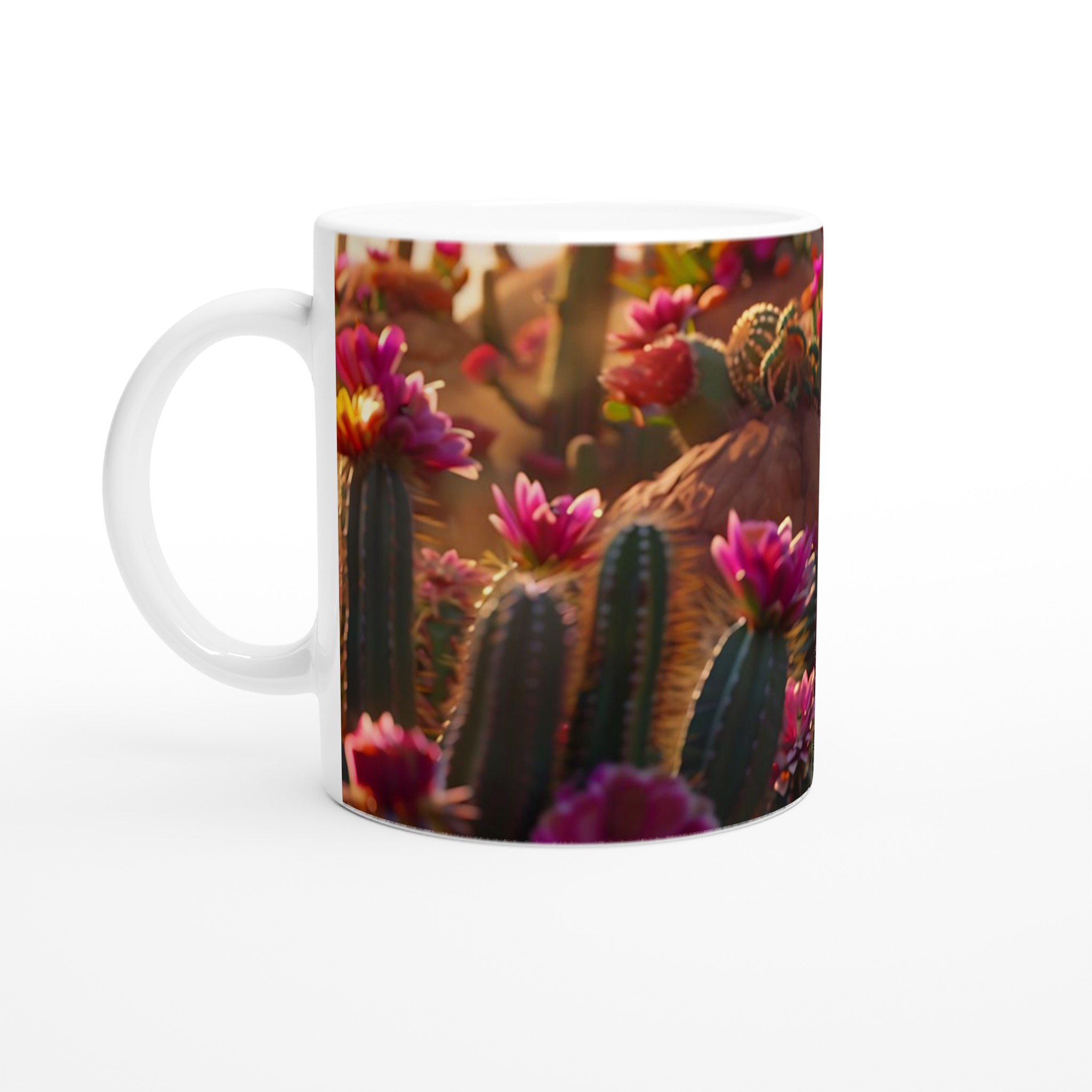 Inspirerad av den charmiga surikaten omgiven av livfulla, blommande kaktusar i glada rosa och gula nyanser, blir denna mugg en daglig påminnelse om solsken och äventyr. Den blanka vita ytan ger ett skarpt och levande tryck som verkligen sticker ut, oavsett om det är en personlig design, ett roligt citat eller en present till någon du tycker om.