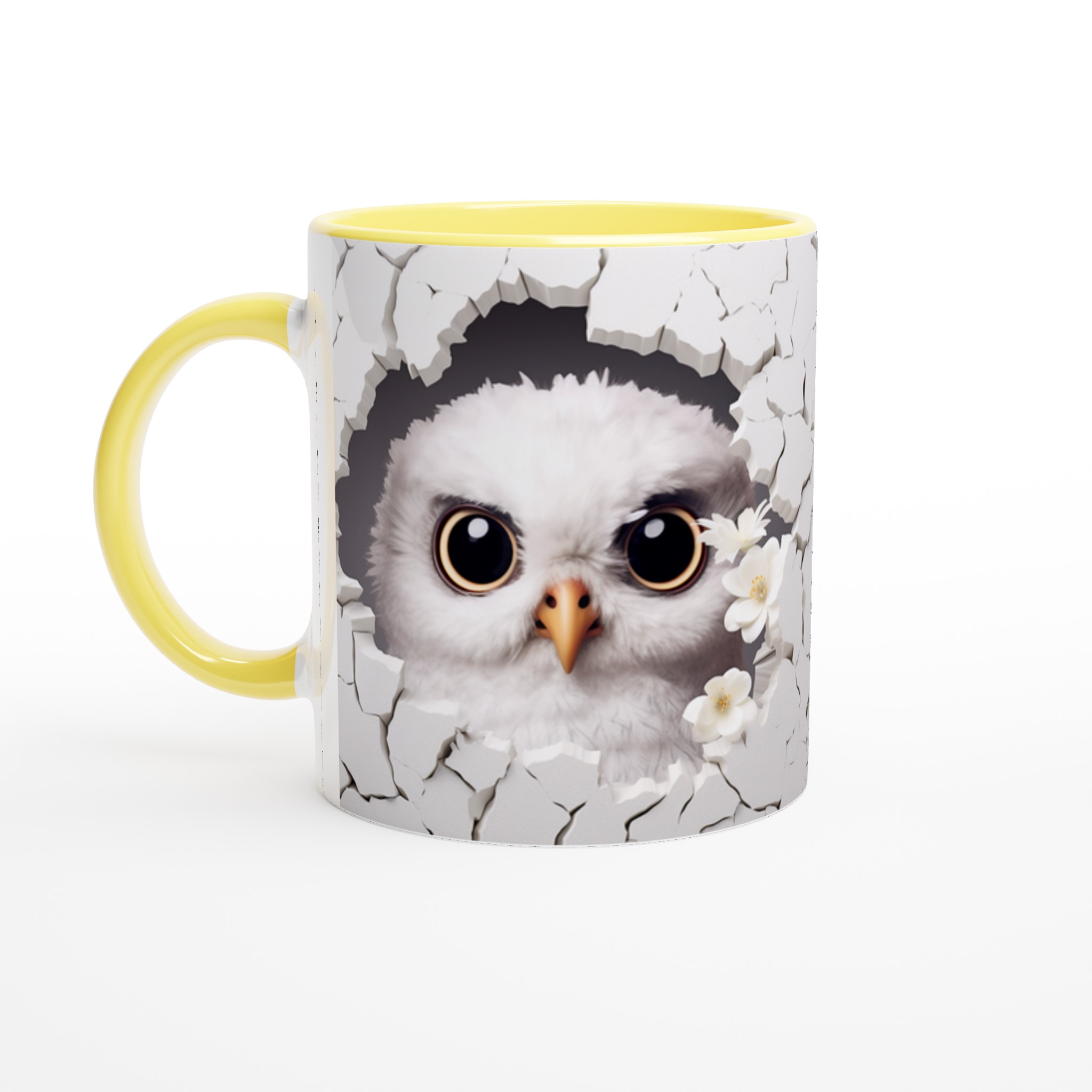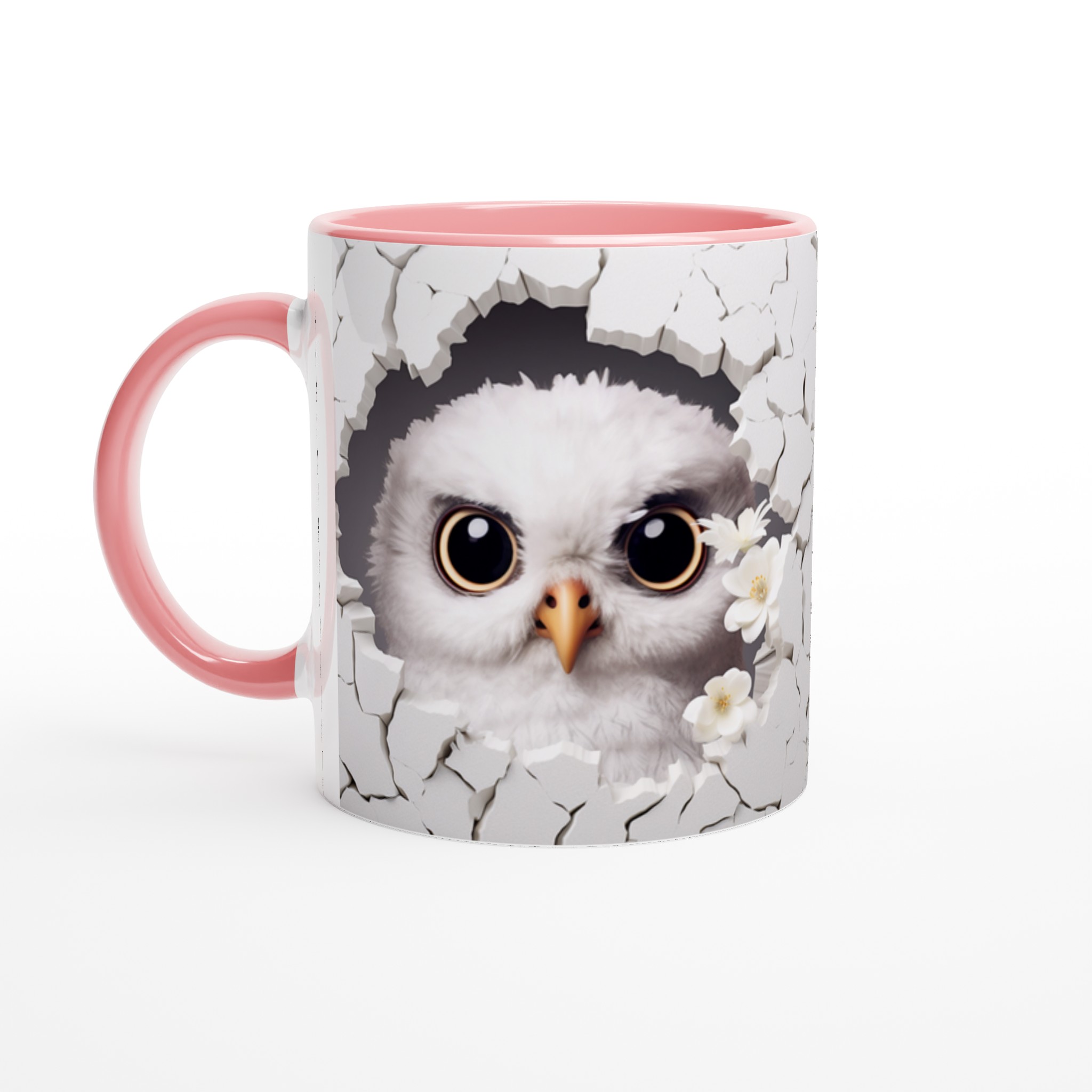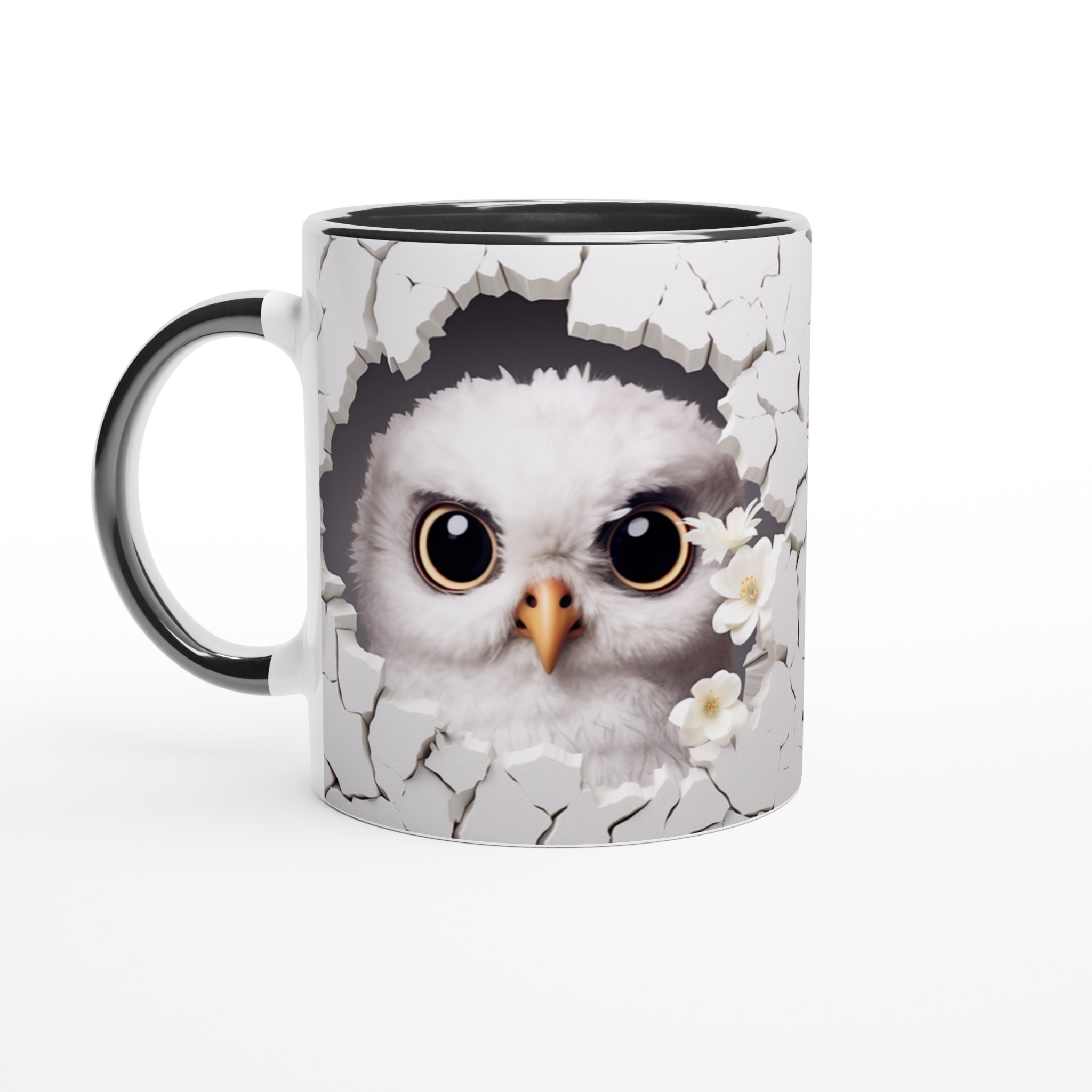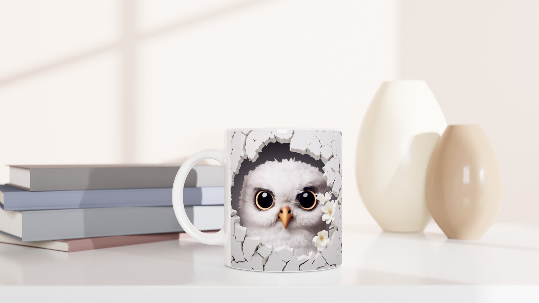 Låt denna bedårande uggla kika fram ur din morgonrutin! Denna charmiga keramiska mugg blir snabbt en vardagsfavorit, perfekt för morgonkaffet, kvällens varma choklad eller när du bara vill njuta av en kopp te. Med sitt unika motiv av en söt liten uggla som kikar ut ur ett sprucket hål i väggen, omgiven av delikata vita blommor, tillför den en lekfull och mysig känsla till varje paus.