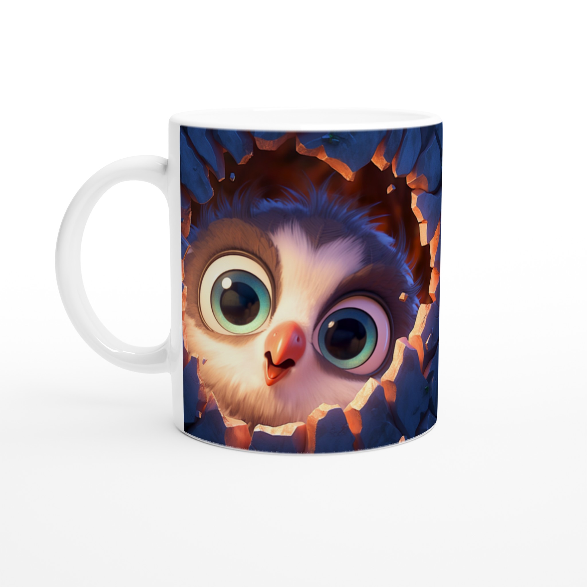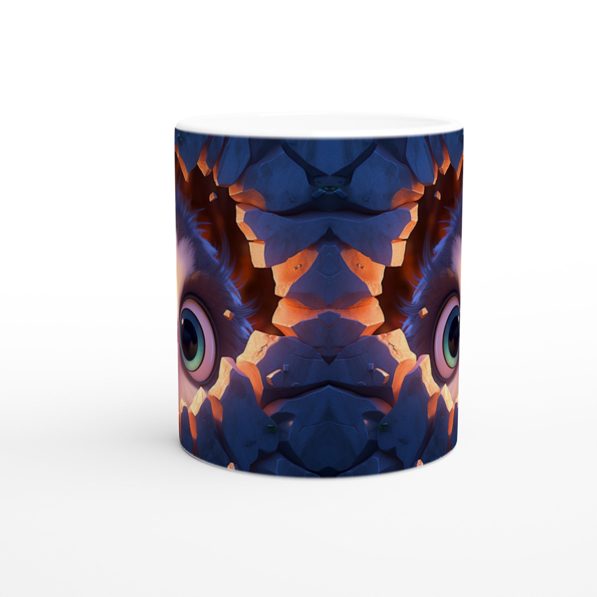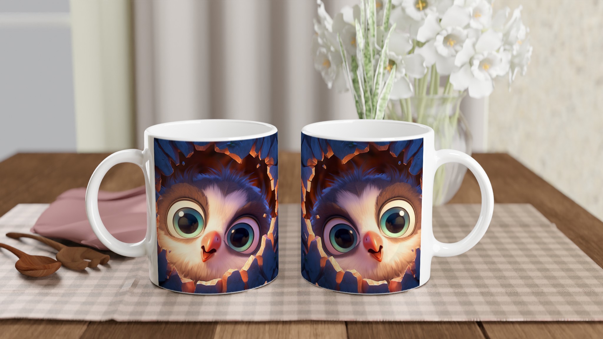 Låt denna charmiga keramiska mugg med sin förtrollande uggledesign förgylla din dag. Med stora, uttrycksfulla ögon som kikar fram ur stenar, är den en perfekt påminnelse om lekfullhet och nyfikenhet. Den blanka ytan framhäver den levande grafiken med klara, djupa färger, vilket gör varje klunk till en liten glädjestund. Oavsett om det är till morgonkaffet, kvällens varma choklad eller en lugn stund med te, blir denna mugg snabbt din oumbärliga följeslagare.