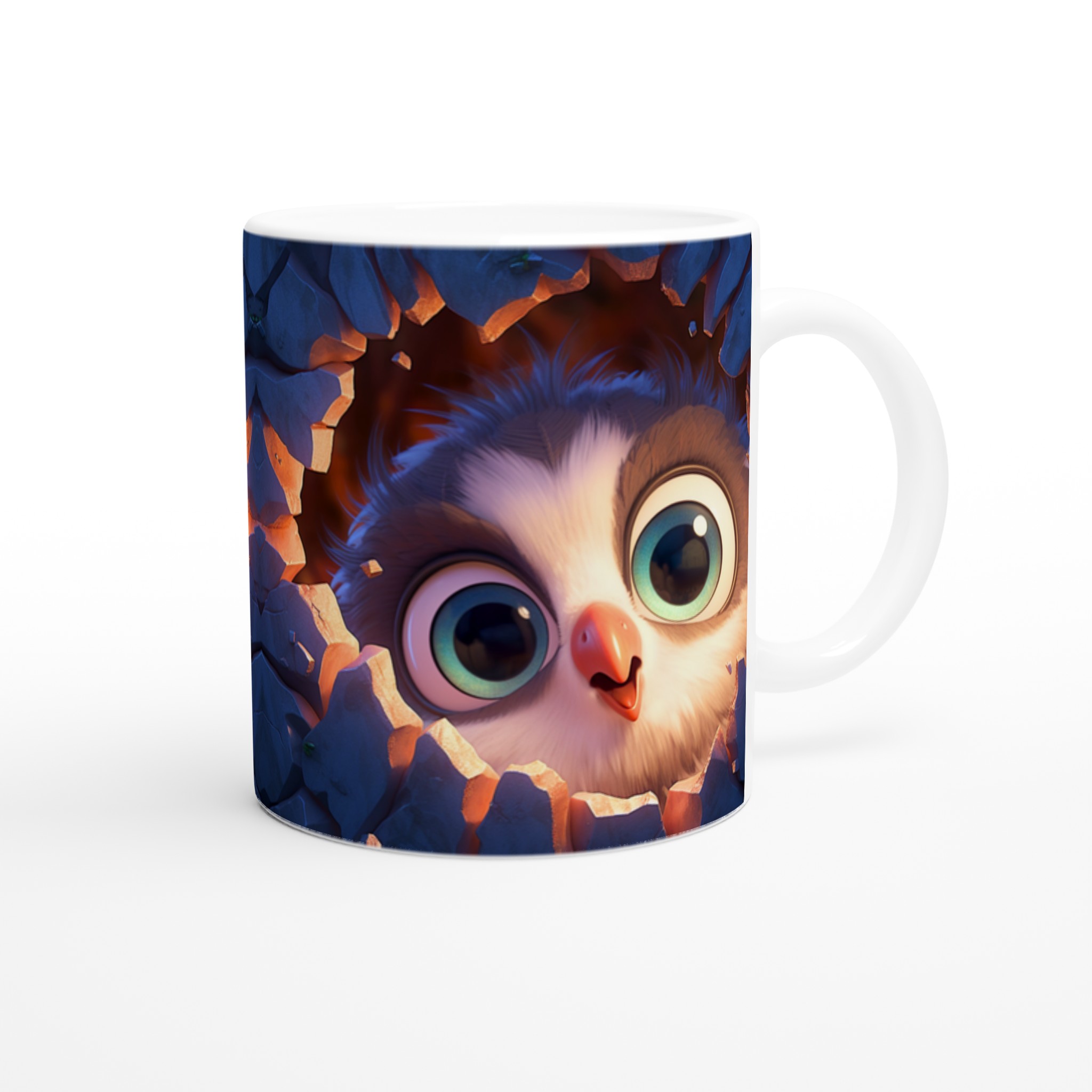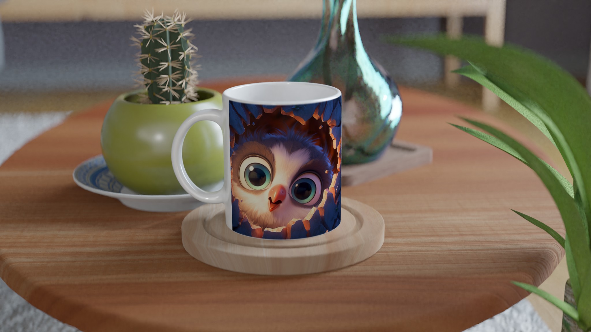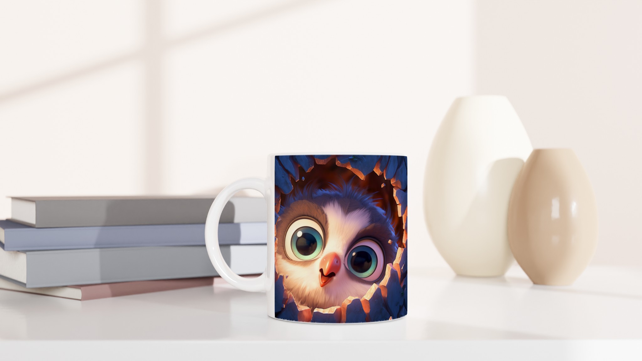 Låt denna charmiga keramiska mugg med sin förtrollande uggledesign förgylla din dag. Med stora, uttrycksfulla ögon som kikar fram ur stenar, är den en perfekt påminnelse om lekfullhet och nyfikenhet. Den blanka ytan framhäver den levande grafiken med klara, djupa färger, vilket gör varje klunk till en liten glädjestund. Oavsett om det är till morgonkaffet, kvällens varma choklad eller en lugn stund med te, blir denna mugg snabbt din oumbärliga följeslagare.
