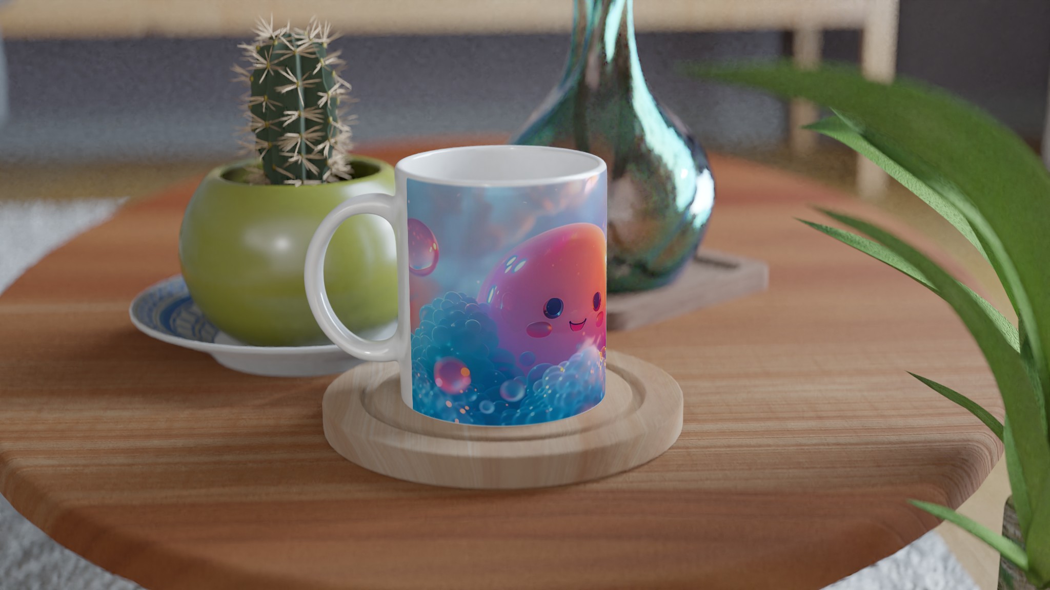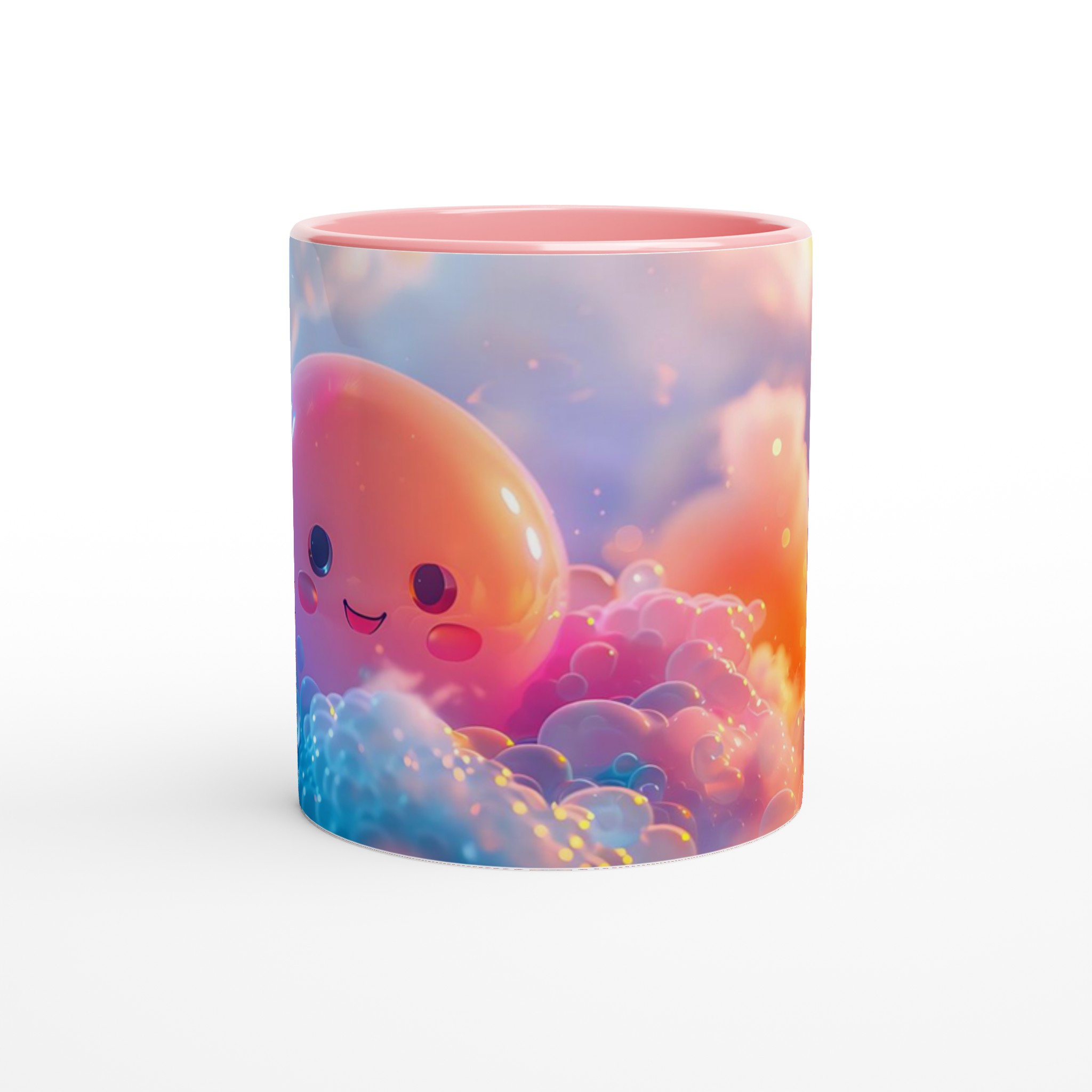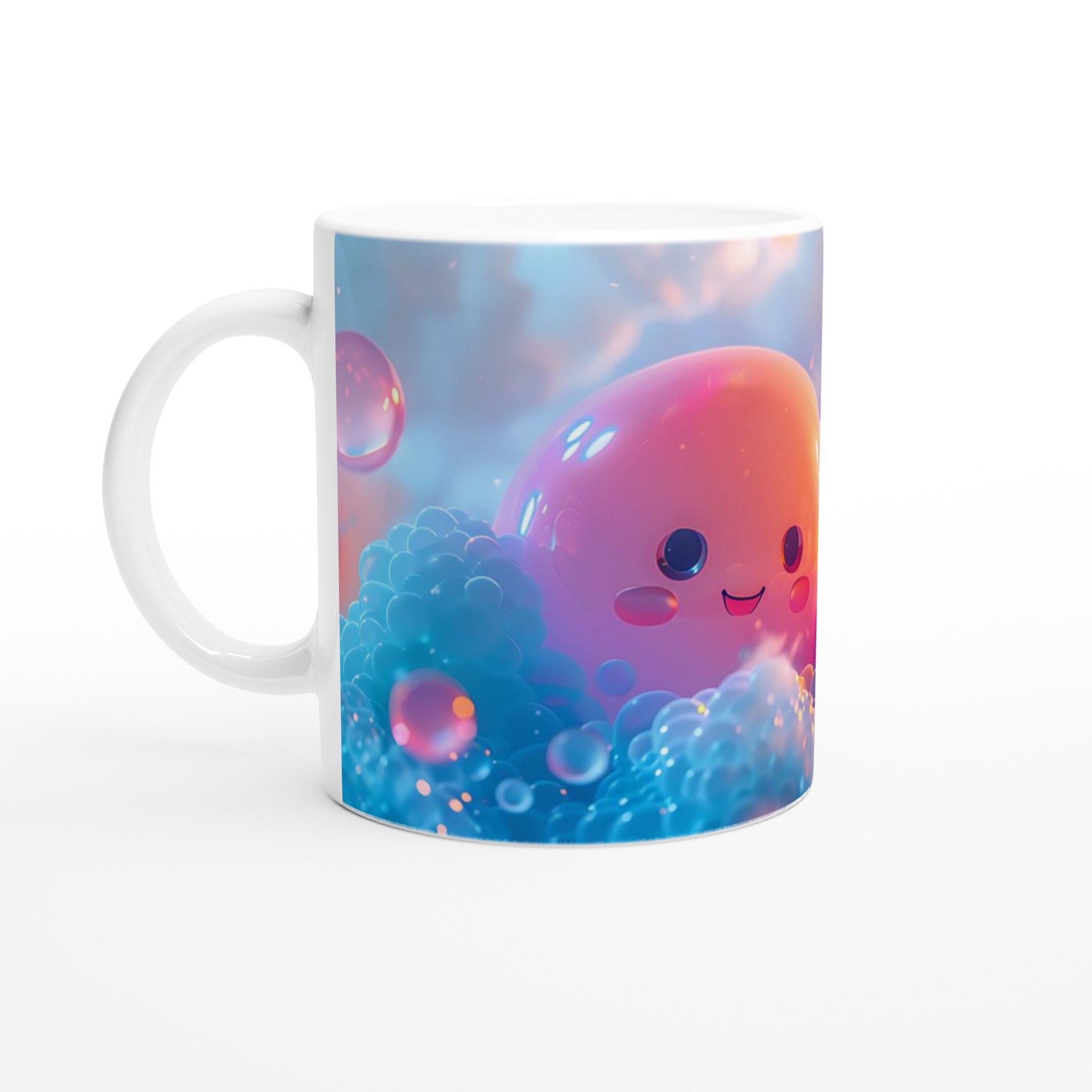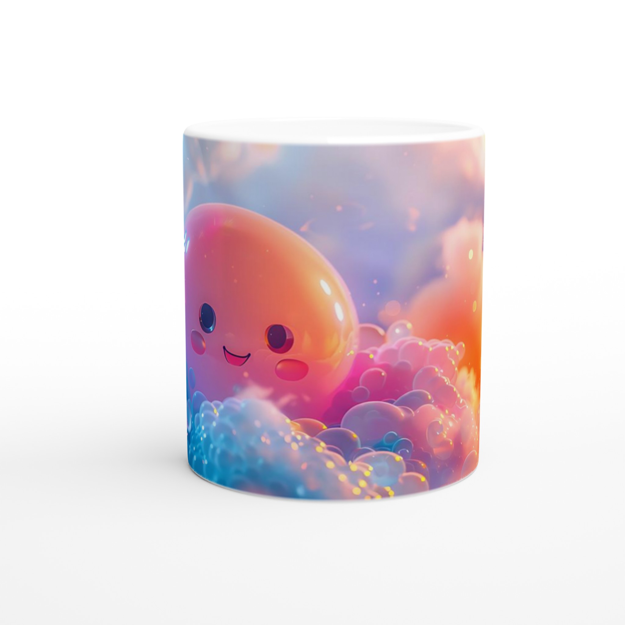 Välkommen till en värld av förtrollning med vår ”Söt Värld” keramiska mugg! Inspirerad av bilden av en glad, rosa bubbelvarelse omgiven av drömska pastellmoln och glittrande bubblor, är denna mugg designad för att sprida glädje och en känsla av lekfull magi till din vardag. Perfekt för alla dagens stunder – morgonkaffet, en värmande kopp te eller en härlig varm choklad – den blanka ytan gör att trycken framträder klart och färgstarkt, vilket gör muggen till en riktig favorit i vardagen.