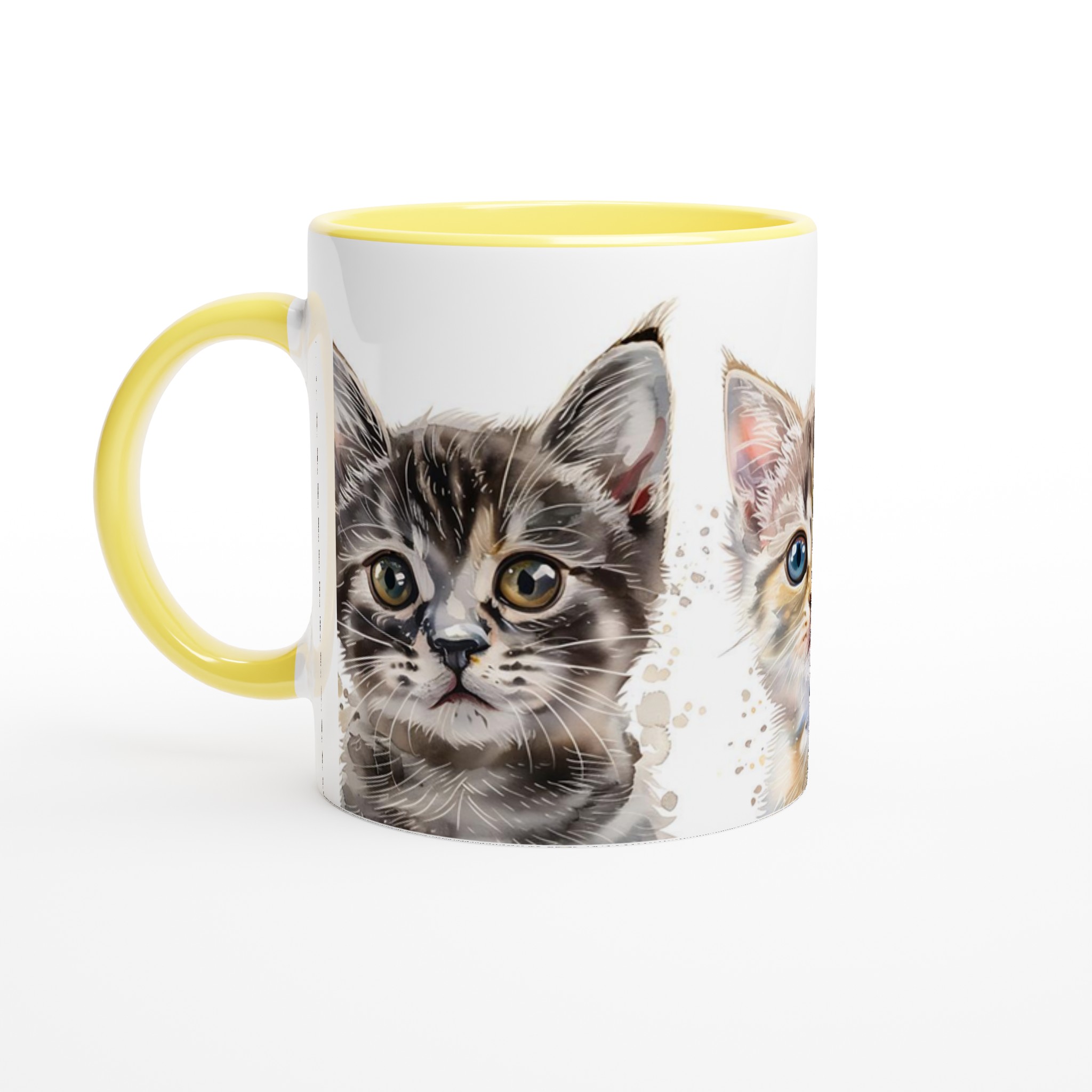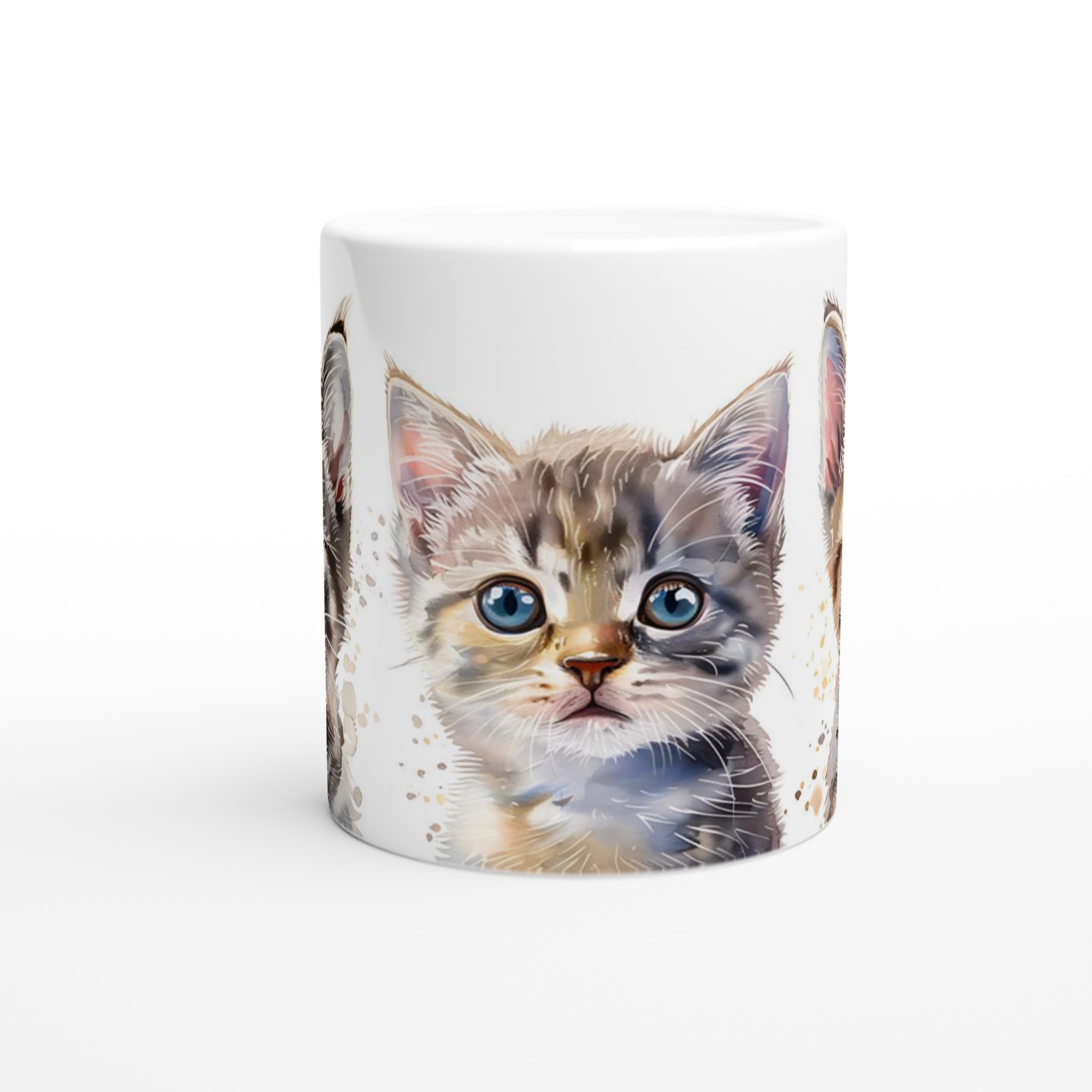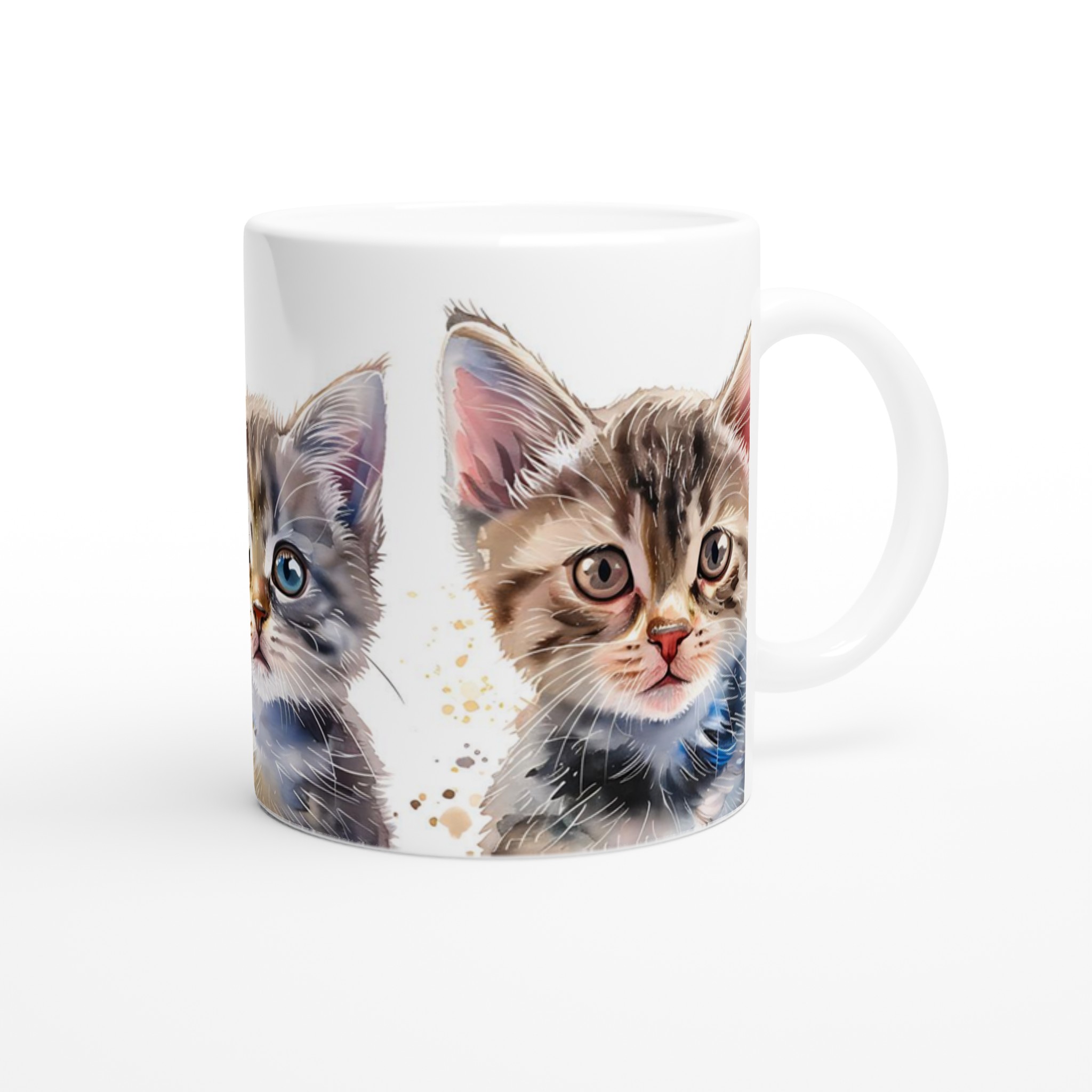 Starta dagen med ett leende med denna bedårande keramiska mugg, prydd med charmerande akvarellkattungar! De mjuka penseldragen och de uttrycksfulla ögonen ger varje kattunge en unik personlighet som kommer att smälta ditt hjärta. Den här stilrena muggen blir snabbt en vardagsfavorit, perfekt för morgonkaffet, kvällens varma choklad eller när du bara vill njuta av en kopp te. Den blanka vita ytan gör att trycken framhävs med klara och levande färger, som håller sig fina även efter många turer i mikron och diskmaskinen.