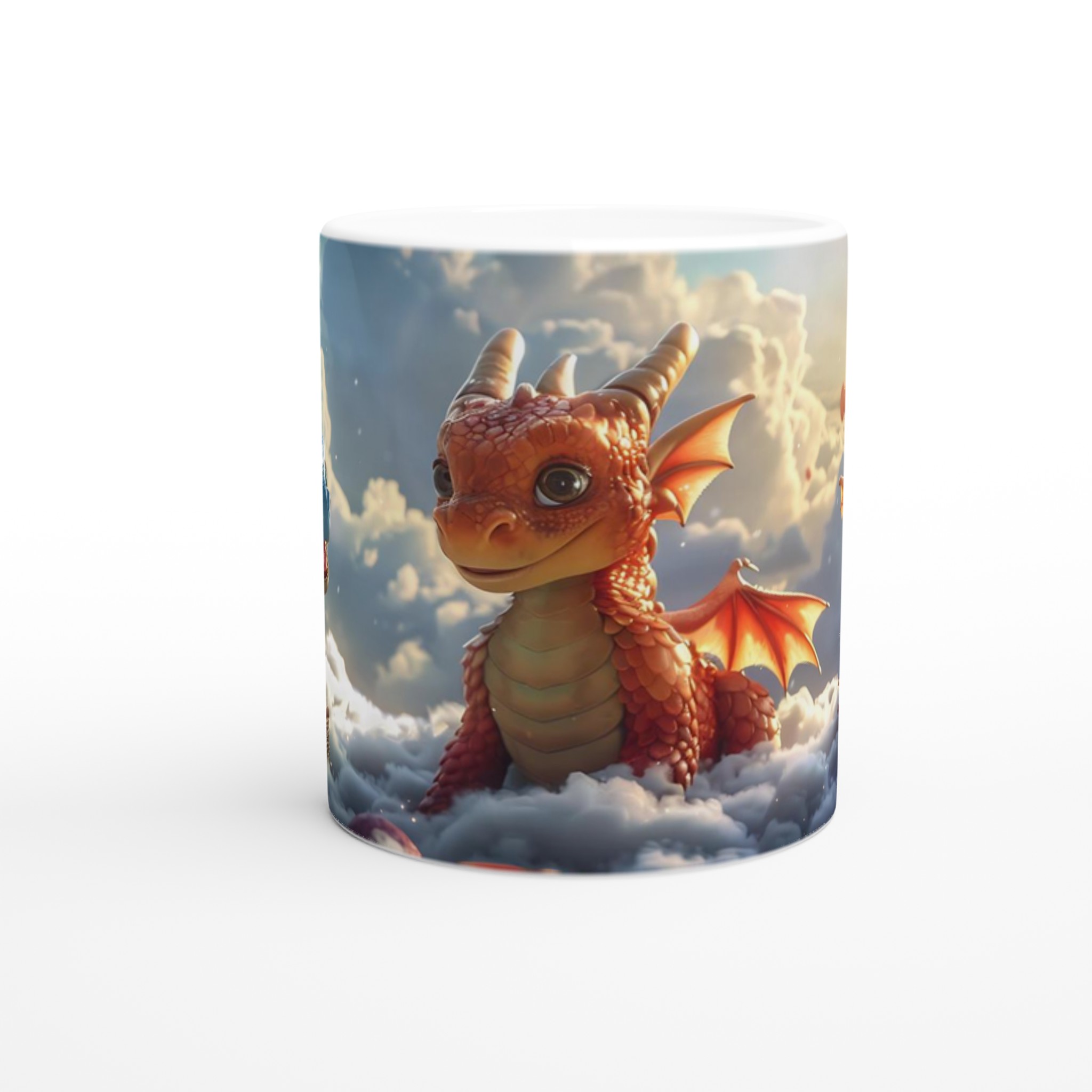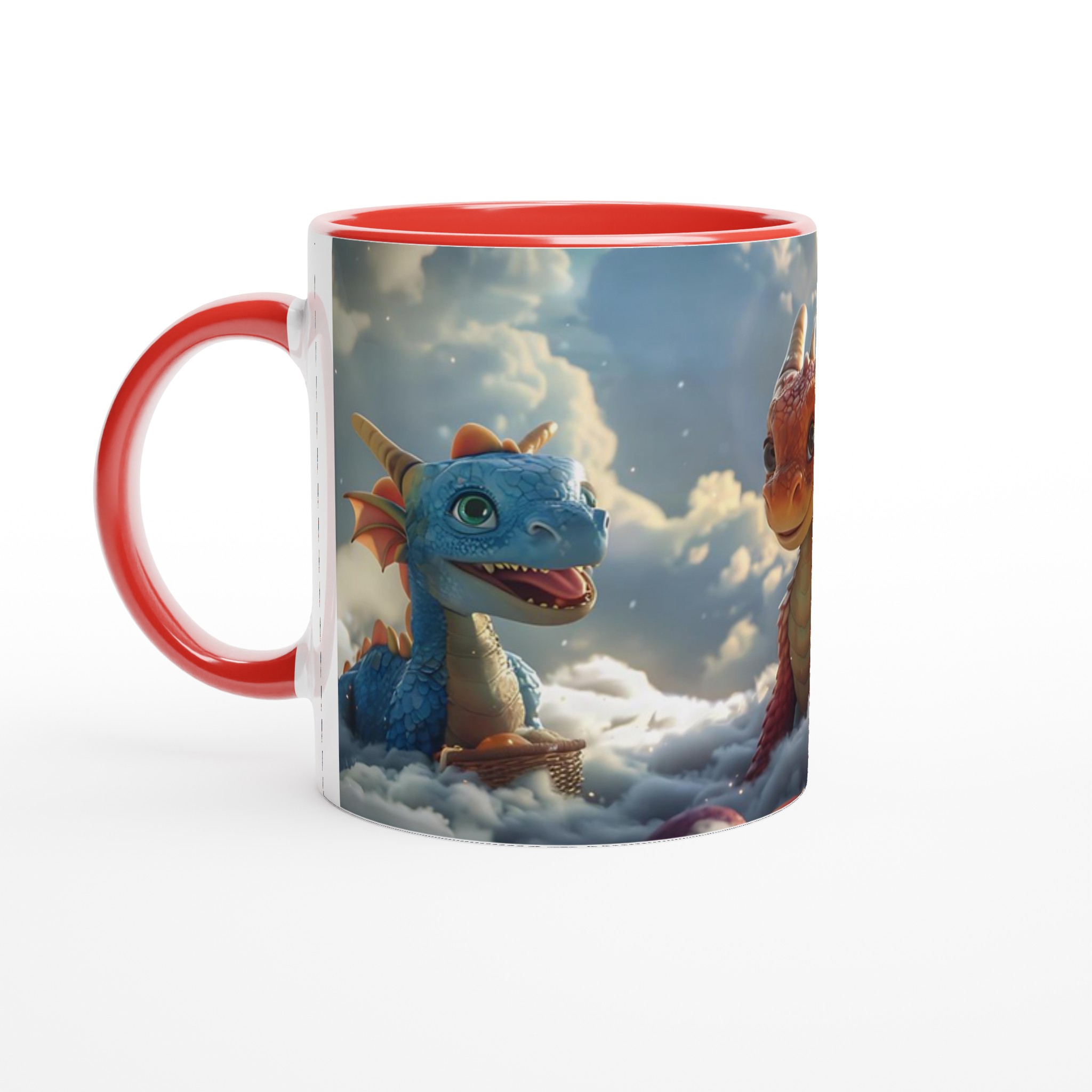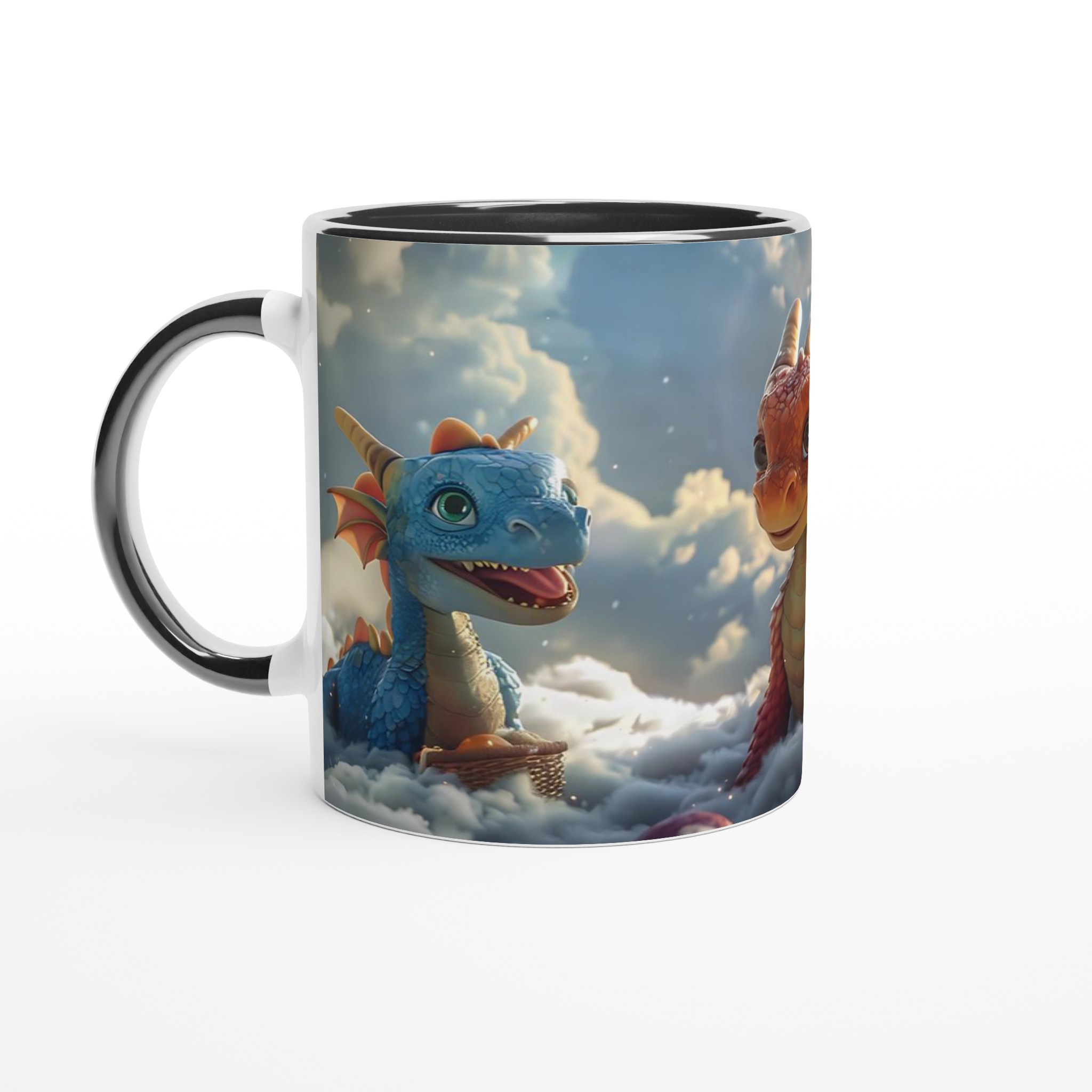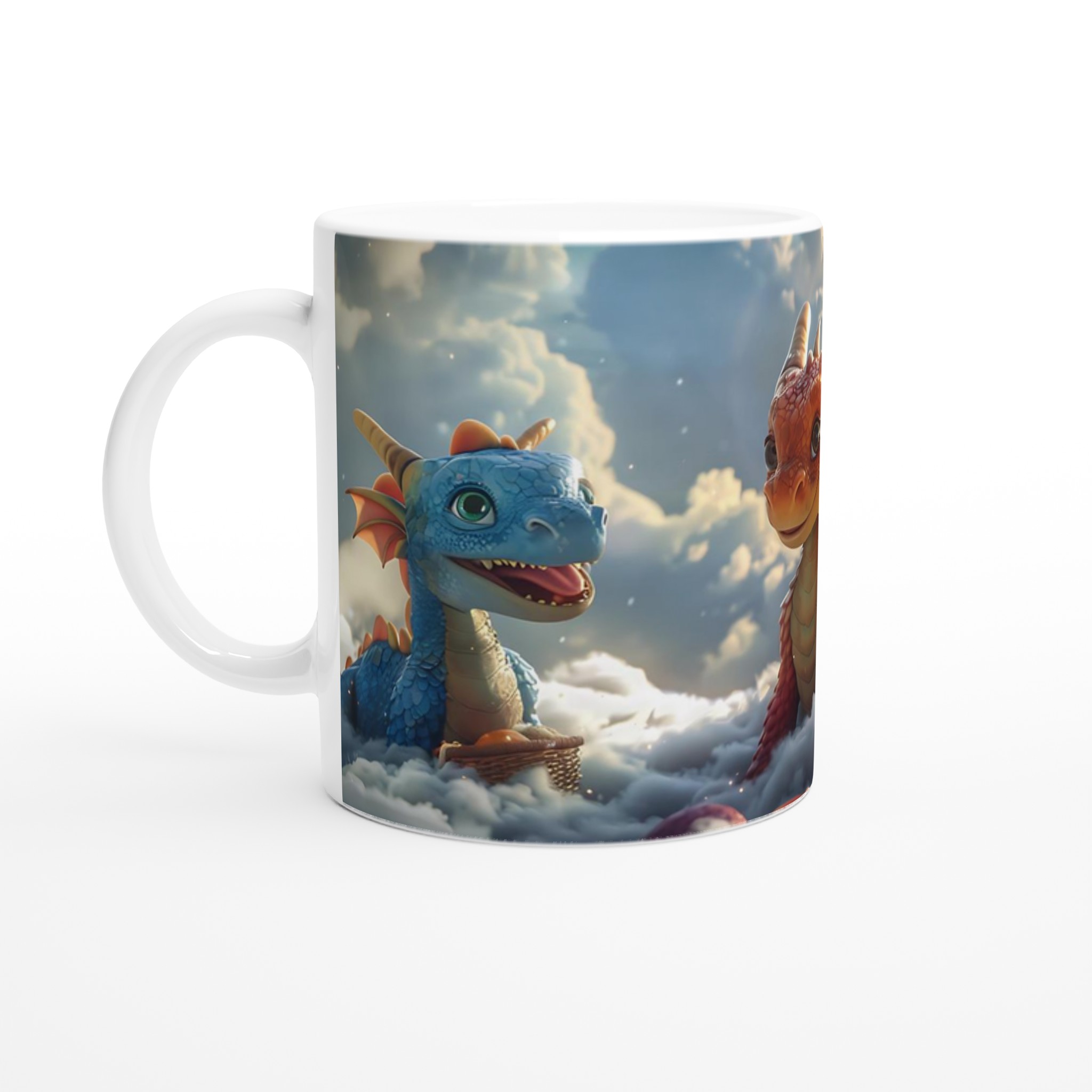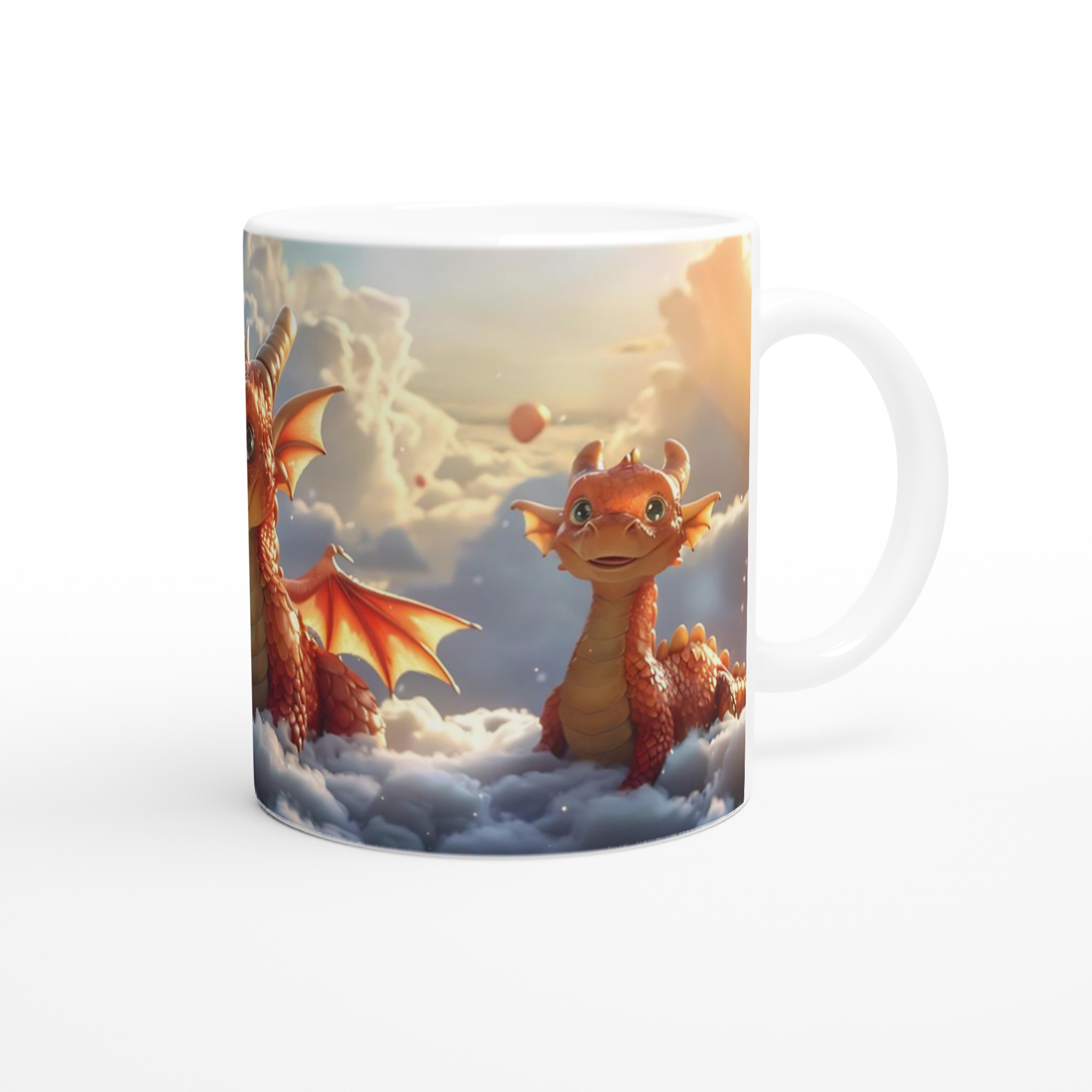 Föreställ dig att du sippar på din favoritdryck bland molnen med dessa förtrollande drakvänner! Denna magiska keramiska mugg förvandlar varje paus till ett äventyr. Med lekfulla drakar som svävar bland fluffiga skyar och den varma glöden av en solnedgång, är den perfekt för att lysa upp din morgonkaffe, kvällens mysiga te, eller när du bara vill drömma dig bort.