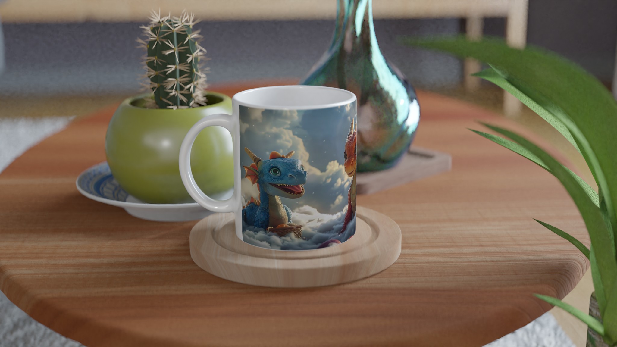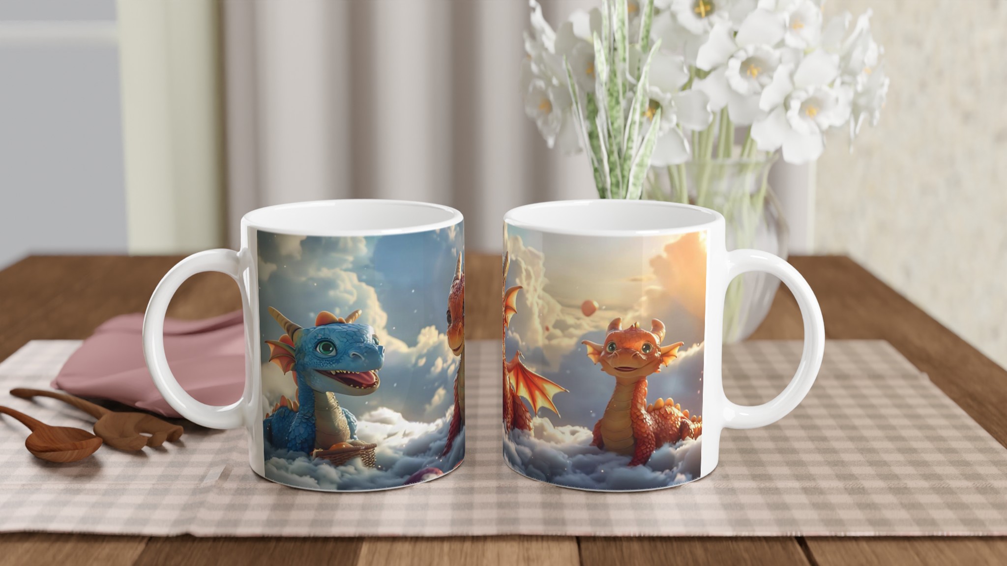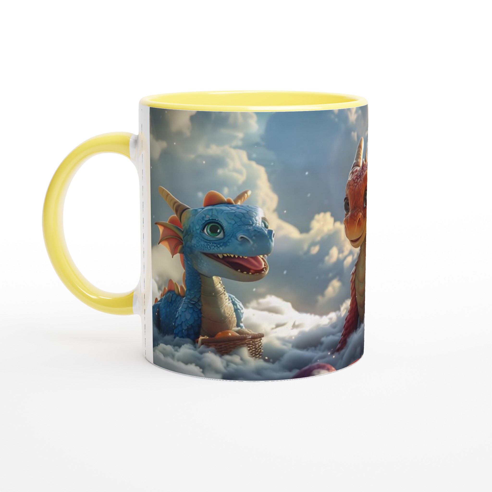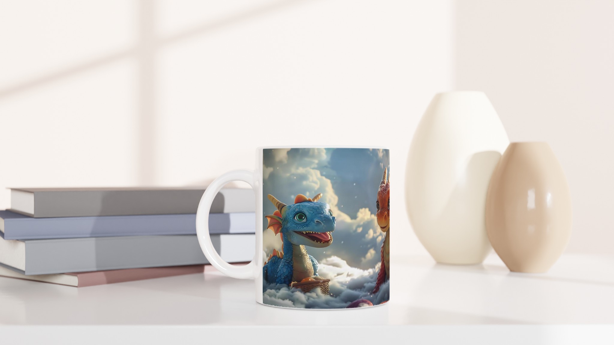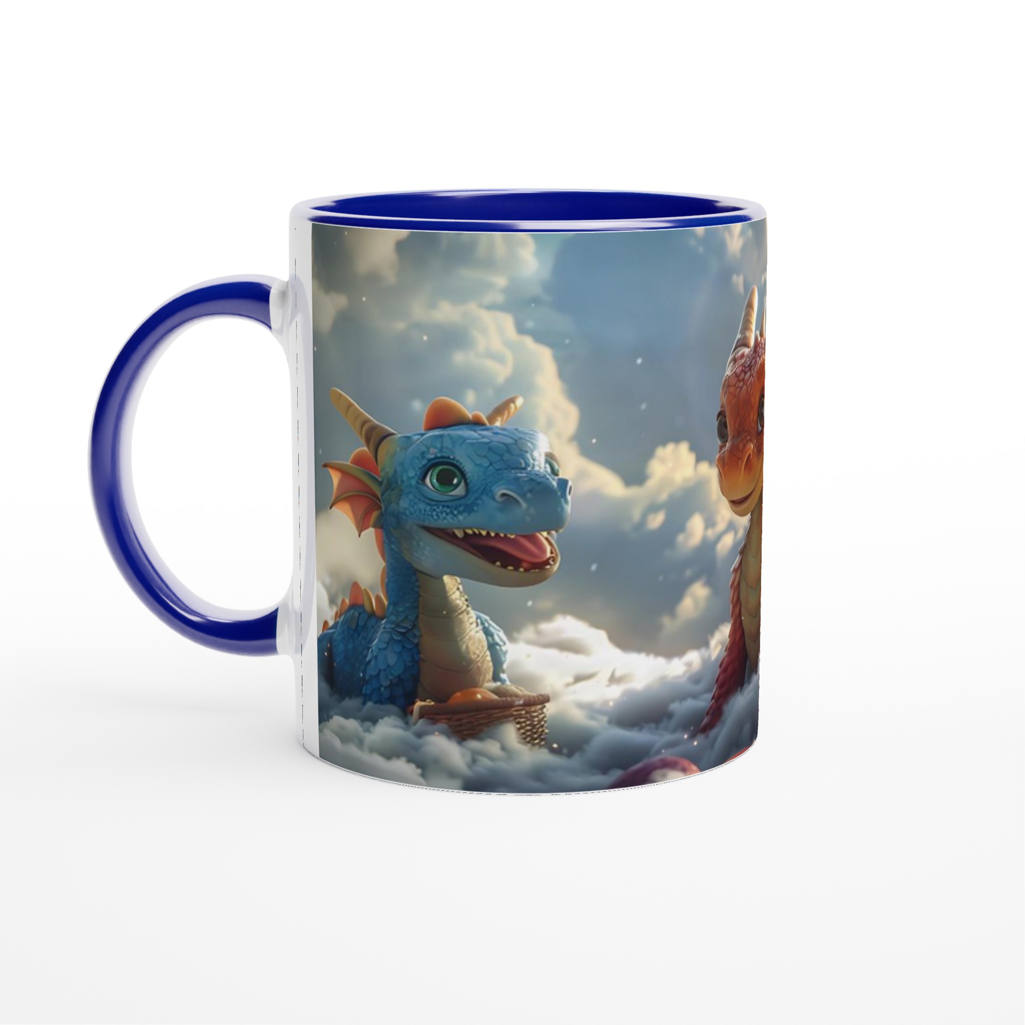 Föreställ dig att du sippar på din favoritdryck bland molnen med dessa förtrollande drakvänner! Denna magiska keramiska mugg förvandlar varje paus till ett äventyr. Med lekfulla drakar som svävar bland fluffiga skyar och den varma glöden av en solnedgång, är den perfekt för att lysa upp din morgonkaffe, kvällens mysiga te, eller när du bara vill drömma dig bort.