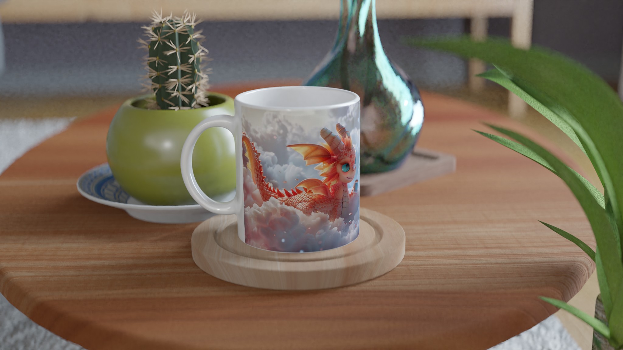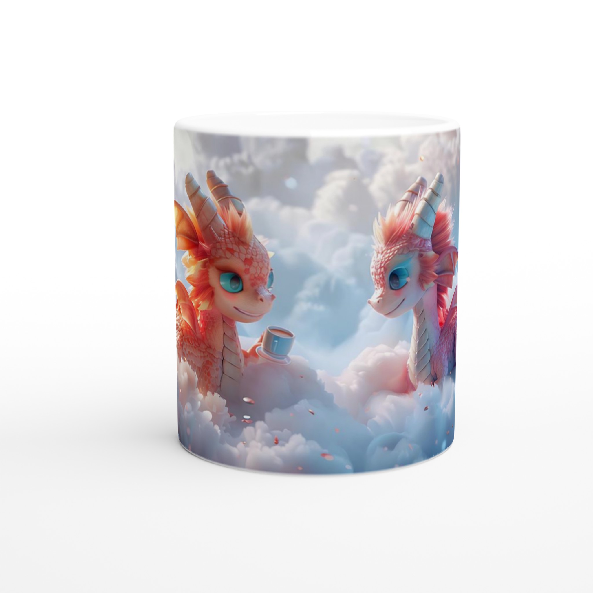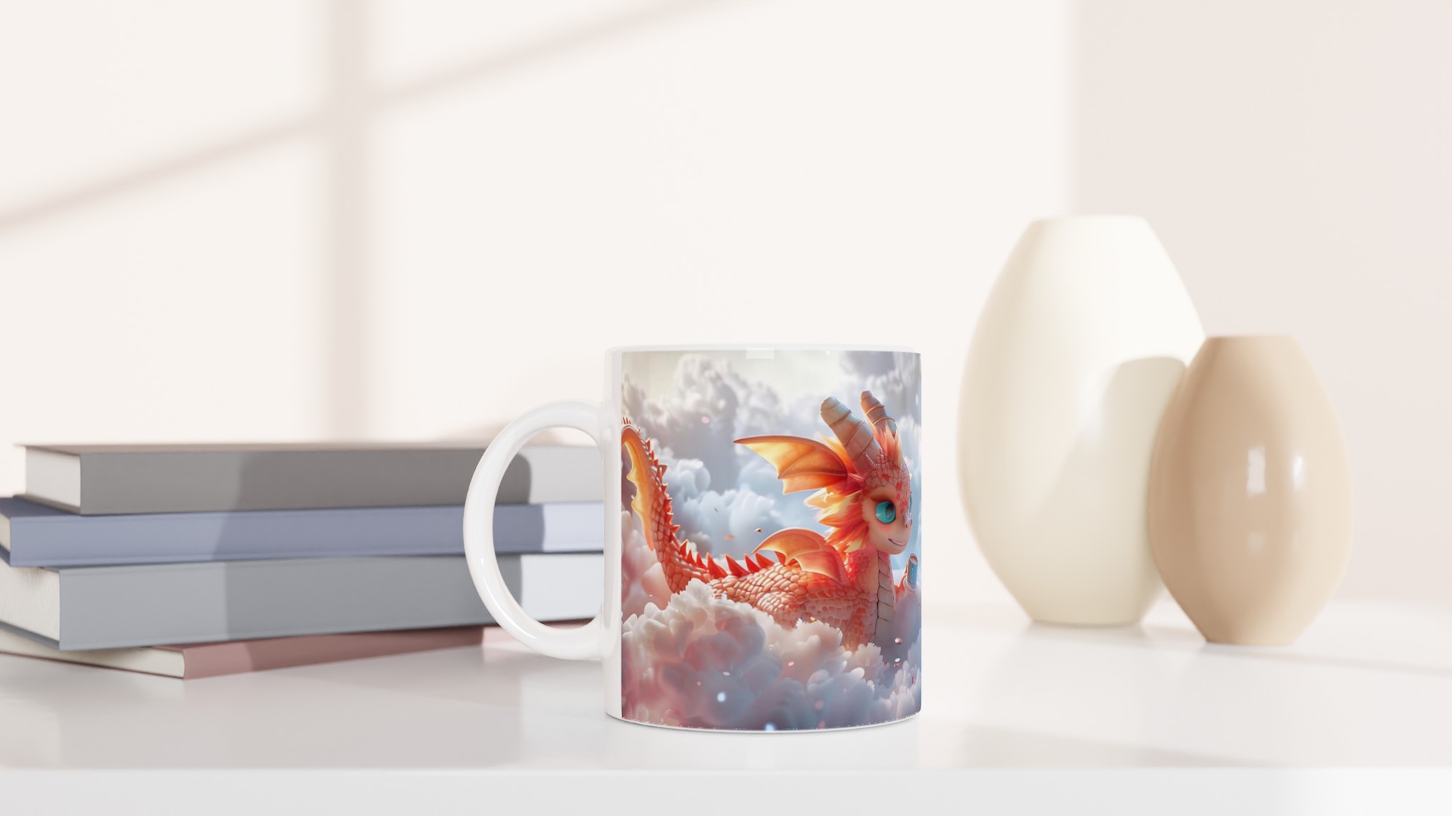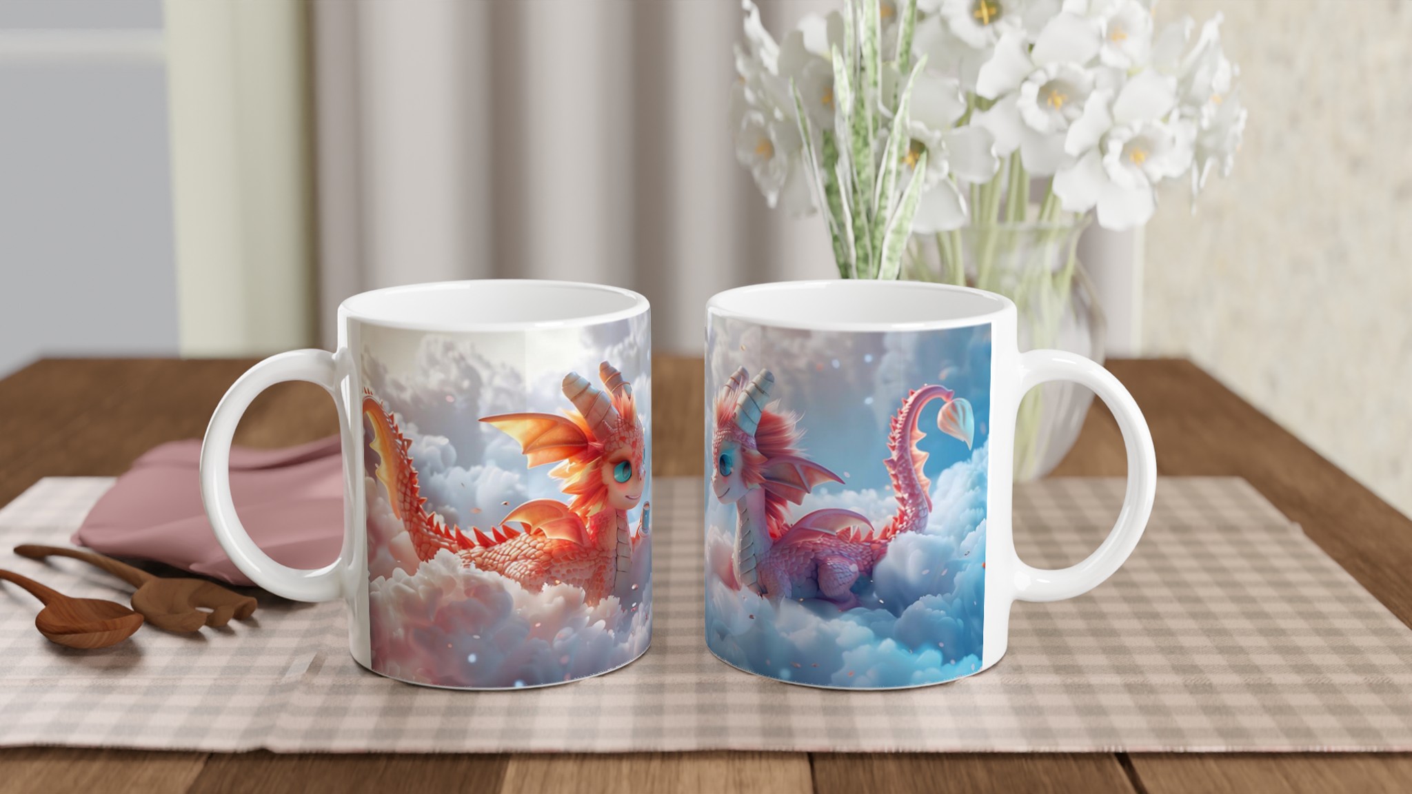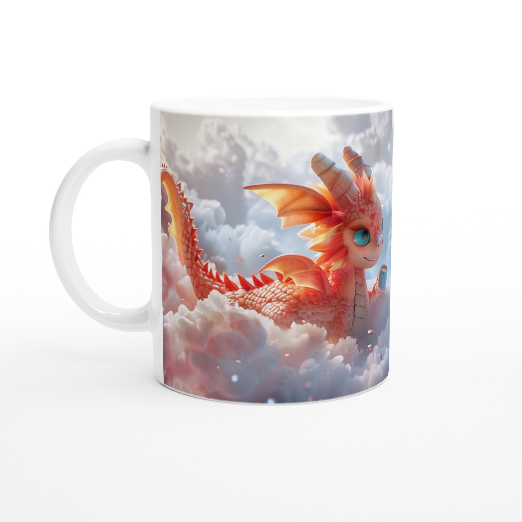 Föreställ dig att starta dagen med en kopp glädje, omgiven av fluffiga moln och de sötaste drakvännerna. Den här charmiga keramiska muggen, prydd med ett lekfullt motiv av små drakar bland molnen i mjuka rosa och persikotoner, blir snabbt en vardagsfavorit. Perfekt för morgonkaffet, kvällens varma choklad, eller när du bara vill njuta av en kopp te i gott sällskap. Den blanka vita ytan framhäver trycken med klara och levande färger, som håller sig fina även efter många turer i mikron och diskmaskinen.