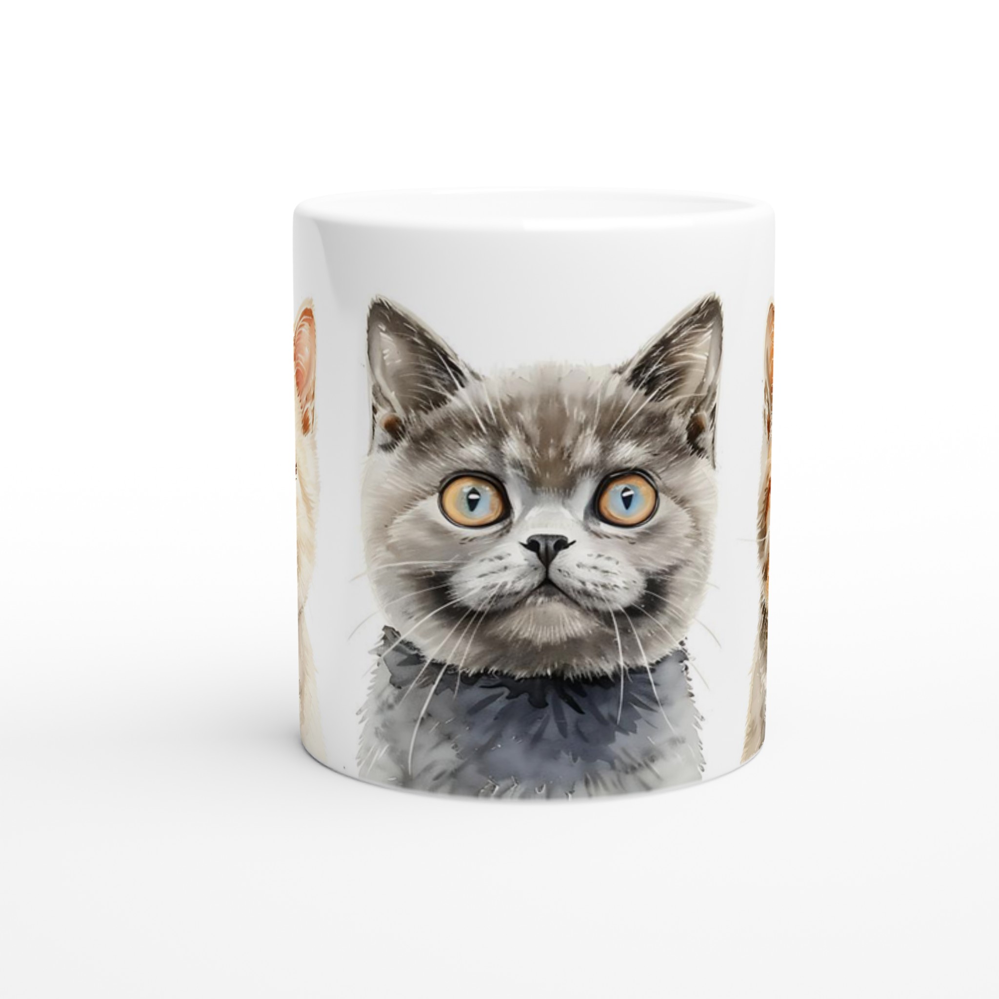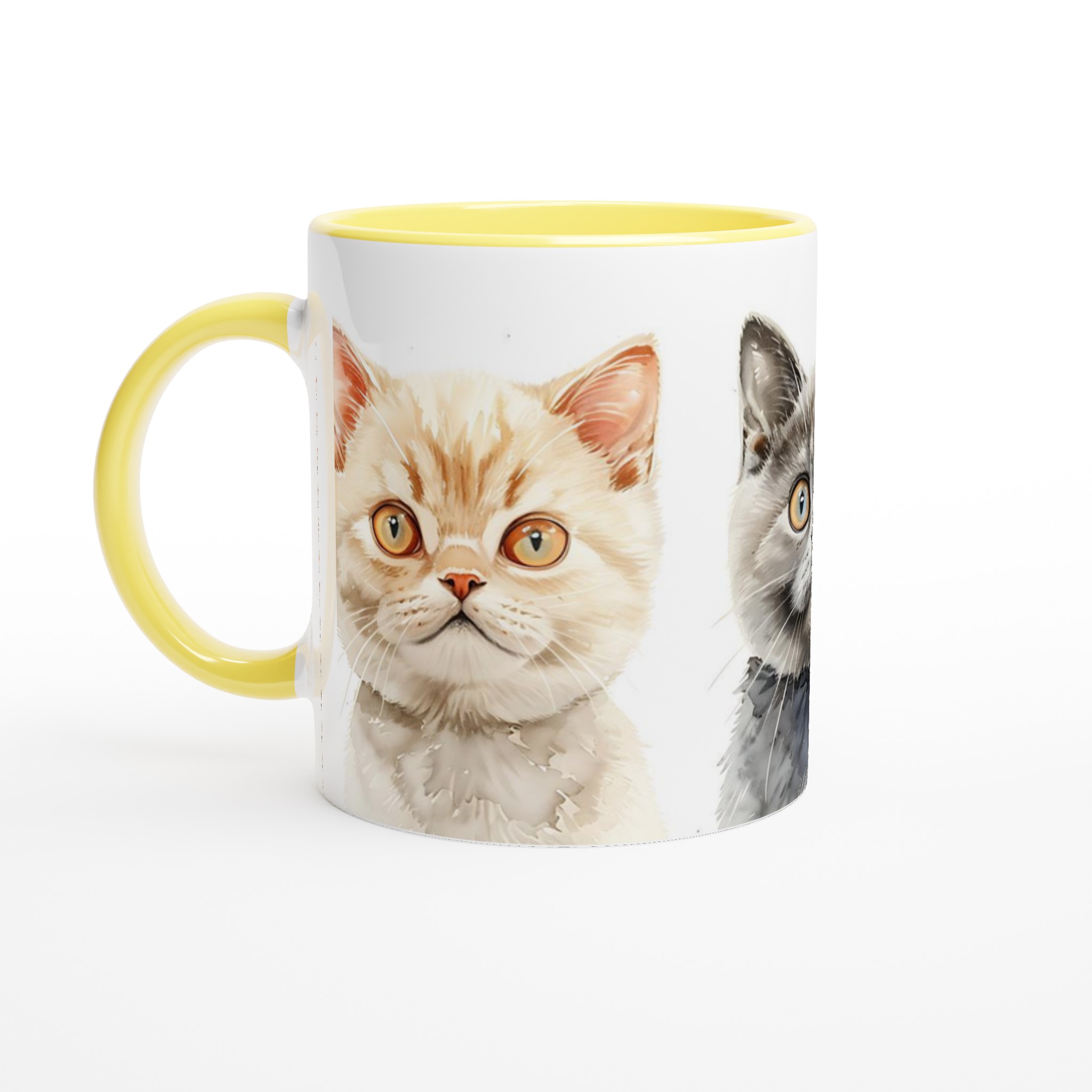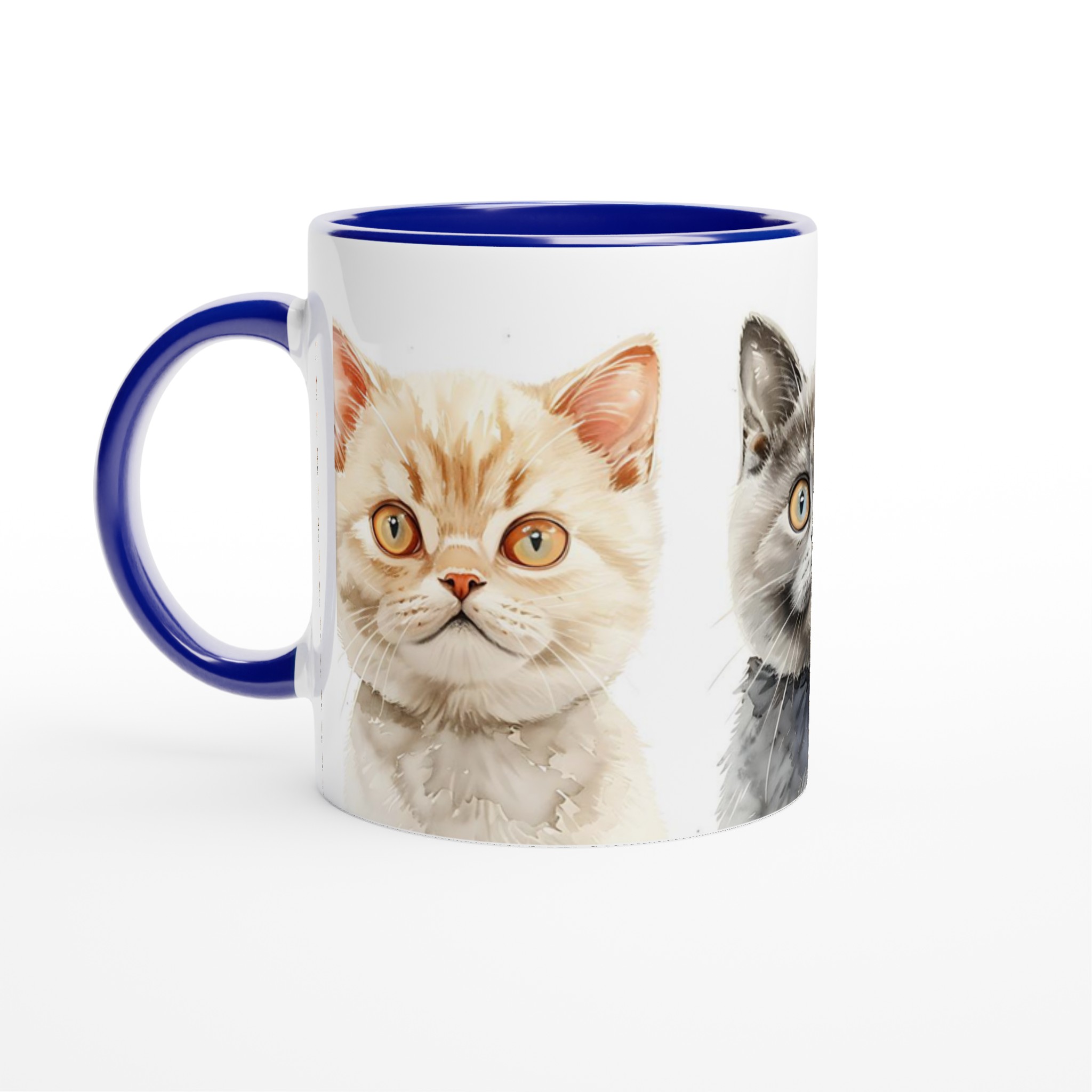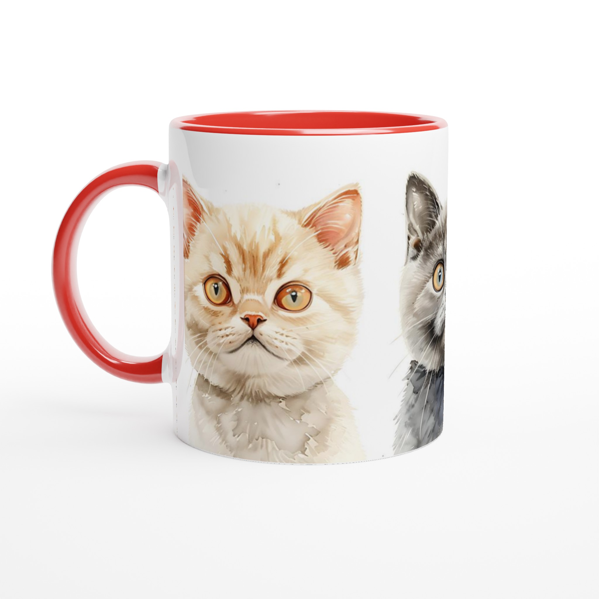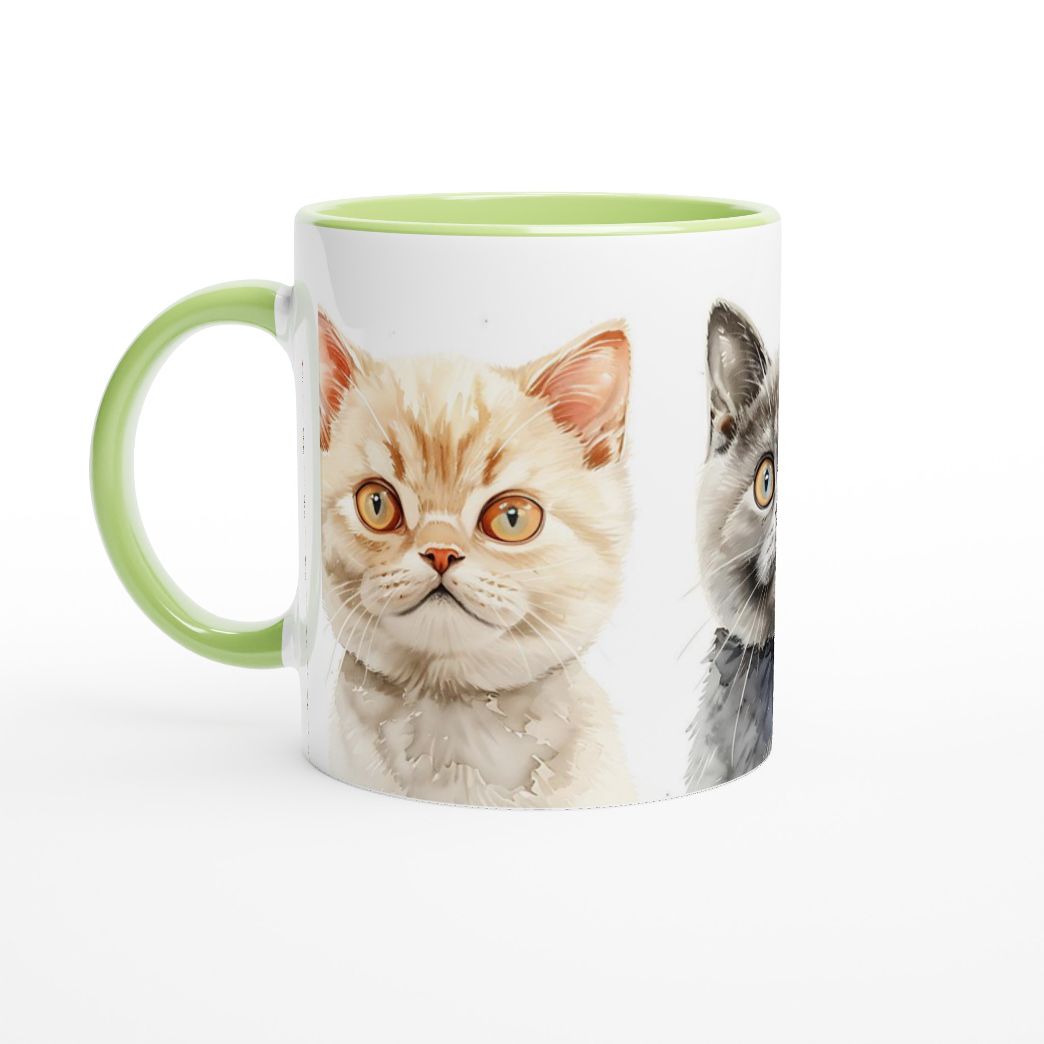 Förgyll din dag med en touch av oemotståndlig charm! Denna stilrena keramiska mugg, prydd med en lekfull akvarellkonst av bedårande kattungar, blir snabbt en vardagsfavorit. Perfekt för morgonkaffet, kvällens varma choklad eller när du bara vill njuta av en kopp te i sällskap av söta små vänner. Den blanka vita ytan gör att trycken framhävs med klara och levande färger, som håller sig fina även efter många turer i mikron och diskmaskinen.