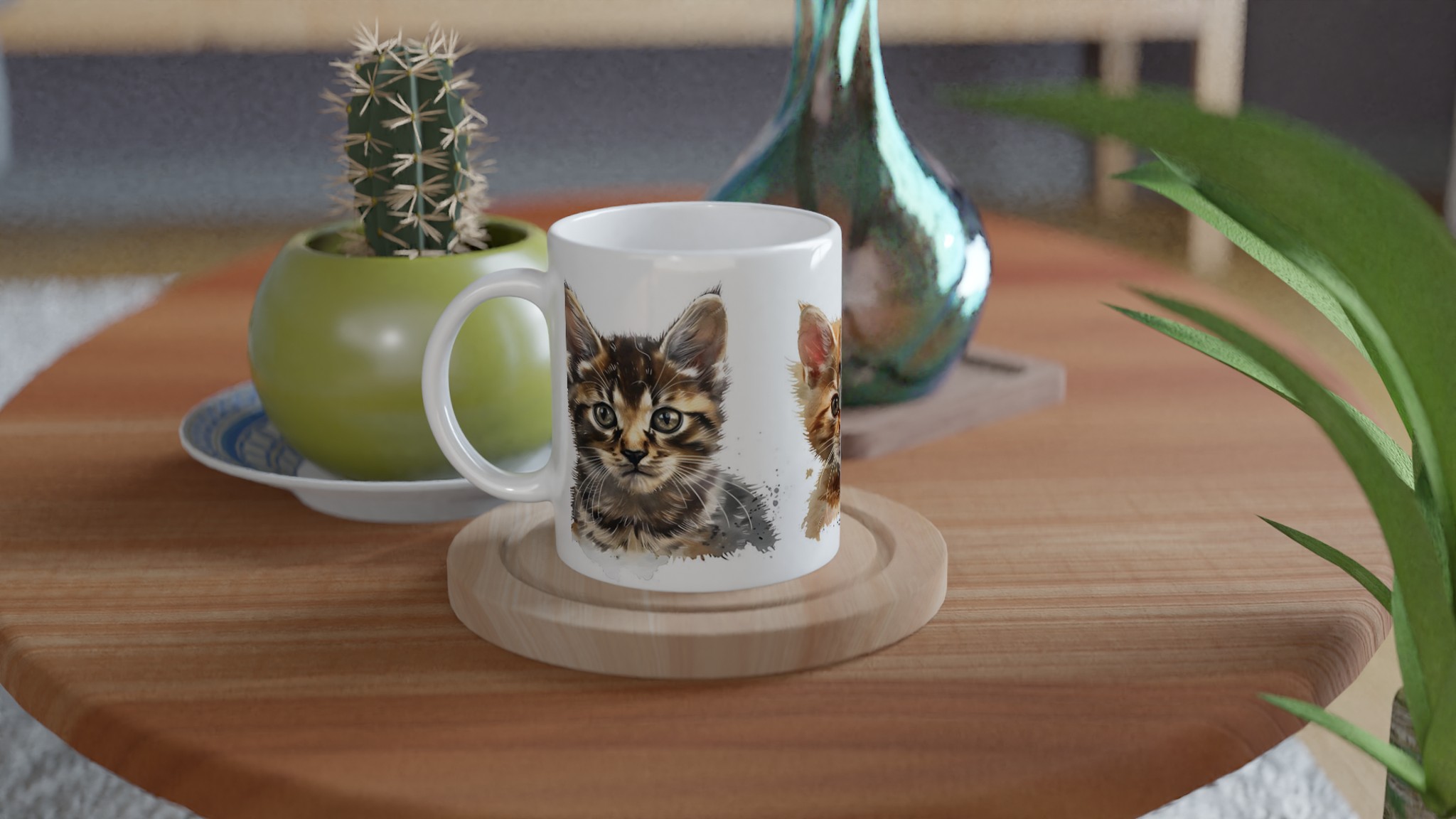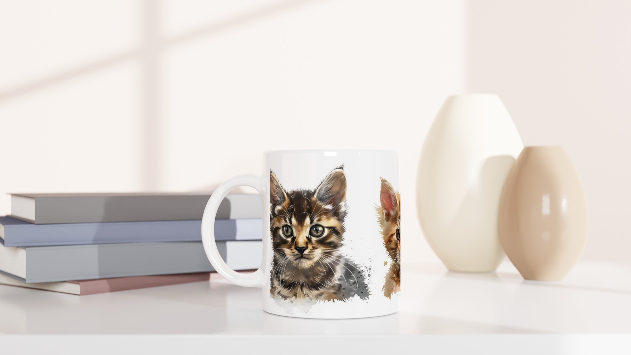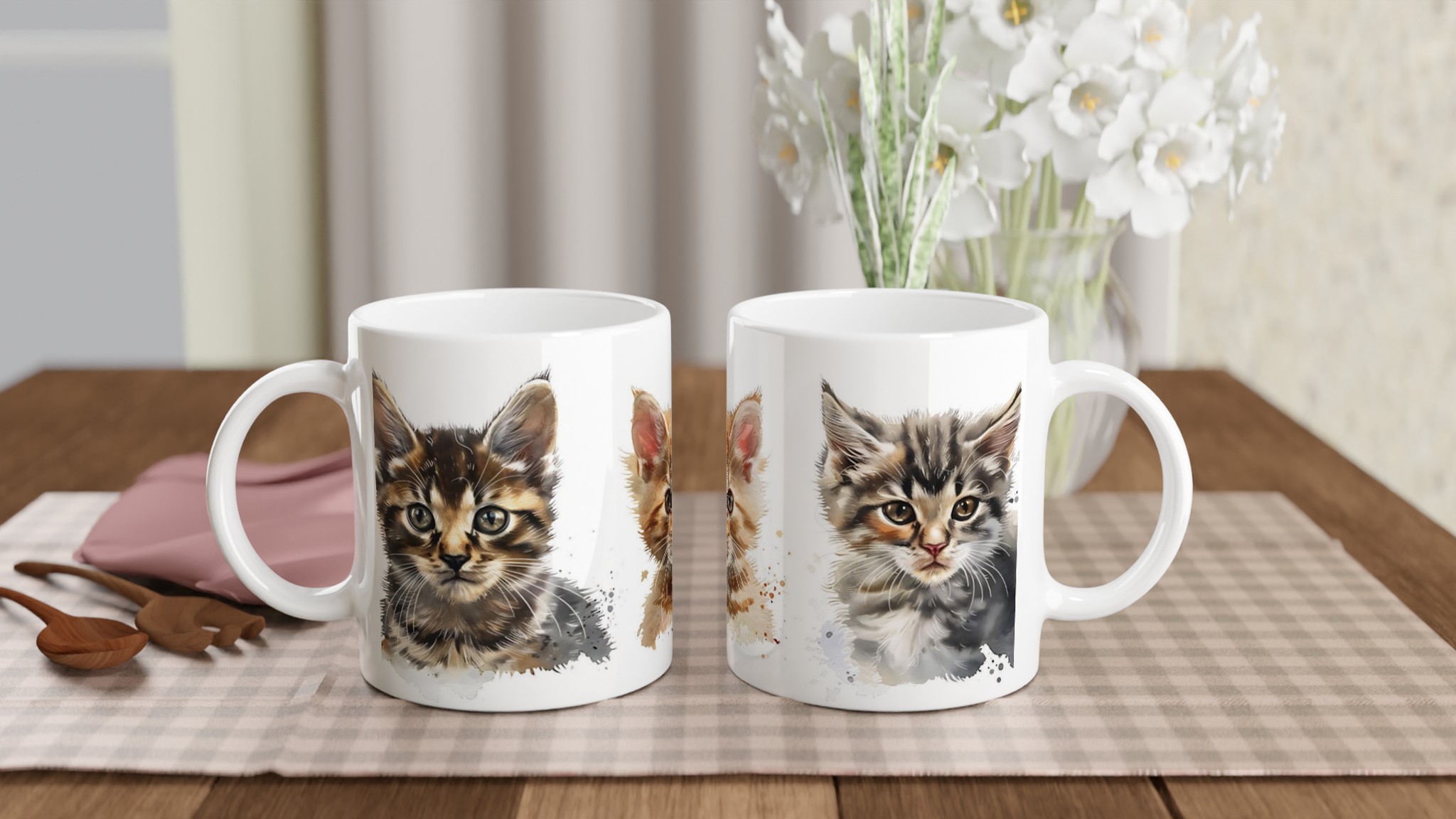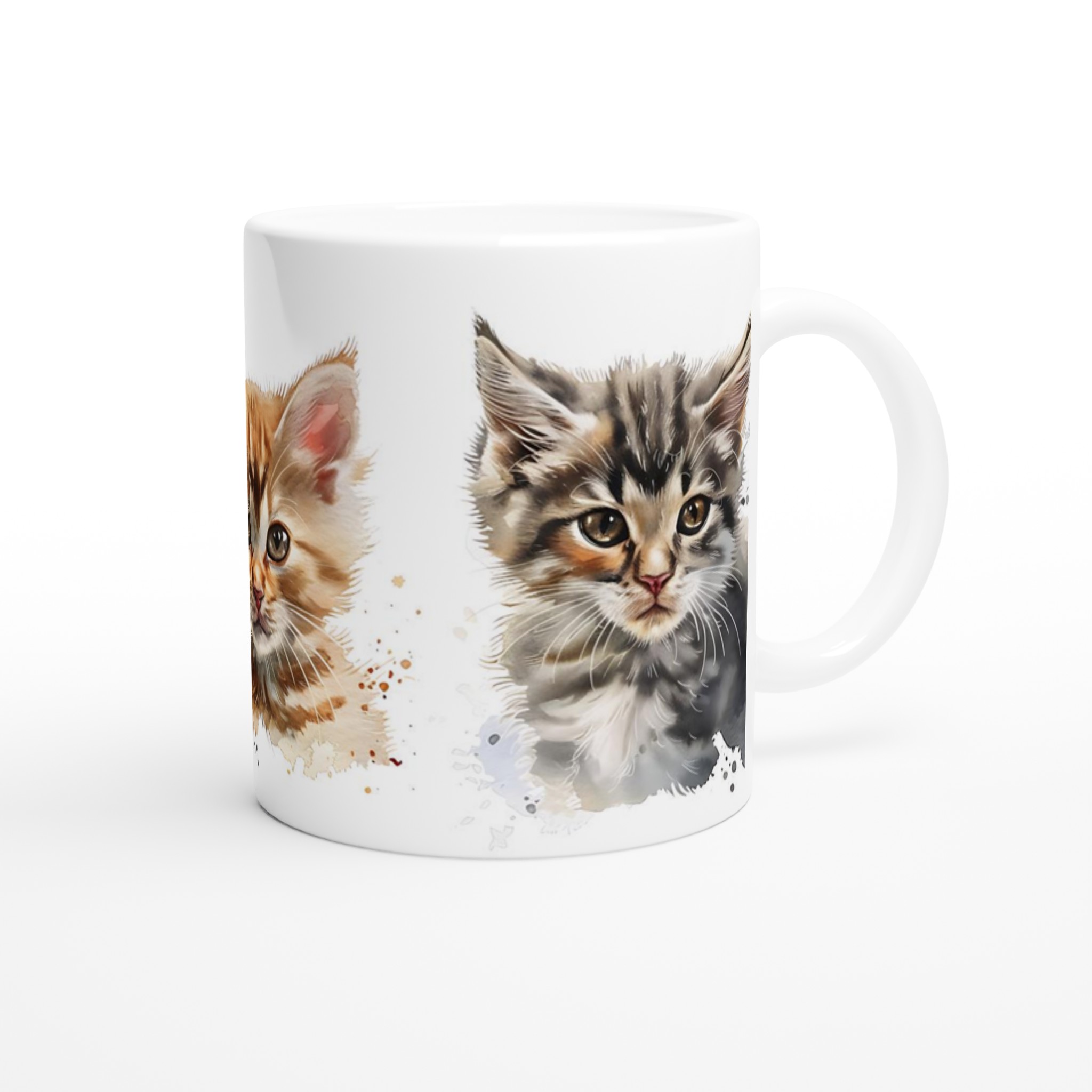 Lyft din fikastund med denna bedårande keramiska mugg, prydd med charmerande akvarellillustrationer av lekfulla kattungar. Varje klunk blir en mysig stund, vare sig det är morgonkaffet, kvällens varma choklad eller en lugnande kopp te. Den blanka vita ytan låter kattungarnas livfulla färger verkligen poppa, och trycket behåller sin glans även efter otaliga turer i mikron och diskmaskinen.