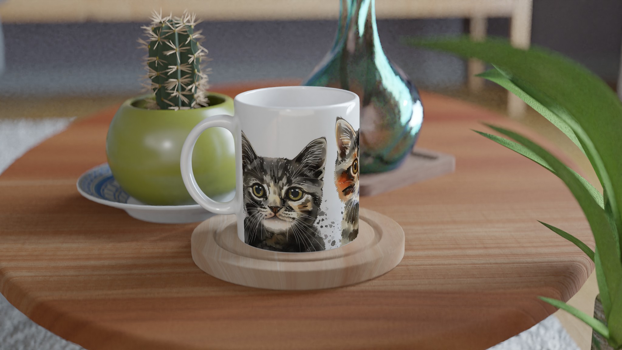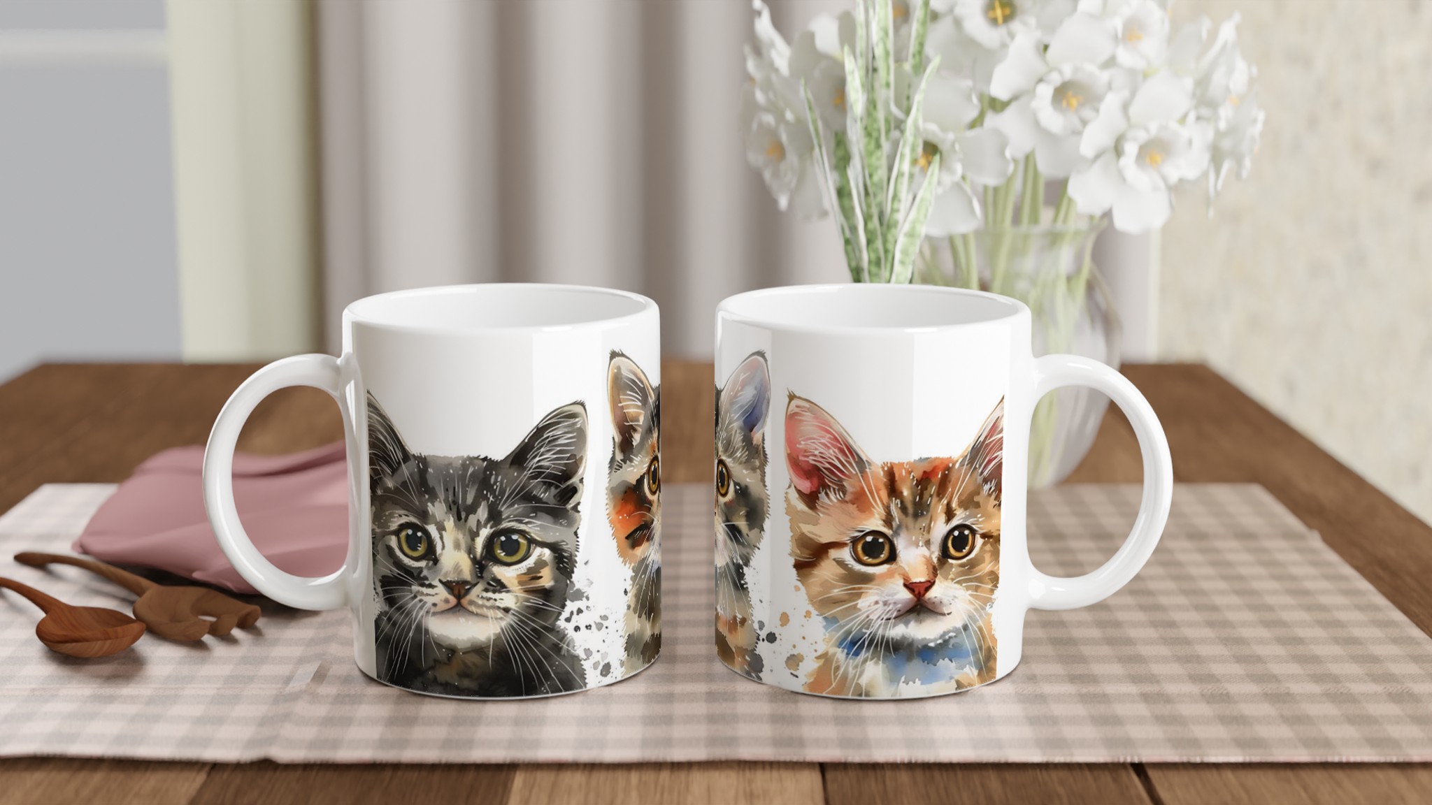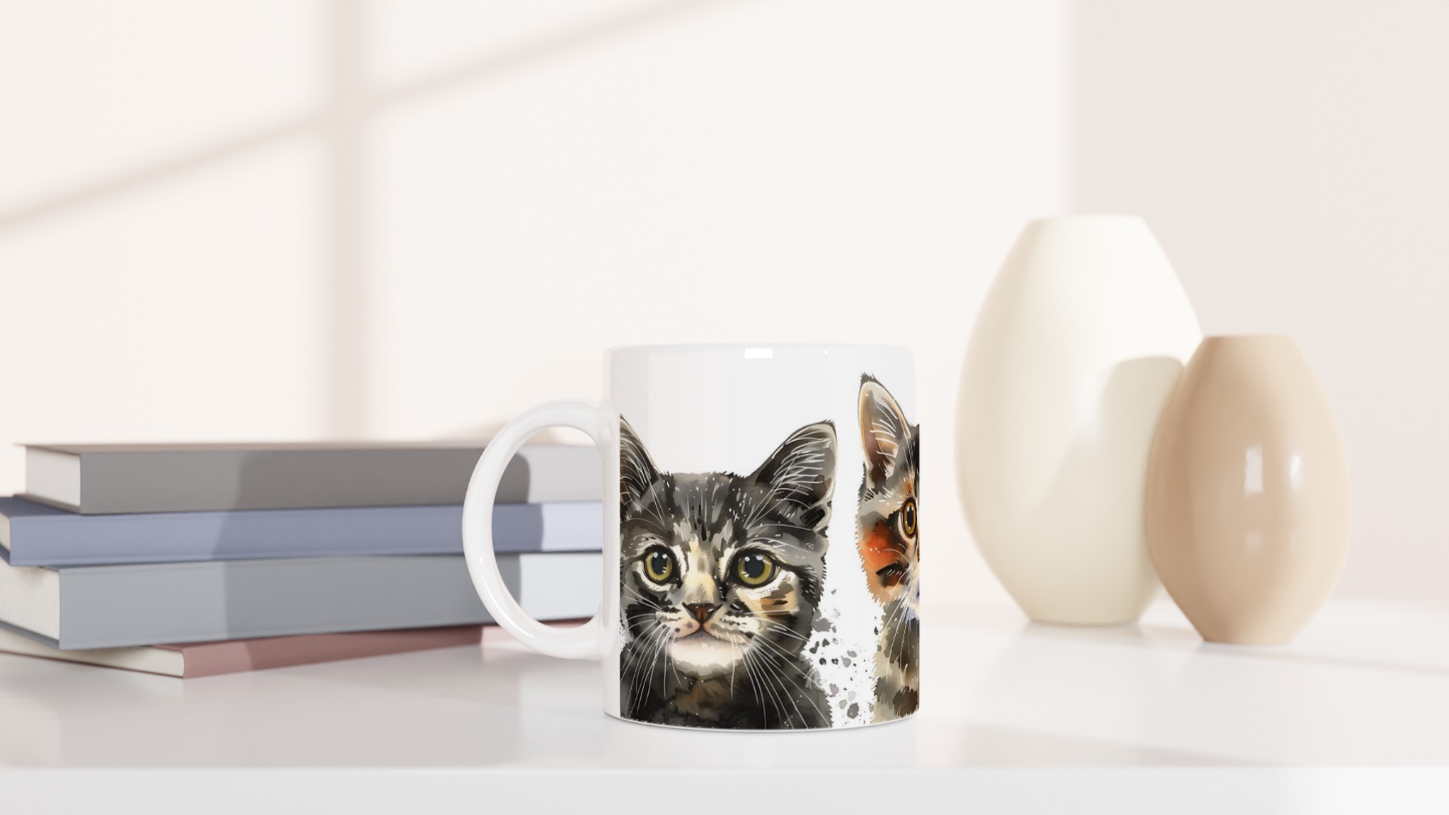 Gör varje fika till en mysig stund med vår charmiga keramiska mugg, prydd med bedårande akvarellkattungar. Denna mugg fångar den lekfulla och mjuka känslan av små kattvänner, med levande färger och konstnärliga penseldrag som smälter hjärtan. Oavsett om du är en hängiven kattägare eller bara älskar söta djurmotiv, blir denna mugg snabbt en vardagsfavorit – perfekt för morgonkaffet, kvällens varma choklad eller när du bara vill njuta av en kopp te.