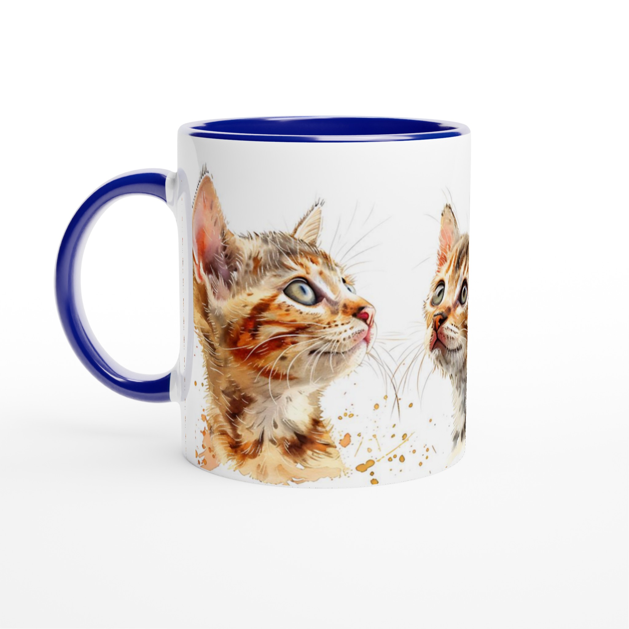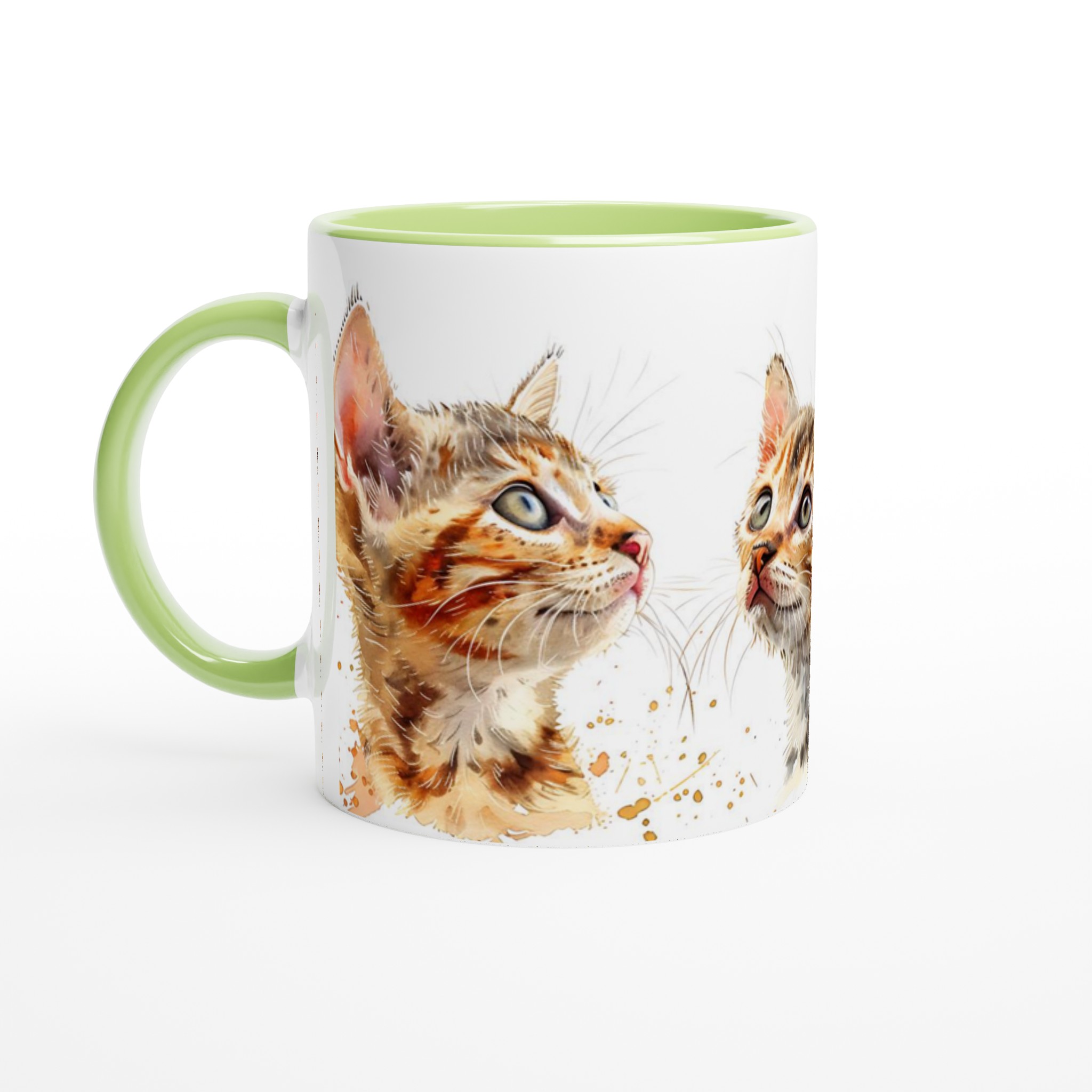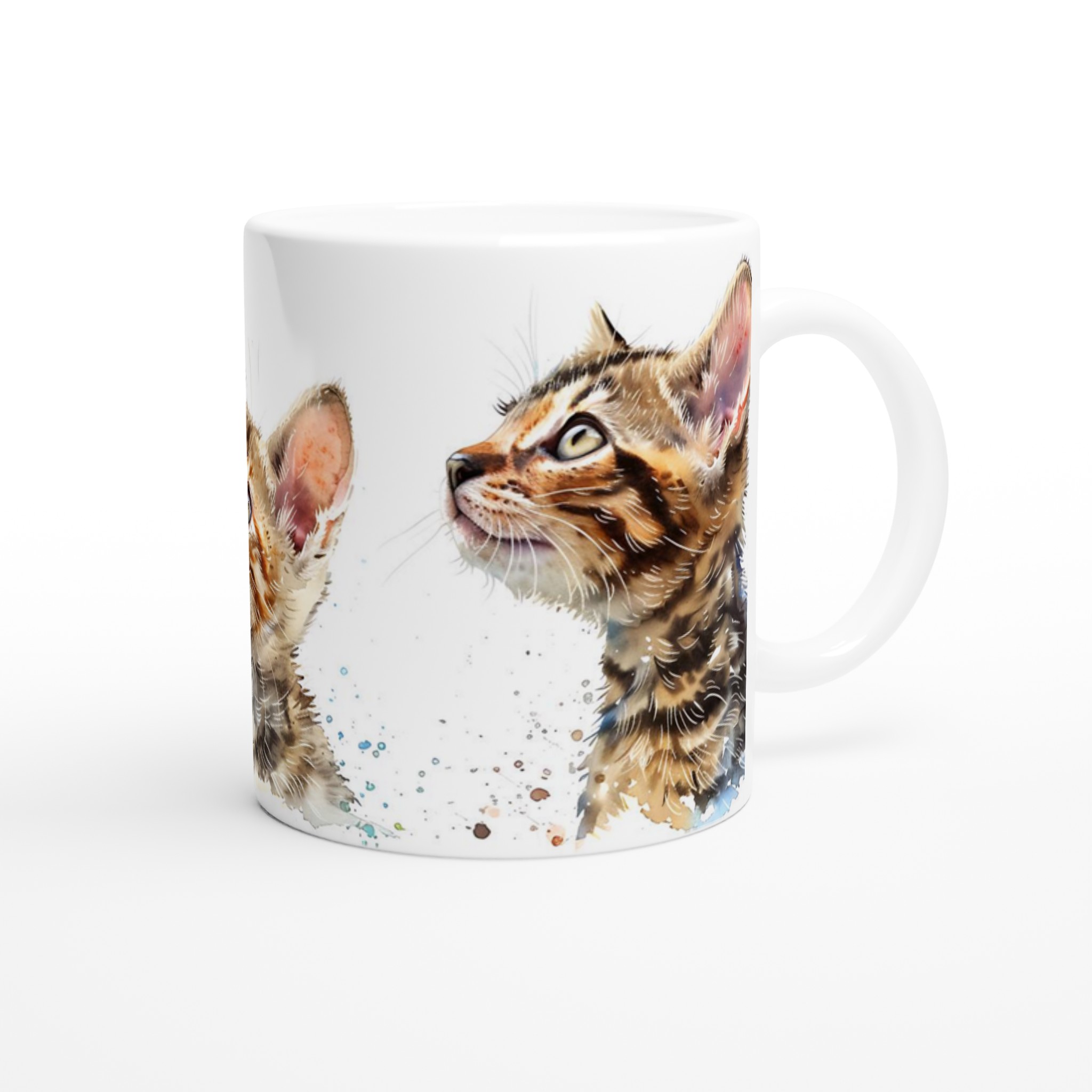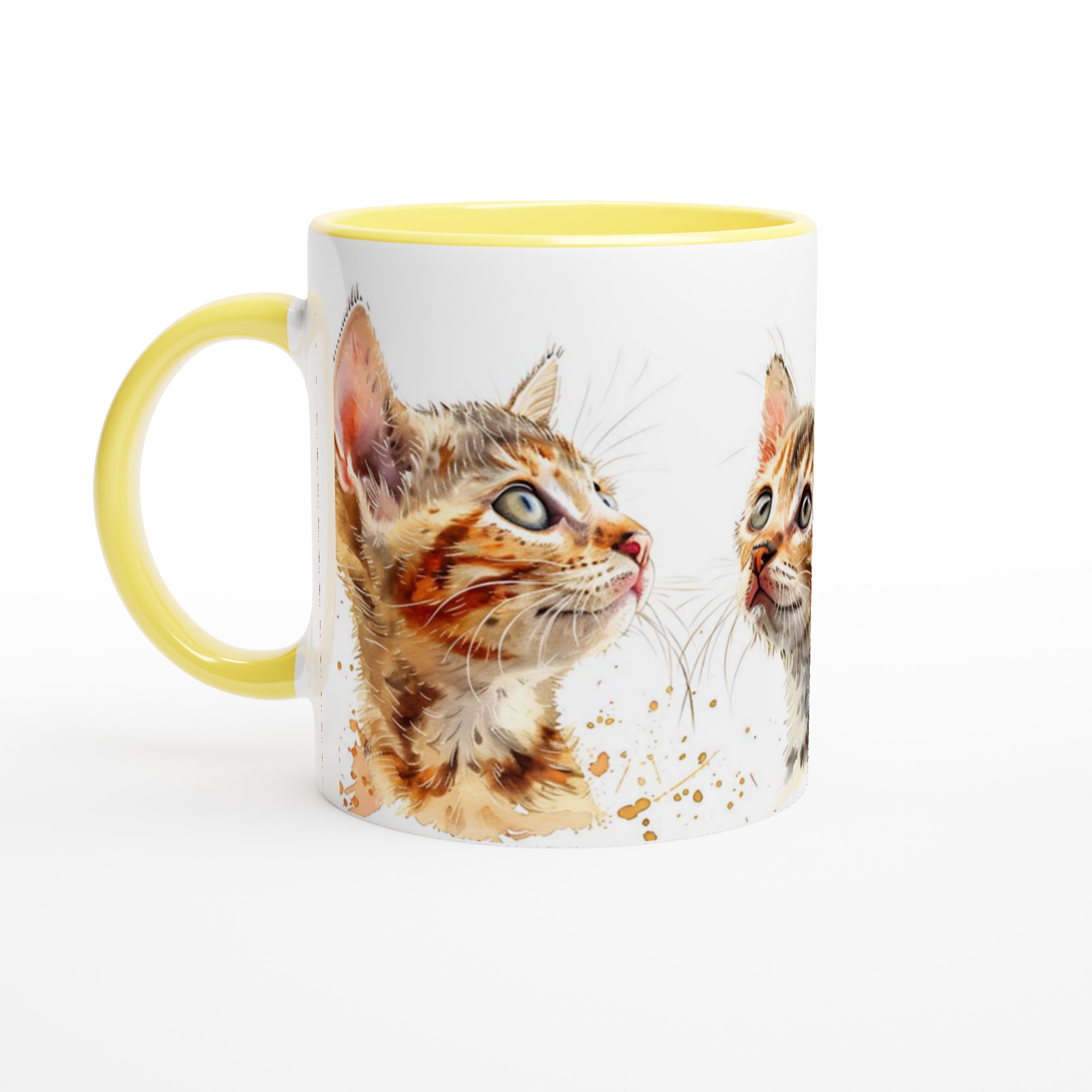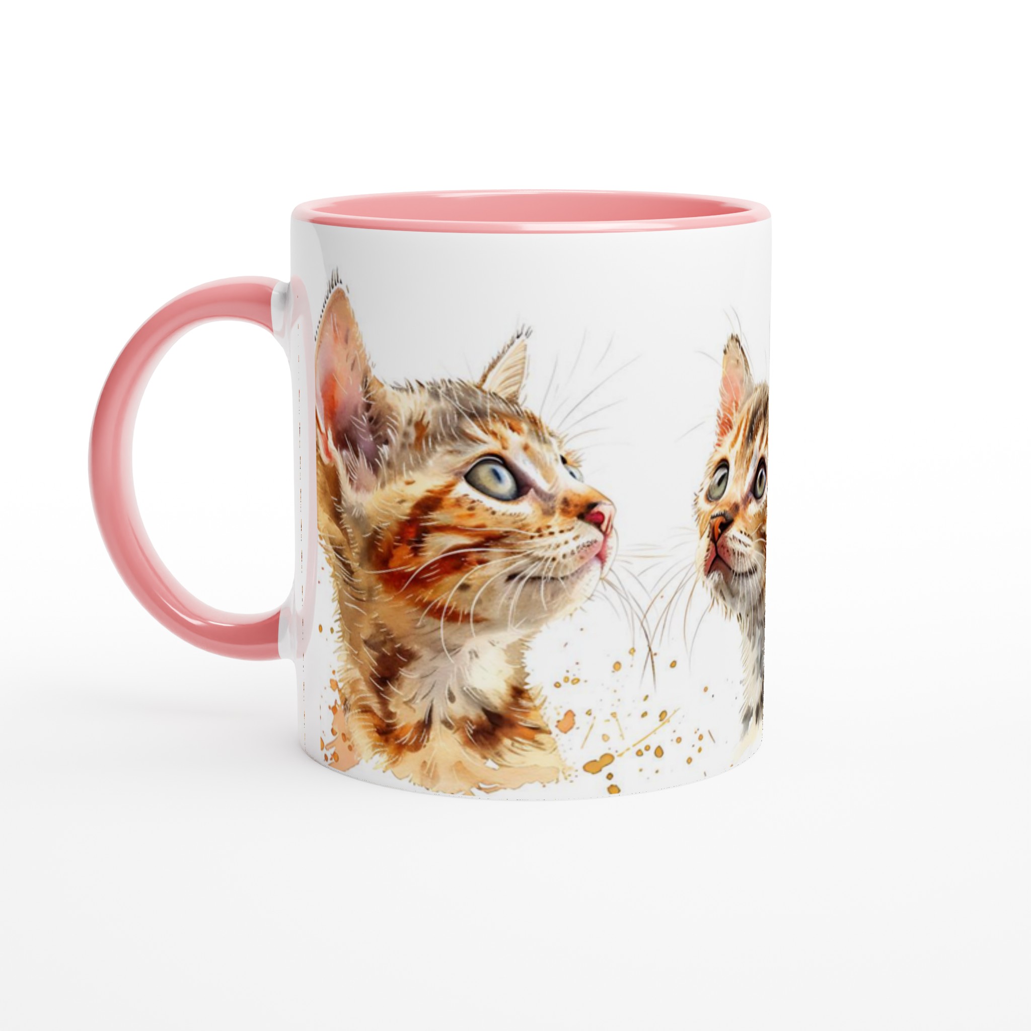 Fånga hjärtat hos varje kattälskare med denna bedårande keramiska mugg, prydd med tre lekfulla akvarellkattungar. Varje detalj, från de nyfikna ögonen till de mjuka pälsdetaljerna, är framhävd med levande färger och konstnärliga stänk, vilket ger en unik och charmig känsla. Denna mugg blir snabbt en vardagsfavorit, perfekt för morgonkaffet, kvällens varma choklad eller när du bara vill njuta av en kopp te.