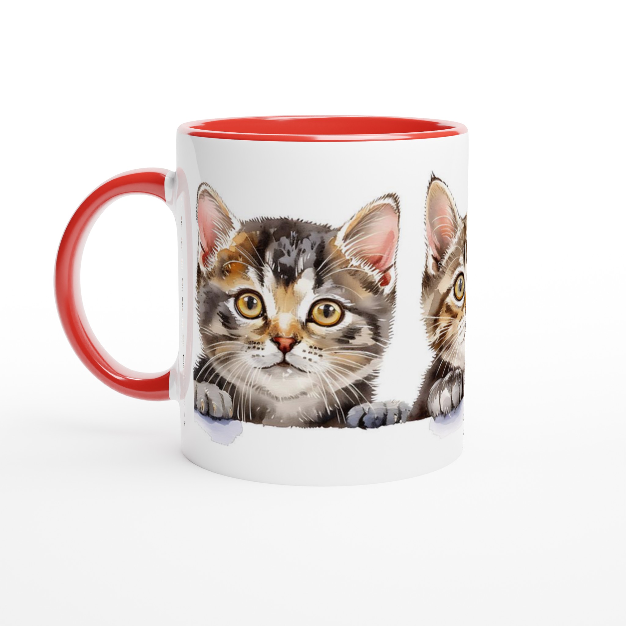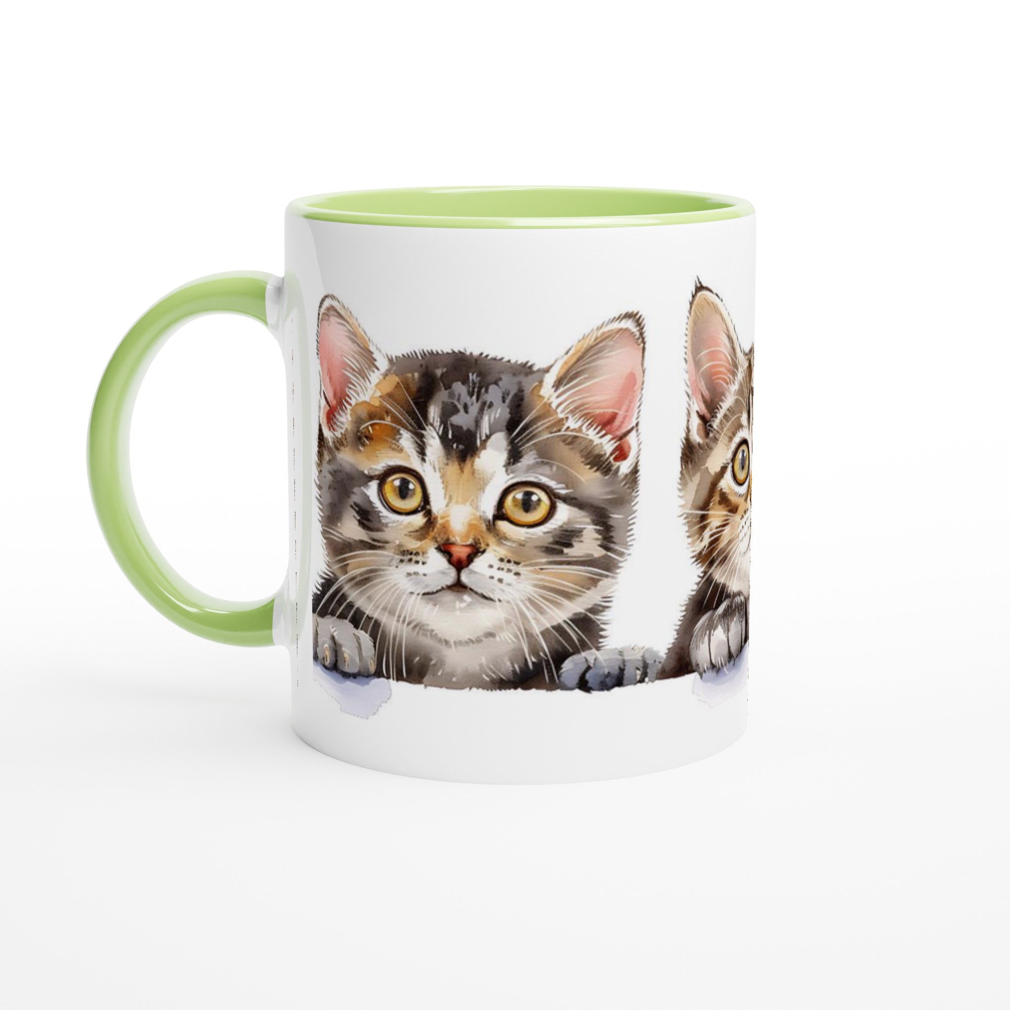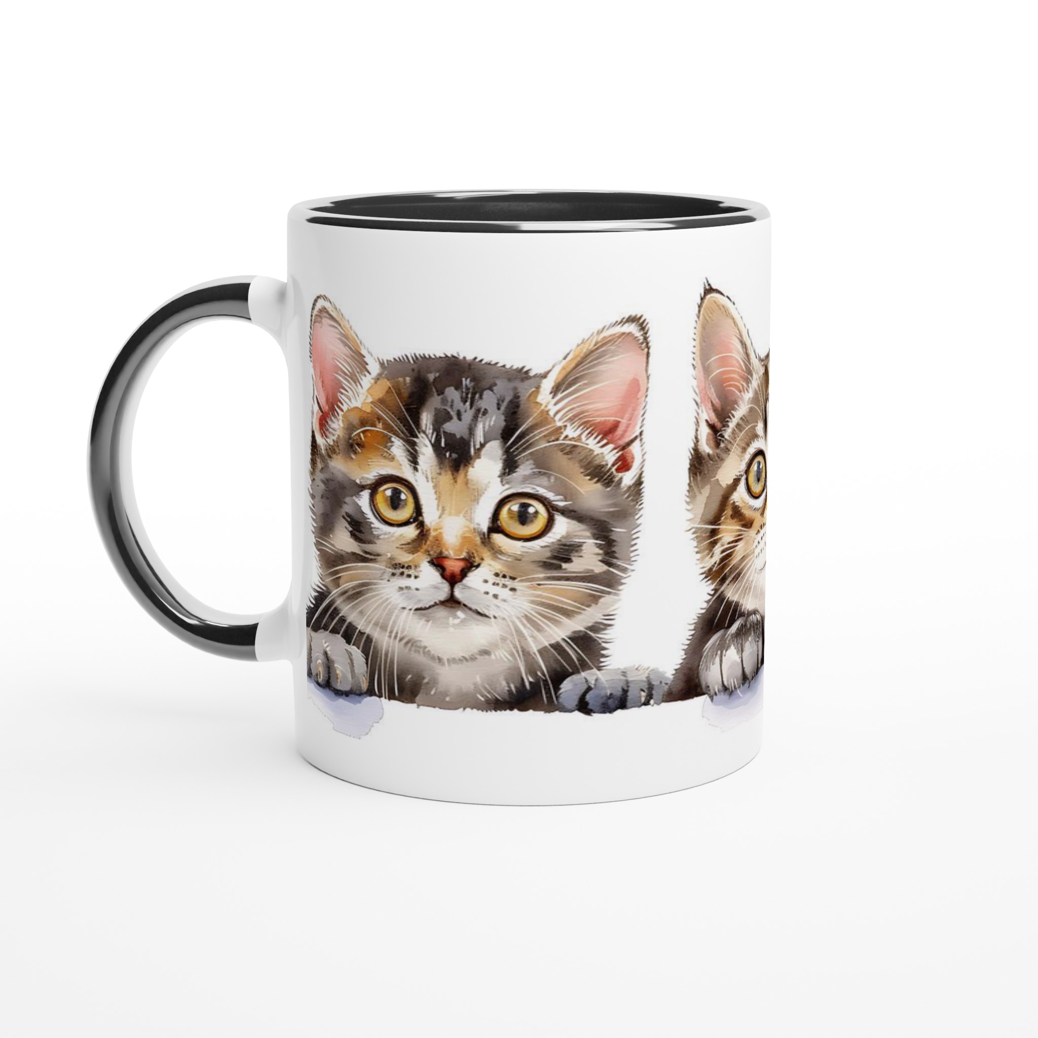 Låt dessa bedårande akvarellkattungar förgylla din fikastund! Denna charmiga keramiska mugg blir snabbt en vardagsfavorit, perfekt för morgonkaffet, kvällens varma choklad eller när du bara vill njuta av en kopp te. Med sitt hjärtevärmande motiv av nyfikna kattungar tillför den en dos glädje till varje klunk. Den blanka ytan framhäver de klara och levande färgerna i kattungarnas päls, som håller sig fina även efter många turer i mikron och diskmaskinen.