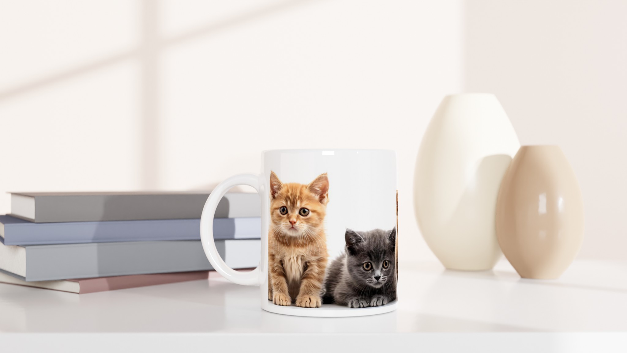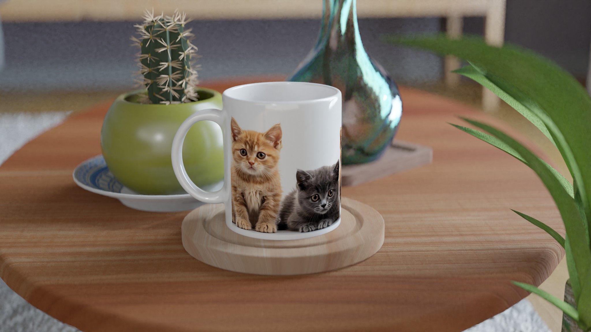Klassisk keramikmugg, 11 oz, med förtjusande kattungemotiv