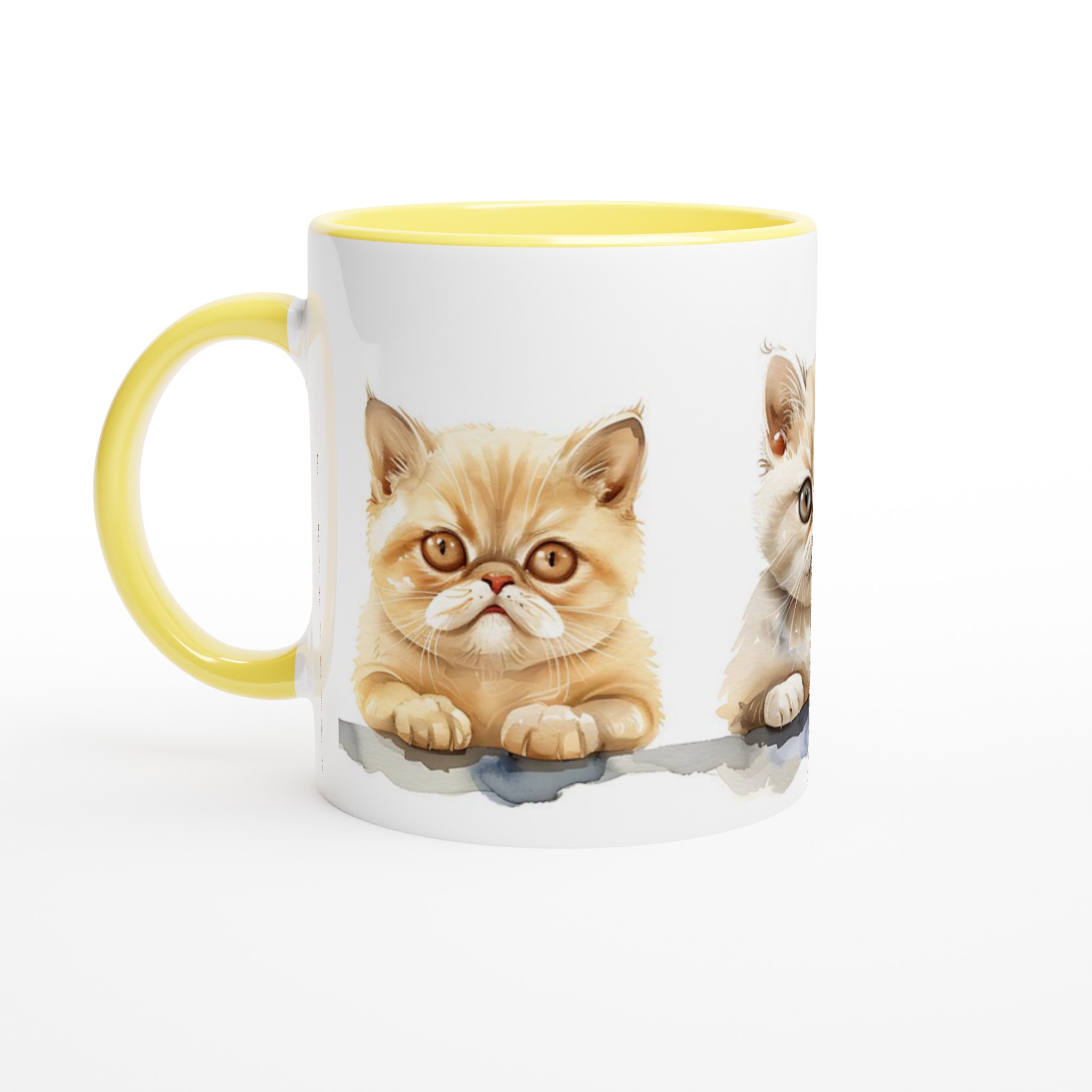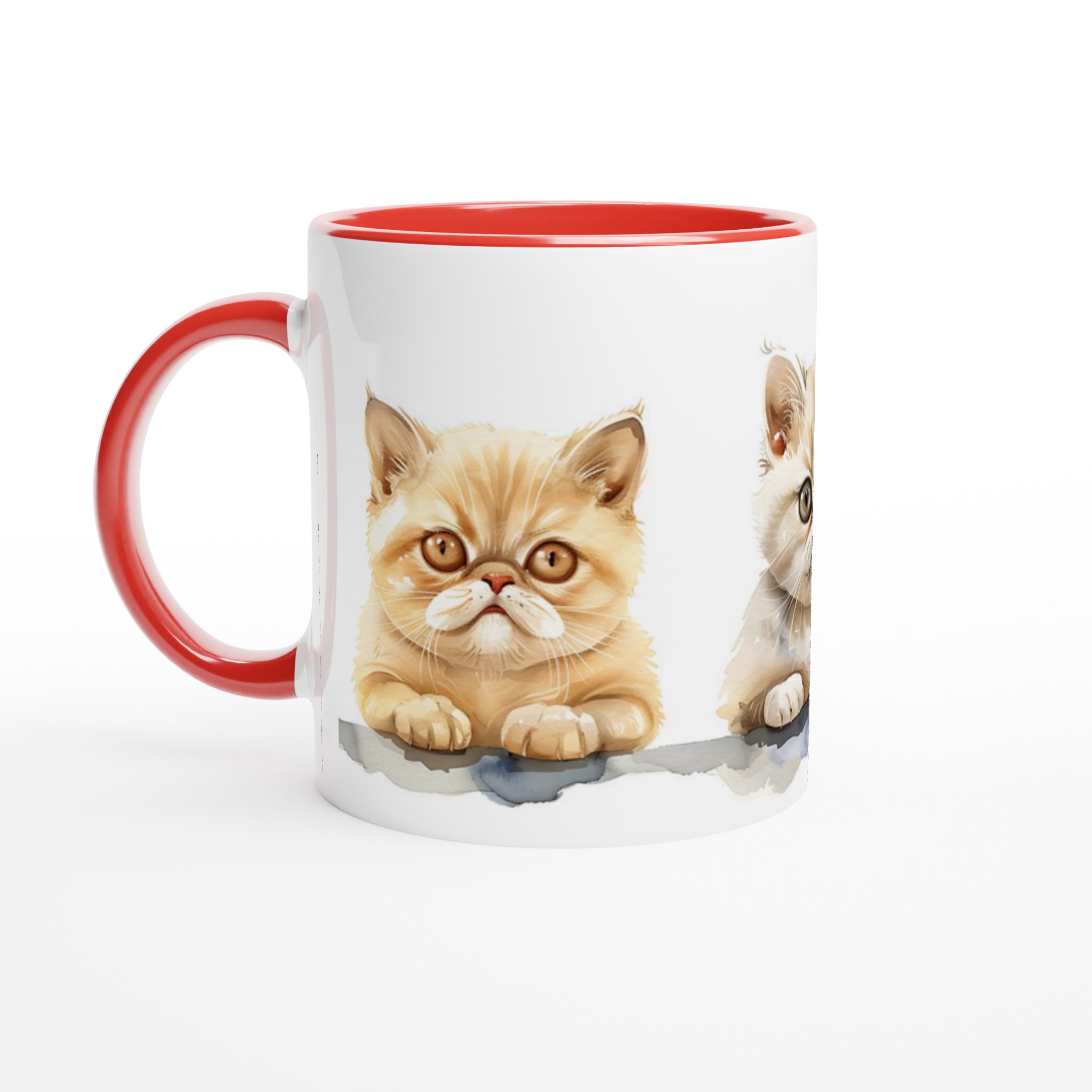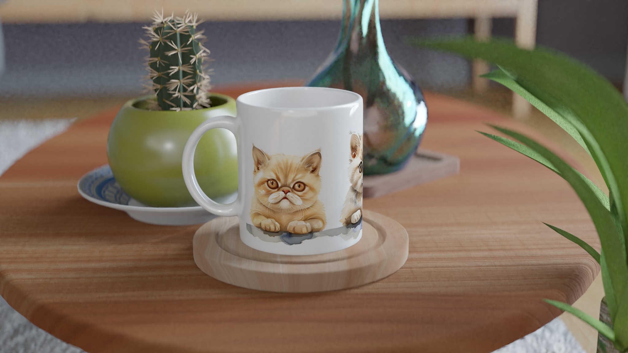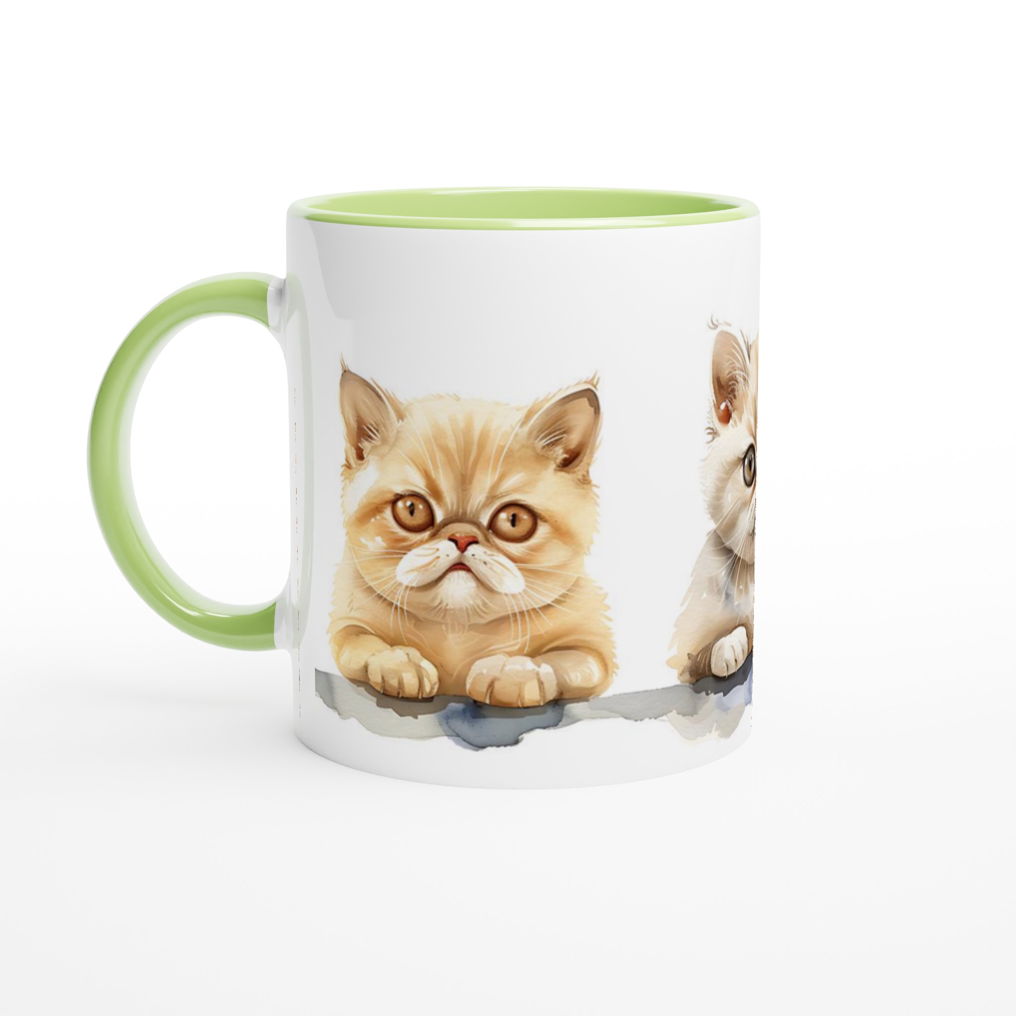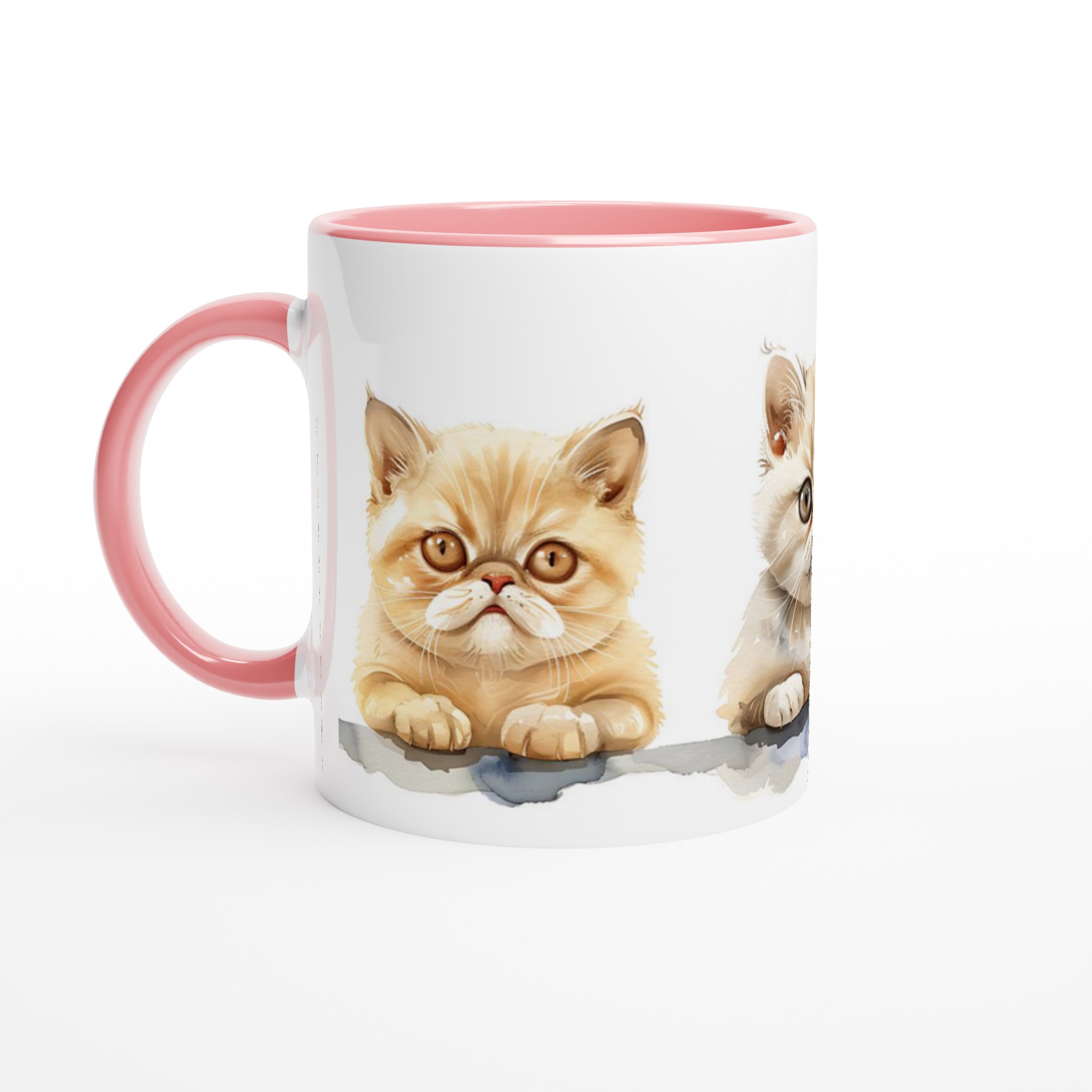 Förgyll varje dryckesstund med denna oemotståndliga keramiska mugg, prydd med bedårande kattungeporträtt i en mjuk akvarellstil. Dessa charmiga små vänner, med sina uttrycksfulla ögon och lekfulla nyfikenhet, kommer garanterat att sprida glädje och värme till din dag. Perfekt för morgonkaffet, kvällens varma choklad eller när du bara vill njuta av en kopp te.