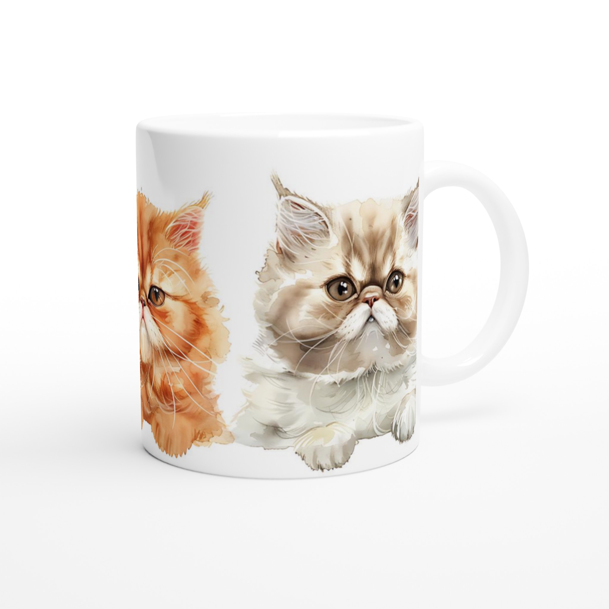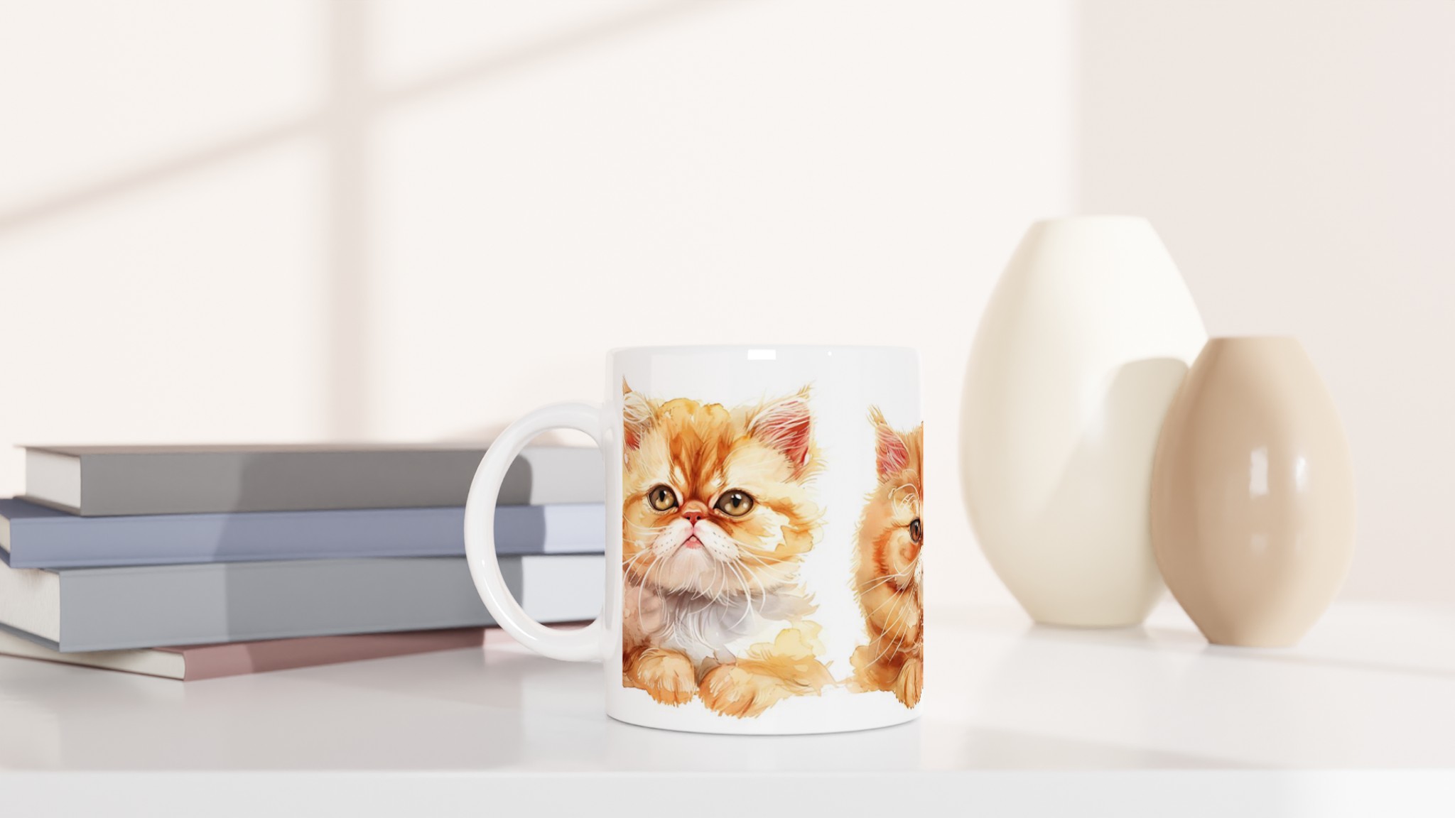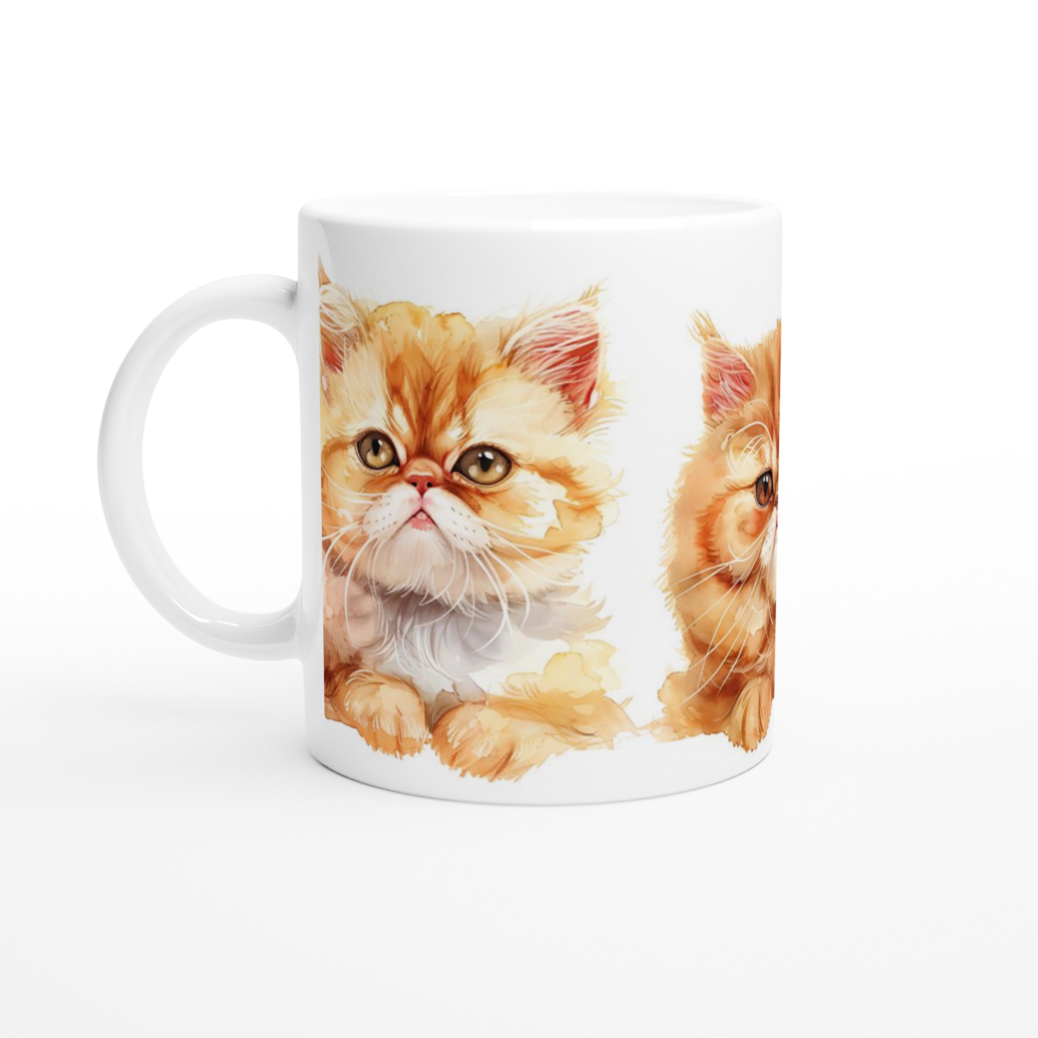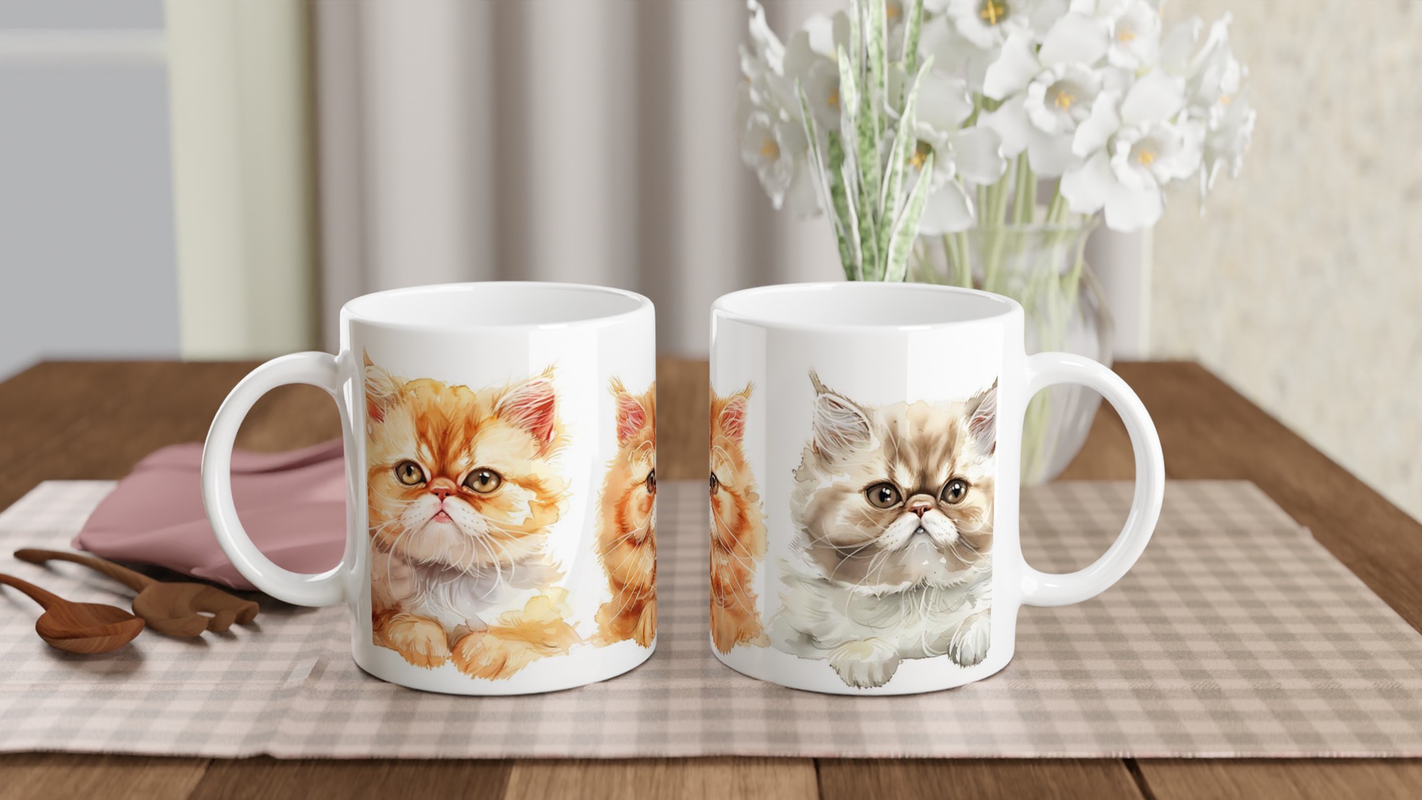 Lyft din fikastund med denna oemotståndliga keramiska mugg, prydd med bedårande kattungeporträtt i en mjuk akvarellstil. Varje klunk blir en mysig upplevelse, perfekt för morgonkaffet, kvällens varma choklad eller när du bara vill njuta av en kopp te. De söta, lurviga ansiktena med uttrycksfulla ögon kommer garanterat att smälta ditt hjärta och sprida glädje genom hela dagen. Den blanka vita ytan framhäver kattungarnas klara och levande färger, som håller sig fina även efter många turer i mikron och diskmaskinen.