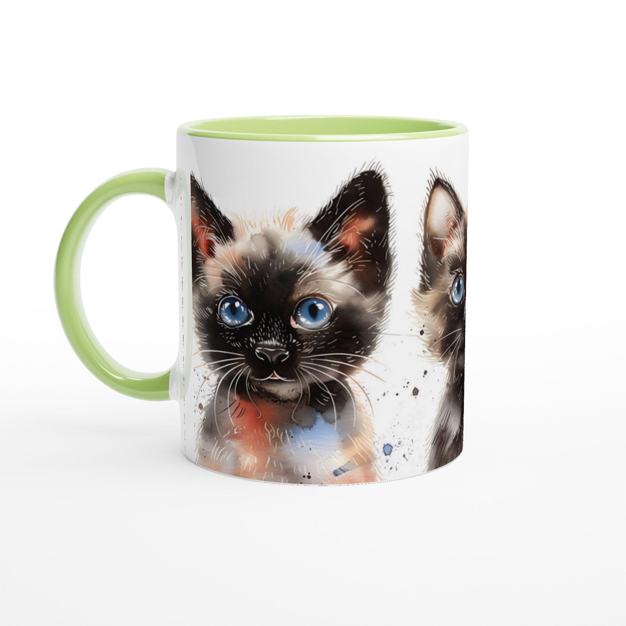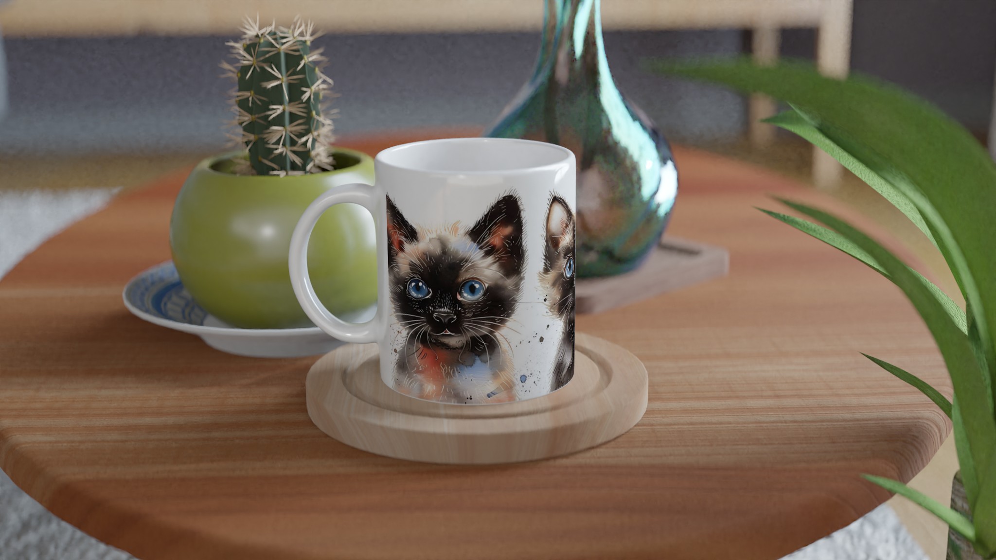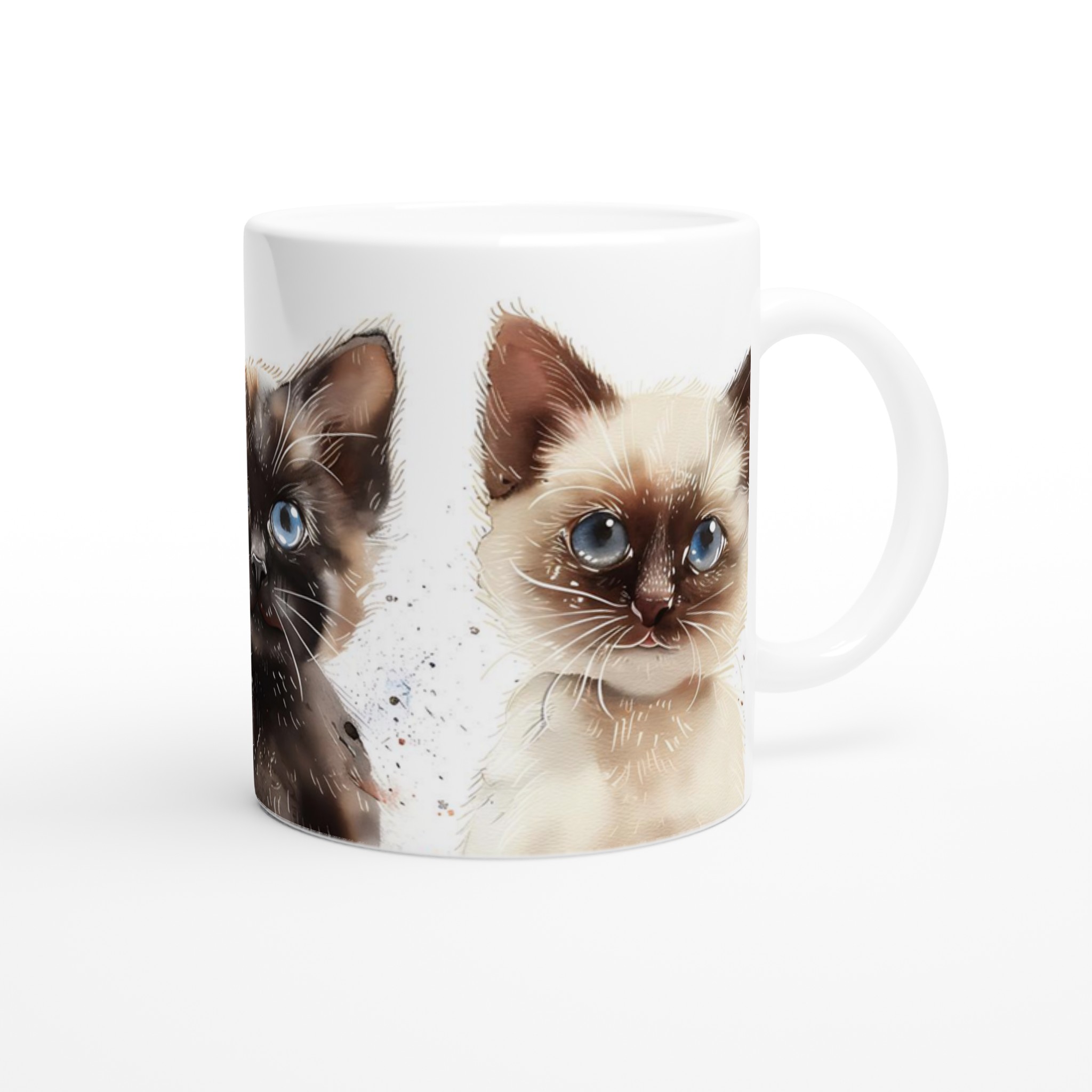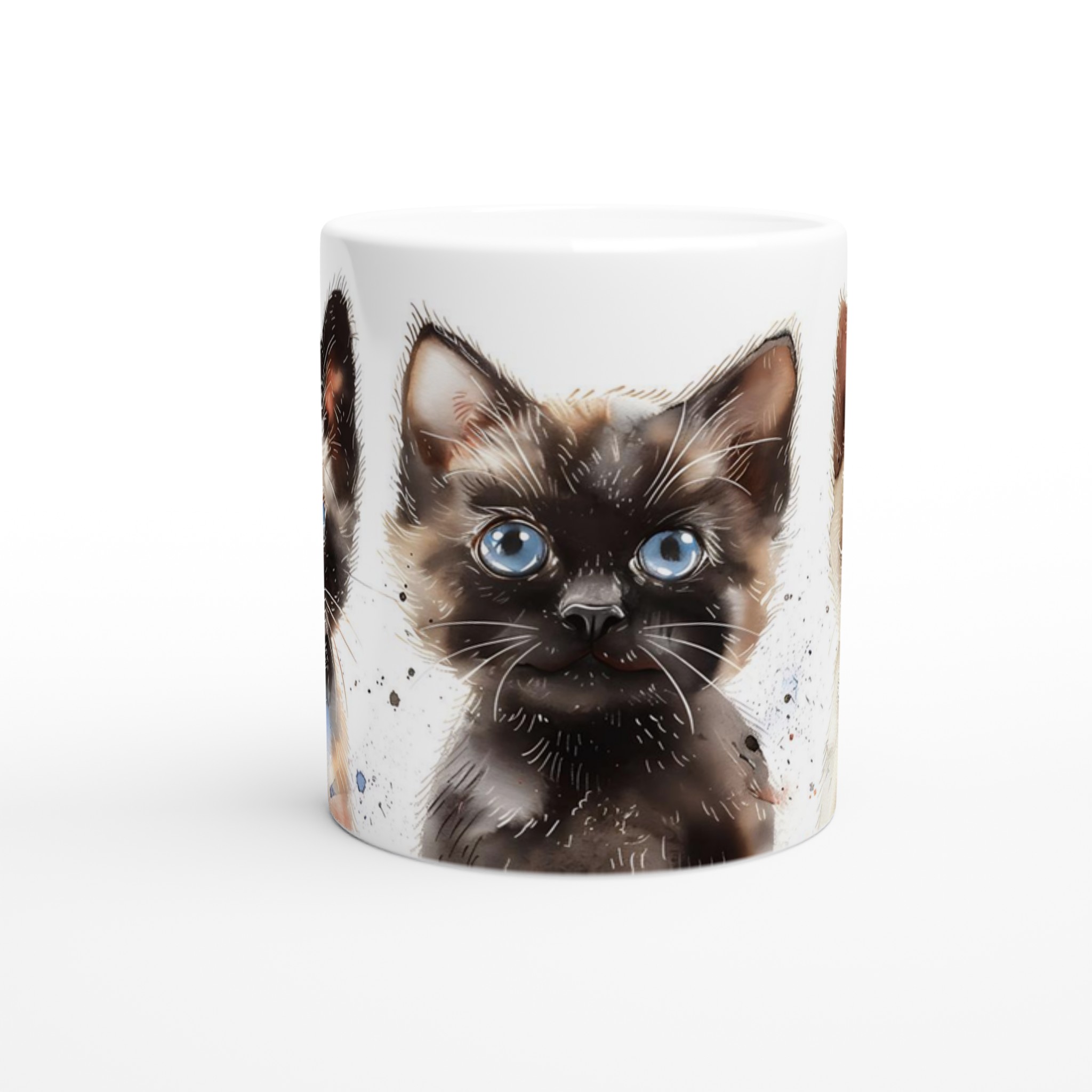 Fånga charmen hos dessa bedårande siameskattungar med en keramisk mugg som blir en omedelbar favorit. Med sina djupt blå ögon och lekfulla uttryck, handmålade i en akvarellinspirerad stil, är denna mugg en hyllning till våra fyrbenta vänner. Perfekt för morgonkaffet, kvällens varma choklad eller när du bara vill njuta av en kopp te i sällskap av dessa söta ansikten.