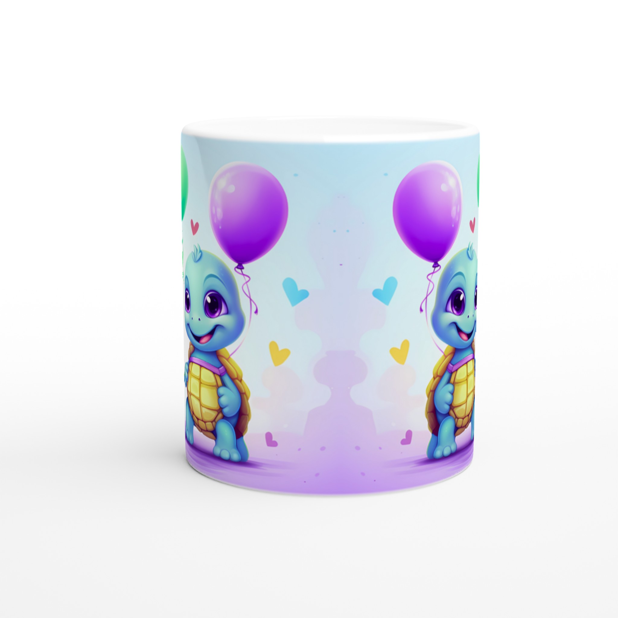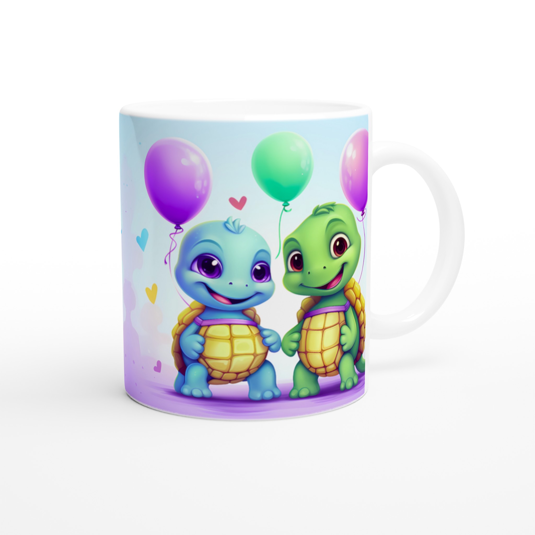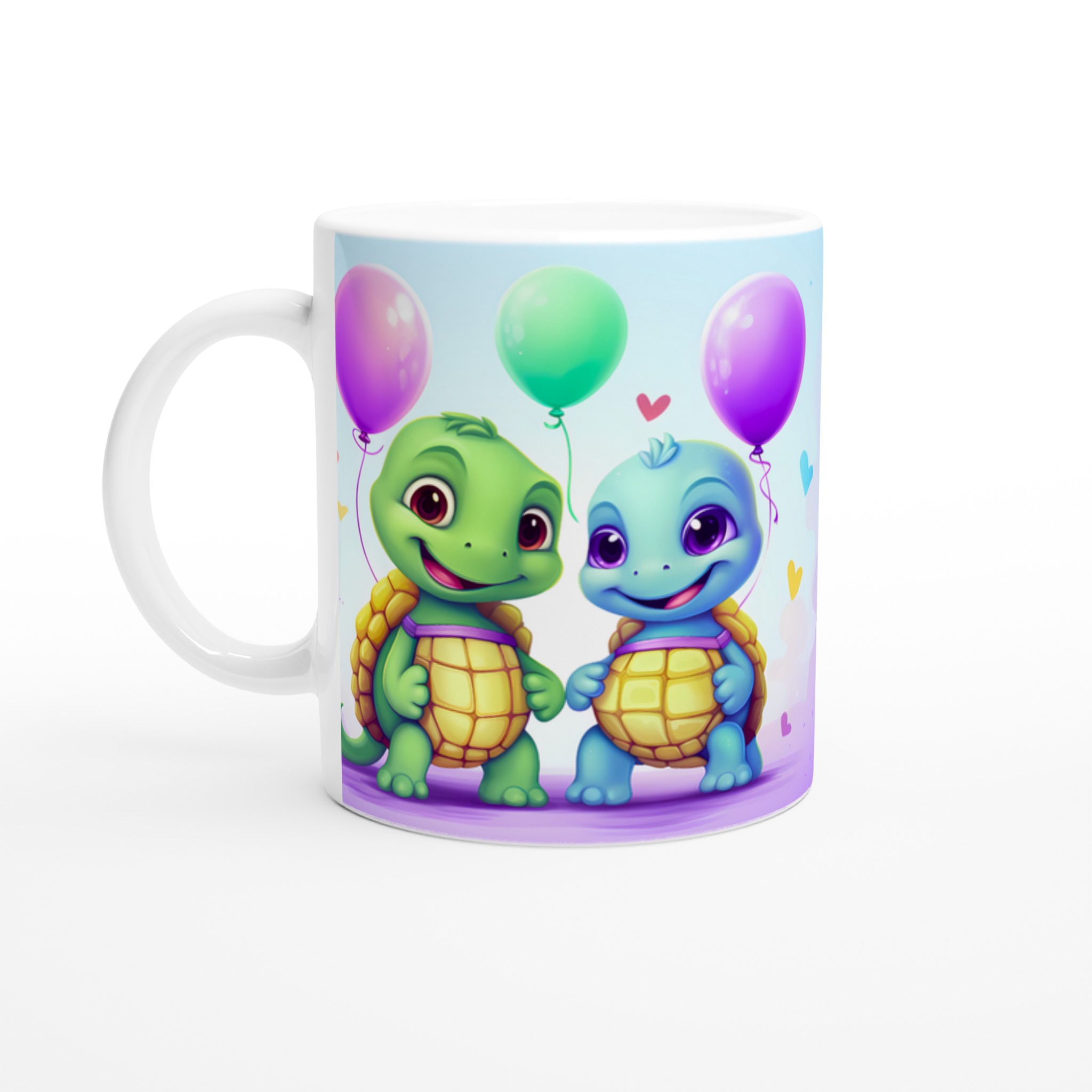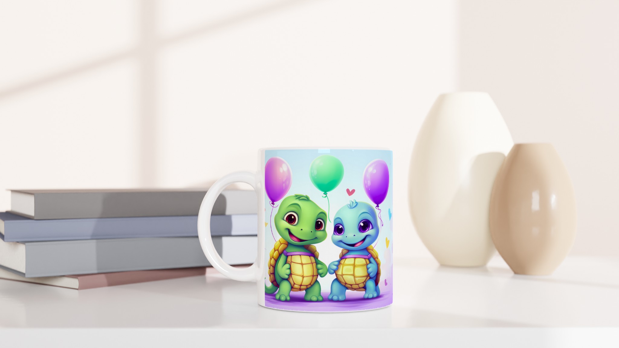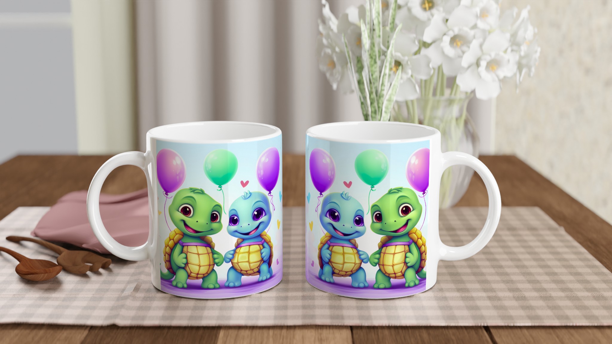 Fånga glädjen och charmen med vår Söta Sköldpaddsvänner Mugg, prydd med bedårande sköldpaddor som sprider leenden. Denna förtrollande keramiska mugg blir snabbt en vardagsfavorit, perfekt för morgonkaffet, kvällens varma choklad eller när du bara vill njuta av en kopp te. Den blanka vita ytan ser till att de livfulla bilderna av våra sköldpaddsvänner framhävs med klara och levande färger, som håller sig fina även efter många turer i mikron och diskmaskinen.