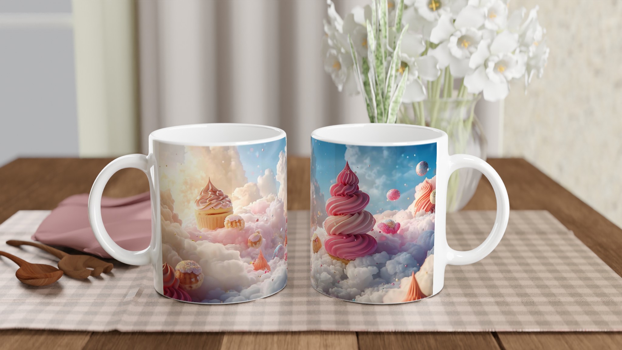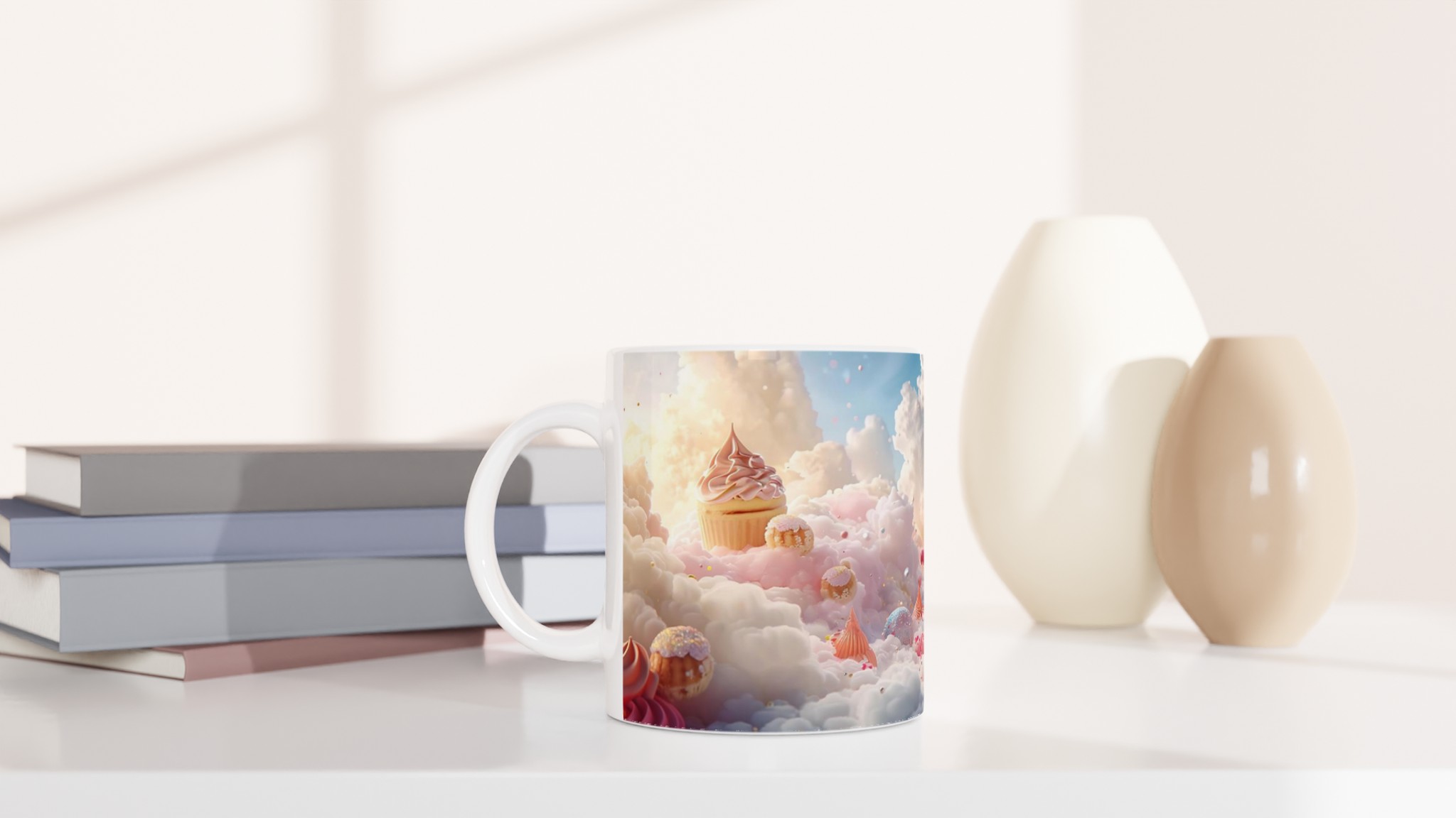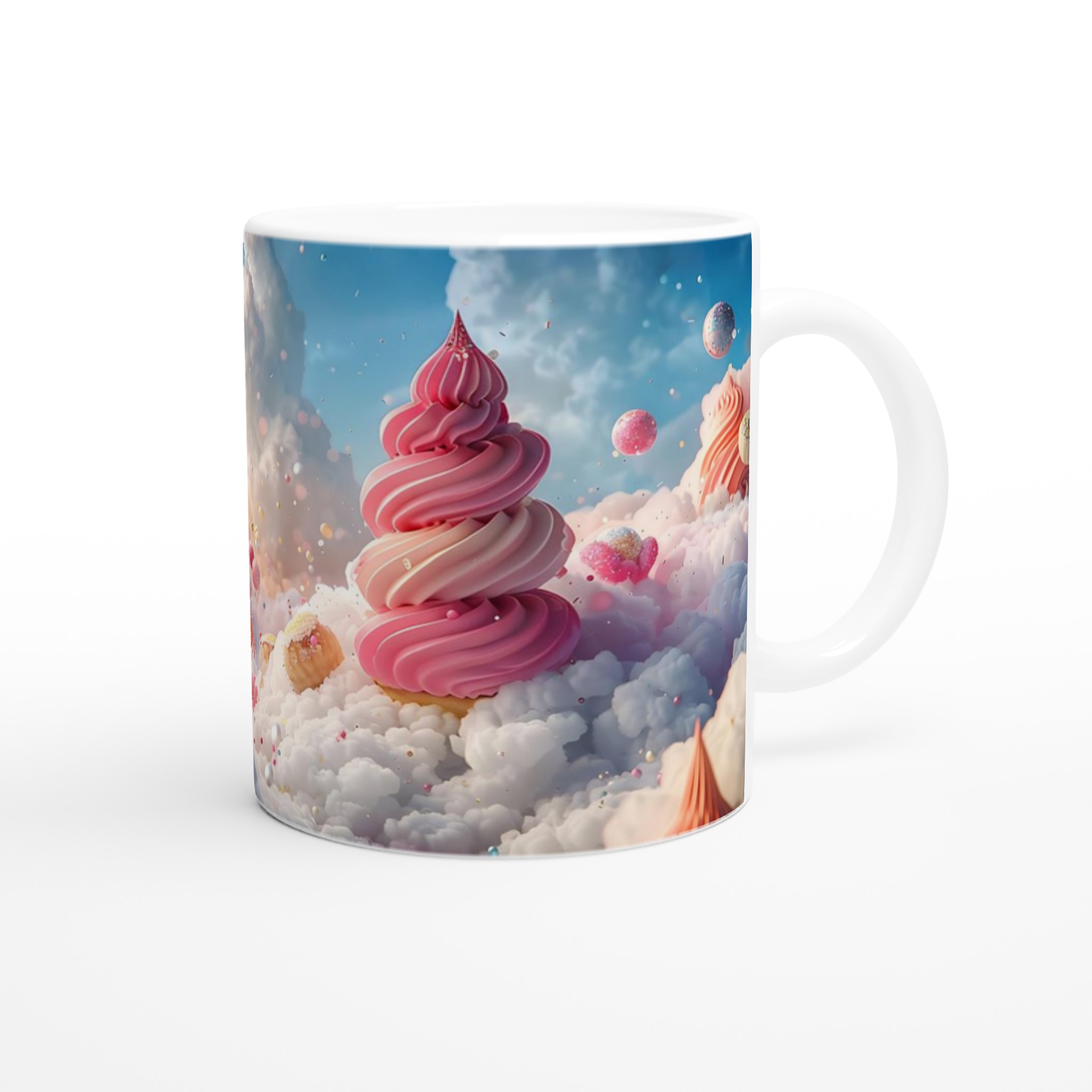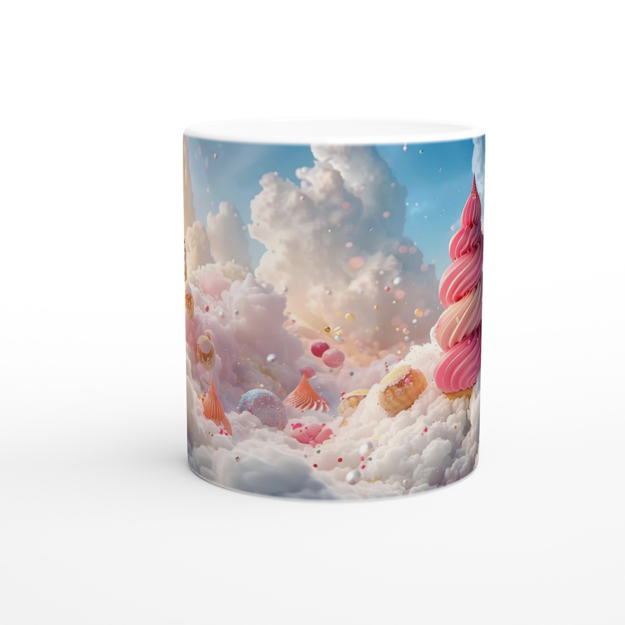 Stig in i en värld av sockersöta drömmar med denna förtrollande keramiska mugg! Inspirerad av fluffiga moln och pastellfärgade bakverk, fångar den en lekfull och glädjefylld känsla som förgyller varje sip. Perfekt för morgonkaffet, kvällens varma choklad eller när du bara vill njuta av en kopp te i en mugg som sprider lite extra magi.