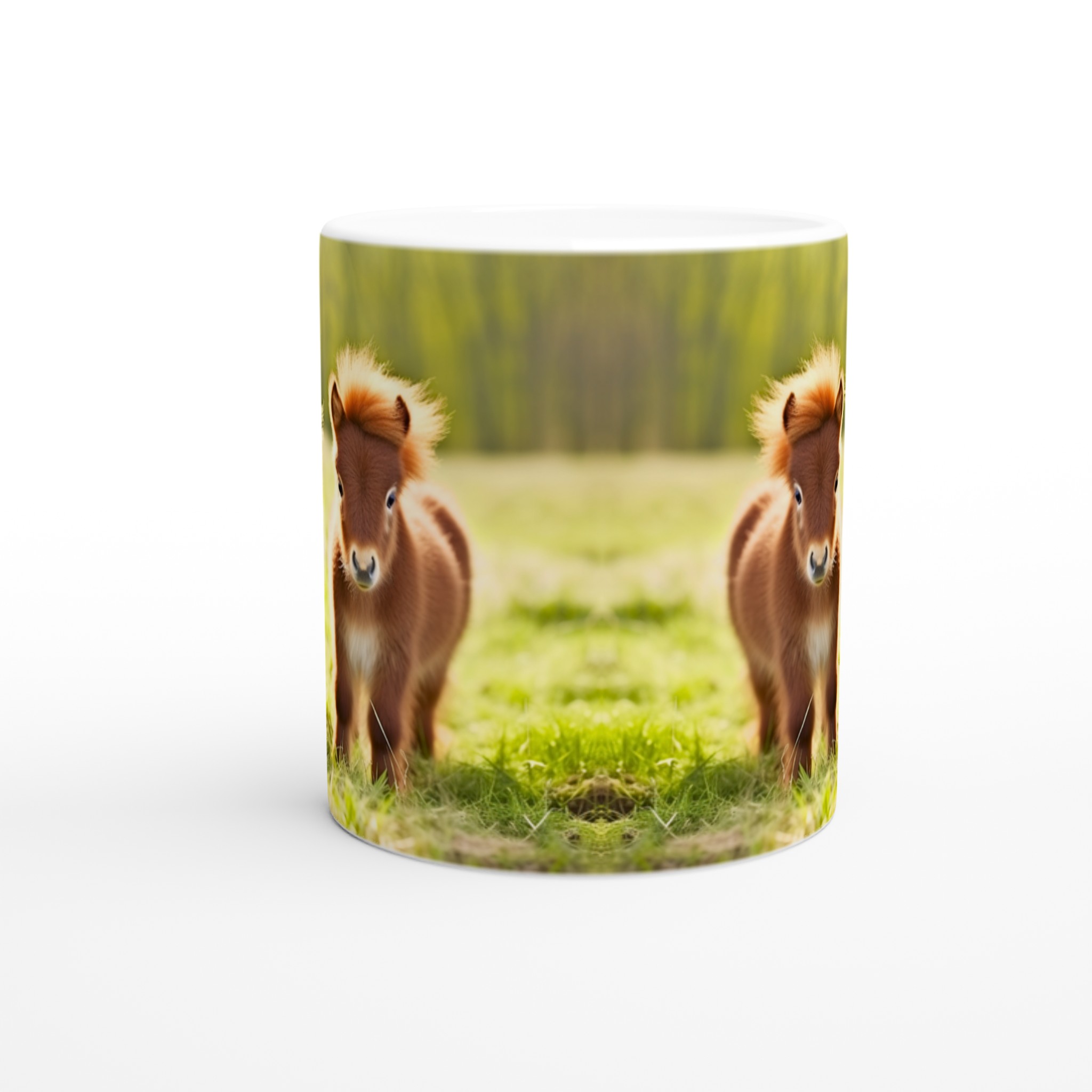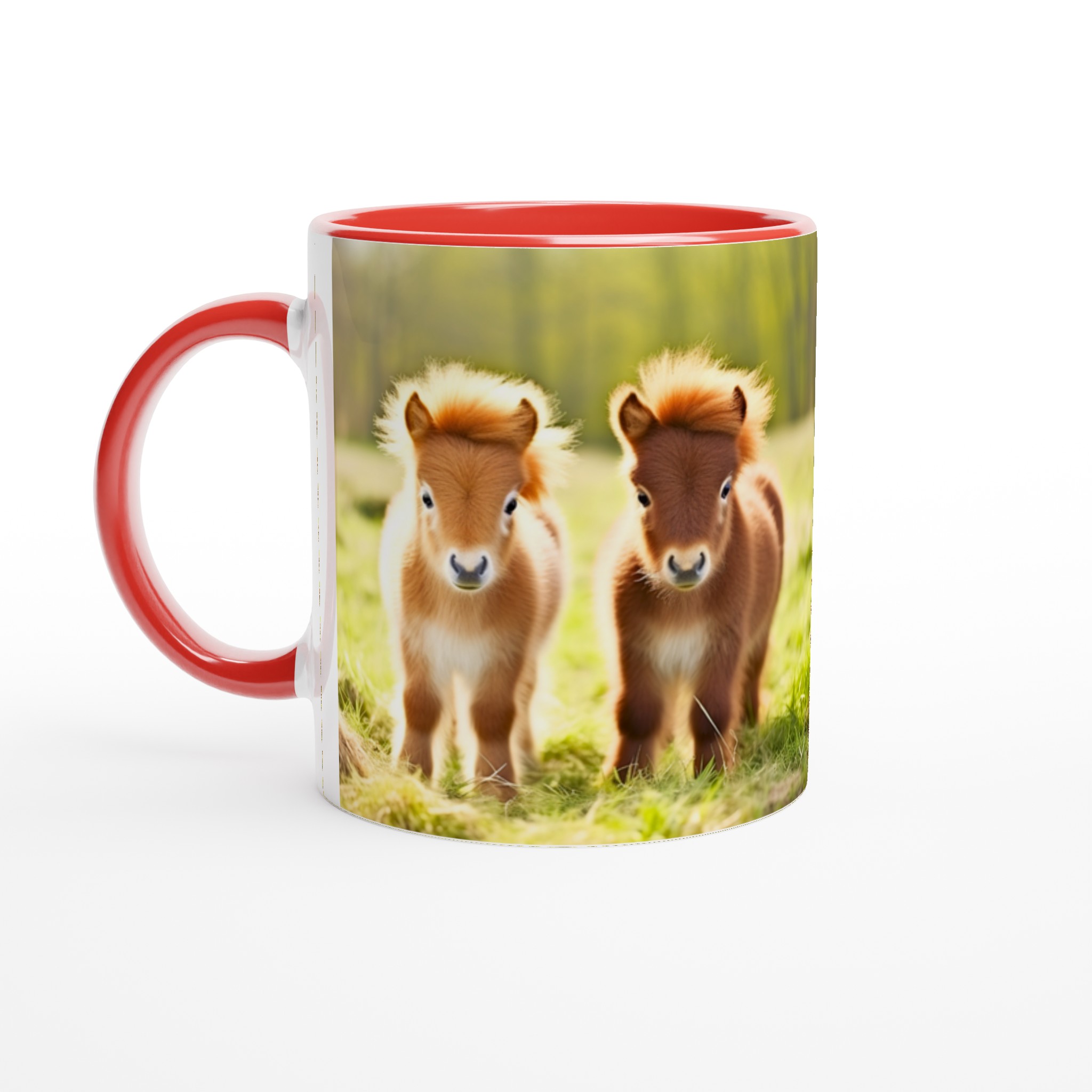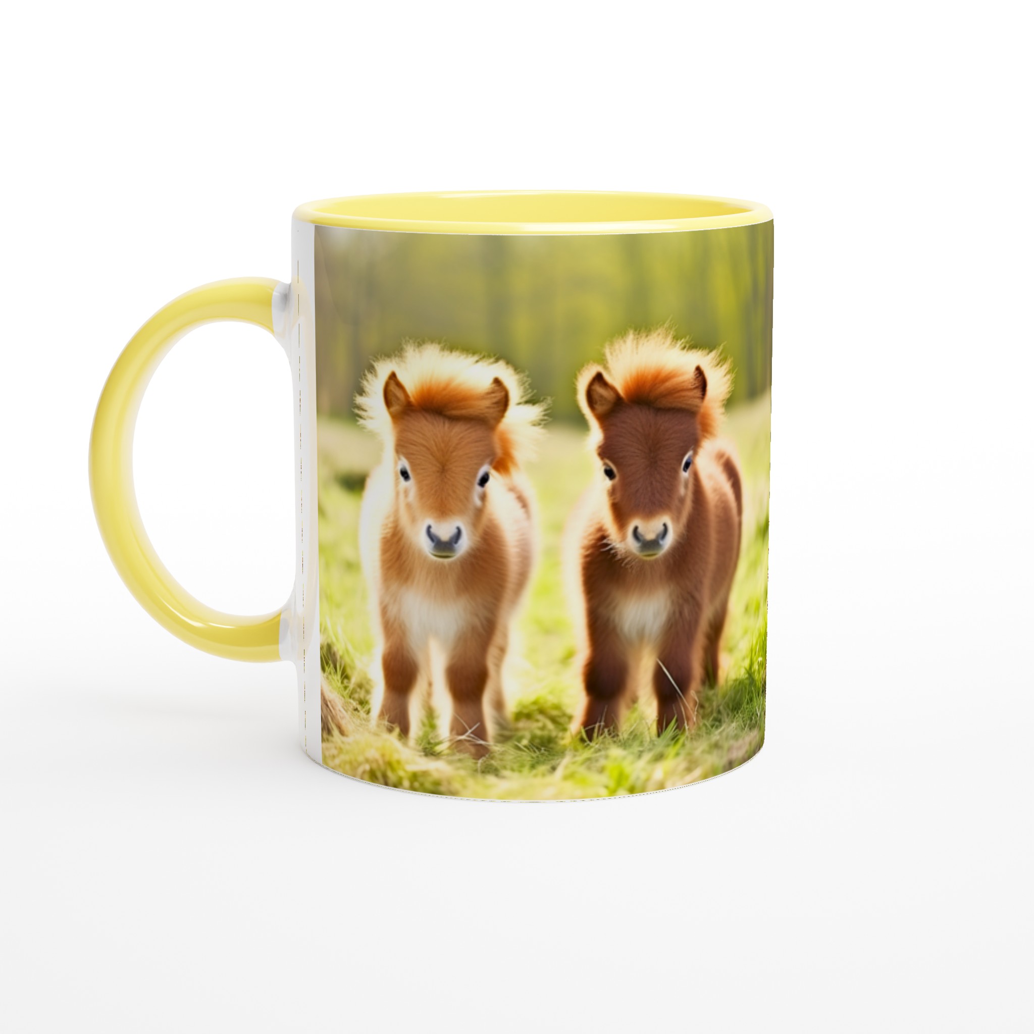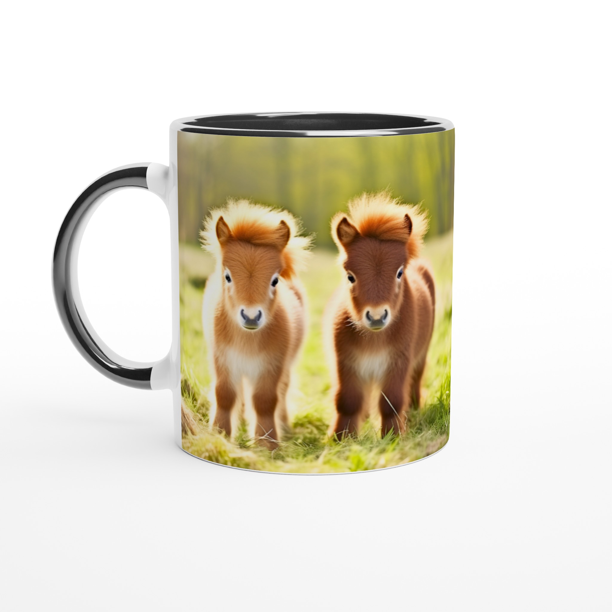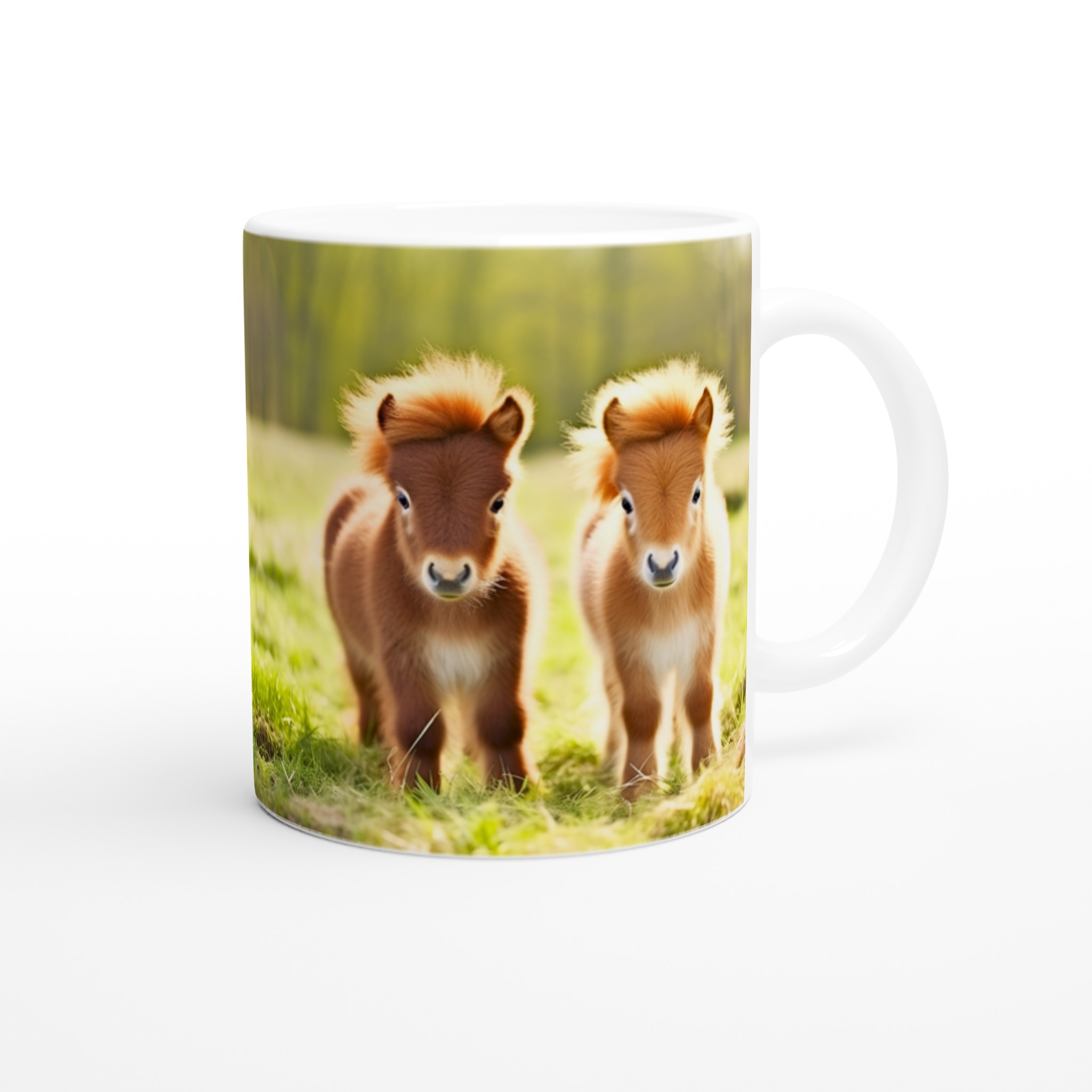 Vakna upp till glädje varje dag med denna oemotståndliga keramiska mugg, prydd med de sötaste små föl som charmar dig med sina fluffiga manar och stora, vänliga ögon. Denna mugg blir snabbt en vardagsfavorit, perfekt för morgonkaffet, kvällens varma choklad eller när du bara vill njuta av en kopp te. Den blanka vita ytan gör att trycken framhävs med klara och levande färger, som håller sig fina även efter många turer i mikron och diskmaskinen.