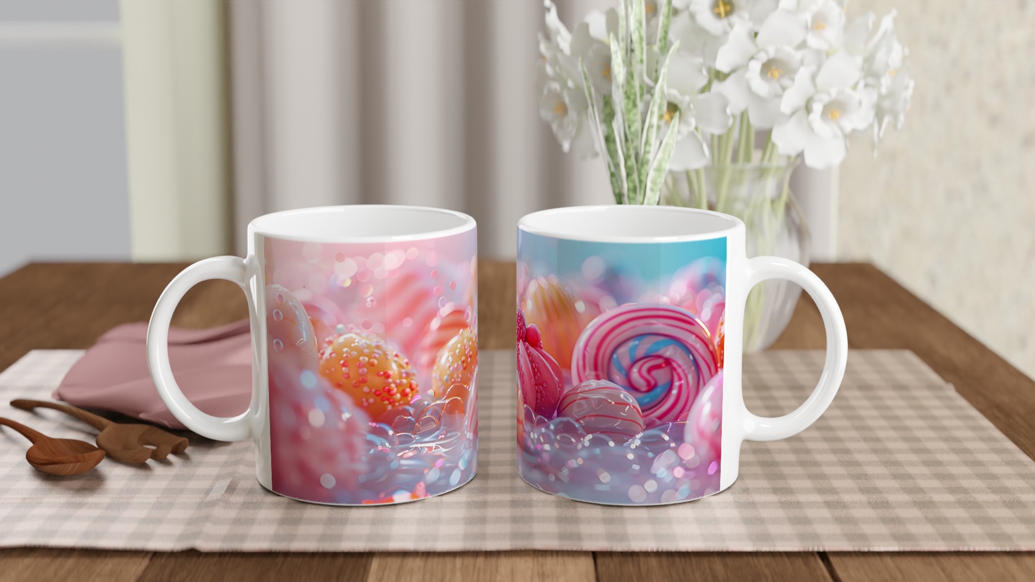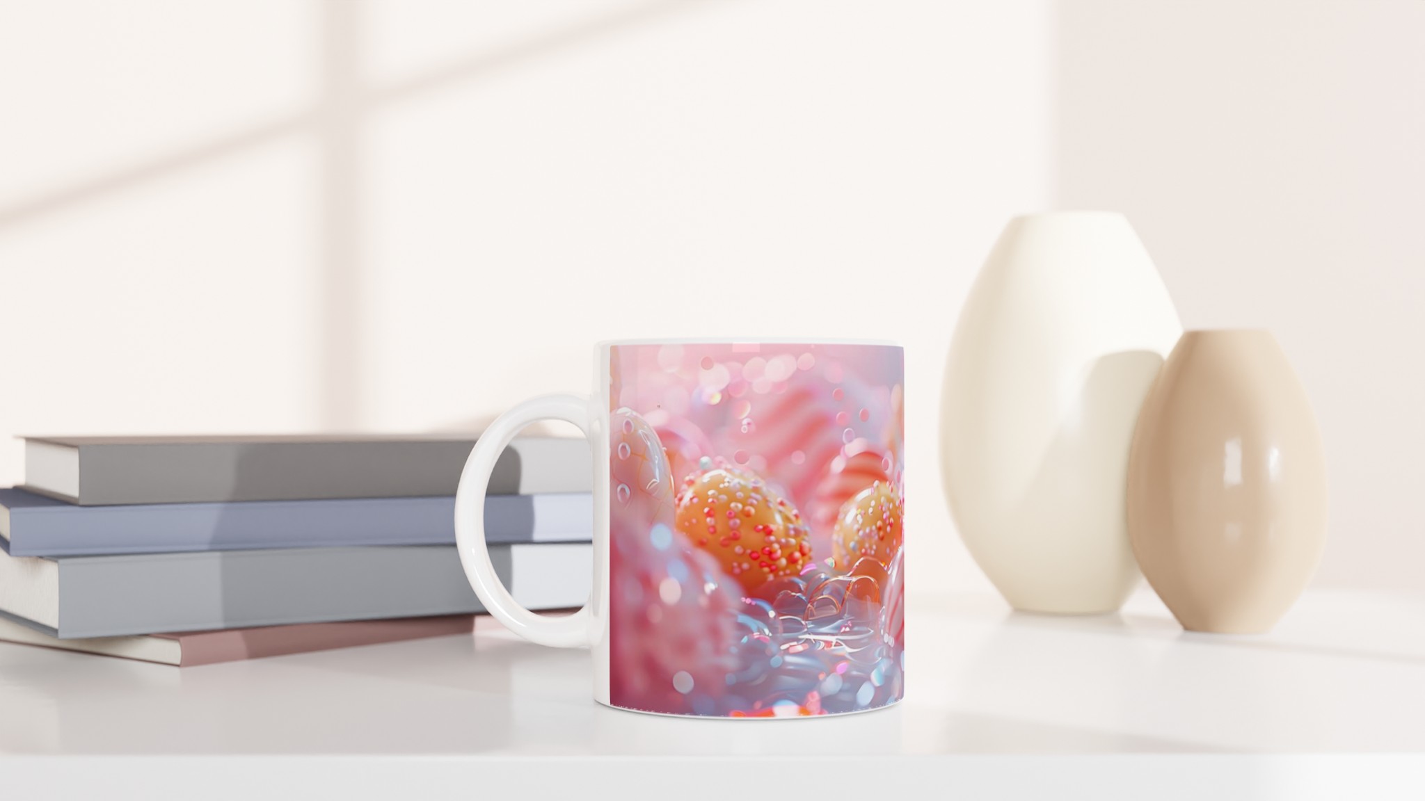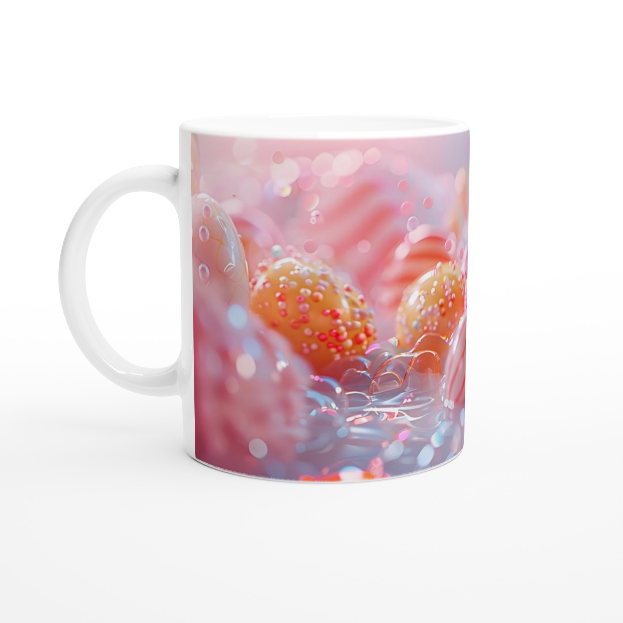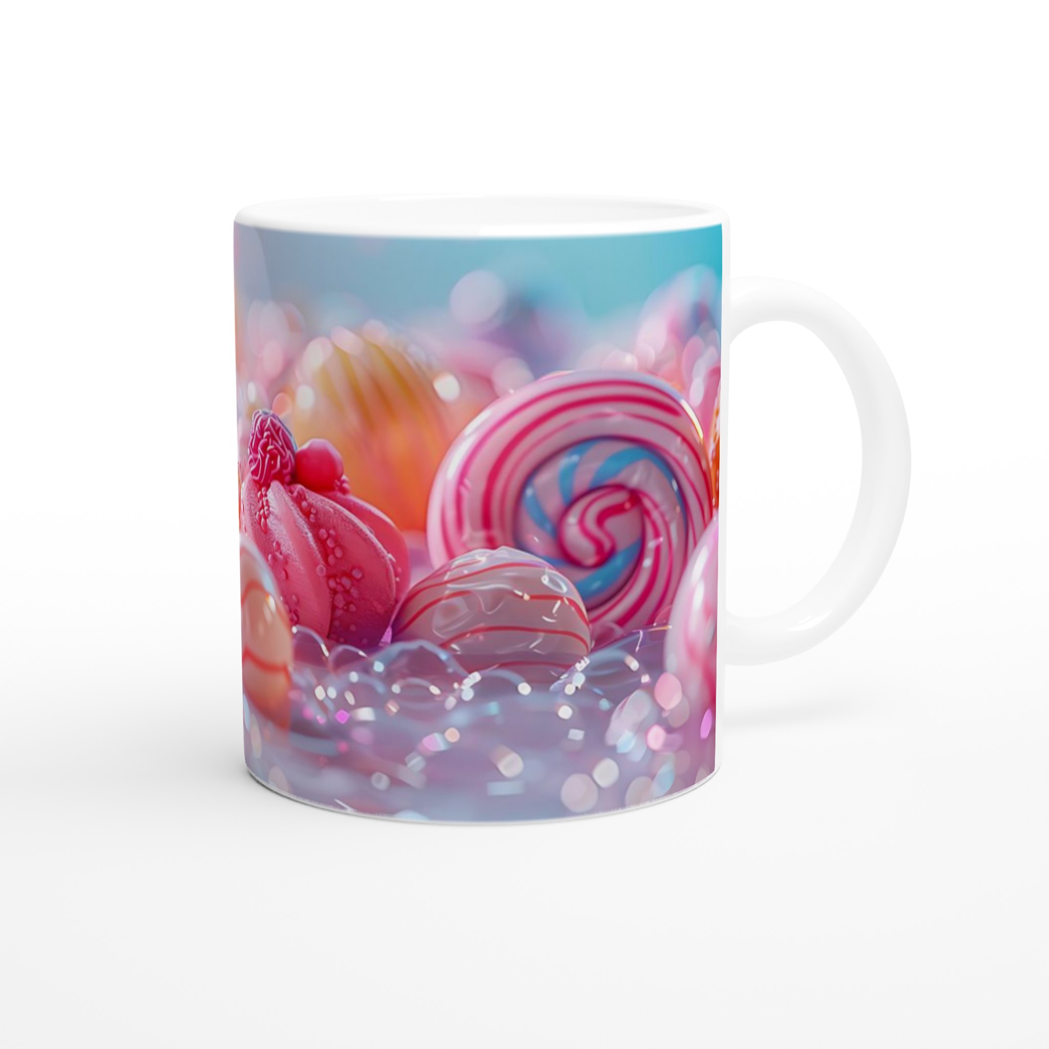 Fånga magin från ett sött drömland med denna underbara keramiska mugg, inspirerad av de ljuva pastellfärgerna och det lekfulla godistema. Varje sipp blir en liten flykt till en värld av sockersöta nyanser. Perfekt för morgonkaffet, kvällens varma choklad eller när du bara vill njuta av en kopp te.