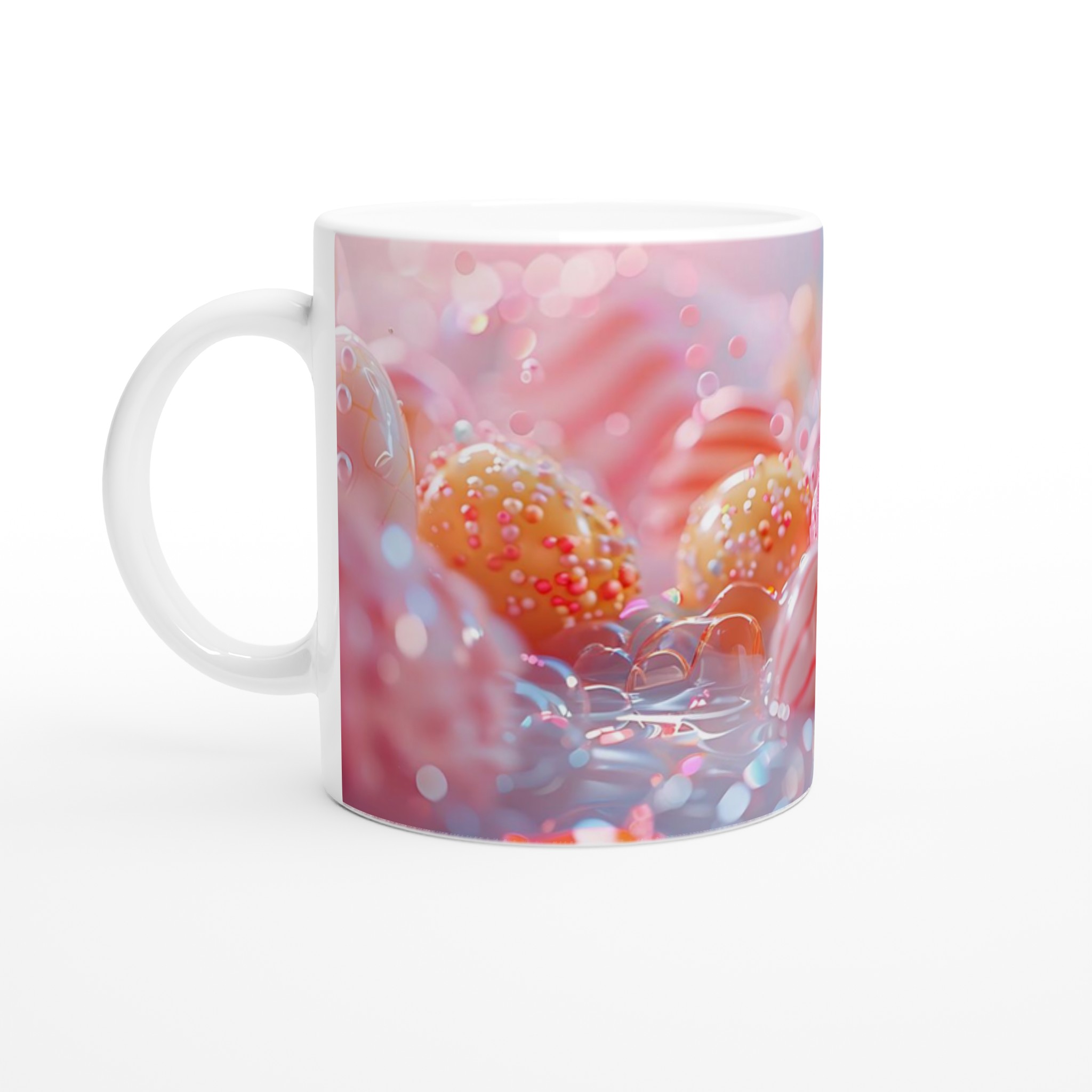 Den blanka vita ytan ger ett skarpt och levande tryck som verkligen sticker ut, oavsett om det är en personlig design, ett roligt citat eller en present till någon du tycker om. Inspirerad av en värld av sockersöta drömmar och festliga färger, kommer denna mugg att göra varje sip till en glädjefylld upplevelse.