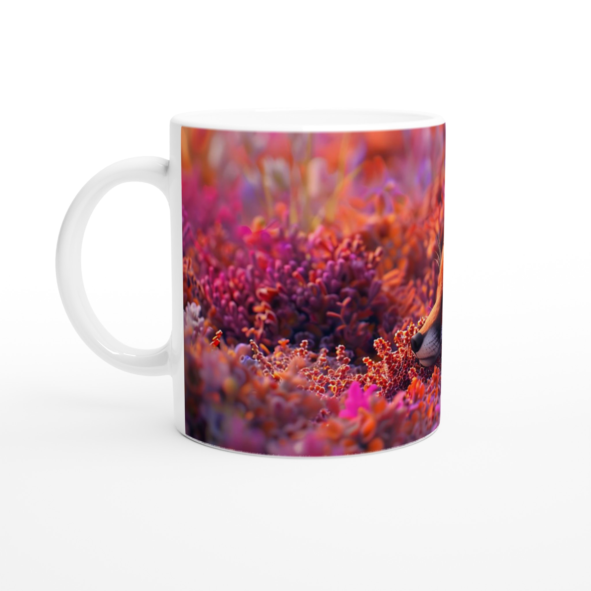 Inspirerad av den fridfulla charmen hos en sovande räv omgiven av livfulla, drömlika blommor, är denna mugg en hyllning till lugn och skönhet. Den blanka ytan ger ett skarpt och levande tryck som verkligen sticker ut, oavsett om det är en personlig design, ett roligt citat eller en present till någon du tycker om.