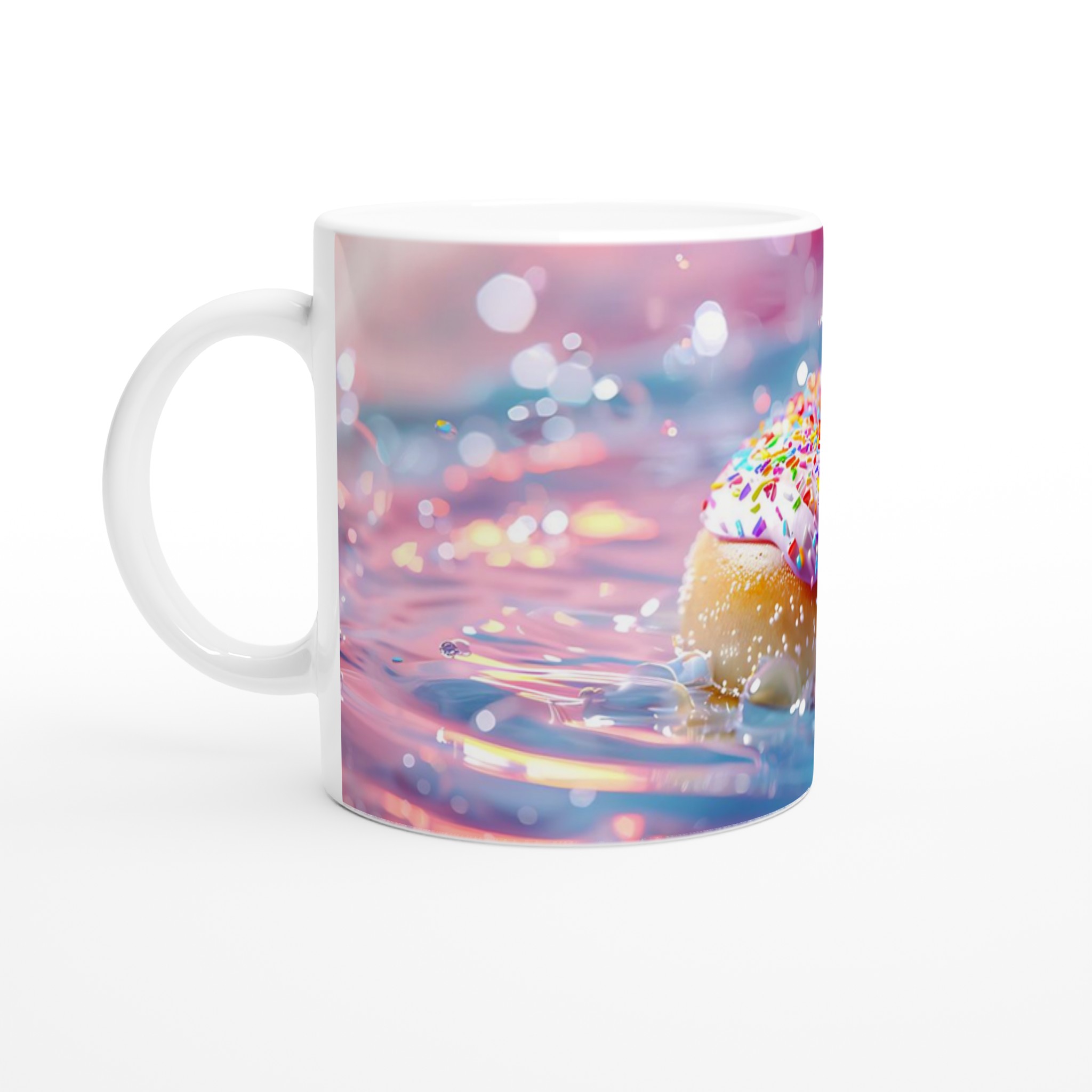 Dröm dig bort till en värld av bubblande glädje med vår ”Sprudlande Munkmugg”. Inspirerad av den lekfulla bilden av en fluffig munk med rosa glasyr och färgstarkt strössel, inbäddad bland skimrande bubblor och glänsande vätska, för den här muggen med sig en känsla av fest och magi till din dryckesupplevelse. Varje klunk blir en liten påminnelse om att fira livets söta stunder. En idealisk storlek för både hem och kontor.
