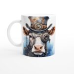 Föreställ dig en lugn stund med denna unika mugg i handen. Den detaljrika bilden av en ko prydd med solrosor och intrikata kugghjul ger en känsla av både natur och mekanisk konst, vilket gör varje klunk till en upplevelse. Muggen är inte bara praktisk – den är också en uppskattad present till familj, vänner eller kollegor, särskilt de som älskar udda inredningsdetaljer eller steampunk-inspirerad konst. En enkel men personlig gåva som alltid kommer till användning.