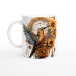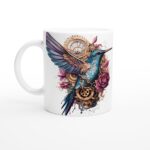 Lyft din fikastund med vår unika Keramikmugg med Steampunk Kolibri-motiv. Denna mugg är inte bara en behållare för din dryck – den är ett konstverk som förenar naturens skönhet med industriell elegans. Föreställ dig den skimrande kolibrin, detaljerad med intrikata kugghjul och fjäderlätt precision, som sprider färg och fantasi till din morgonkaffe, kvällens varma choklad eller din favoritte. Dess blanka vita yta är den perfekta bakgrunden för detta livfulla tryck som garanterat kommer att dra blickar till sig.