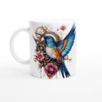 Denna förtrollande keramiska mugg med sin unika steampunk-kolibri blir snabbt en favorit för varje tillfälle. Med intrikata detaljer av kugghjul och delikata rosor i djupa blå och lila nyanser, är detta mer än bara en mugg – det är ett konstverk. Perfekt för morgonkaffet, kvällens varma choklad eller när du bara vill njuta av en kopp te medan du drömmer dig bort till en värld av mekanisk skönhet och naturens elegans.
