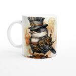 Den blanka vita ytan framhäver trycket med exceptionell klarhet och levande färger, som behåller sin lyster även efter otaliga turer i mikron och diskmaskinen. Muggen är inte bara praktisk; den är också en uppskattad present till den som älskar unika designer, steampunk-estetik eller helt enkelt vackra och användbara föremål. En enkel men personlig gåva som alltid kommer till användning och sprider glädje.