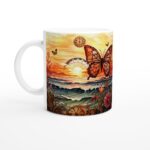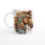 Fördjupa dig i en värld av under och fantasi med vår Steampunk Ocean Dream keramiska mugg. Denna unika design kombinerar nautiska element med intrikata steampunk-detaljer, framhävd av en varm färgpalett av havsblått, korall och guld. Varje sipp blir en resa till ett drömlikt hav där mekanik och natur smälter samman i perfekt harmoni.