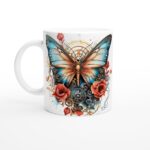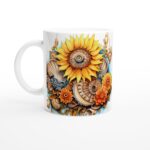 Denna förtrollande keramiska mugg är mer än bara en kopp – den är ett konstverk inspirerat av steampunkens intrikata detaljer och havets naturliga skönhet. Med sina unika snäck- och kugghjulsdetaljer i en mjuk färgpalett av guld, rosa och lila, blir den snabbt en vardagsfavorit och en konversationsstartare. Perfekt för morgonkaffet, kvällens varma choklad eller när du bara vill njuta av en kopp te med stil.