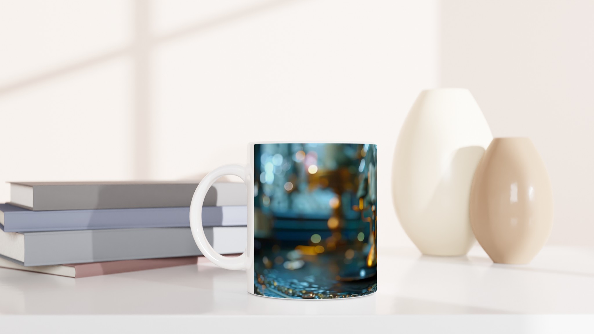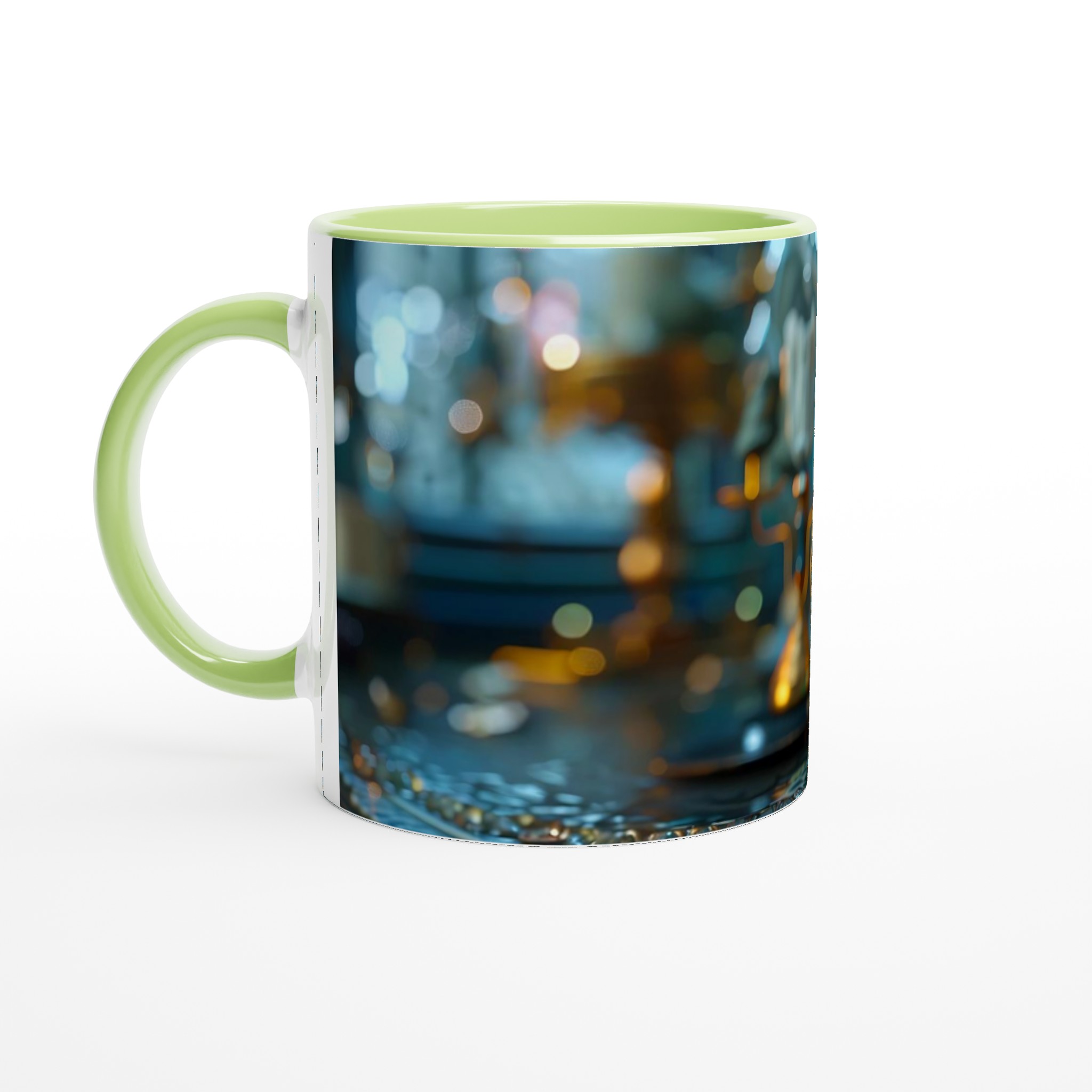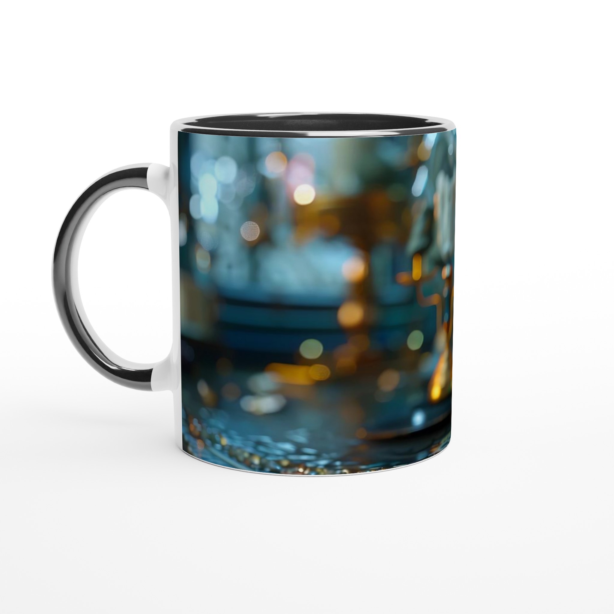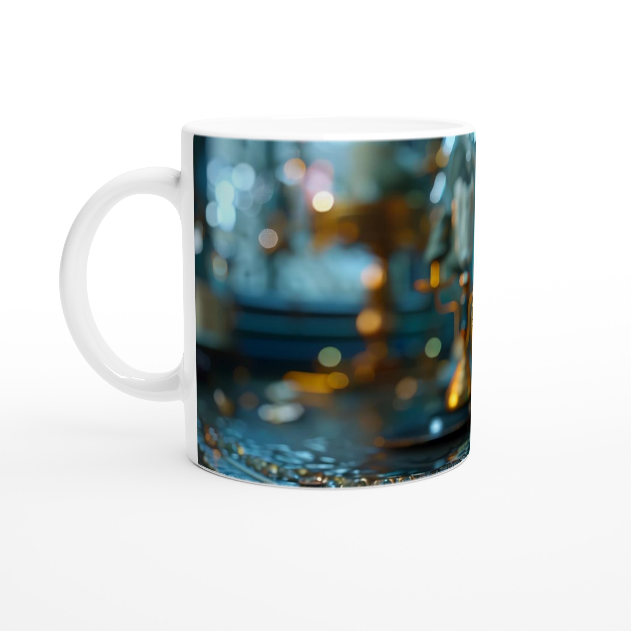 Kliv in i en värld av tidlös charm med vår Steampunk Vintage Klocka Keramiska Mugg. Denna mugg är inte bara en dryckesbehållare; den är en inbjudan att drömma dig bort till ett annat århundrade, perfekt för morgonkaffet, kvällens varma choklad eller när du bara vill njuta av en kopp te. Den detaljerade designen, inspirerad av en utsmyckad vintageklocka i turkosa och guldiga toner, ger varje fika en känsla av mystik och äventyr. Den blanka ytan säkerställer att trycket framhävs med klara och levande färger, som håller sig fina även efter många turer i mikron och diskmaskinen.