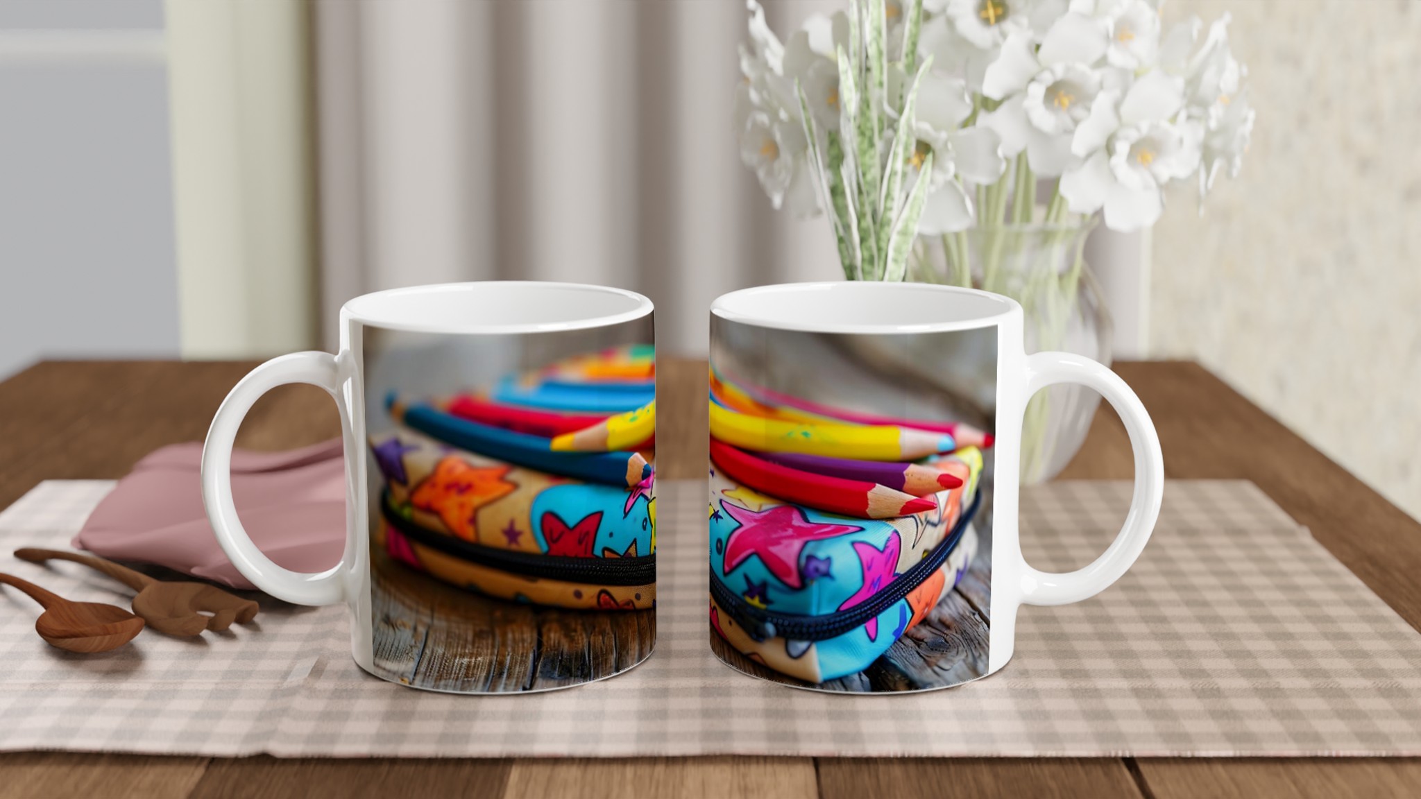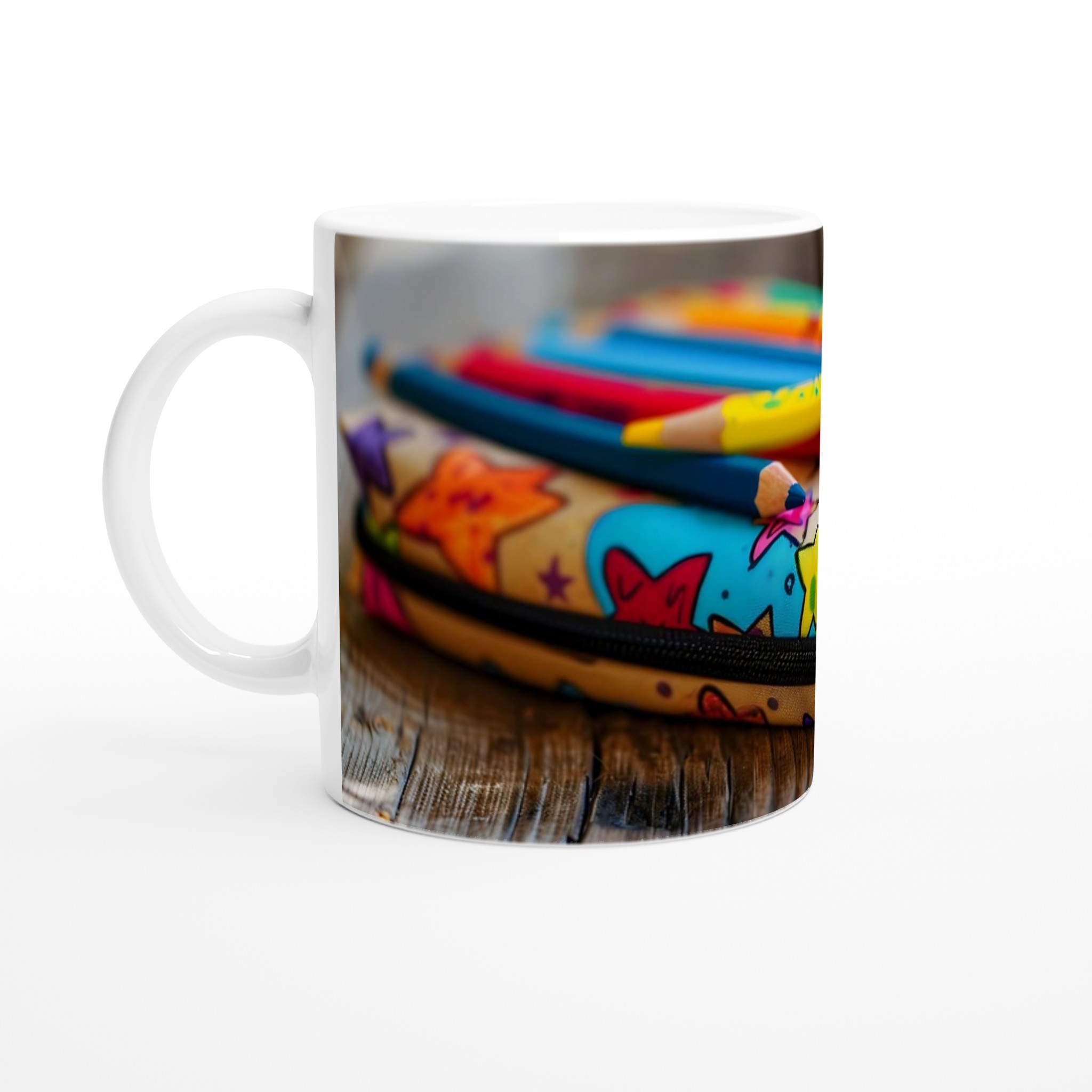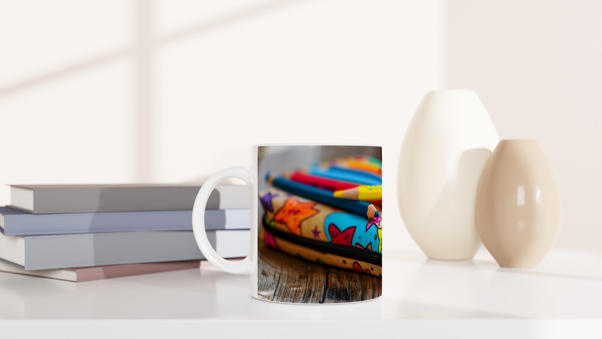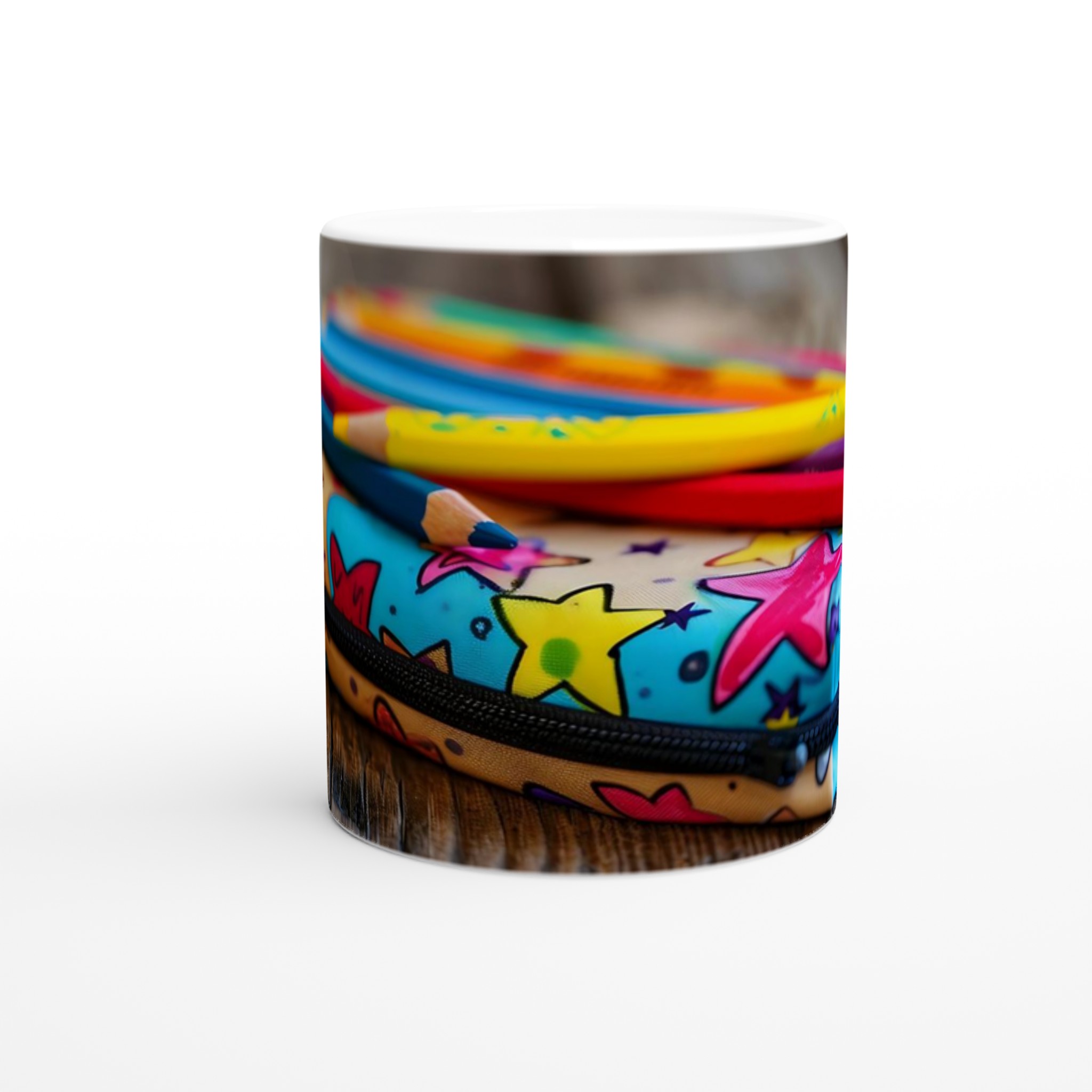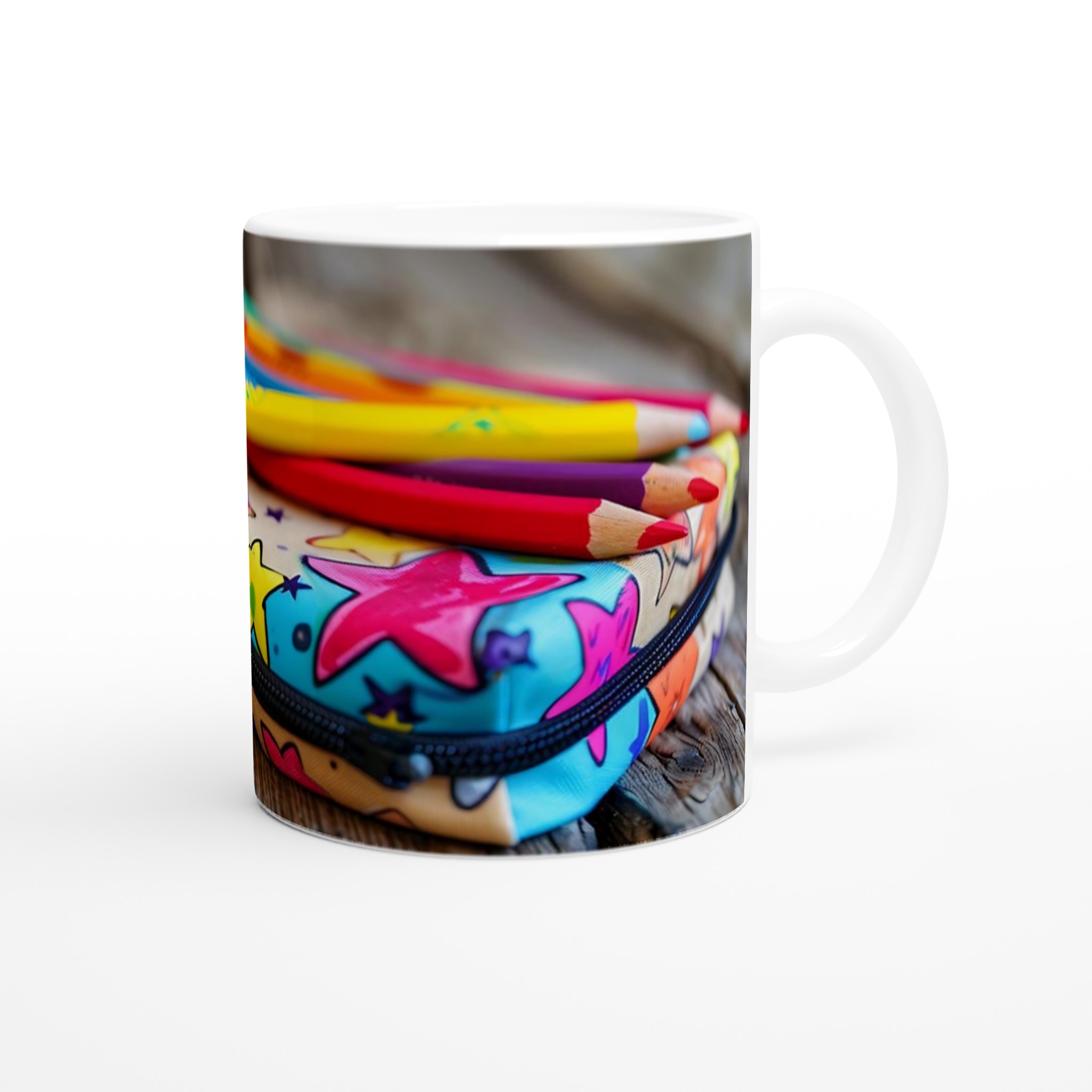 Lys upp din dag med denna lekfulla keramiska mugg, dekorerad med livfulla stjärnor som speglar fantasin och glädjen i varje sip. Den blir snabbt en vardagsfavorit, perfekt för morgonkaffet, kvällens varma choklad eller när du bara vill njuta av en kopp te. Den blanka vita ytan gör att trycken framhävs med klara och levande färger, som håller sig fina även efter många turer i mikron och diskmaskinen. Välj bland sju strålande nyanser – Ceramic White, Yellow, Pink, Green, Red, Black, eller Blue – för att hitta den som bäst uttrycker din personliga stil eller för att matcha ditt kök.