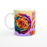 Fira kärlek och mångfald med denna strålande keramiska mugg, som blir en omedelbar vardagsfavorit. Den livfulla Pride-designen, med lekfulla regnbågar och fantastiska blommor i en explosion av färg, gör varje klunk till en fest. Perfekt för morgonkaffet, kvällens varma choklad eller när du bara vill njuta av en kopp te med stil och glädje.