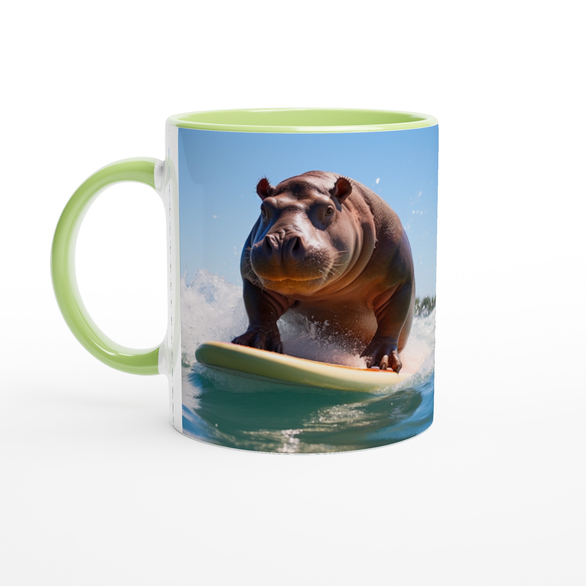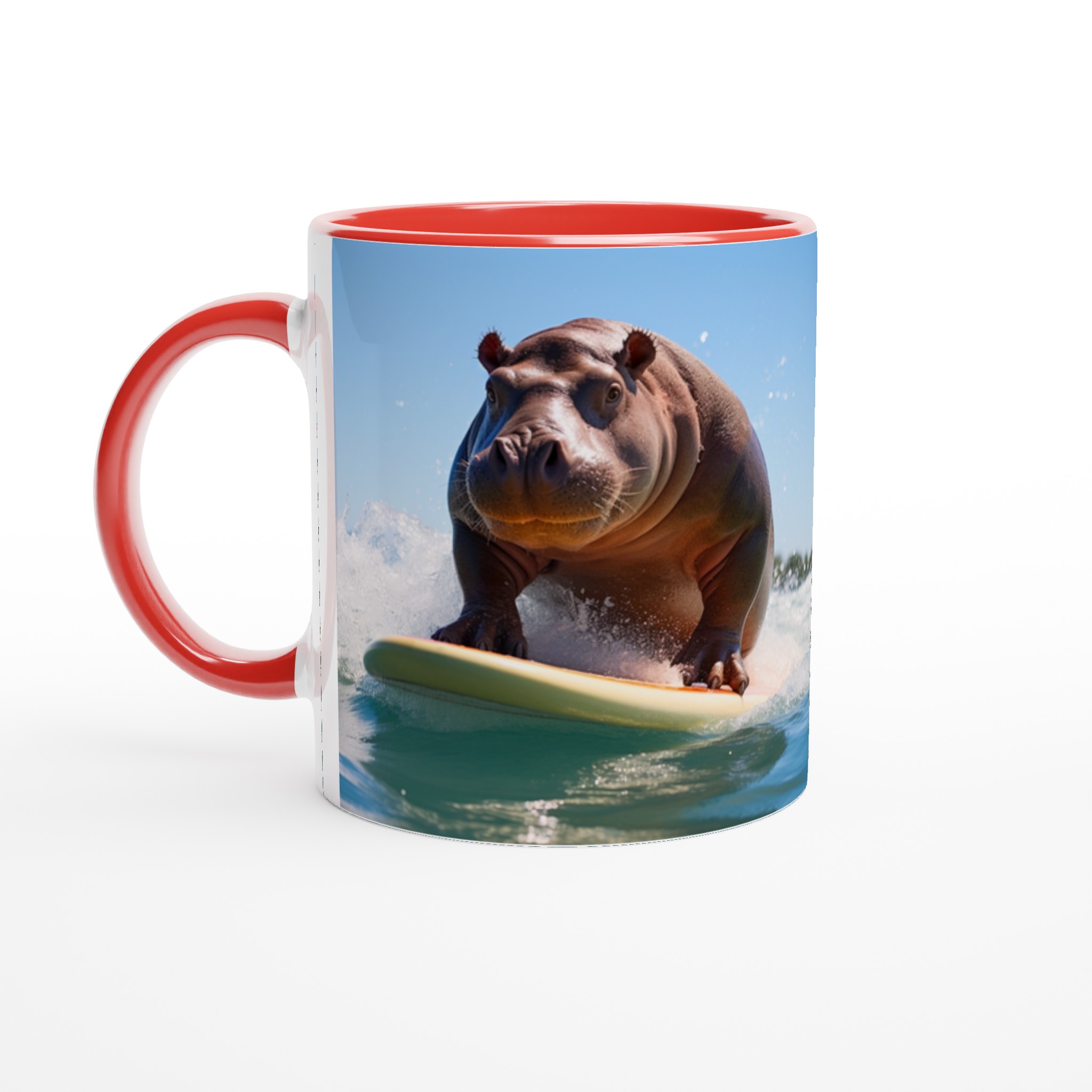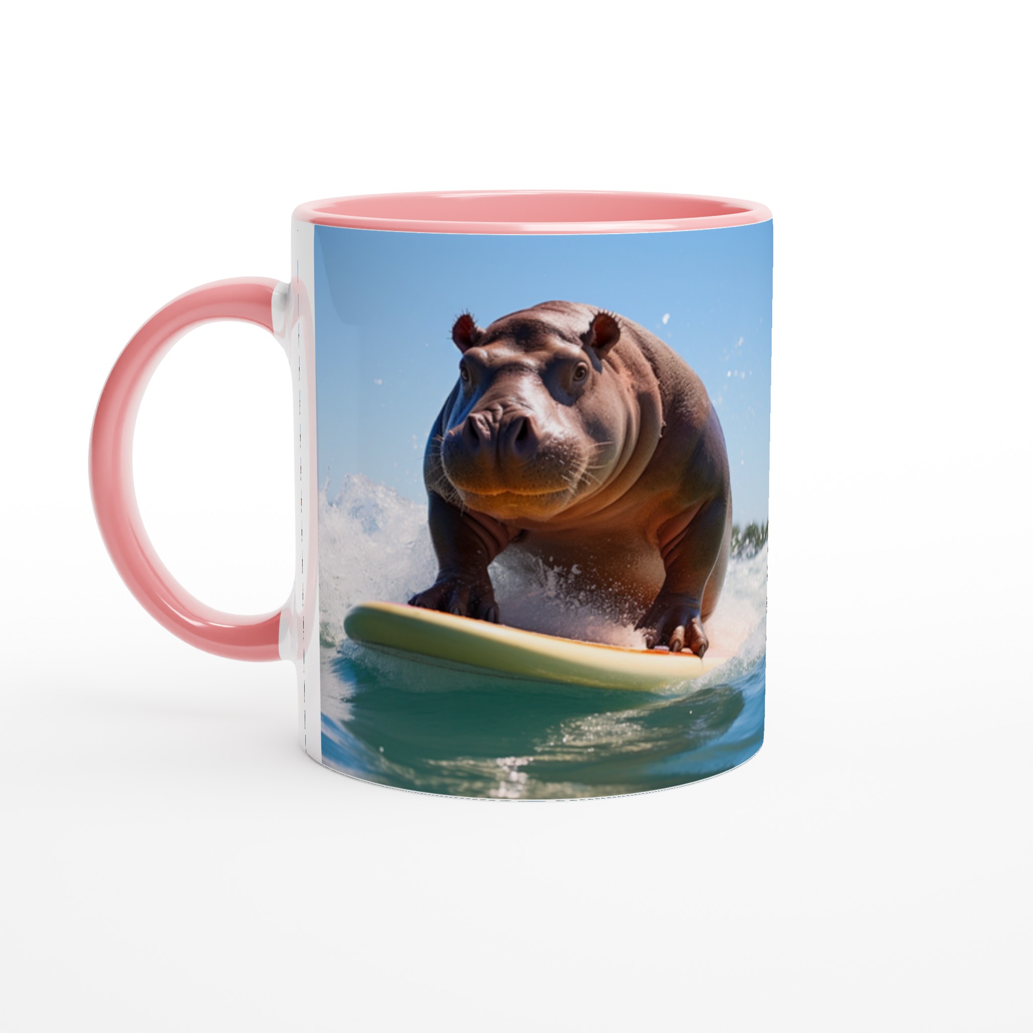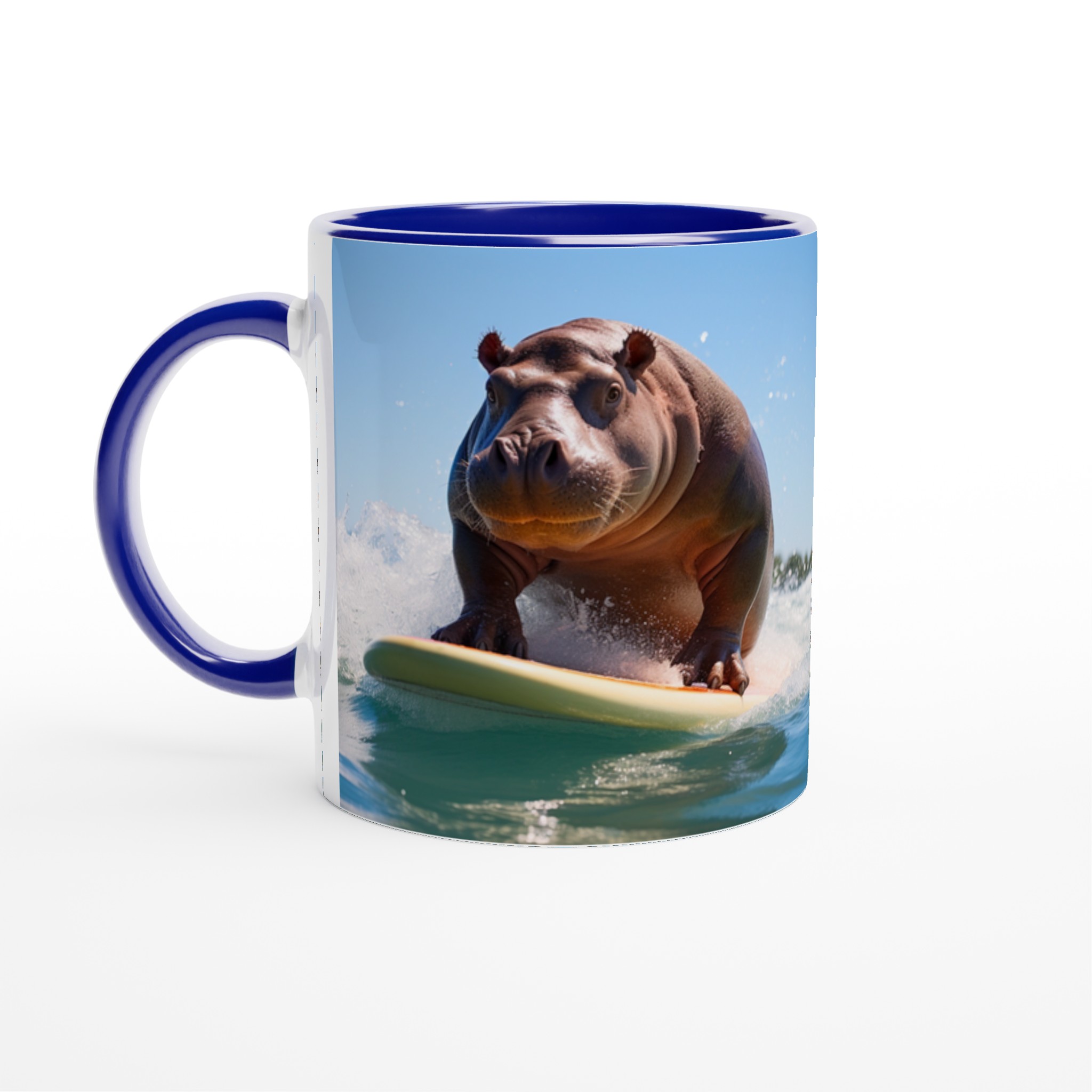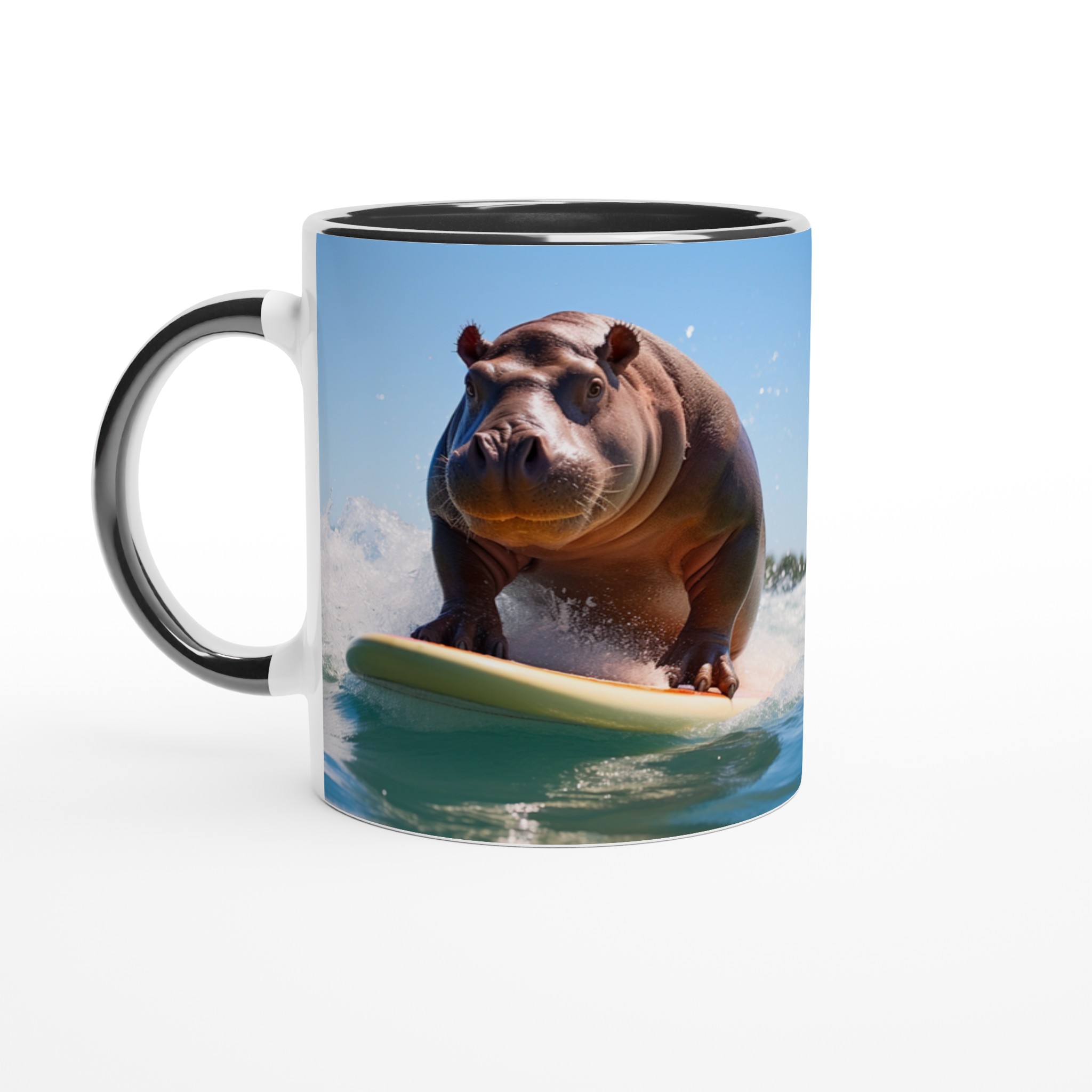 Förhöj din fikastund och gör ett statement – välj din favoritfärg och beställ din unika surfing hippo-mugg idag!